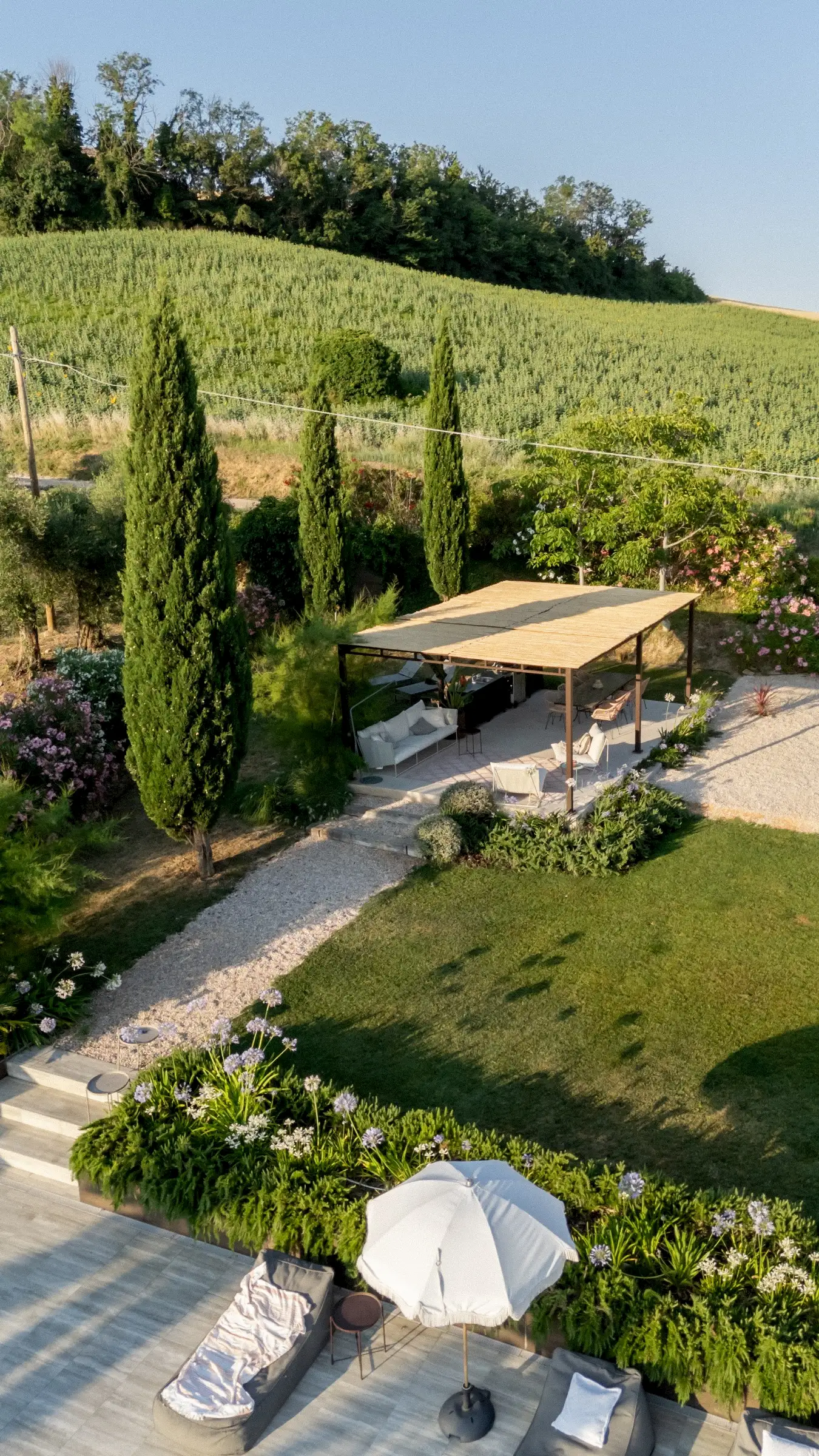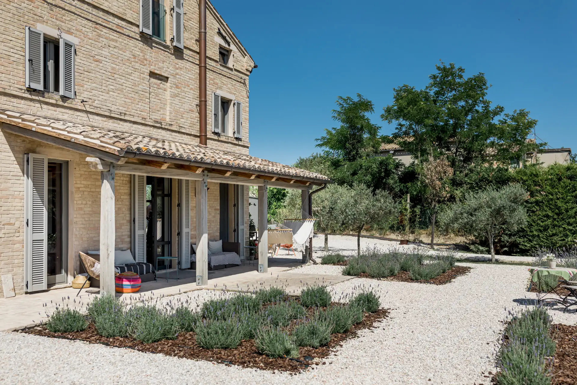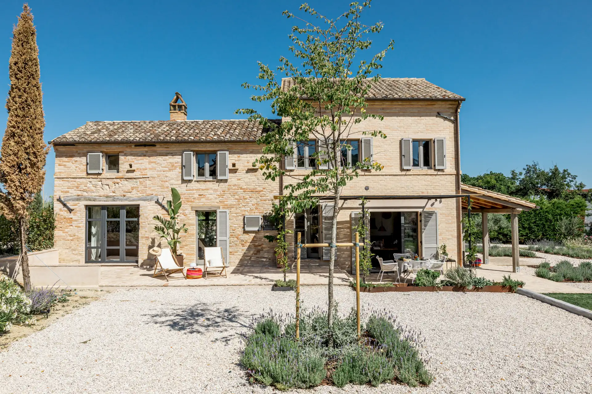 La Pergola is a beautiful villa for eight in the hills of Le Marche. Its private setting in this beautiful rolling landscape influenced a careful renovation that celebrates the garden as much as the rooms inside.
