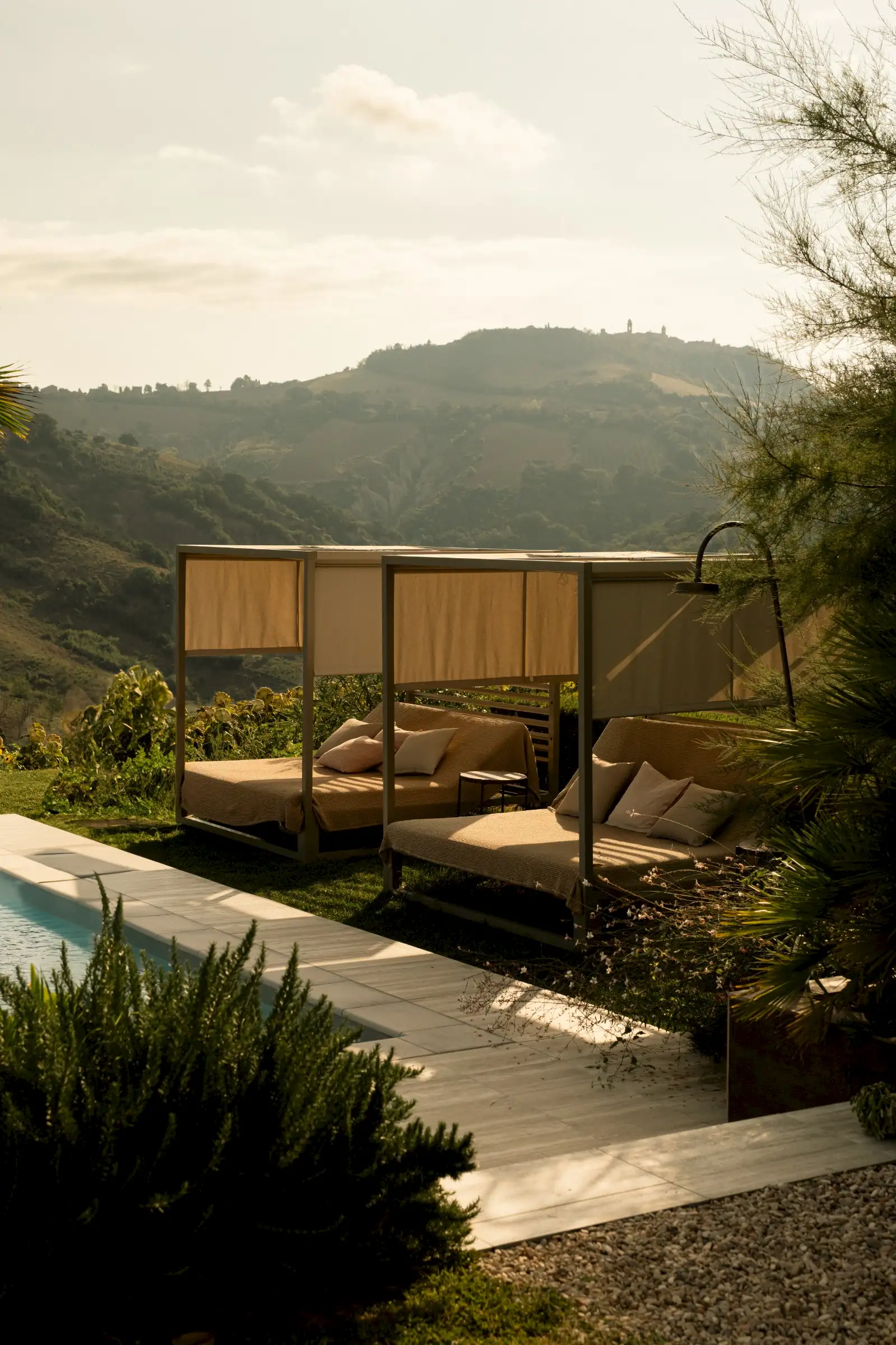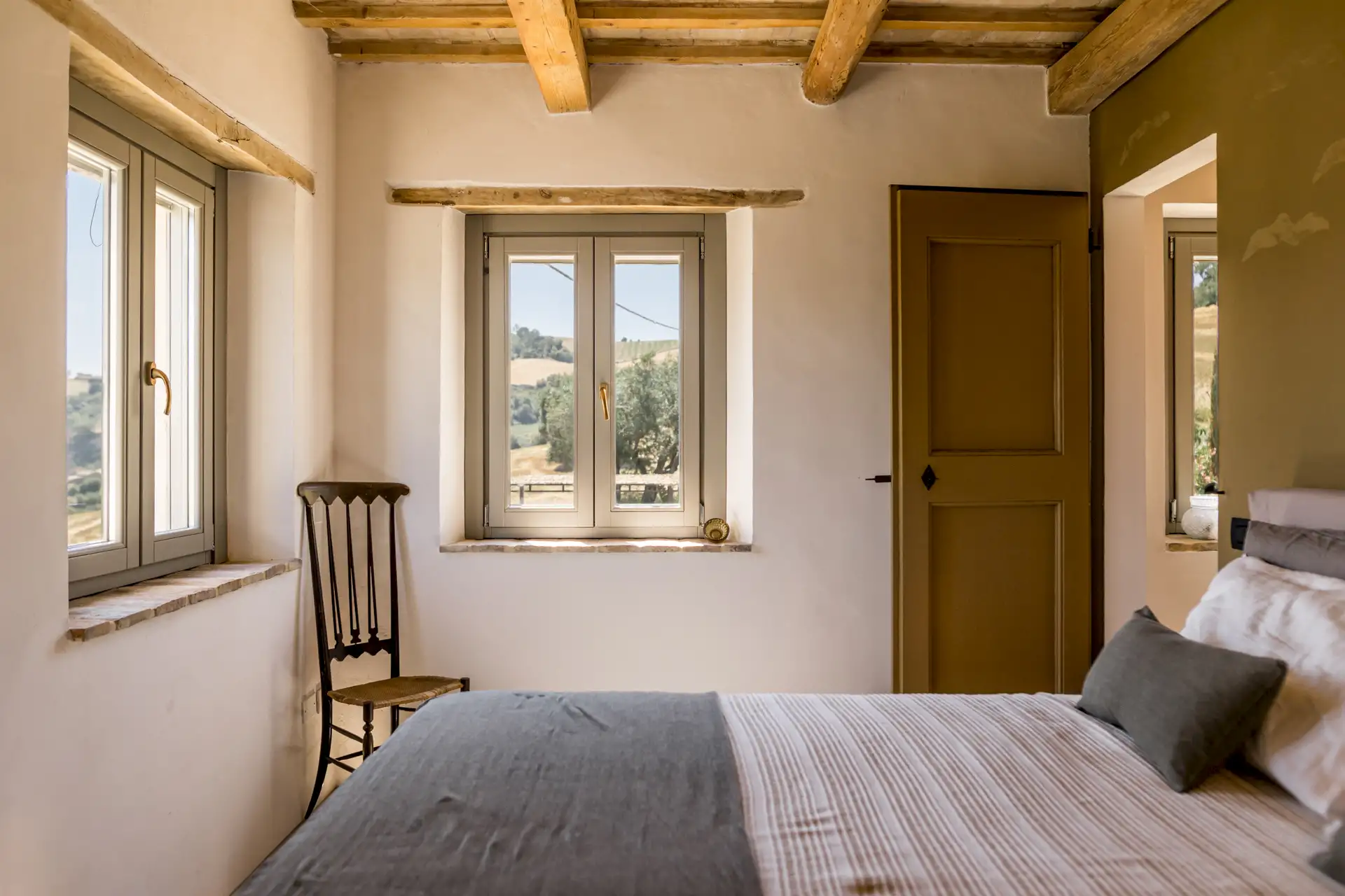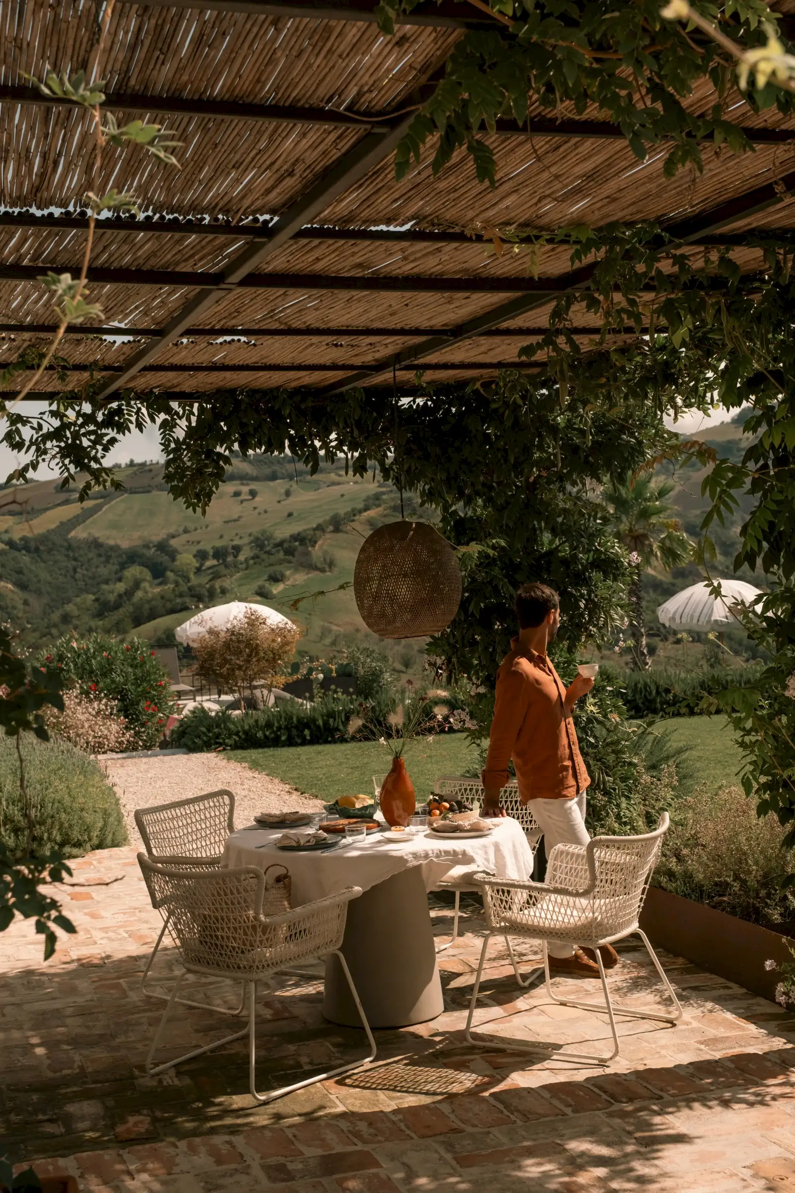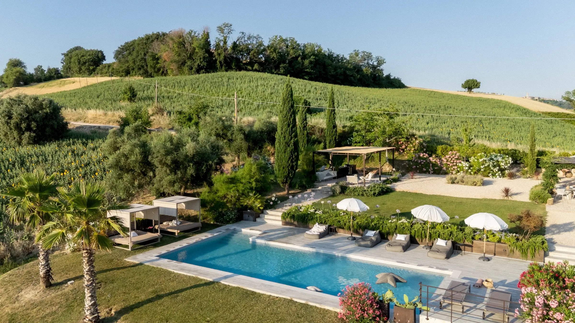 La Pergola is a beautiful villa for eight in the hills of Le Marche. Its private setting in this beautiful rolling landscape influenced a careful renovation that celebrates the garden as much as the rooms inside.