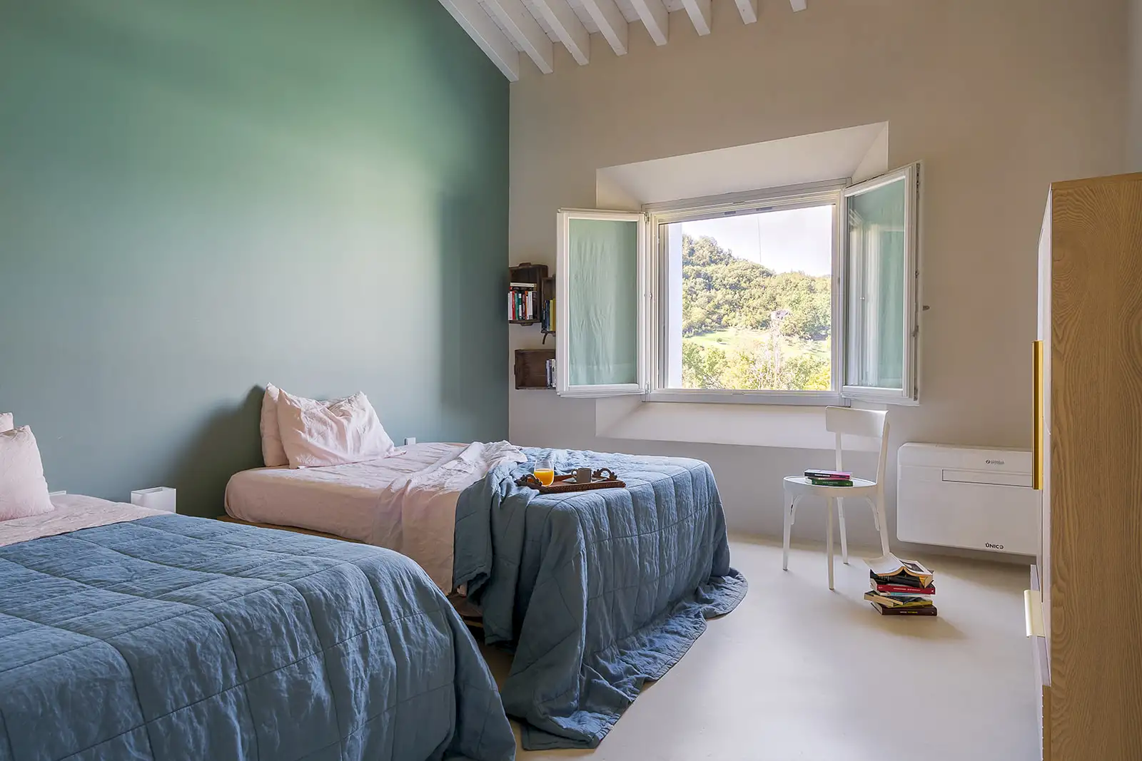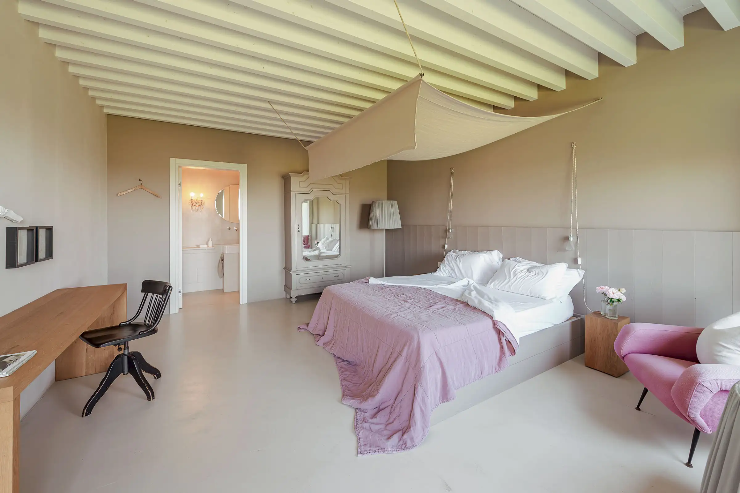 The buildings’ simple, clean lines are thoughtfully decorated with a modern mix of Nordic and Italian interior design in ice-cream colours. Much of the furniture has been custom-made exclusively for the property using high-end materials, and unique flea-market finds add elegance and comfort to an interior that is light and bright, original and relaxing.