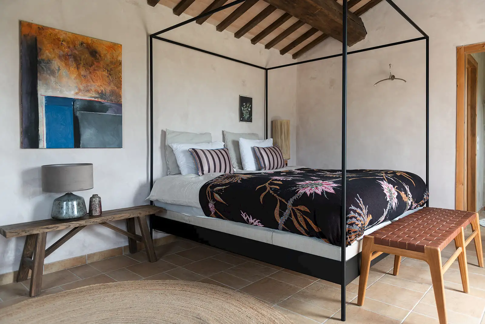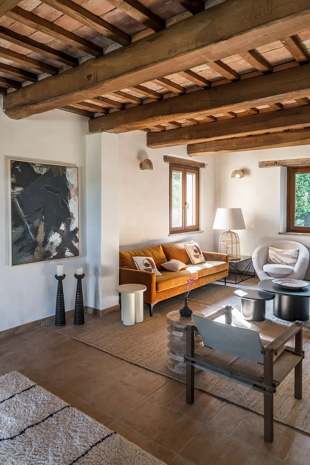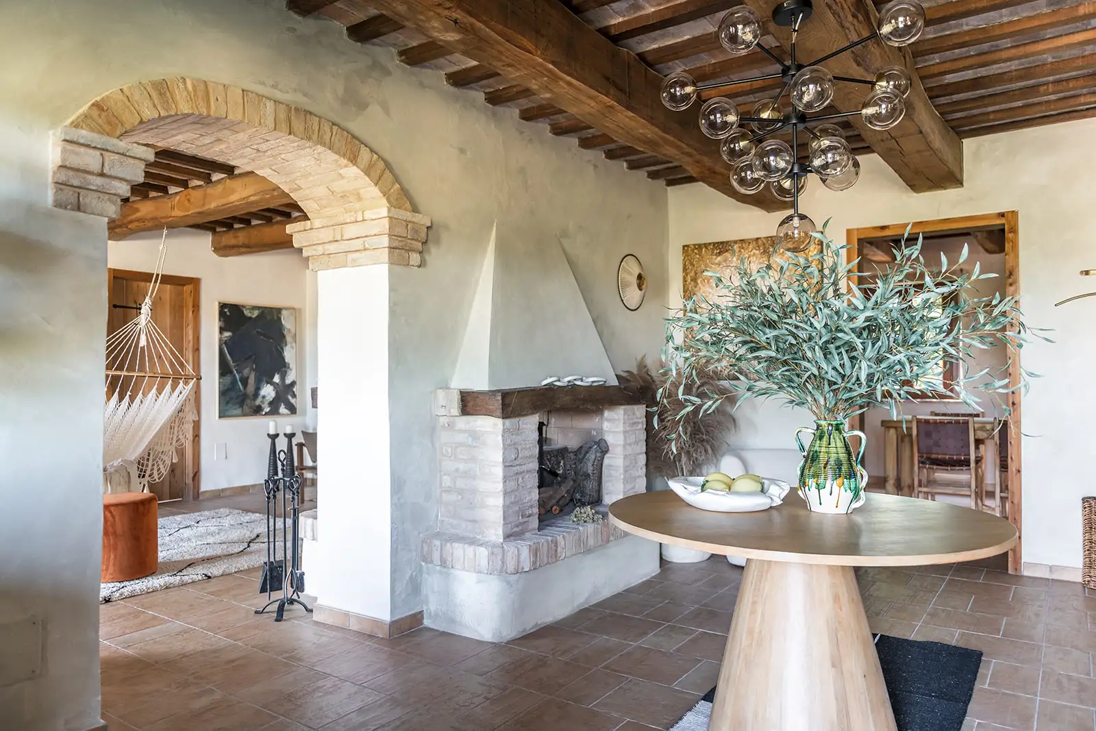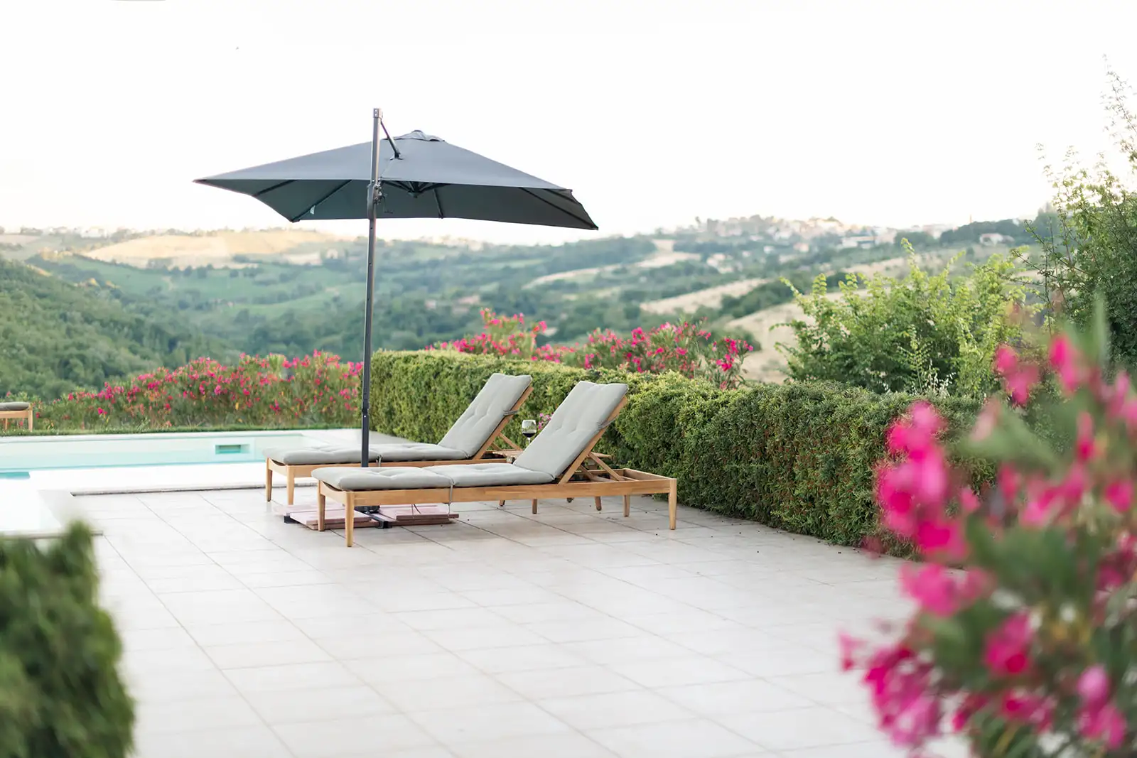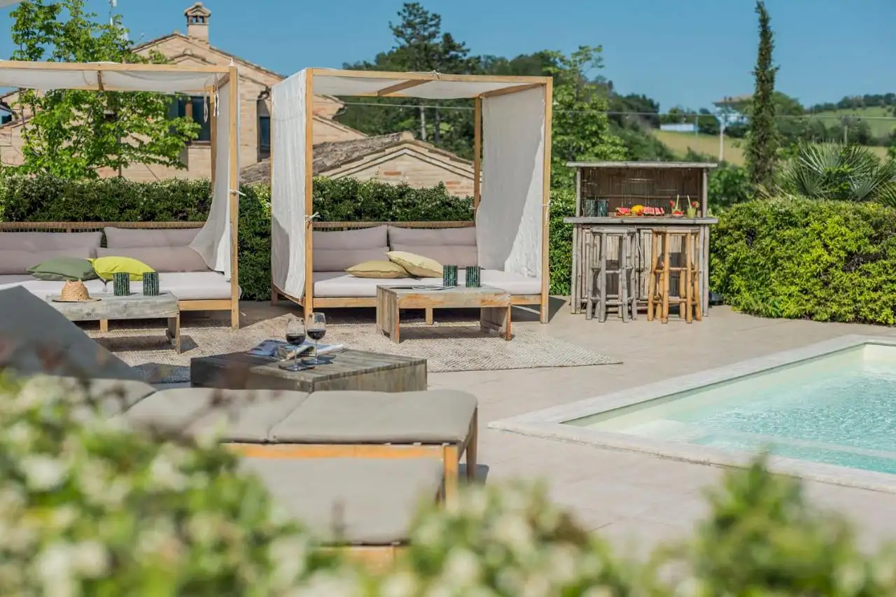 Wooden beam-and-cotto ceilings, stone floors and enviable views all point to traditional Italy. The poolside cabanas, gym, sauna, jacuzzi, indoor hammock, outdoor cinema, and games room, suggest a side order of decadence.
