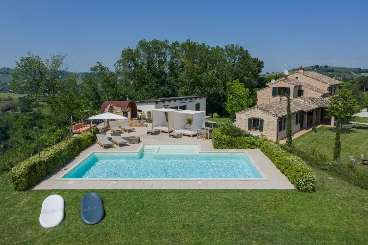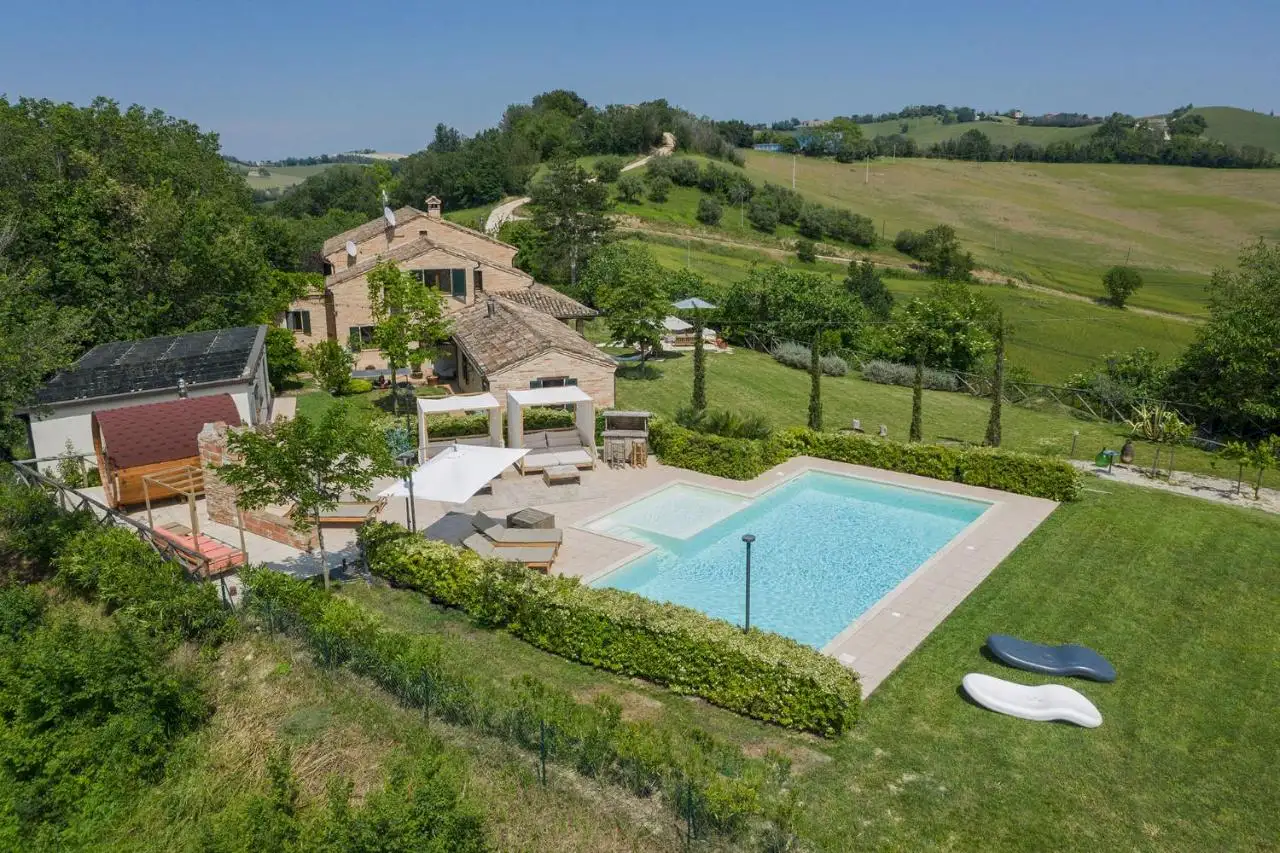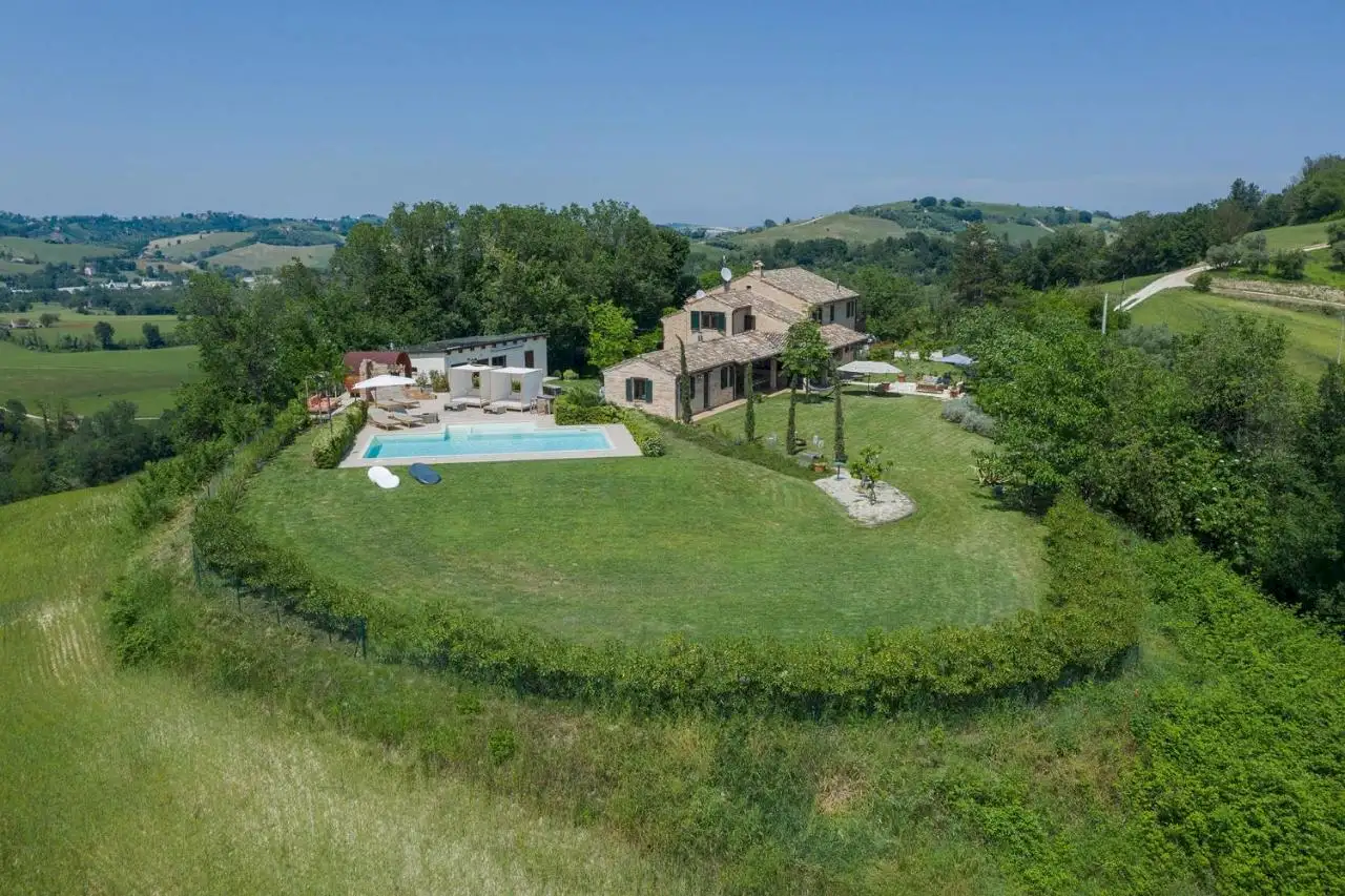 Santamaria sits on a hilltop clearing in the glorious rolling wooded landscape of Le Marche, just half an hour from the coast.