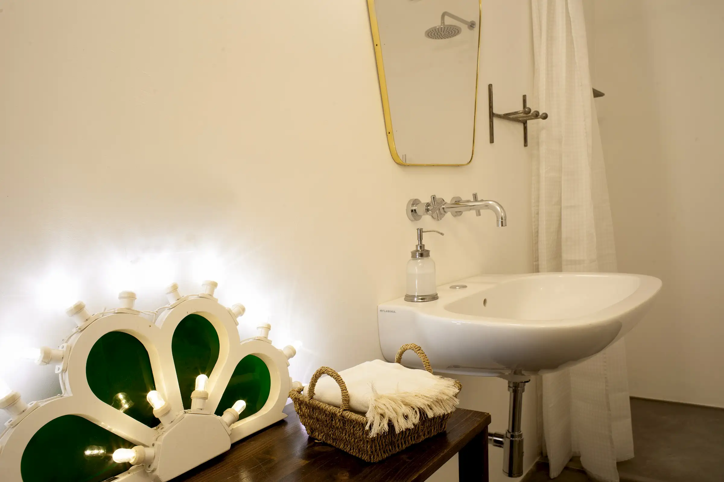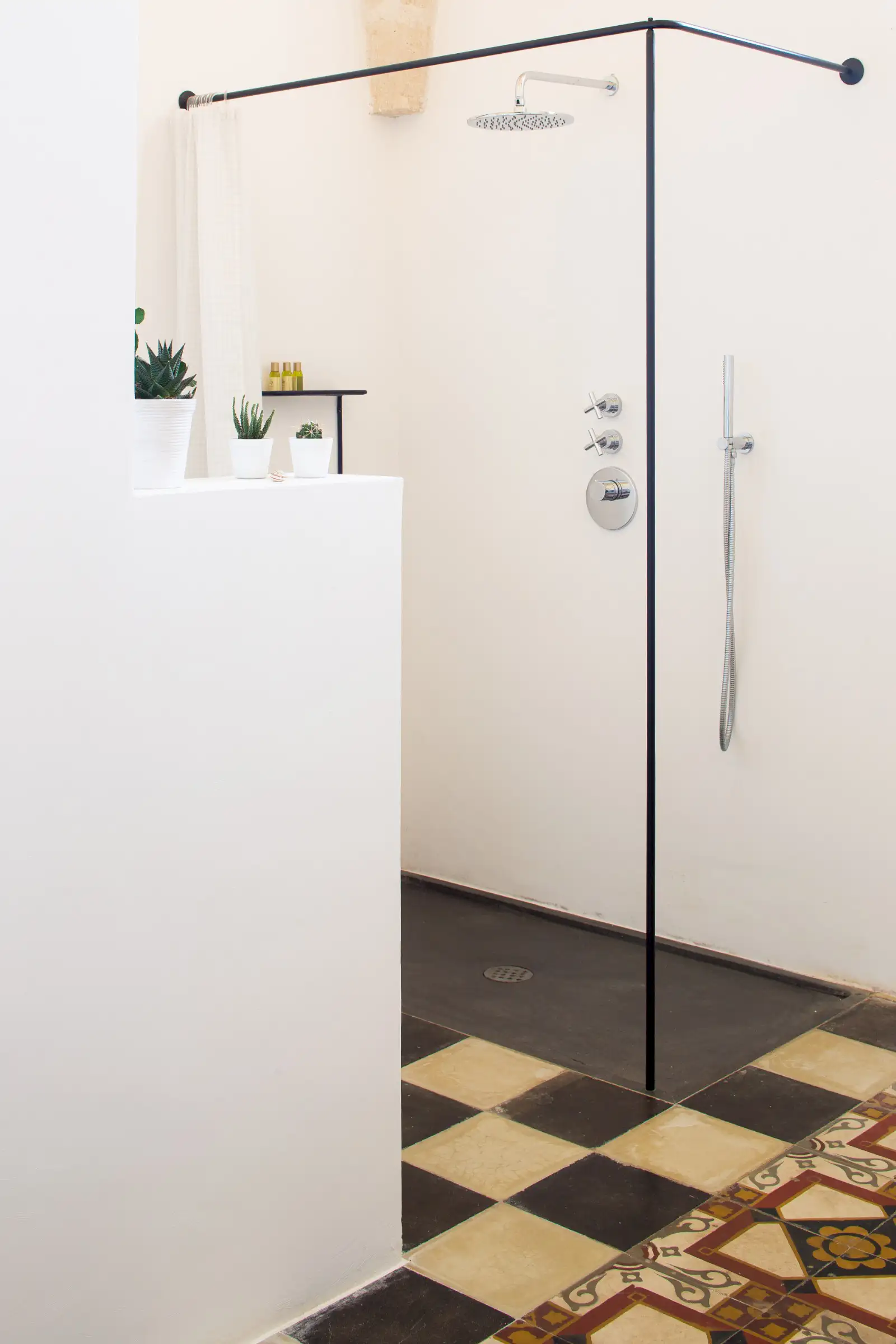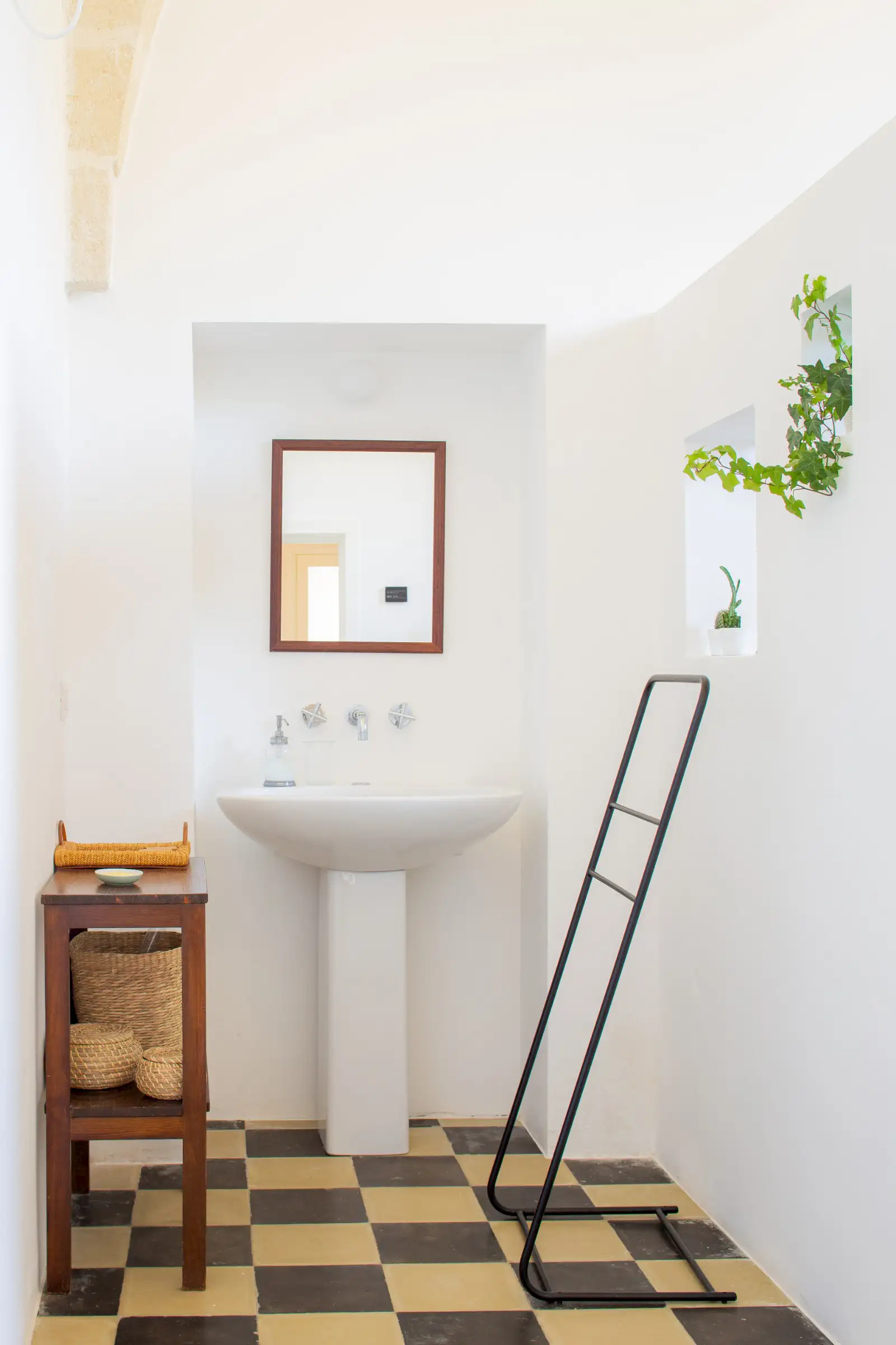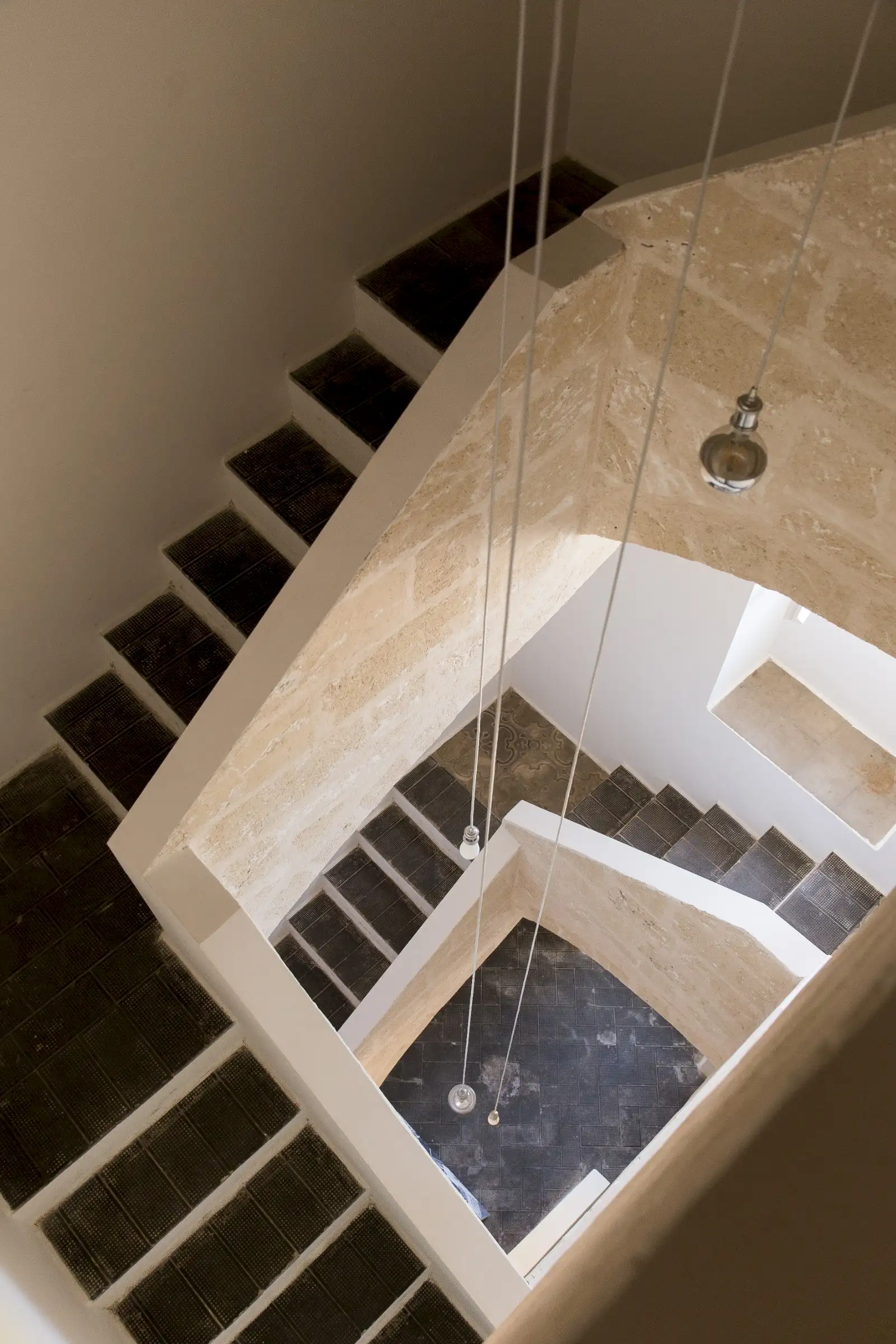 The beautiful proportions of the arched rooms and the subtle combination of white walls, elegant stone and shades of green create a calm space that encourages guests to melt into its charm. The furniture is a mix of traditional rustic and mid-century classic with soft citrus colours reflecting the surrounding landscape. The floor tiles alone are expansive works of original art.