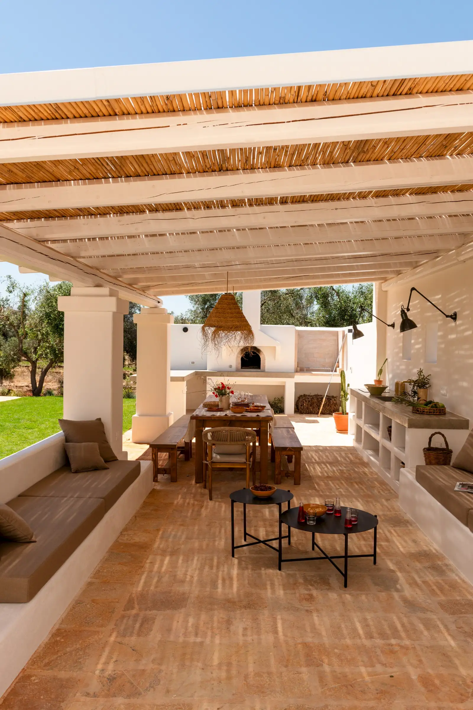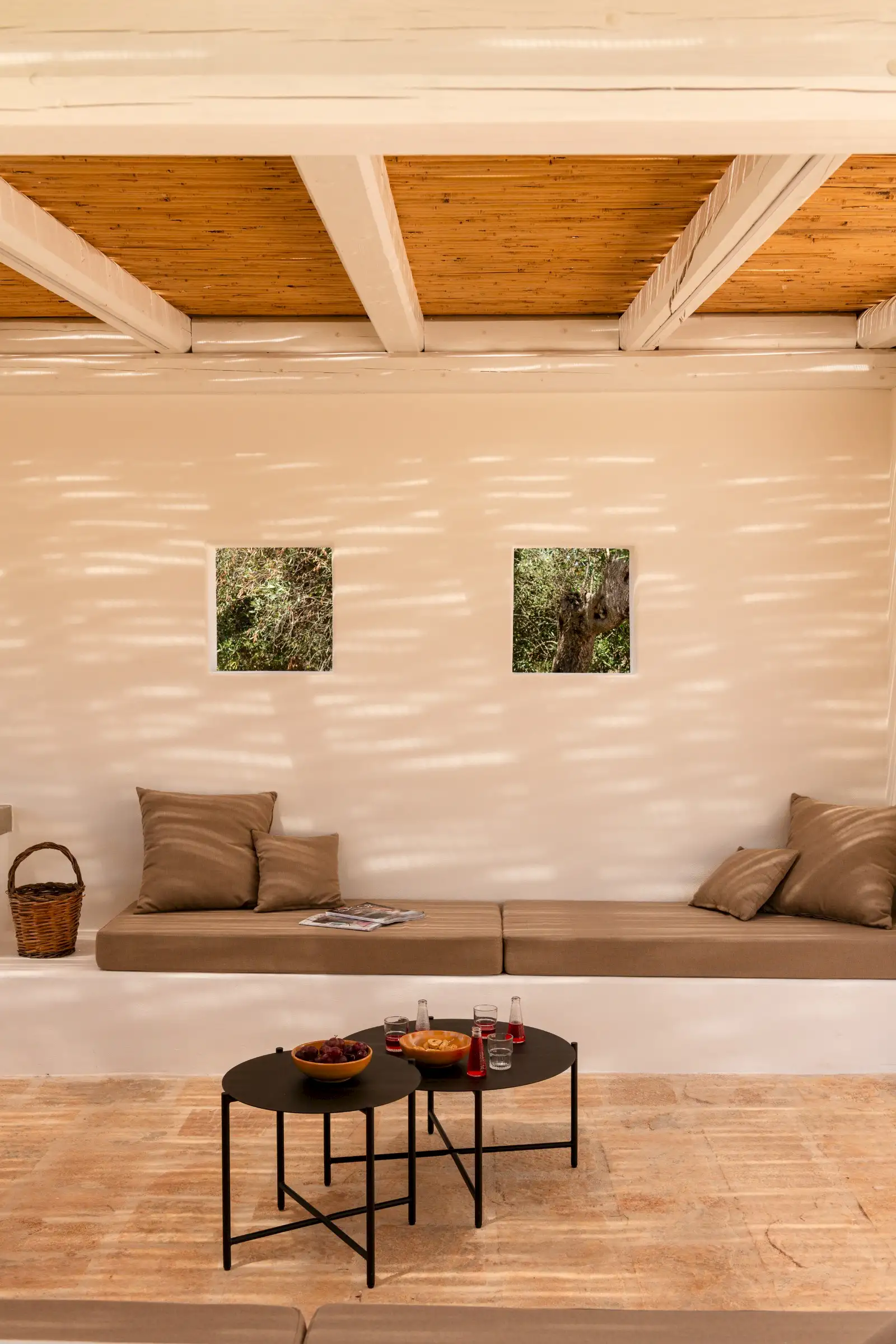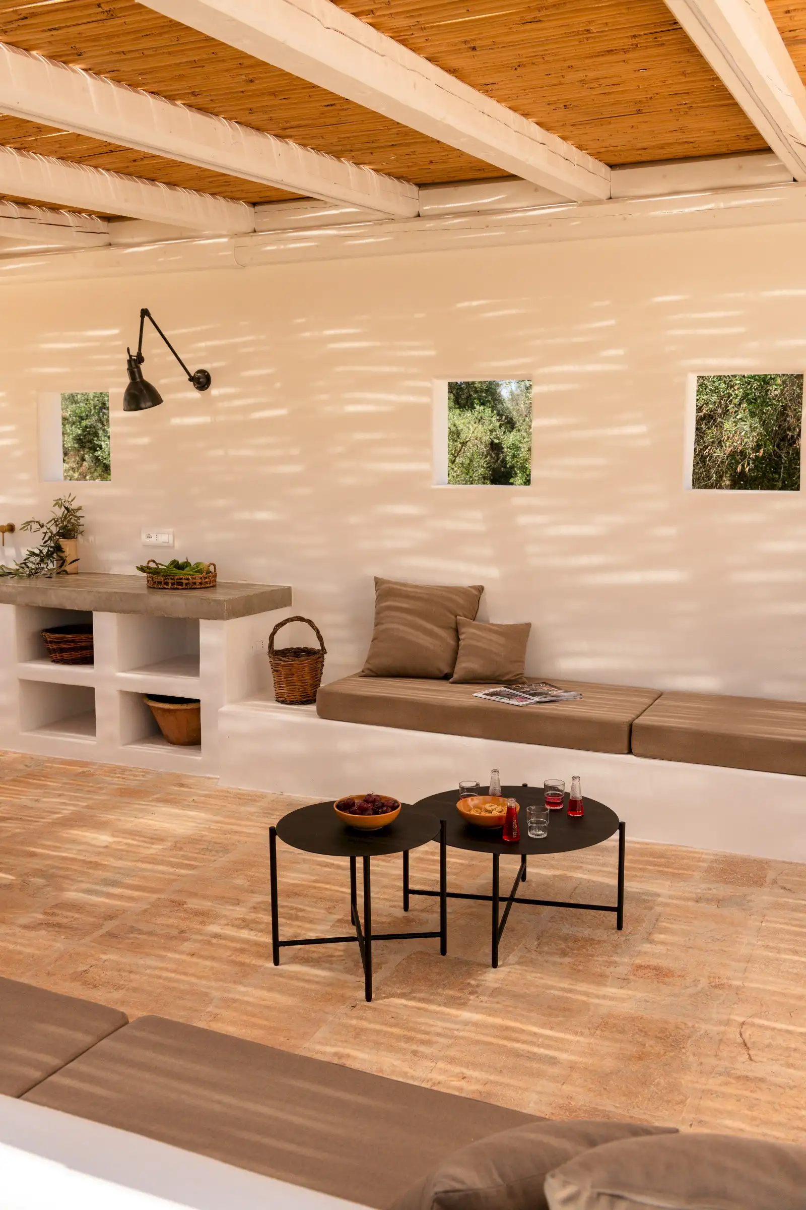 With room to connect with family and friends as well as to find a quiet space to be alone, the real pull of this place is its beautiful connection with nature. Approached along a straight gravel drive through the olive trees, the Mediterranean garden blurs the line between wild and cultivated and guests can snooze in the shade, jump in the pool, dine outside on pizza cooked in the pizza oven and properly reset.