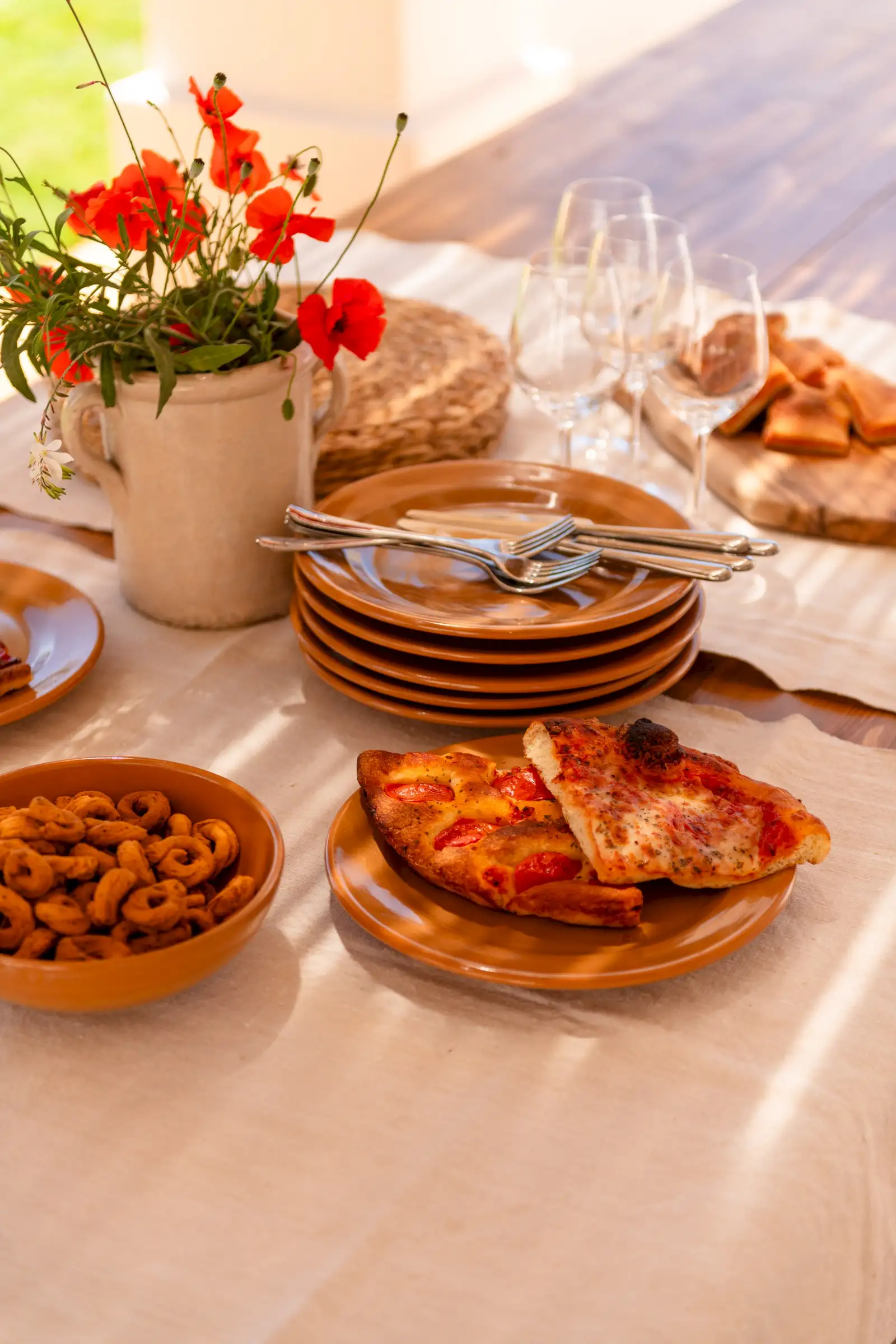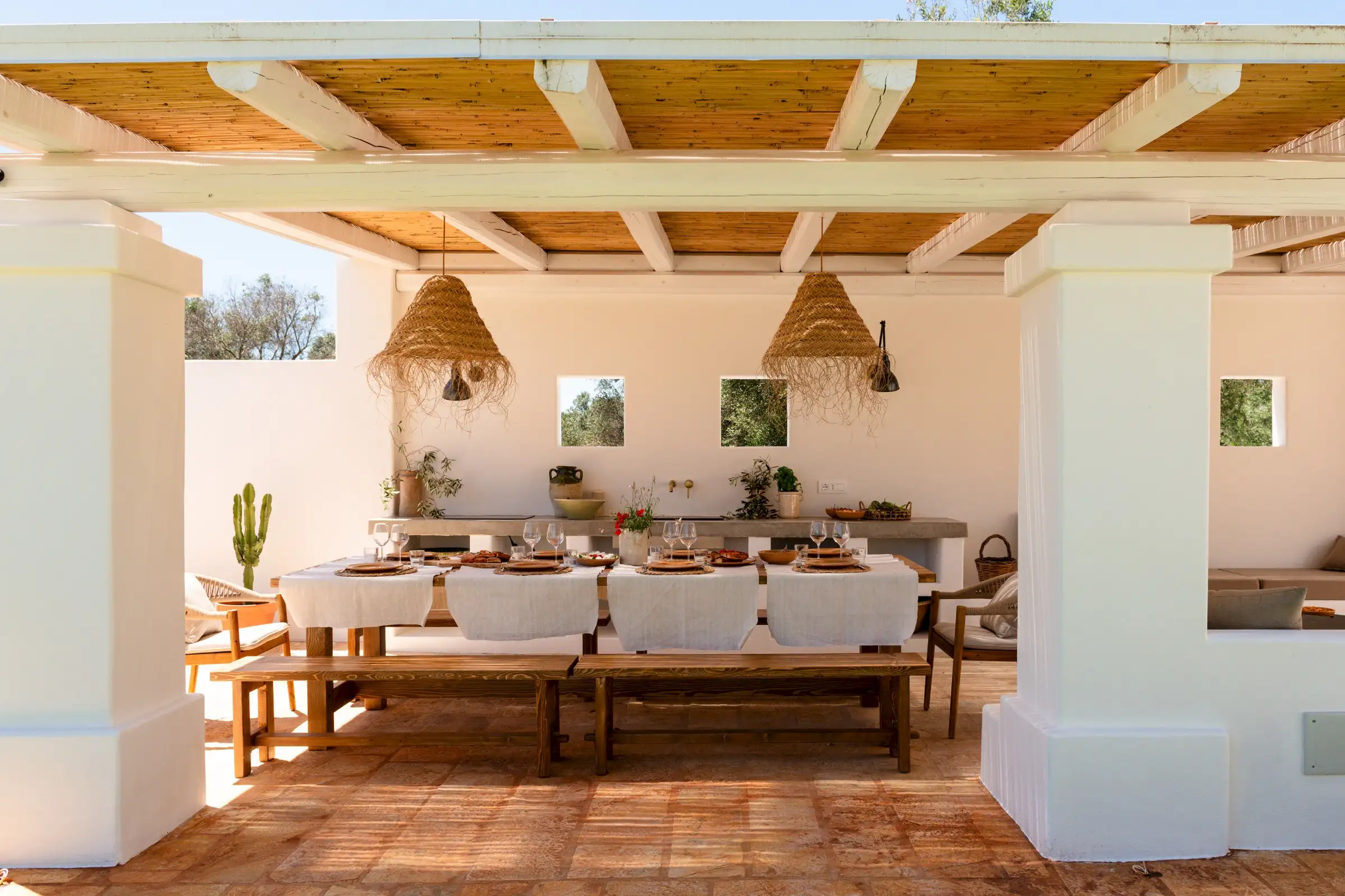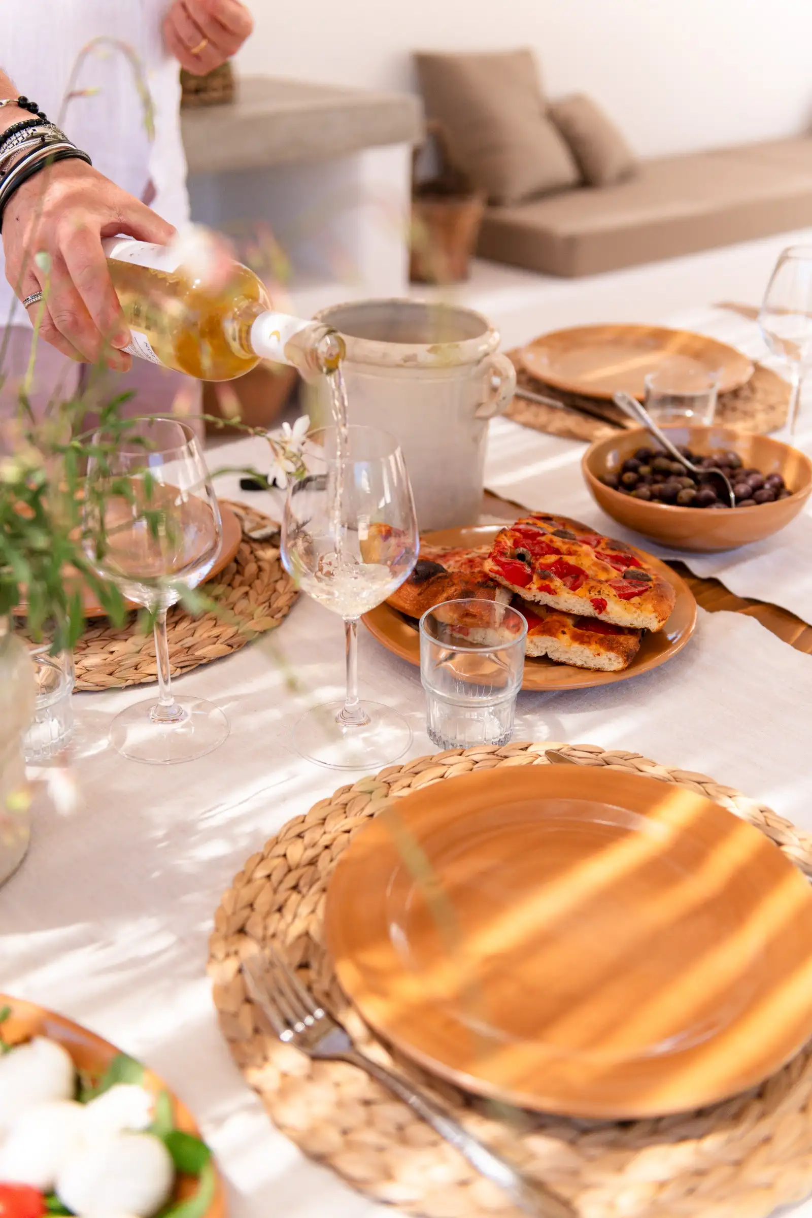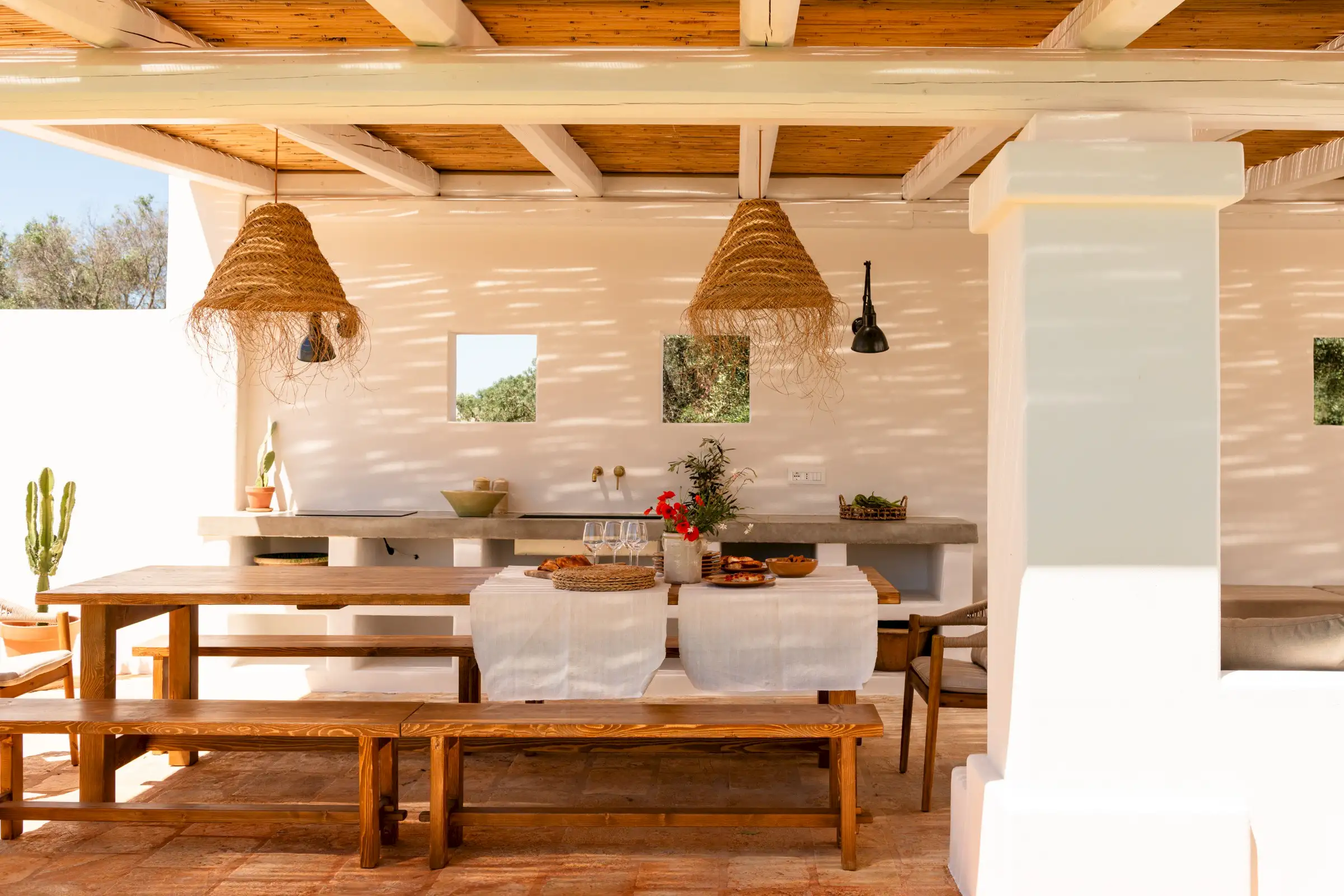 With room to connect with family and friends as well as to find a quiet space to be alone, the real pull of this place is its beautiful connection with nature. Approached along a straight gravel drive through the olive trees, the Mediterranean garden blurs the line between wild and cultivated and guests can snooze in the shade, jump in the pool, dine outside on pizza cooked in the pizza oven and properly reset.