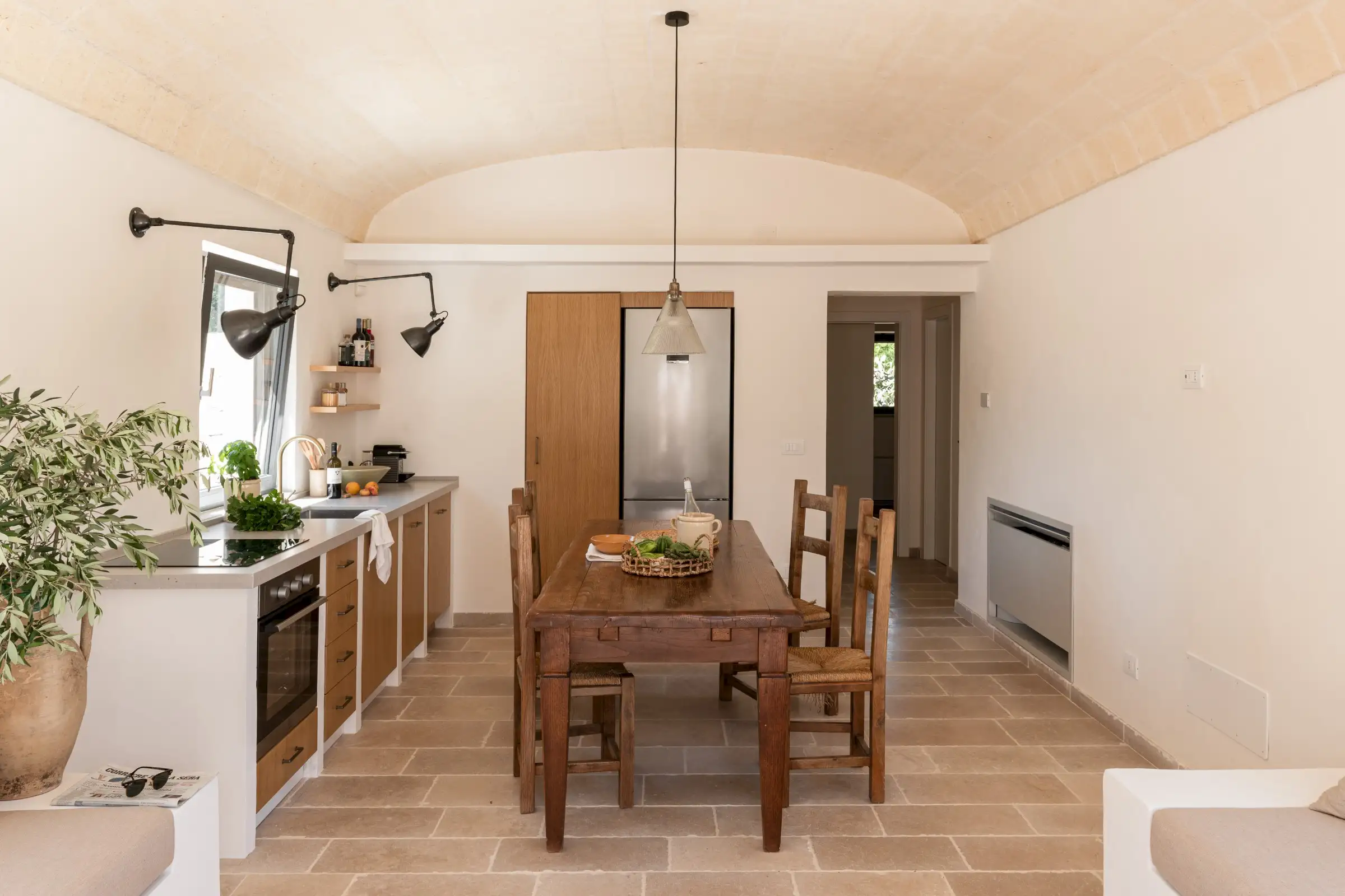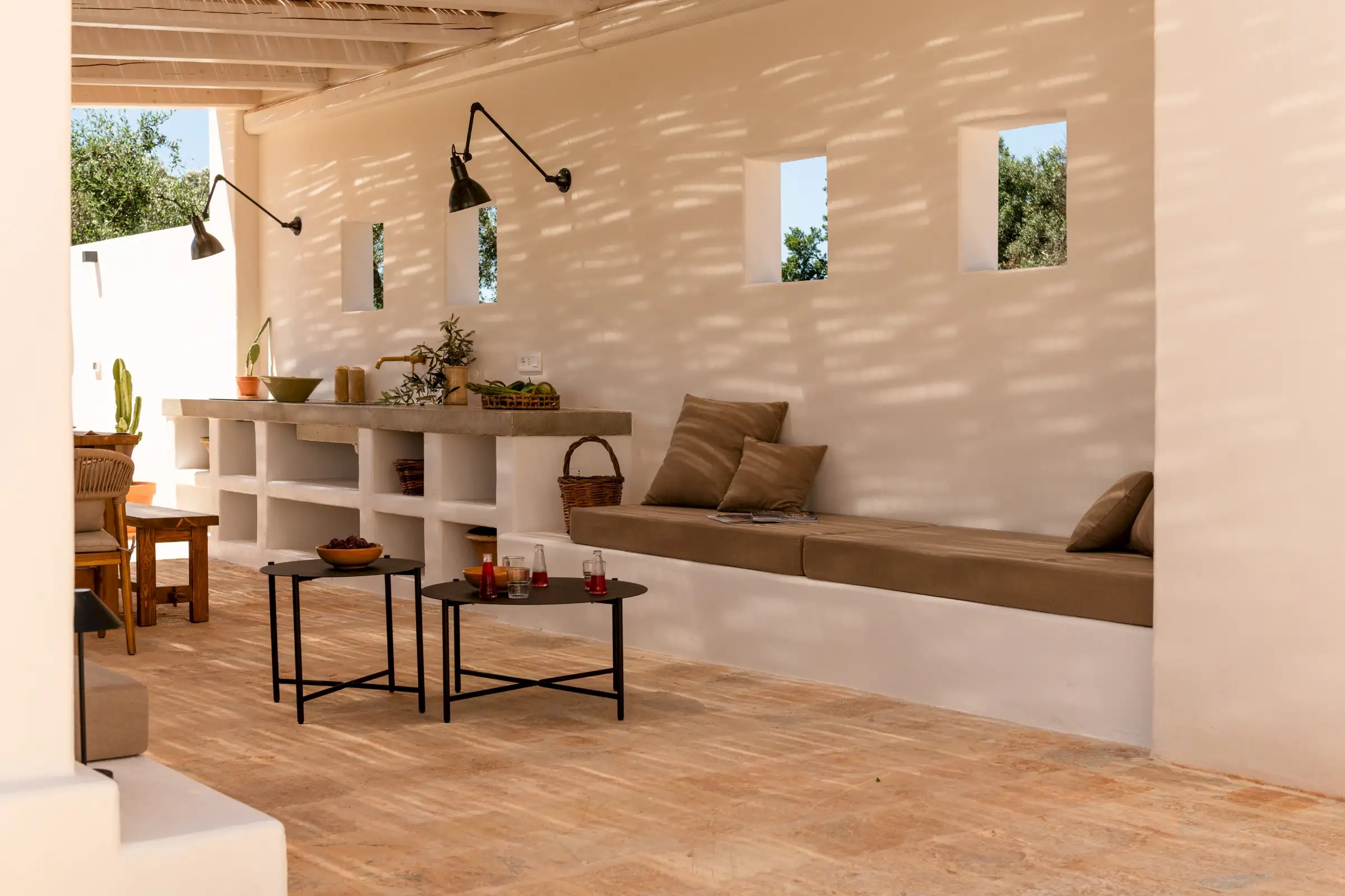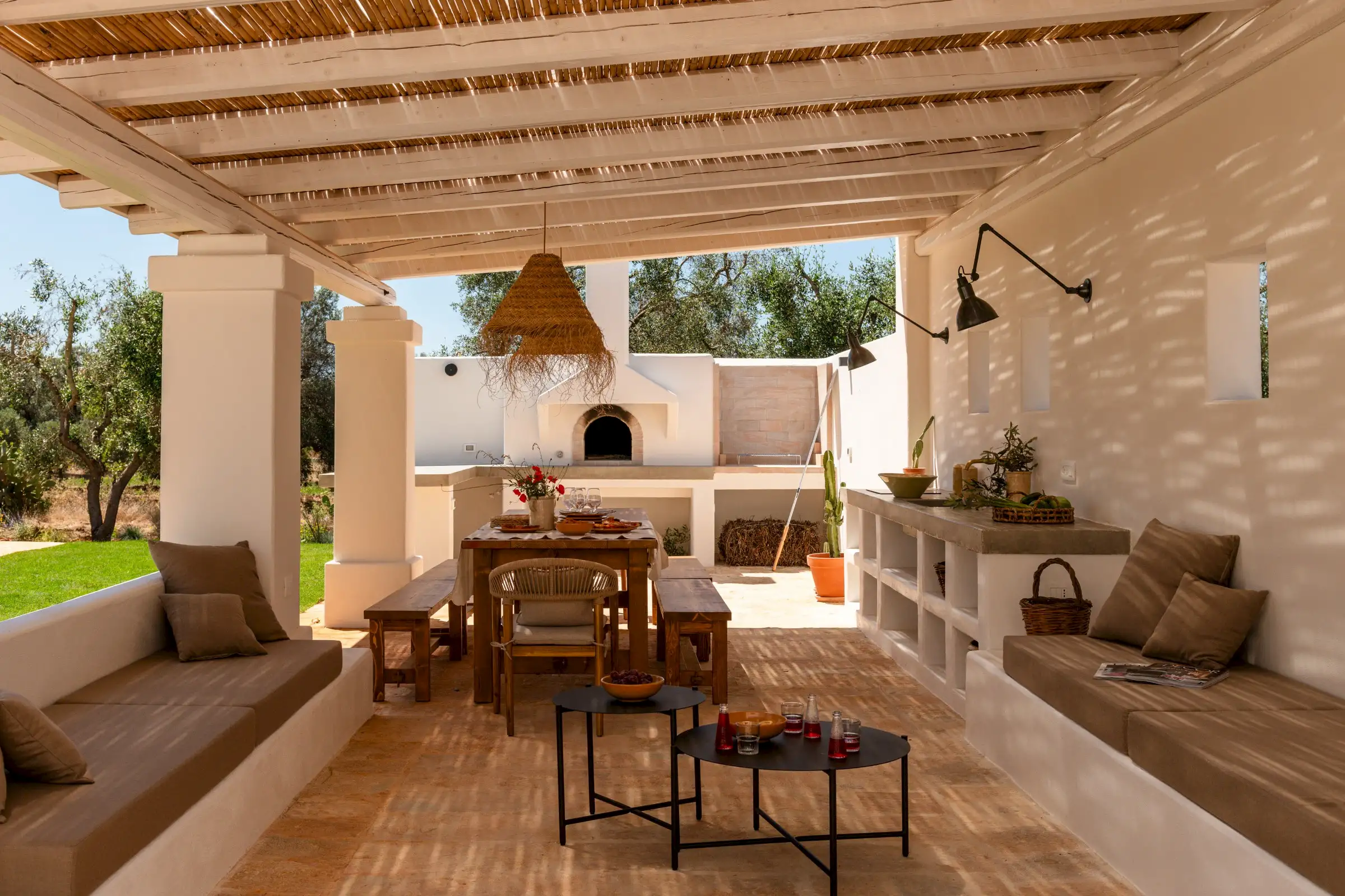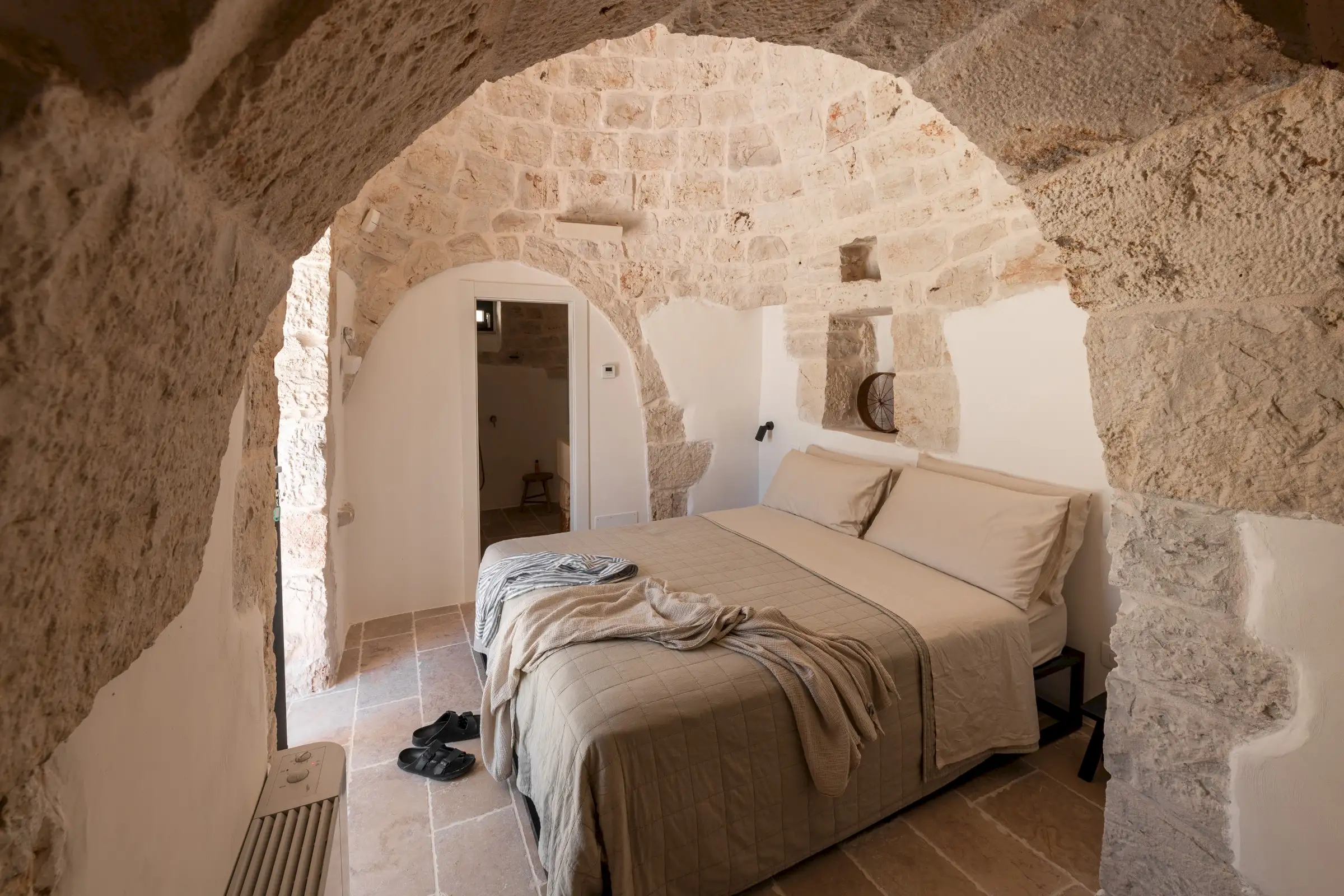 Three of the double en-suite bedrooms occupy the old trulli and the lamia, while the fourth is in the newer space. A beautiful floor made from local stone runs throughout the property, connecting old with new and the buildings with the land they sit on. There is a kitchen and sitting room both inside and out, giving guests reason to come and stay in any season.