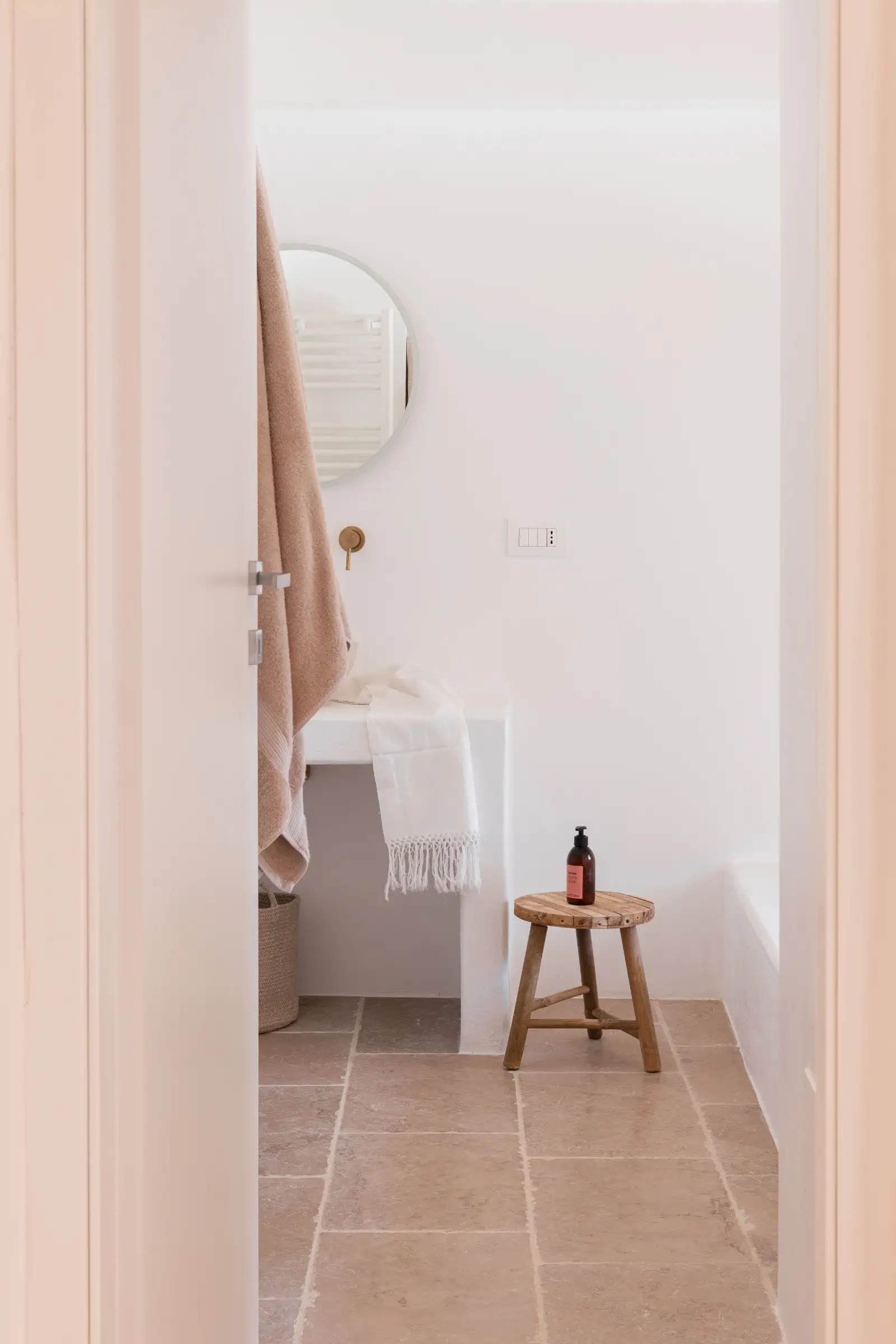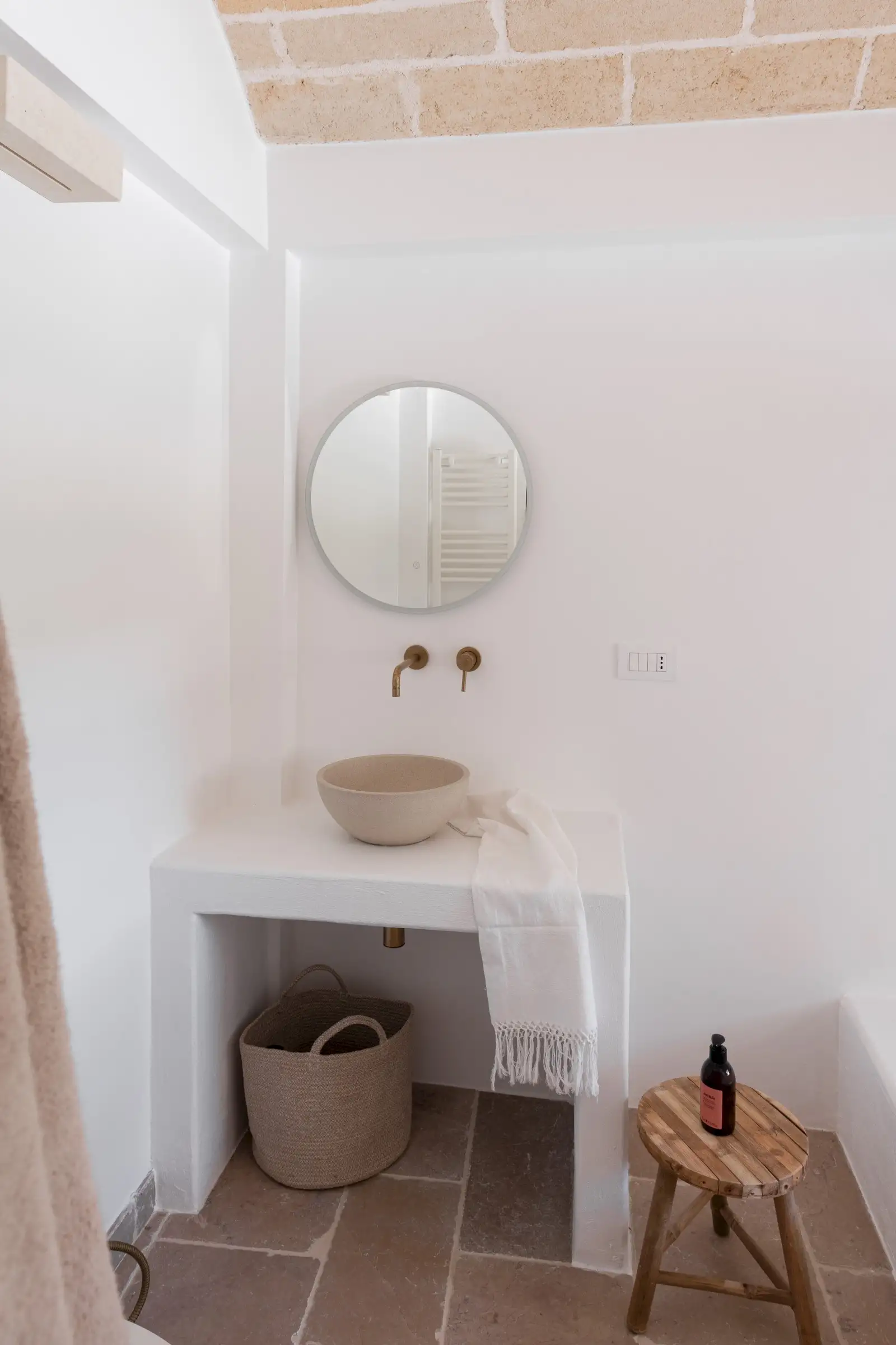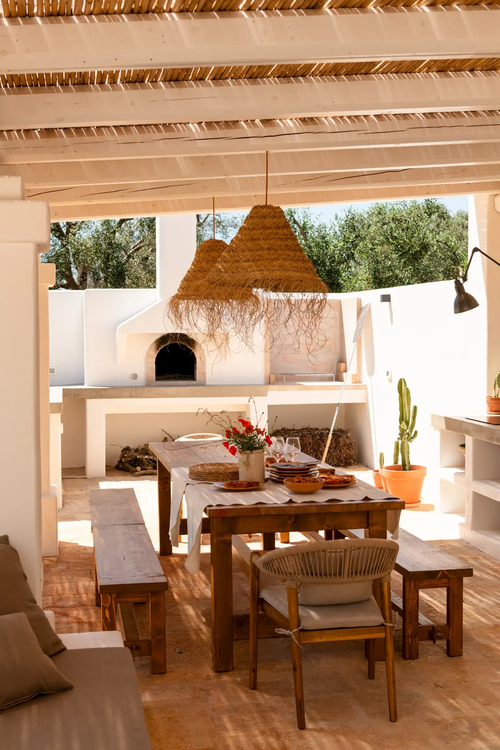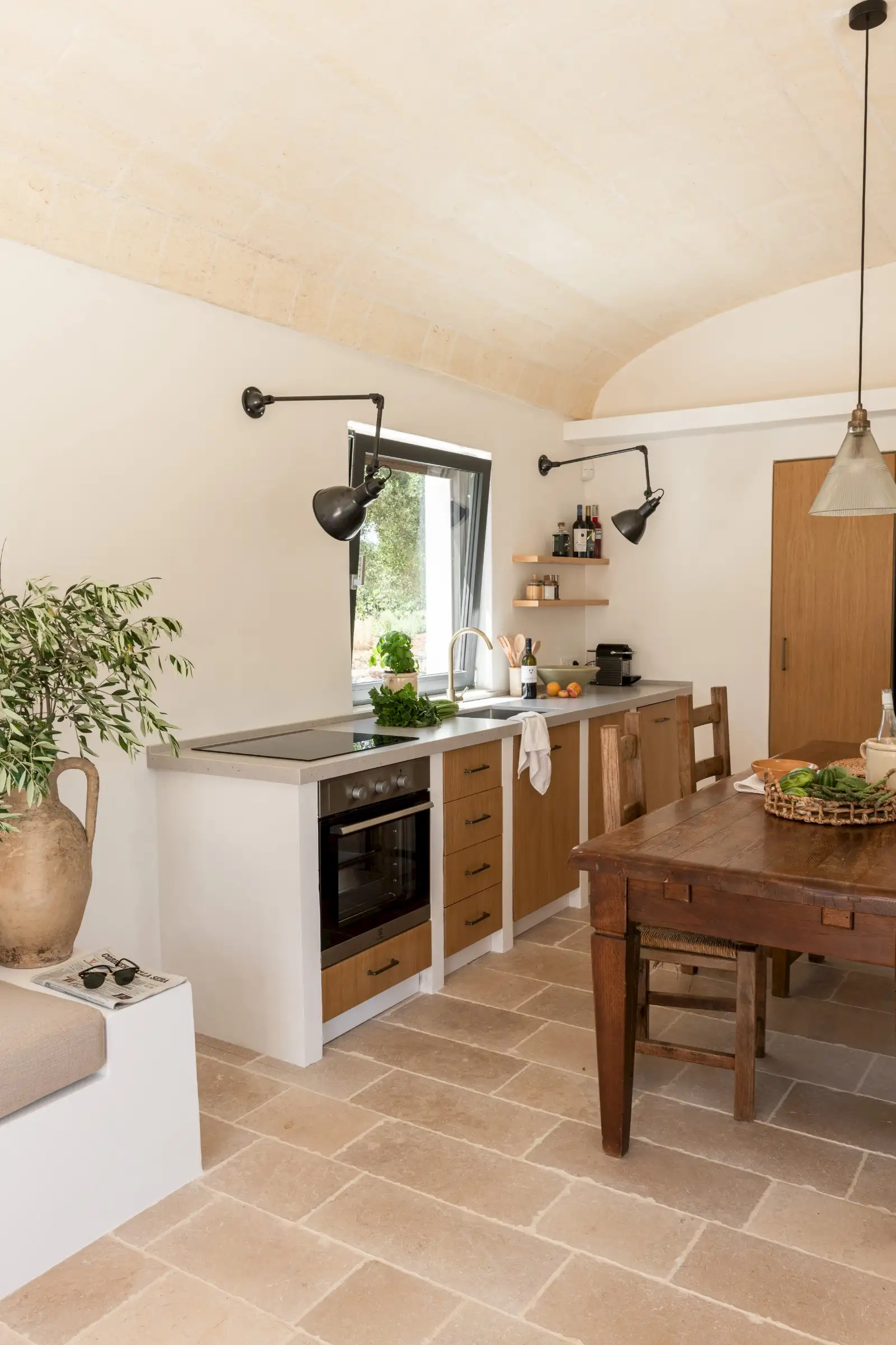 Three of the double en-suite bedrooms occupy the old trulli and the lamia, while the fourth is in the newer space. A beautiful floor made from local stone runs throughout the property, connecting old with new and the buildings with the land they sit on. There is a kitchen and sitting room both inside and out, giving guests reason to come and stay in any season.