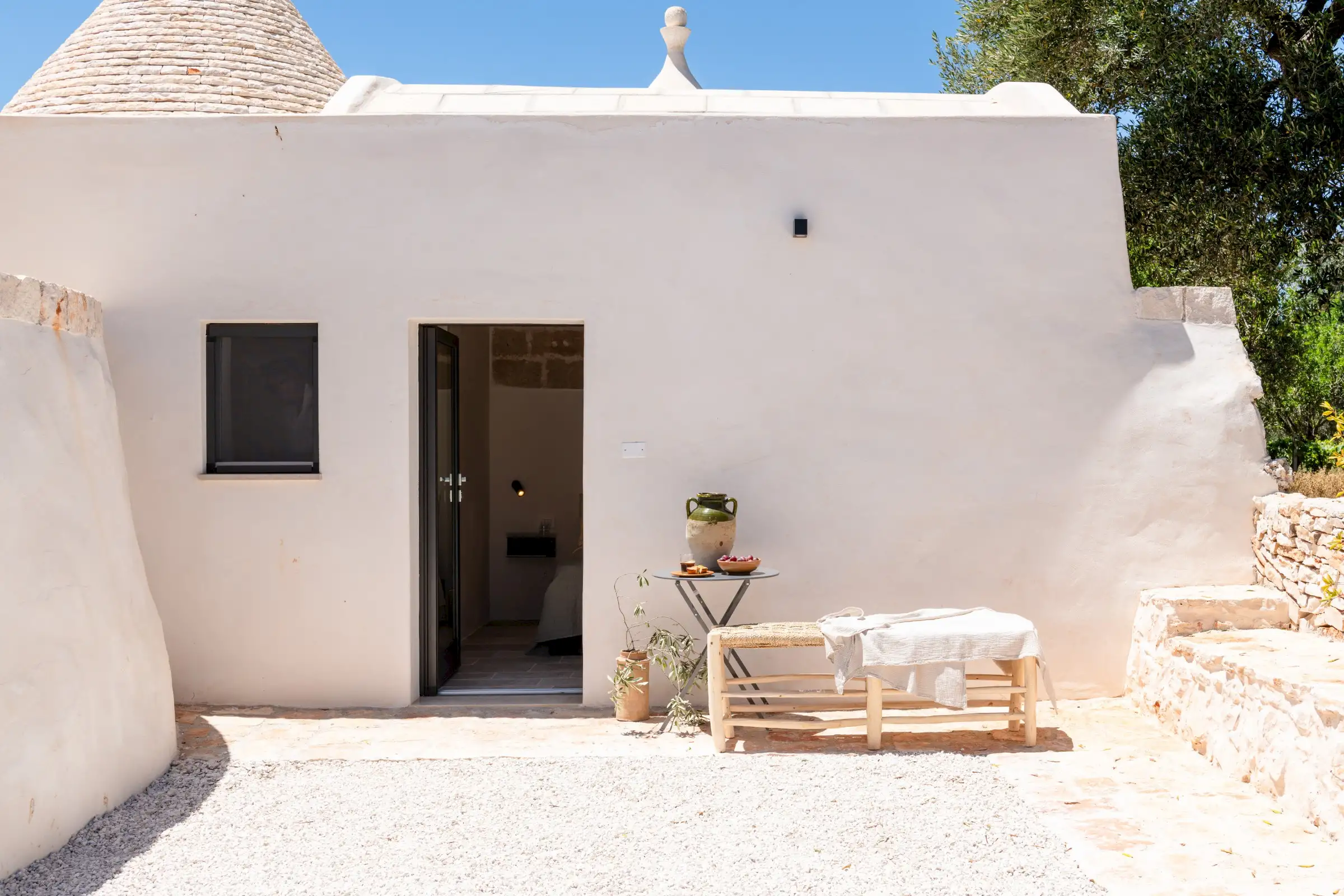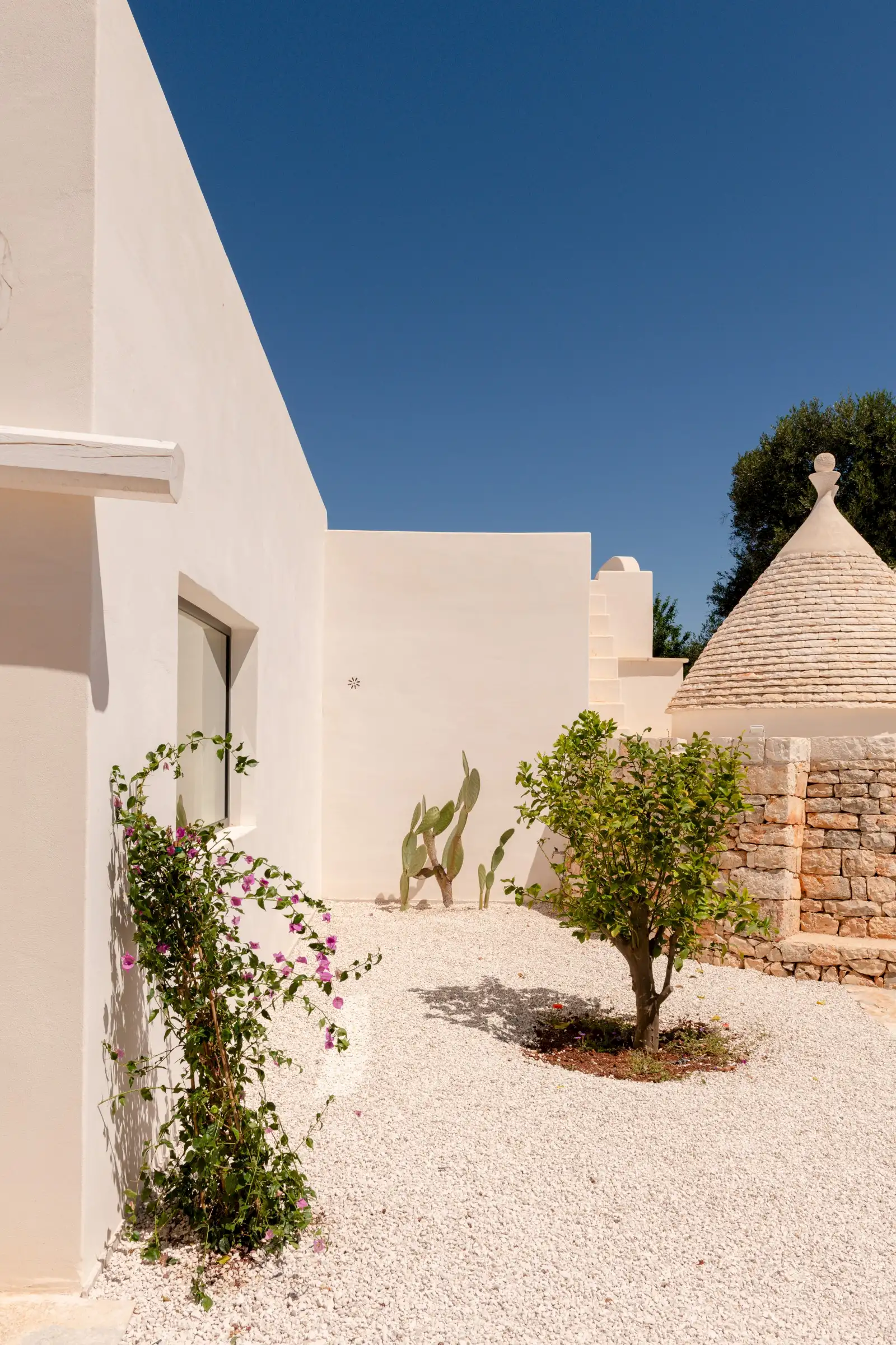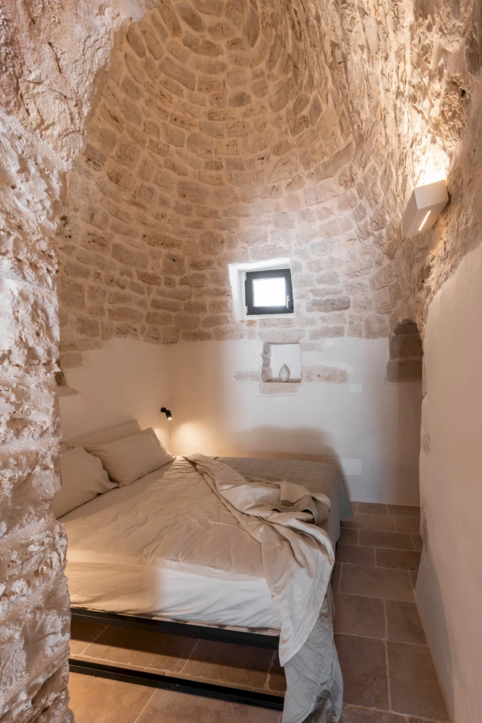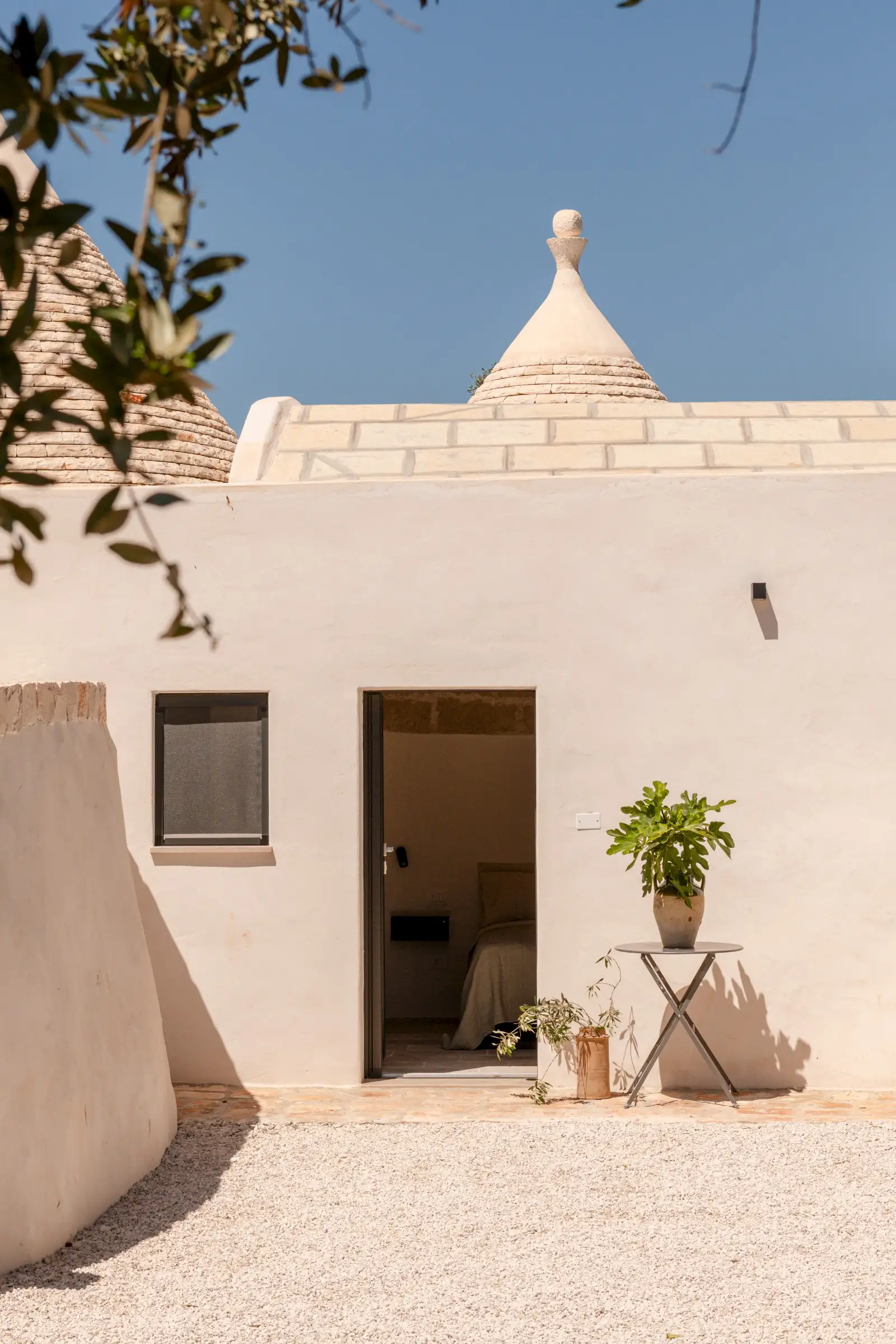 Using best conservation practices and local materials, talented stonemasons have restored the old buildings, including a trullo that dates to the 18th century. The new building was designed to complement the old, and both blend effortlessly together, around a quiet inner courtyard.