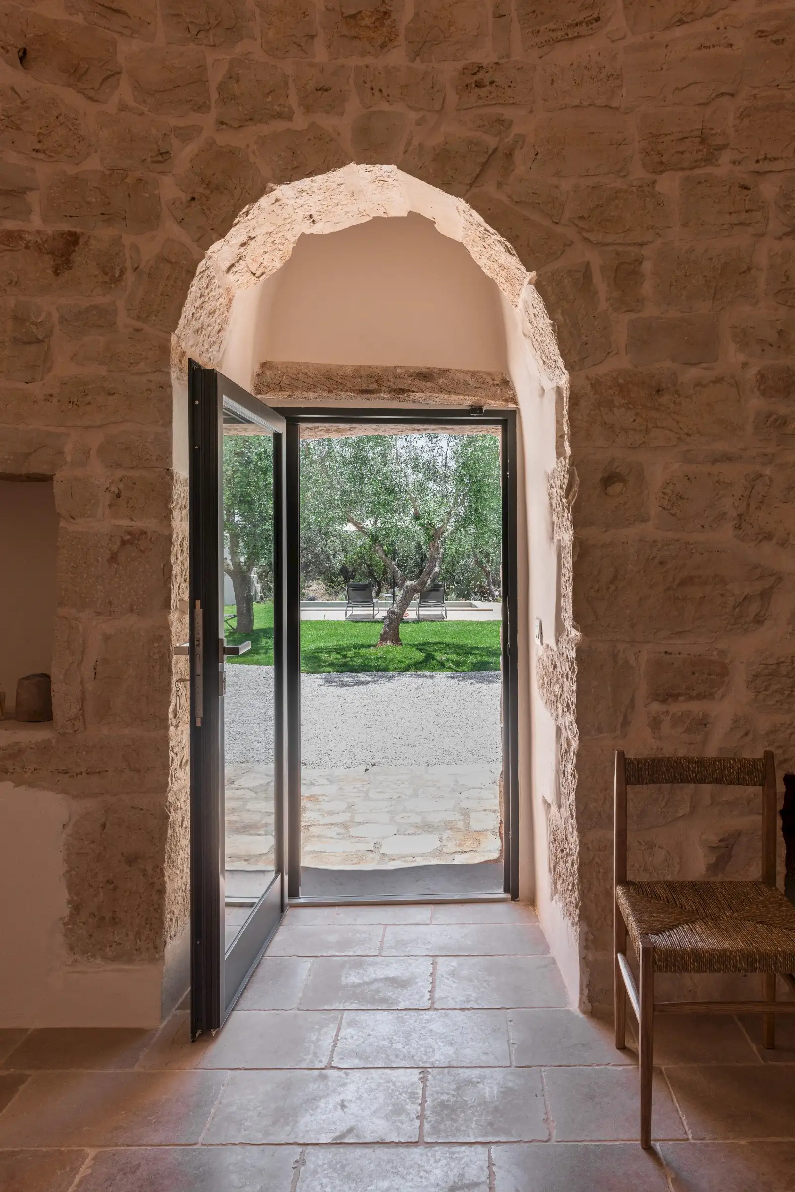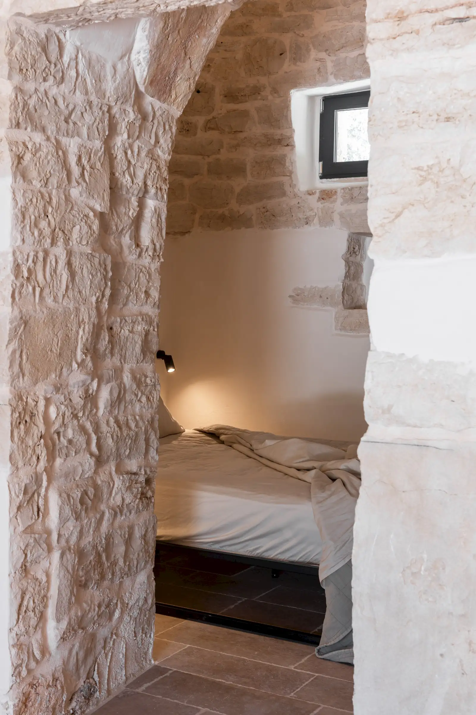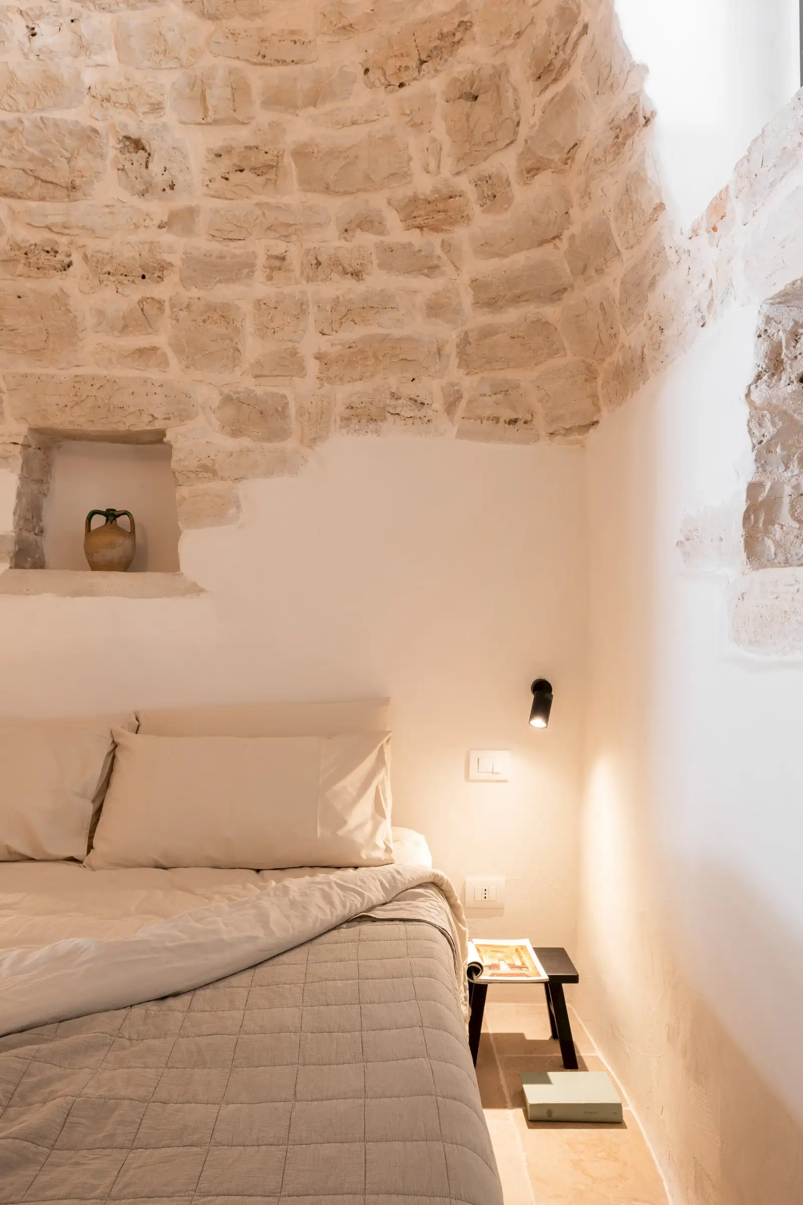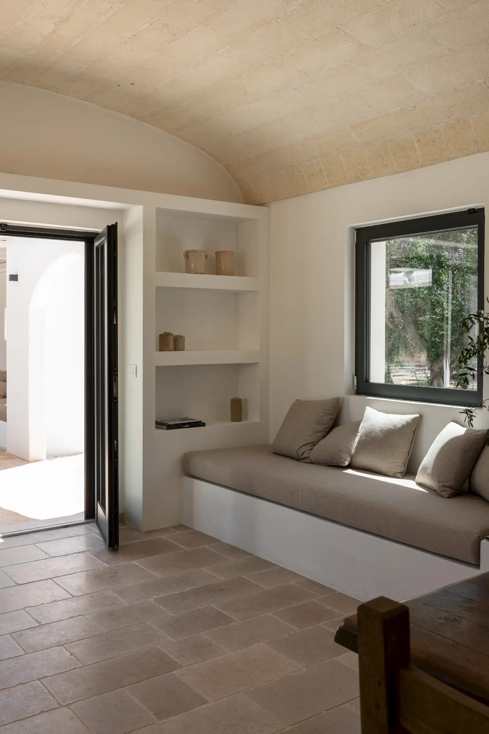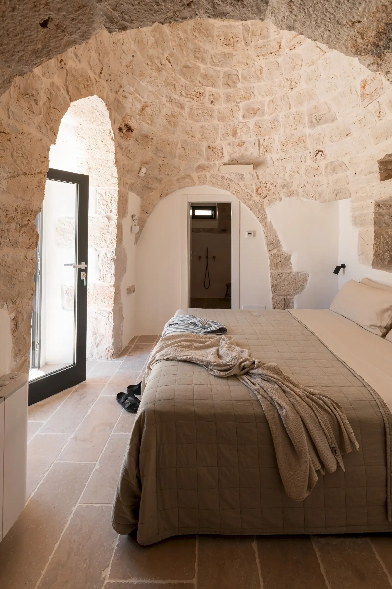 Using best conservation practices and local materials, talented stonemasons have restored the old buildings, including a trullo that dates to the 18th century. The new building was designed to complement the old, and both blend effortlessly together, around a quiet inner courtyard.