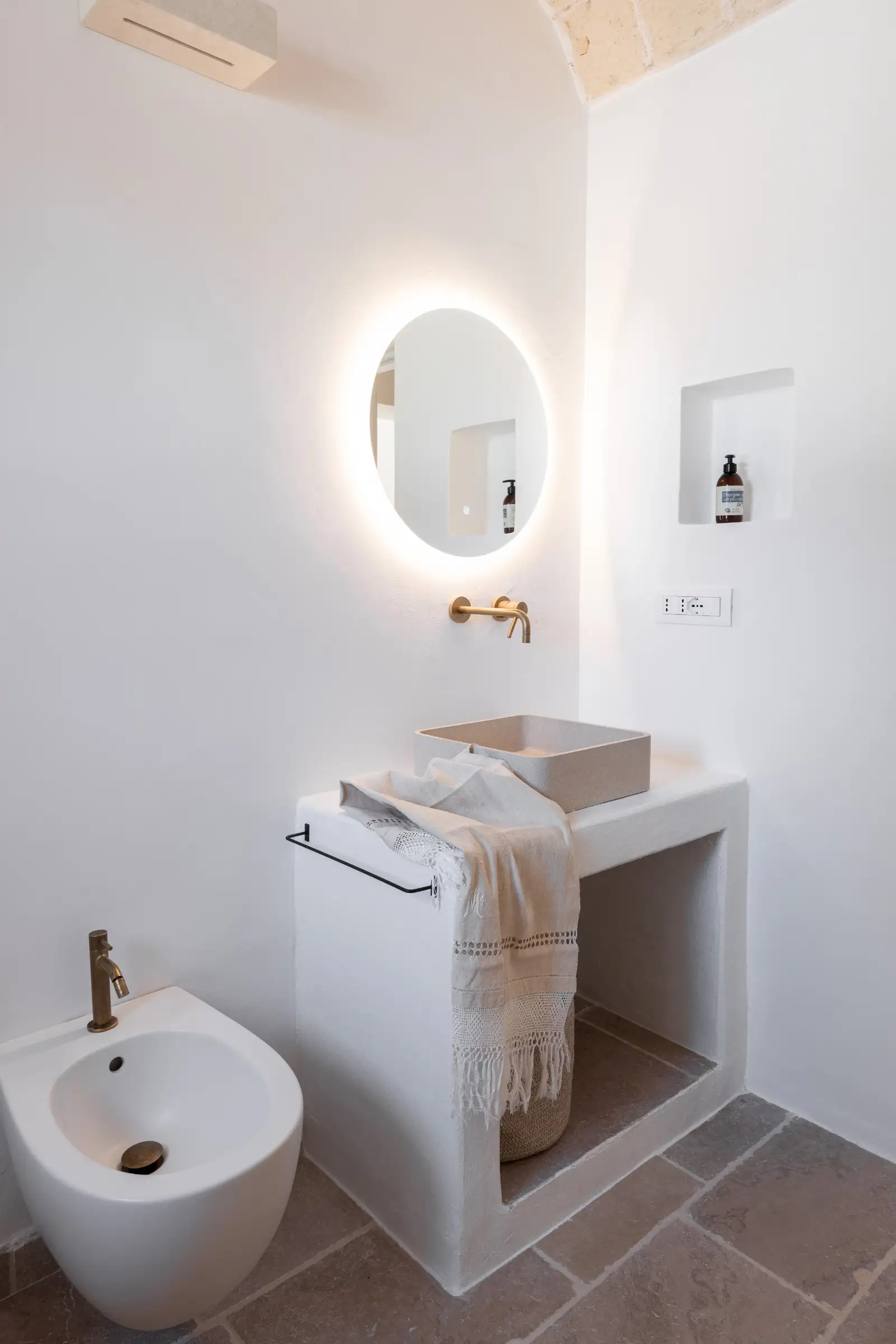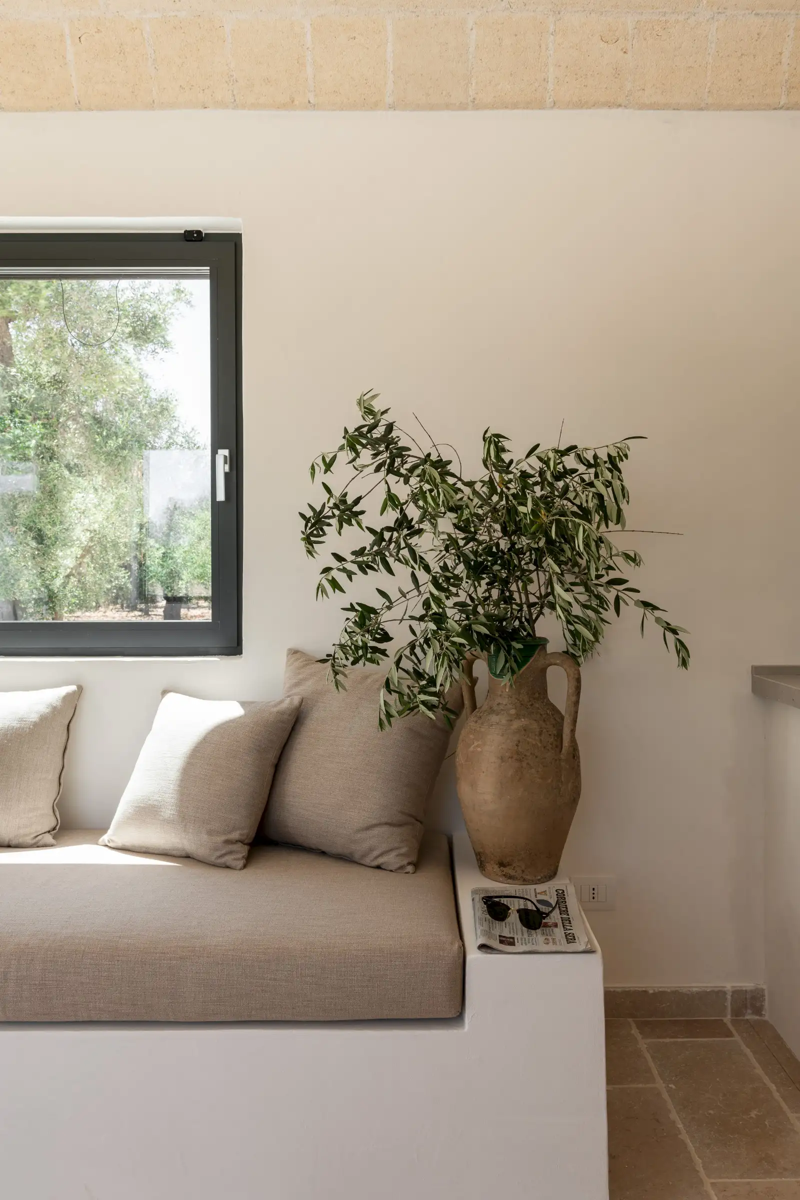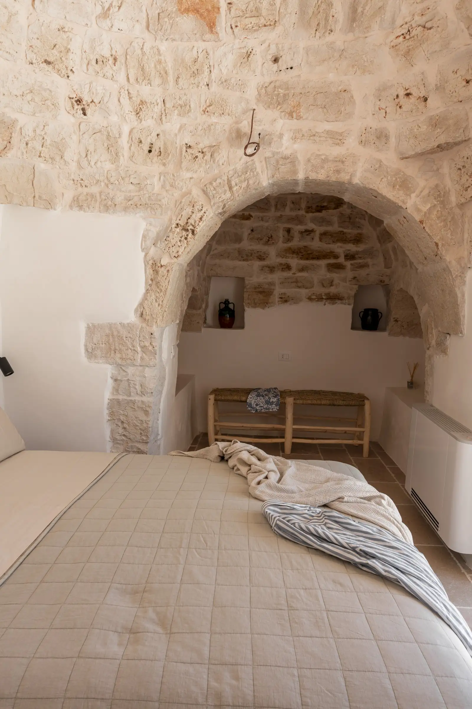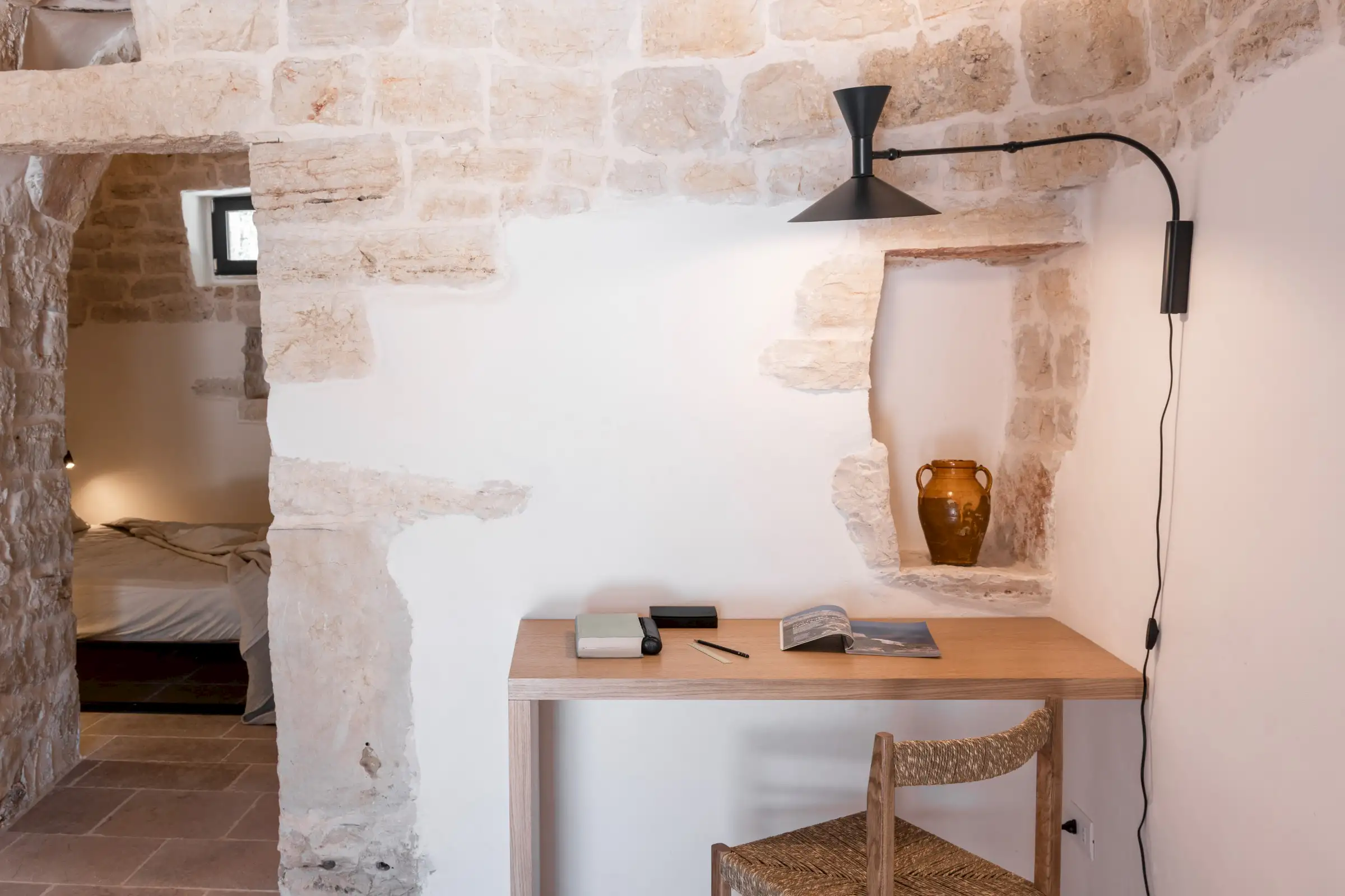 Using best conservation practices and local materials, talented stonemasons have restored the old buildings, including a trullo that dates to the 18th century. The new building was designed to complement the old, and both blend effortlessly together, around a quiet inner courtyard.