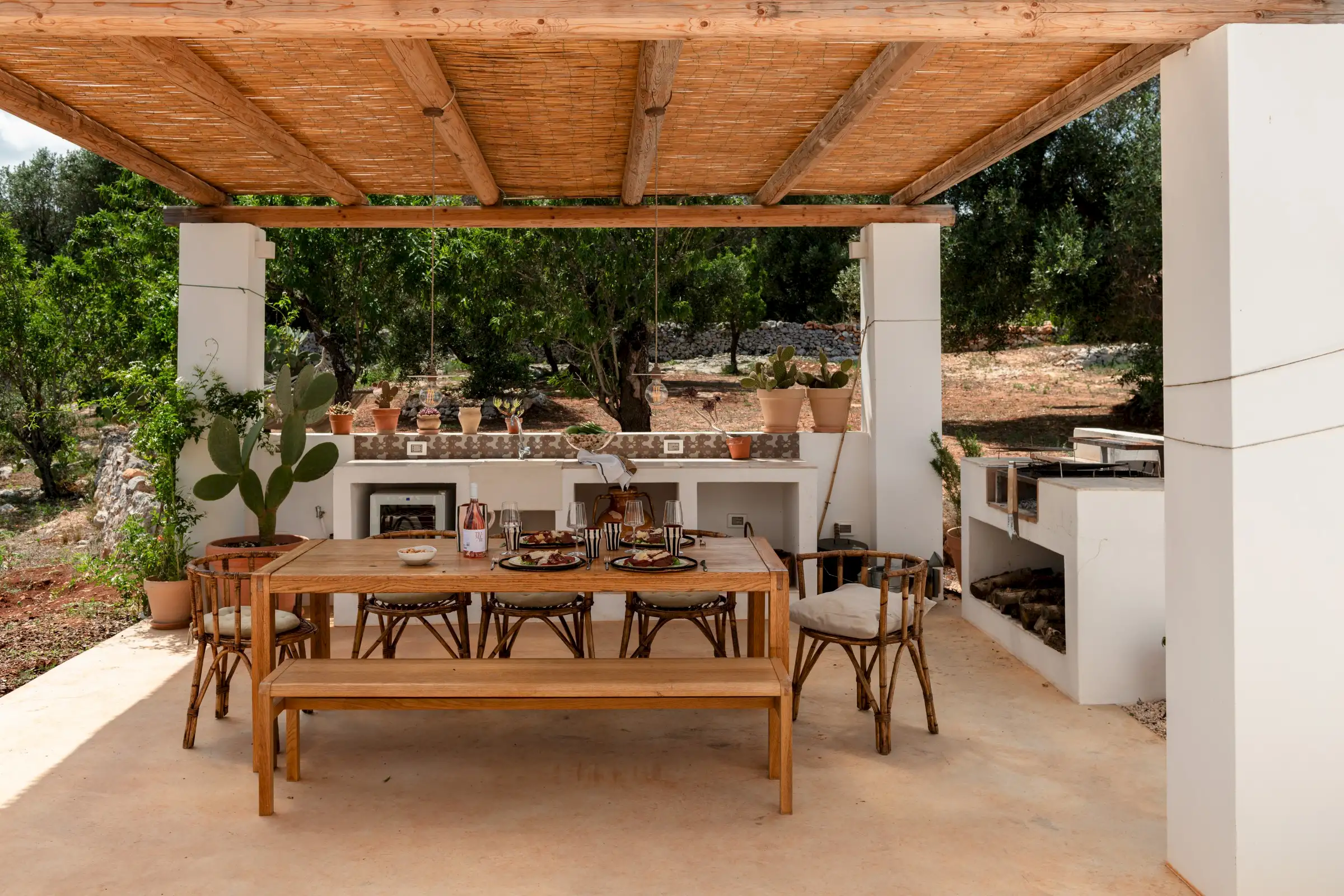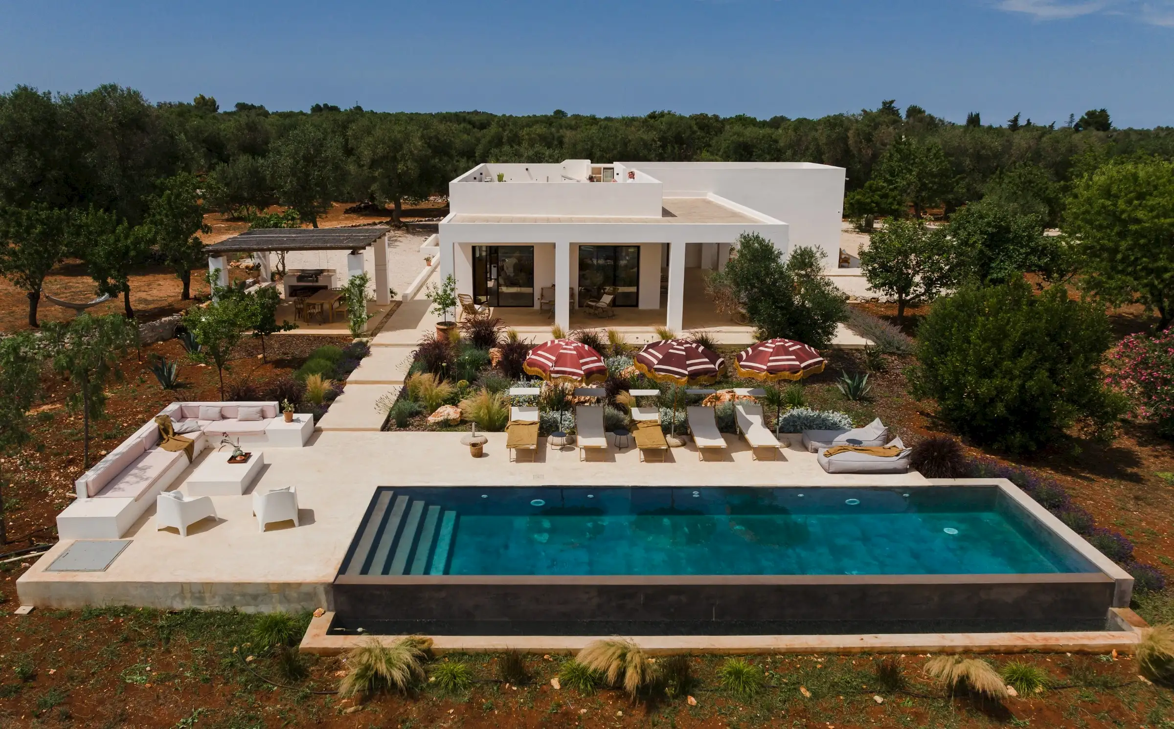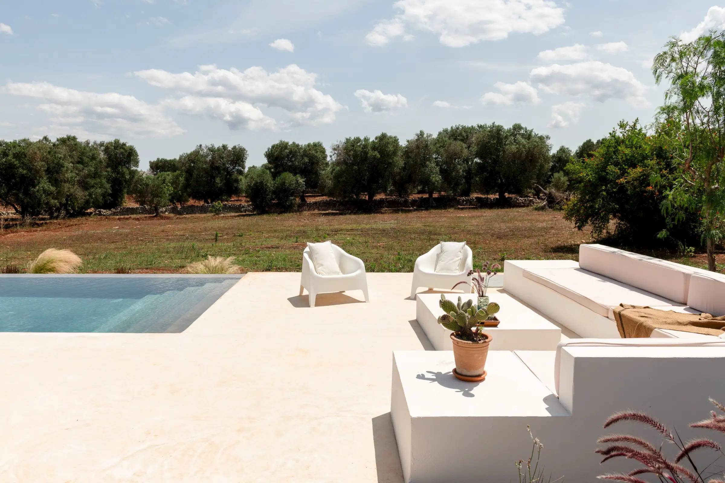Tucked into olive groves halfway between Carovigno and Ostuni, two of the pretty white towns of the Itria Valley, this house for eight offers a calming and stylish retreat.