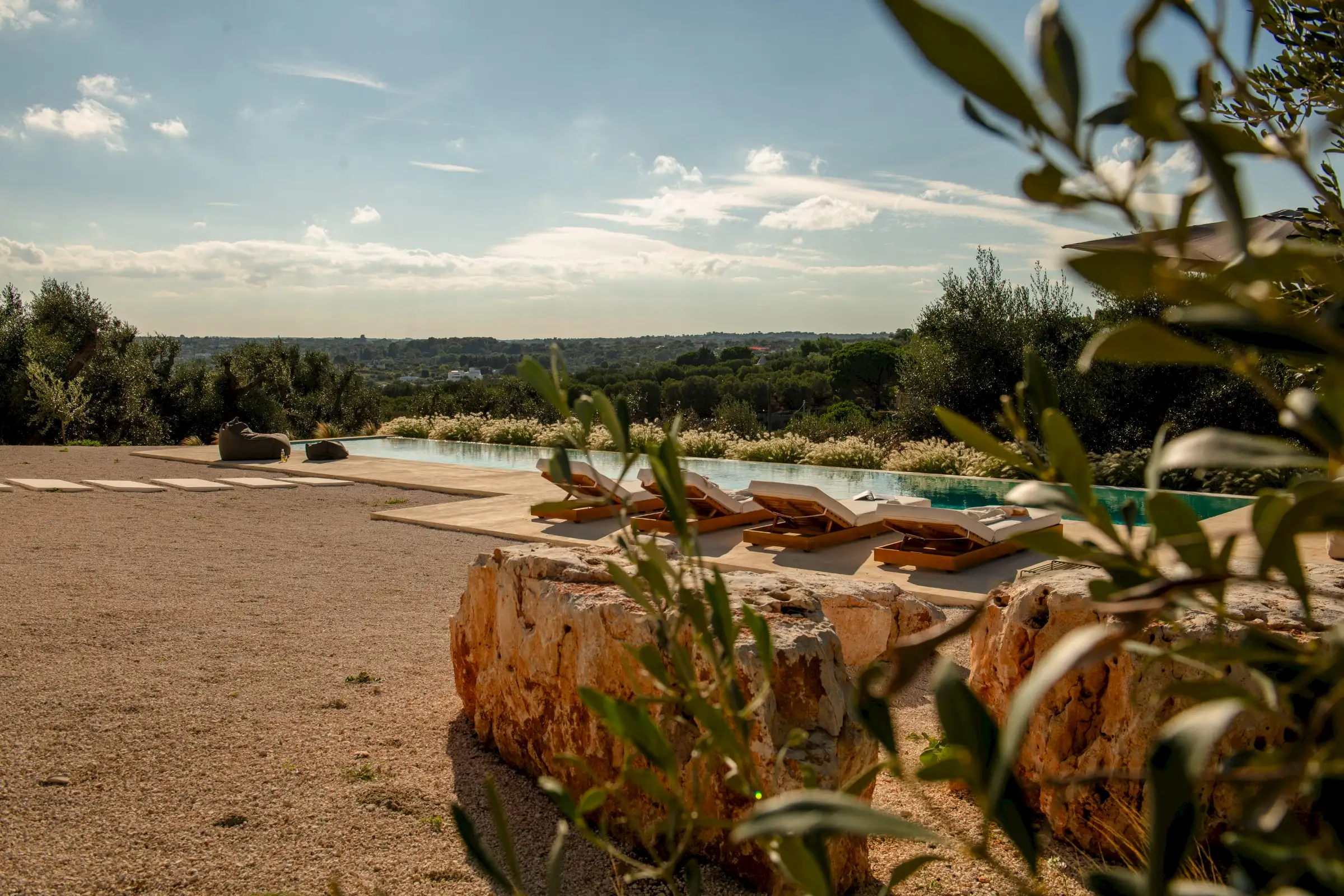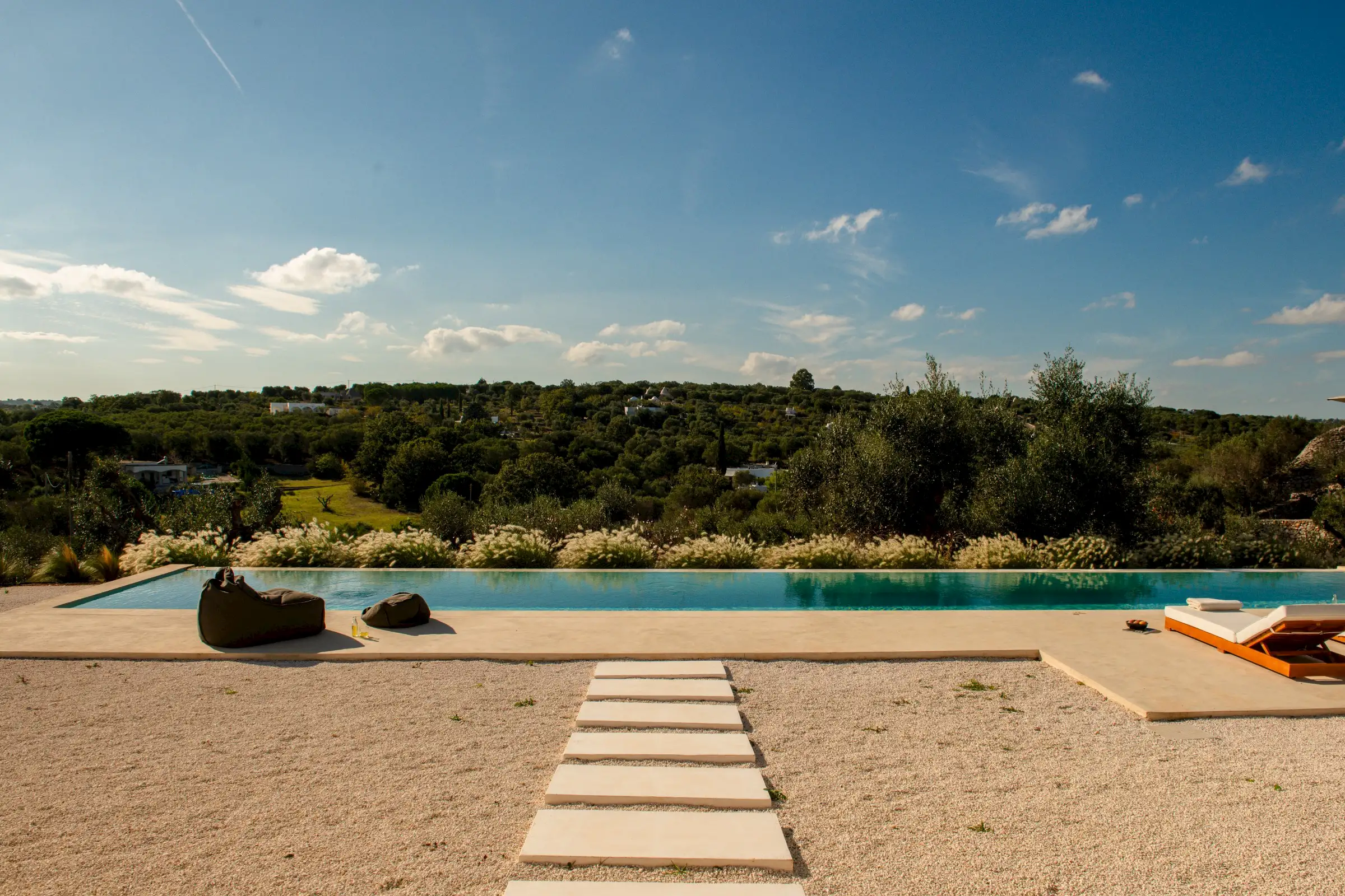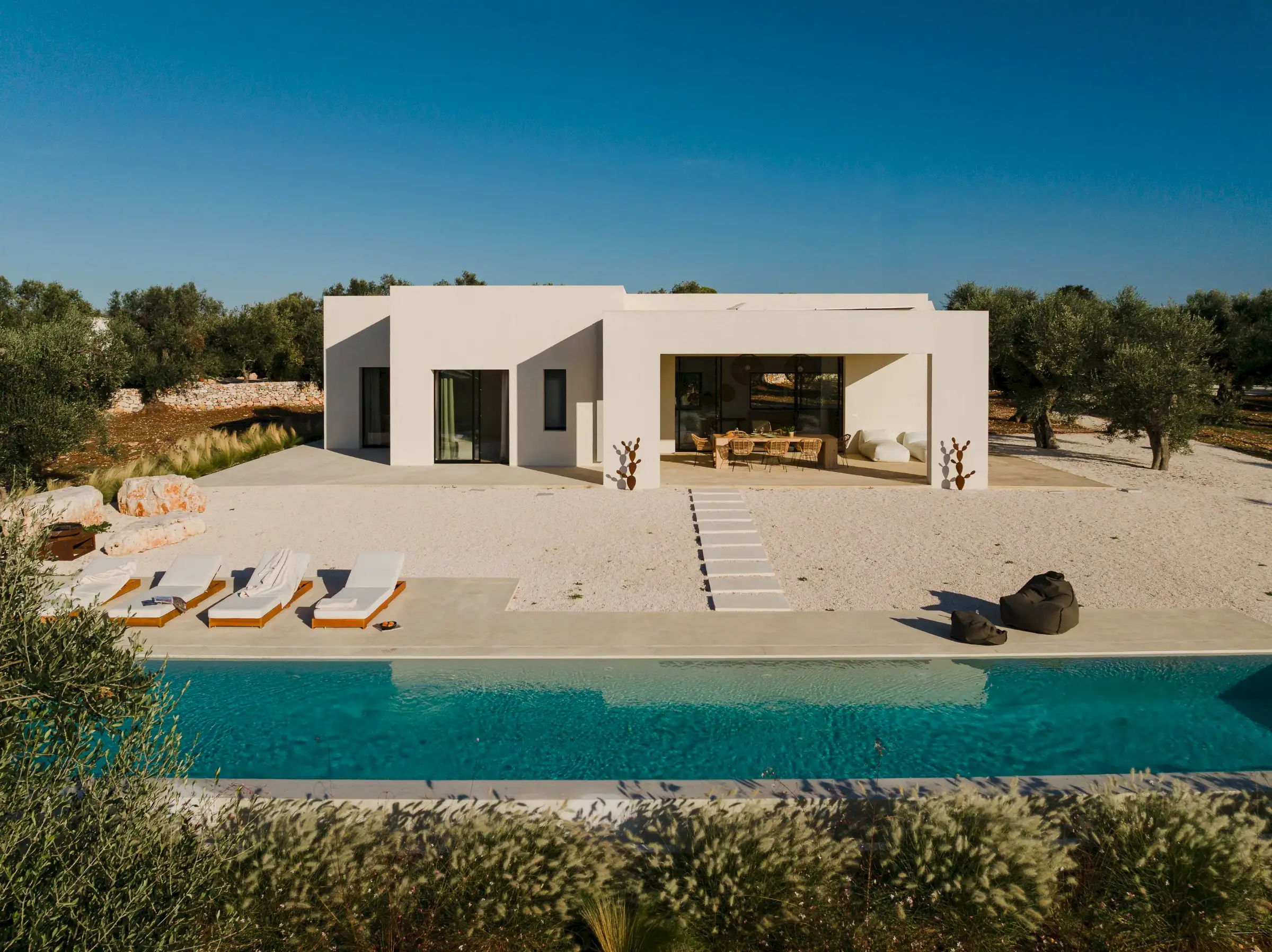 Le Stipe is a large, white modern villa halfway between Ostuni and Cisterno, in this particularly pretty, olive tree-strewn part of Puglia. While there are numerous contemporary properties in the Itria Valley, few are finished as well as this one.