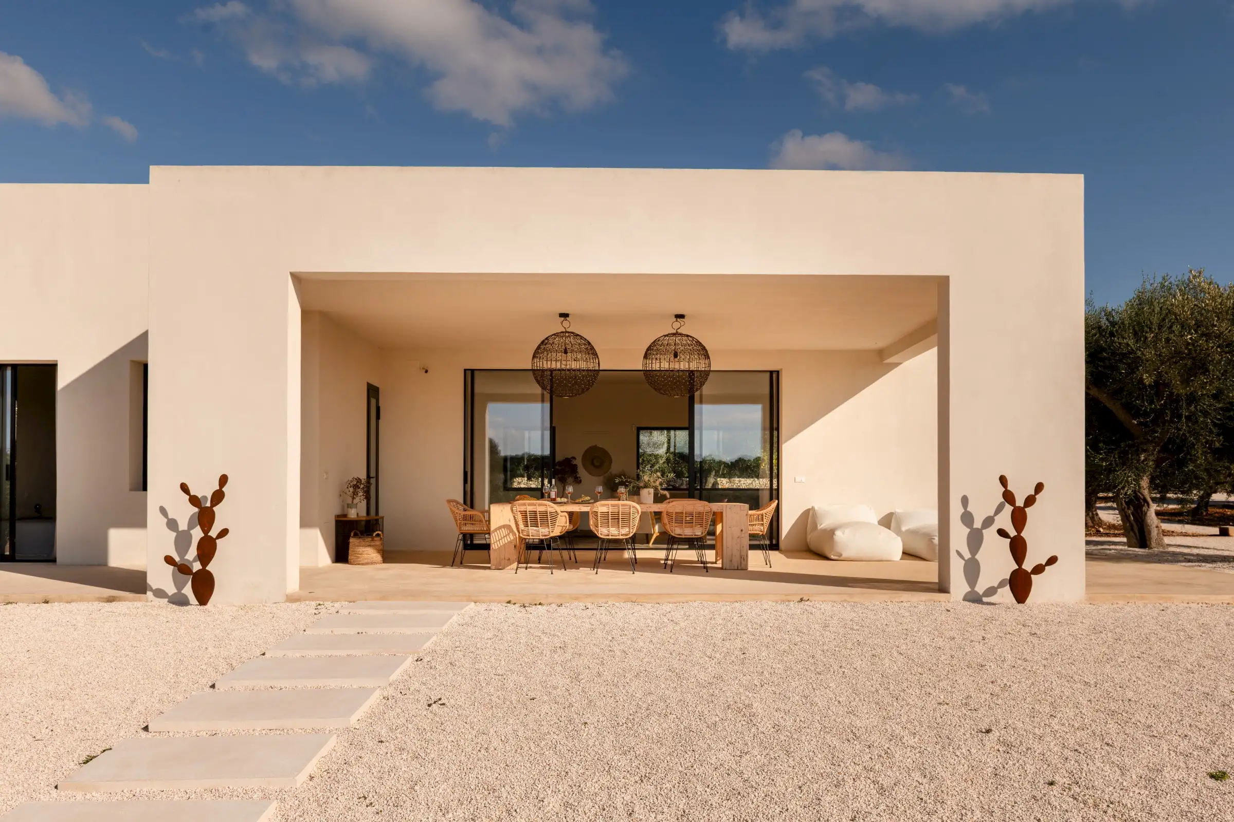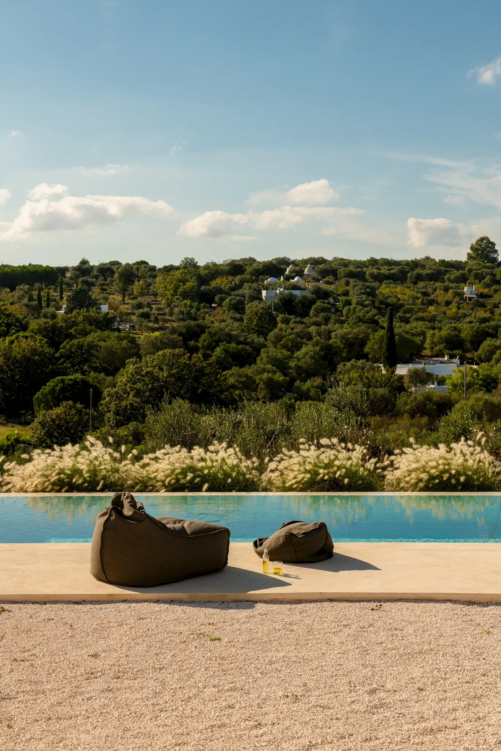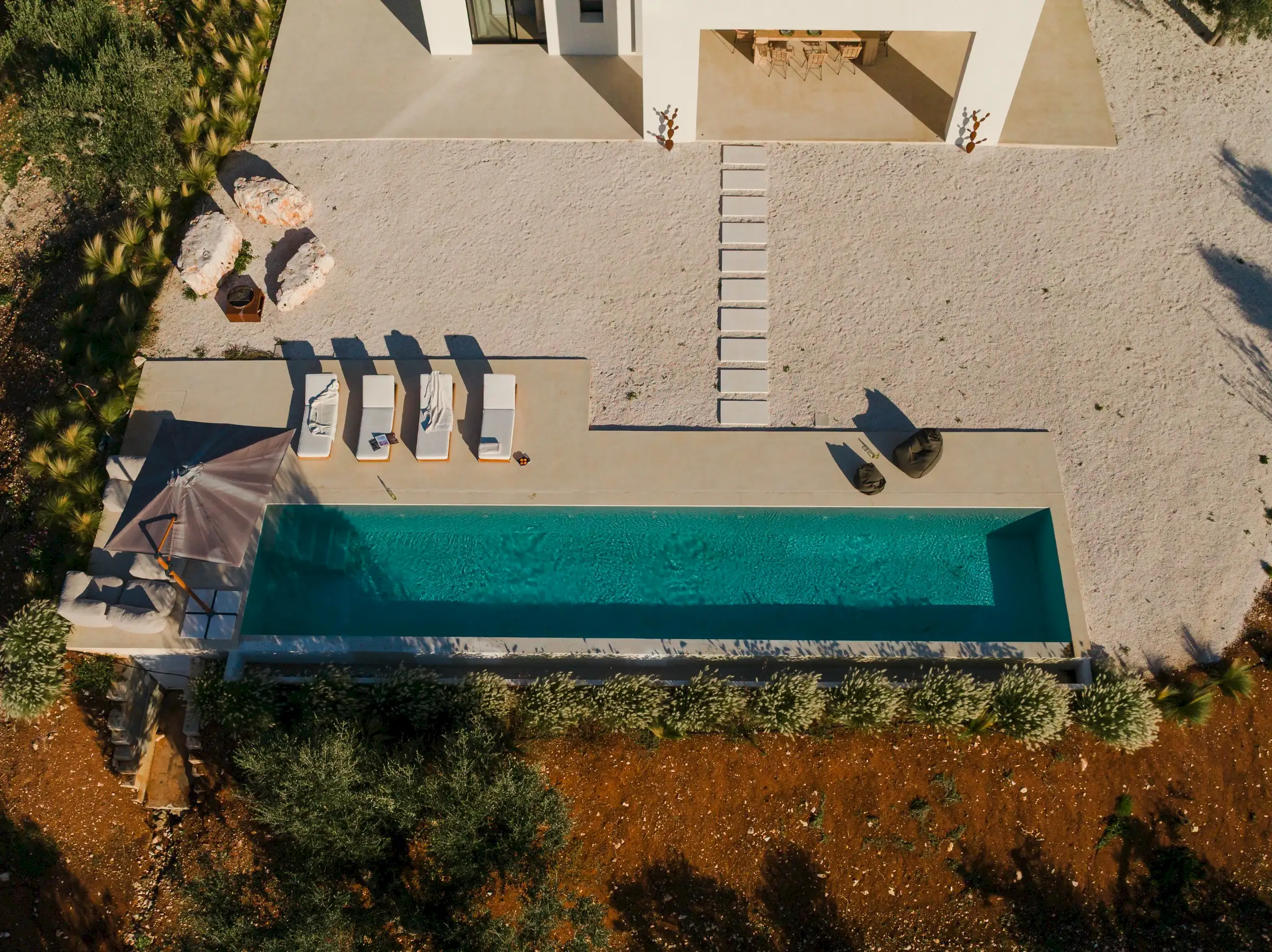 Le Stipe is a large, white modern villa halfway between Ostuni and Cisterno, in this particularly pretty, olive tree-strewn part of Puglia. While there are numerous contemporary properties in the Itria Valley, few are finished as well as this one.