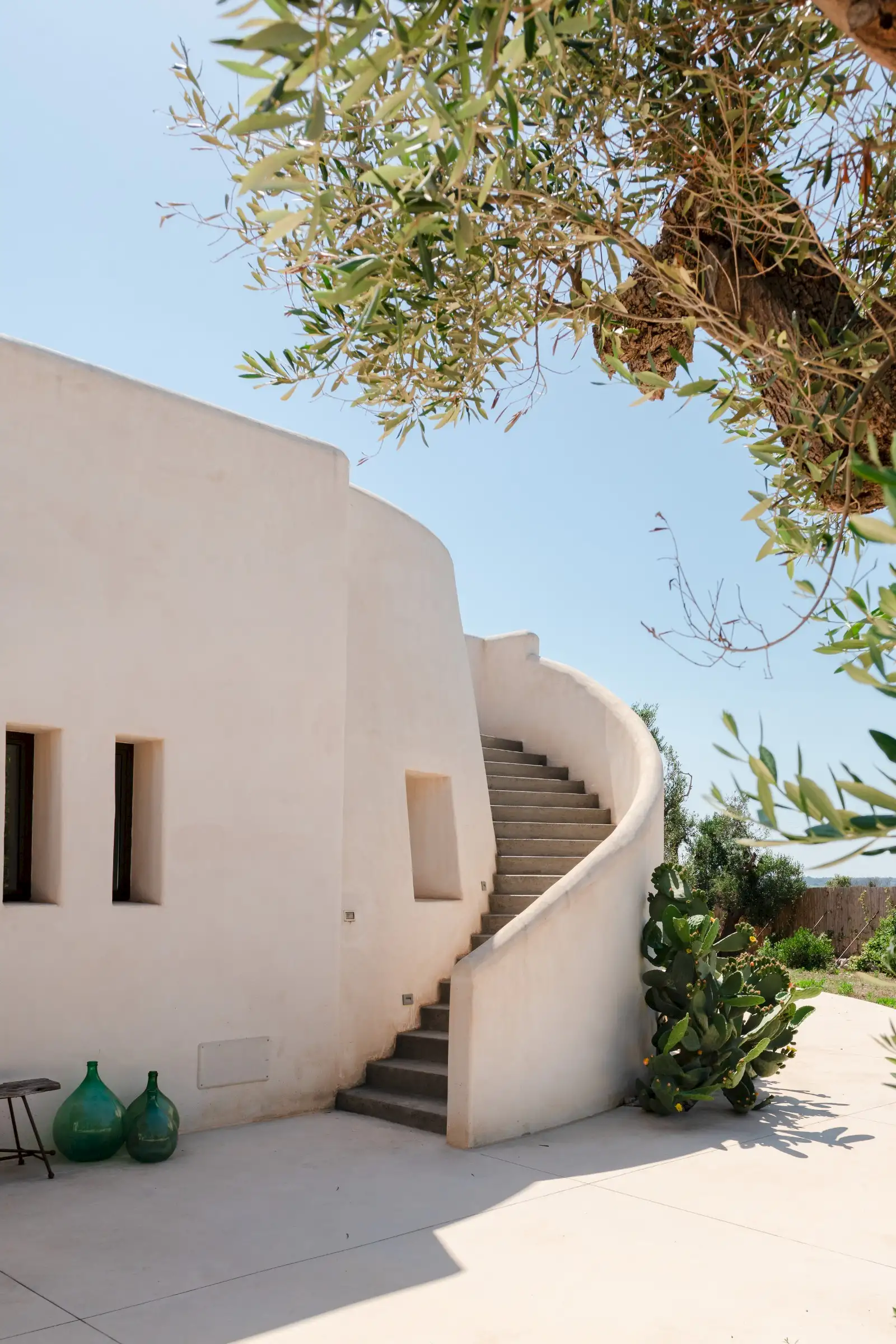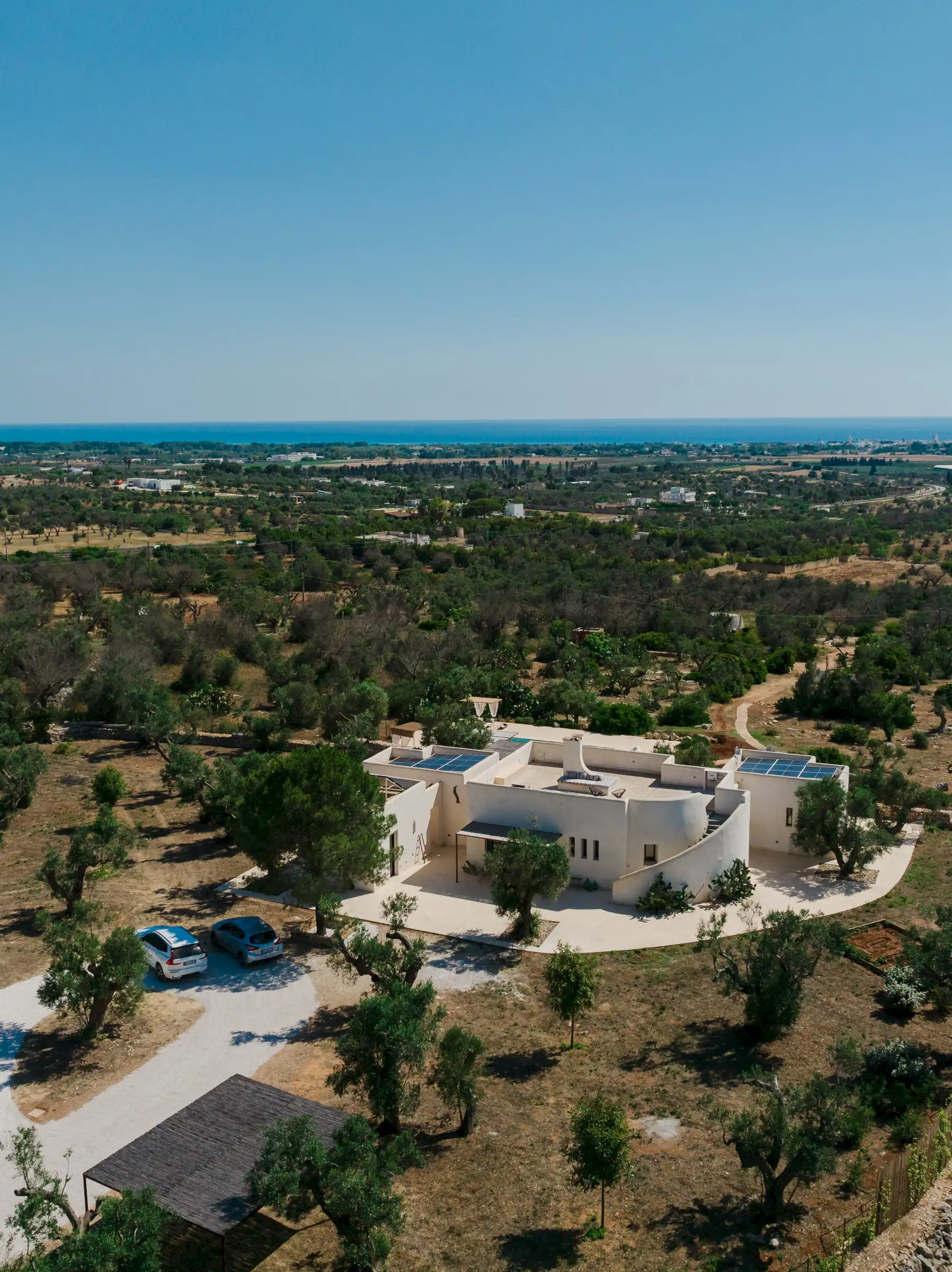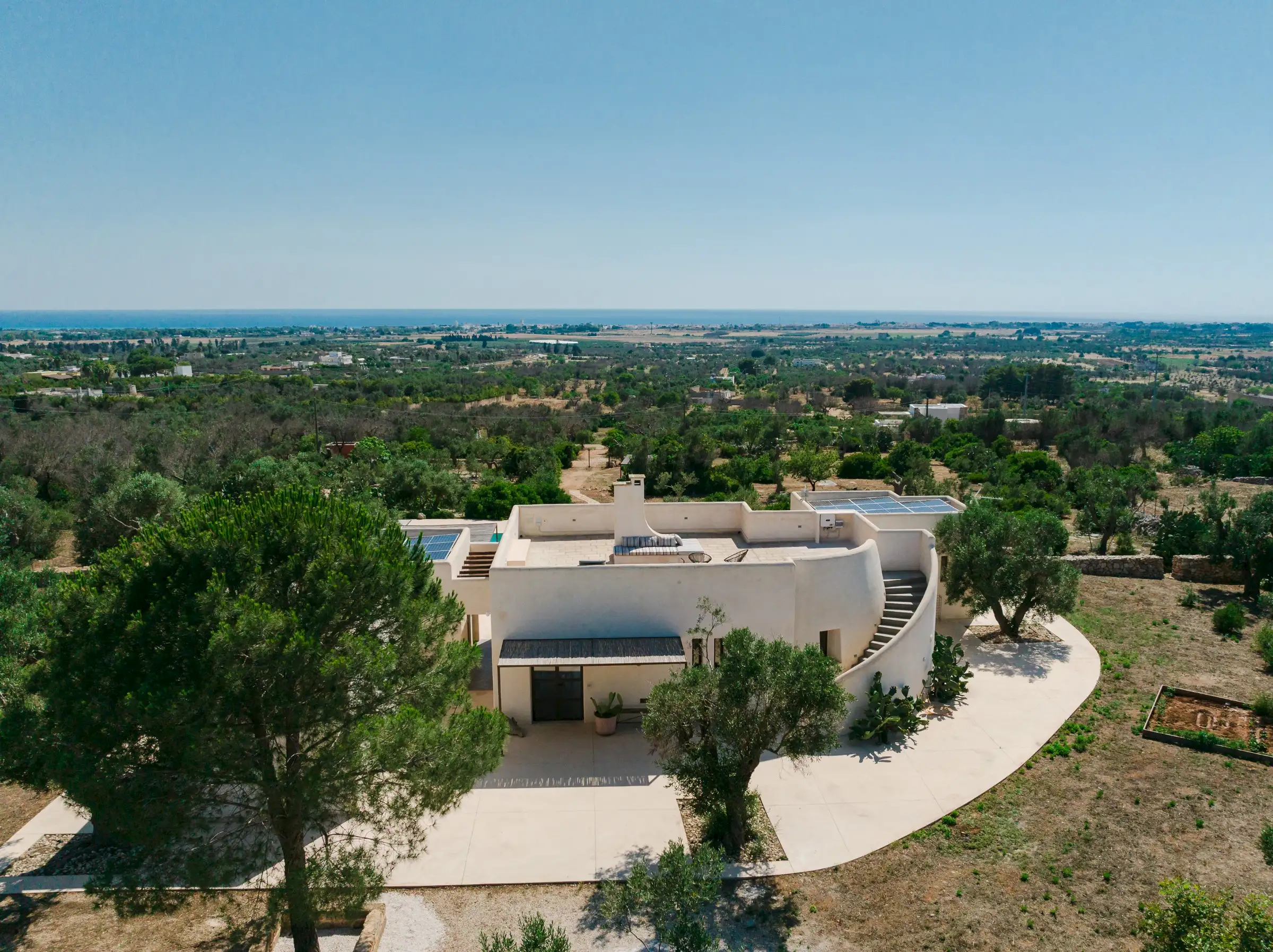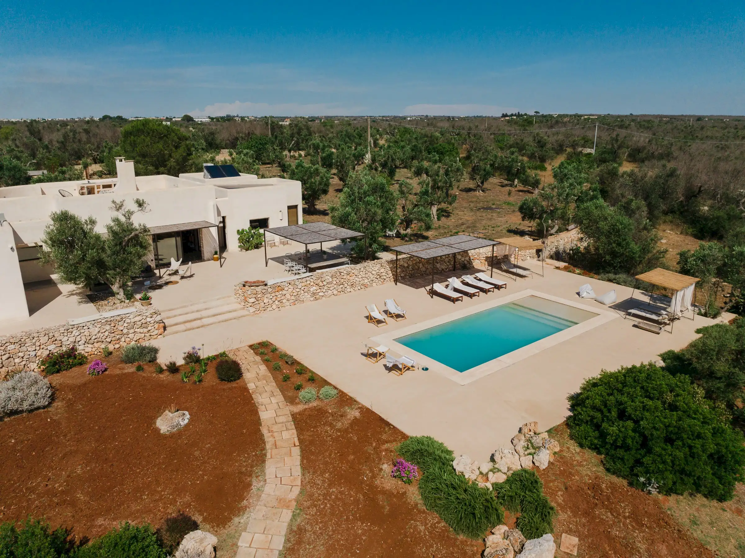 Just a short drive from the rocky coves and white sandy beaches of this exquisitely beautiful and relatively untouched part of Puglia is Loliva, a smooth white villa with sculptural architectural lines and an azure-blue pool.