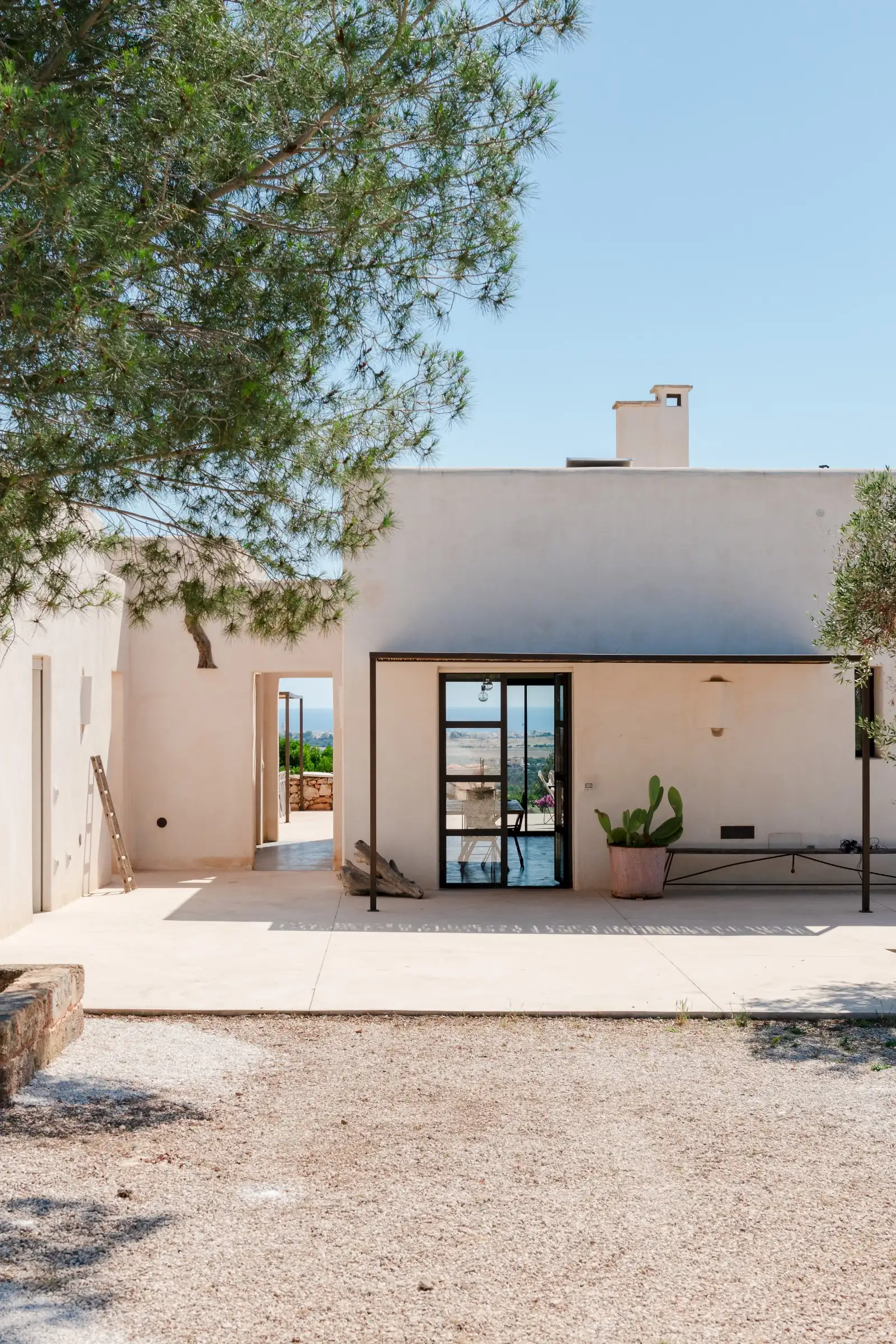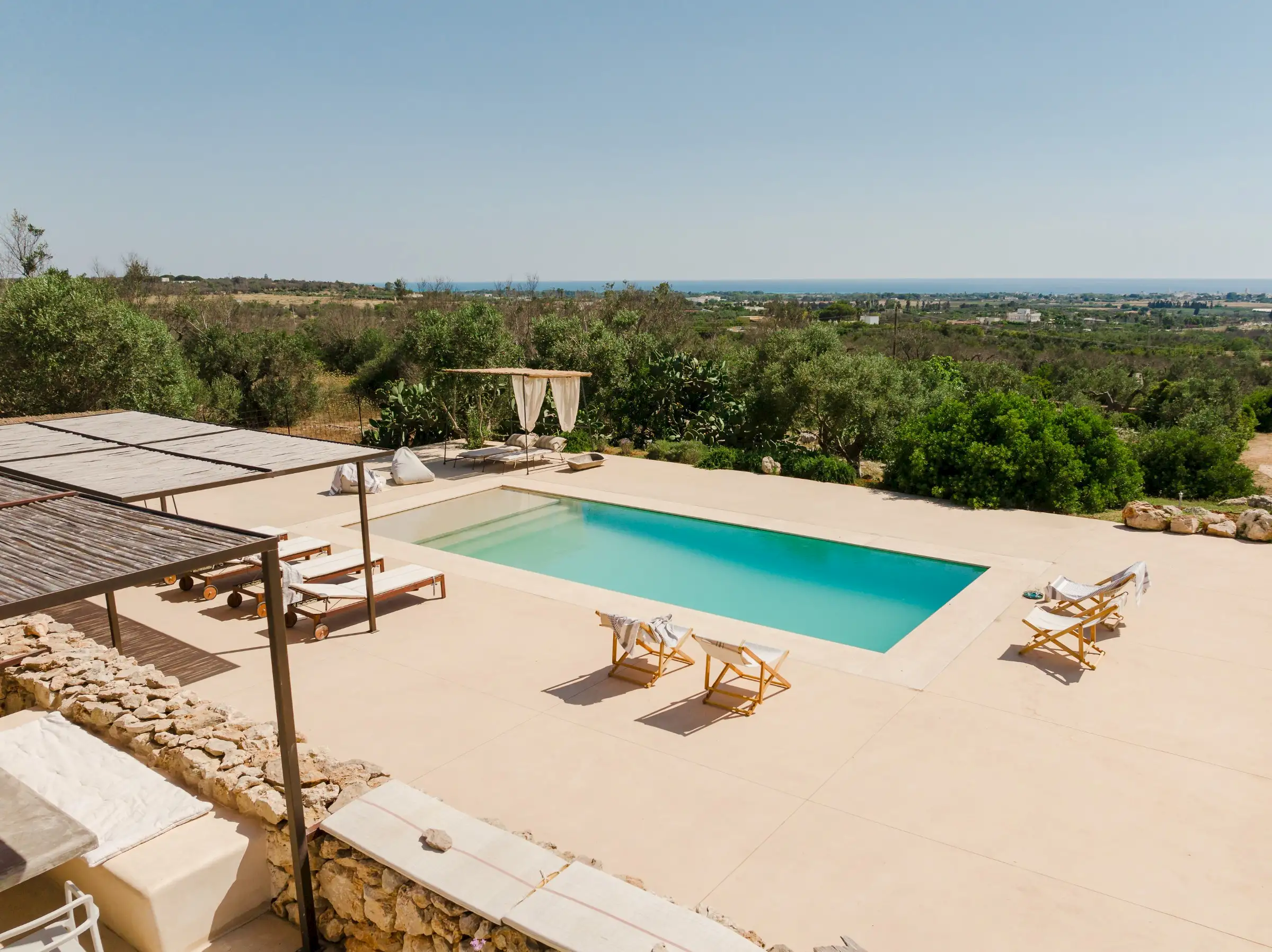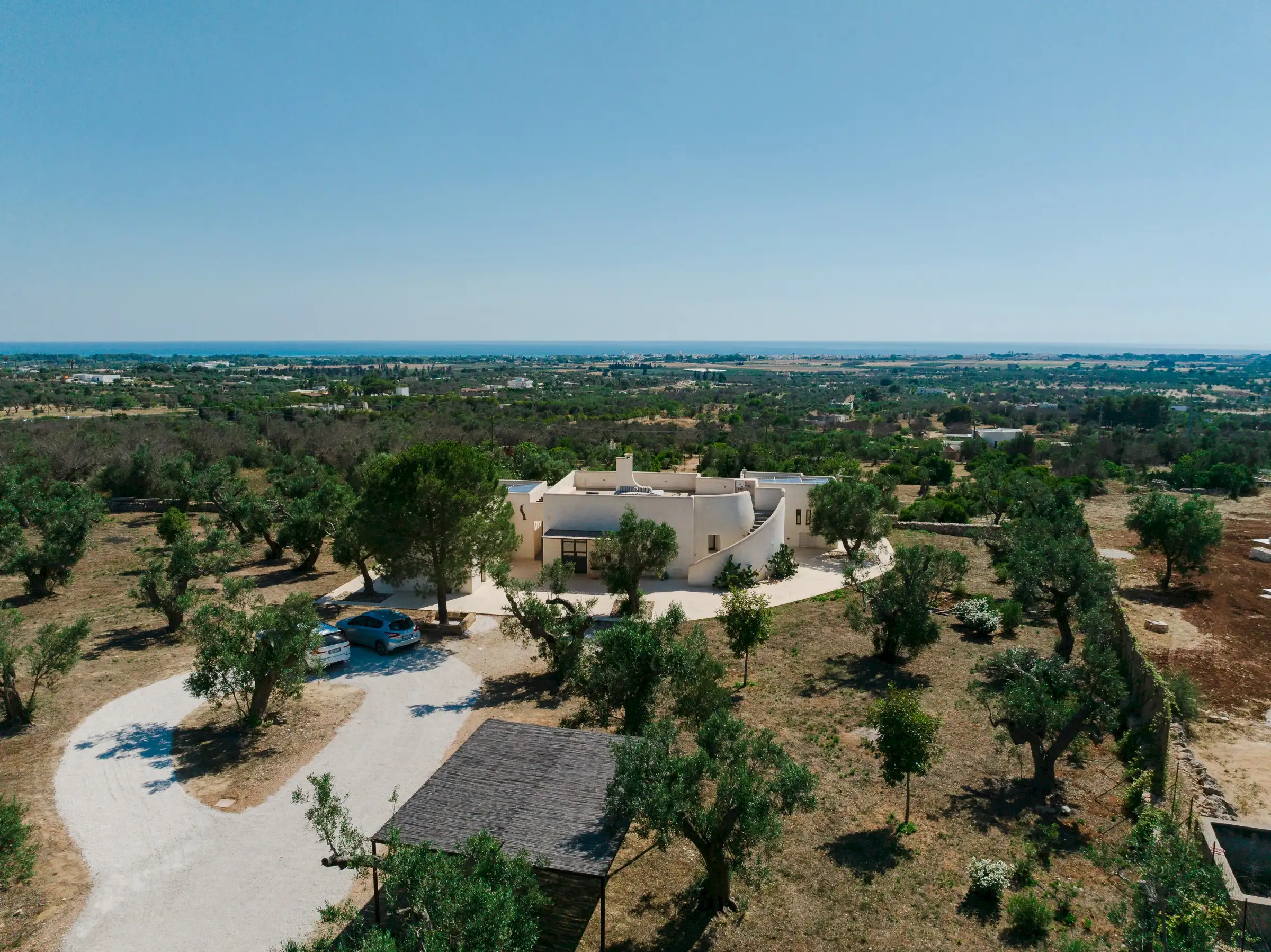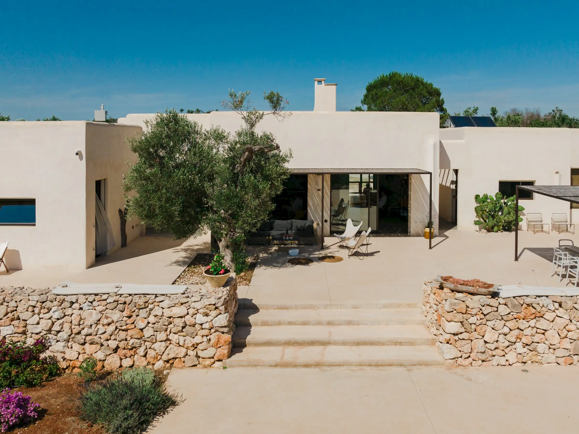 Just a short drive from the rocky coves and white sandy beaches of this exquisitely beautiful and relatively untouched part of Puglia is Loliva, a smooth white villa with sculptural architectural lines and an azure-blue pool.