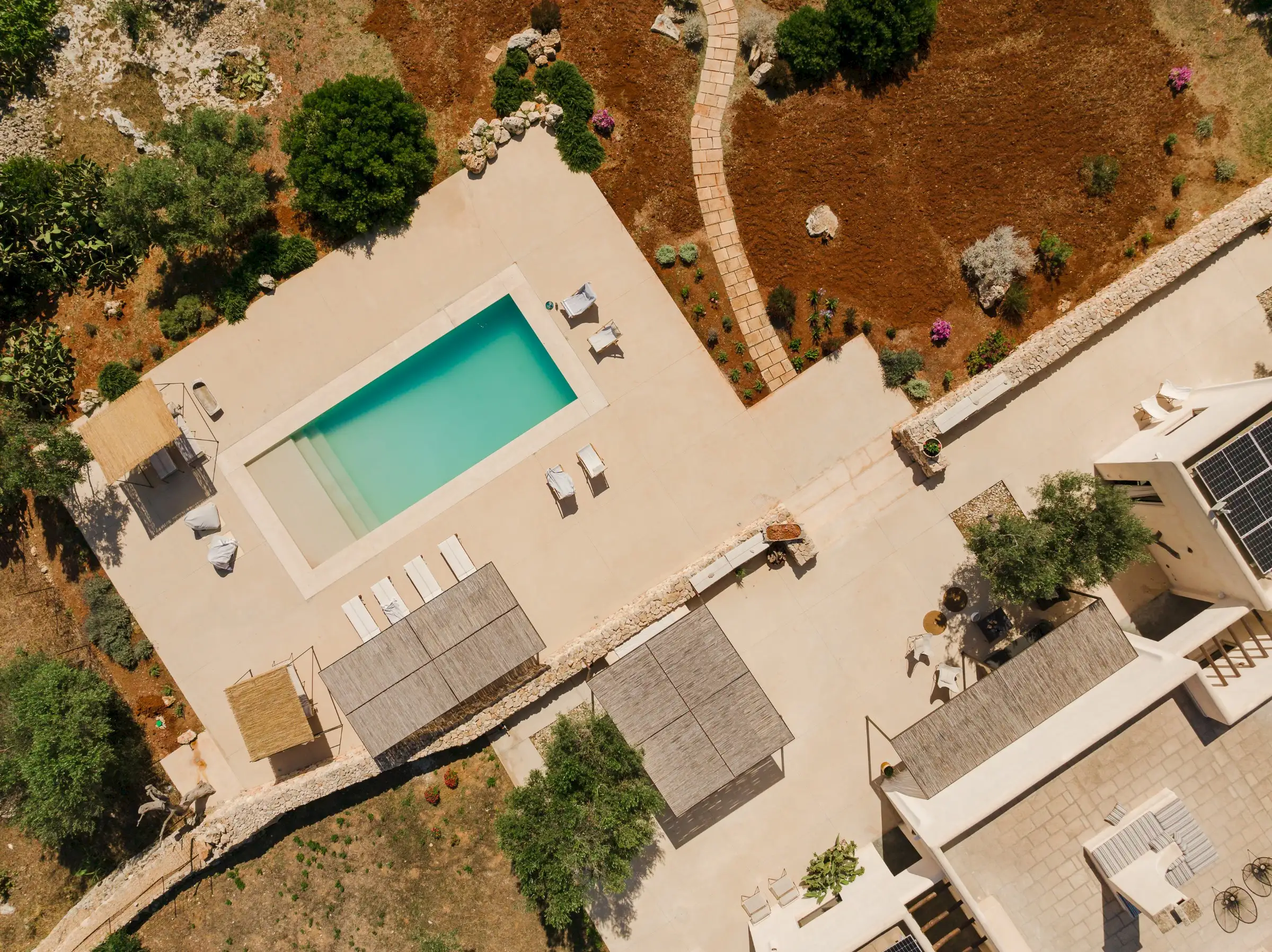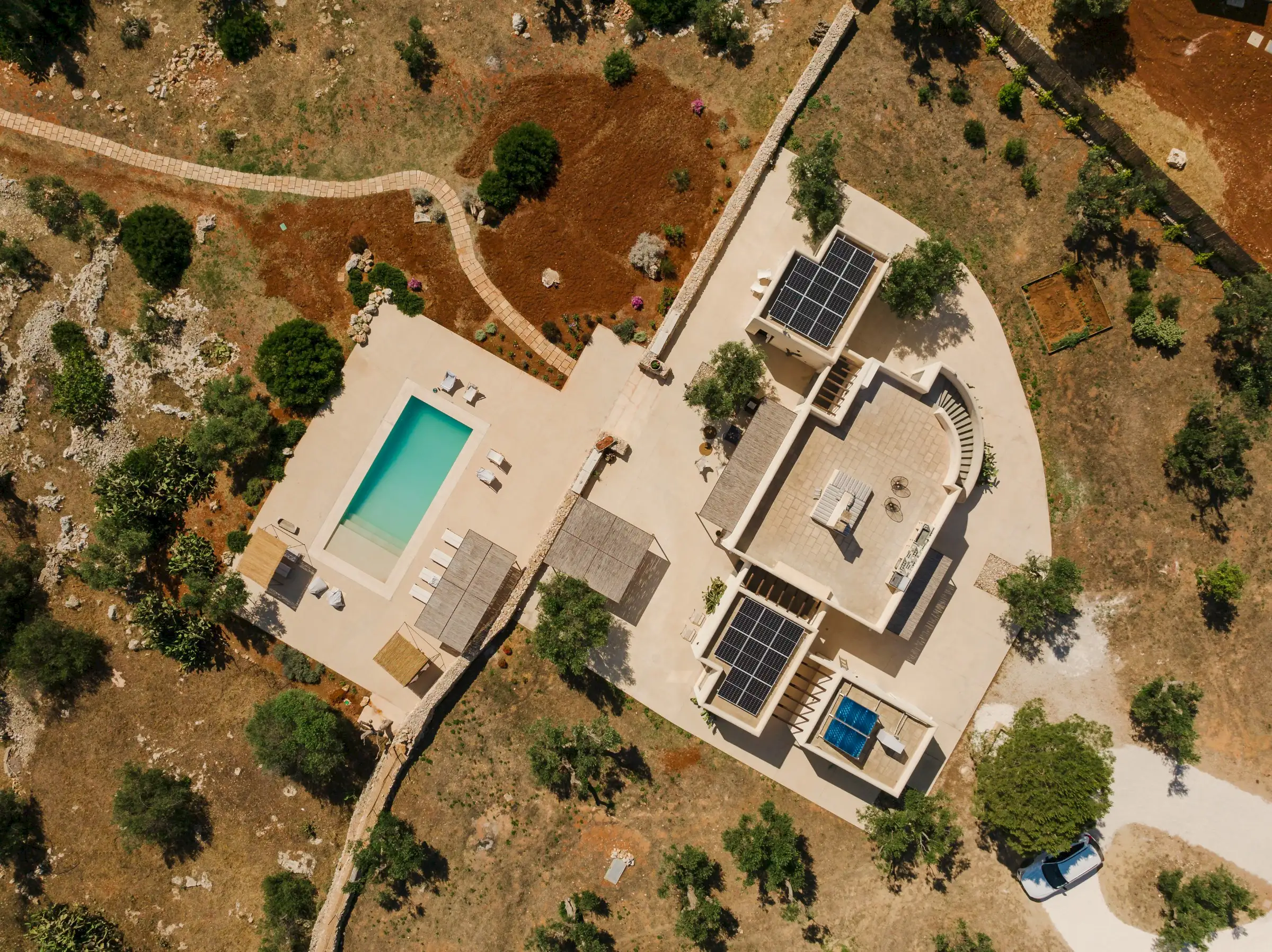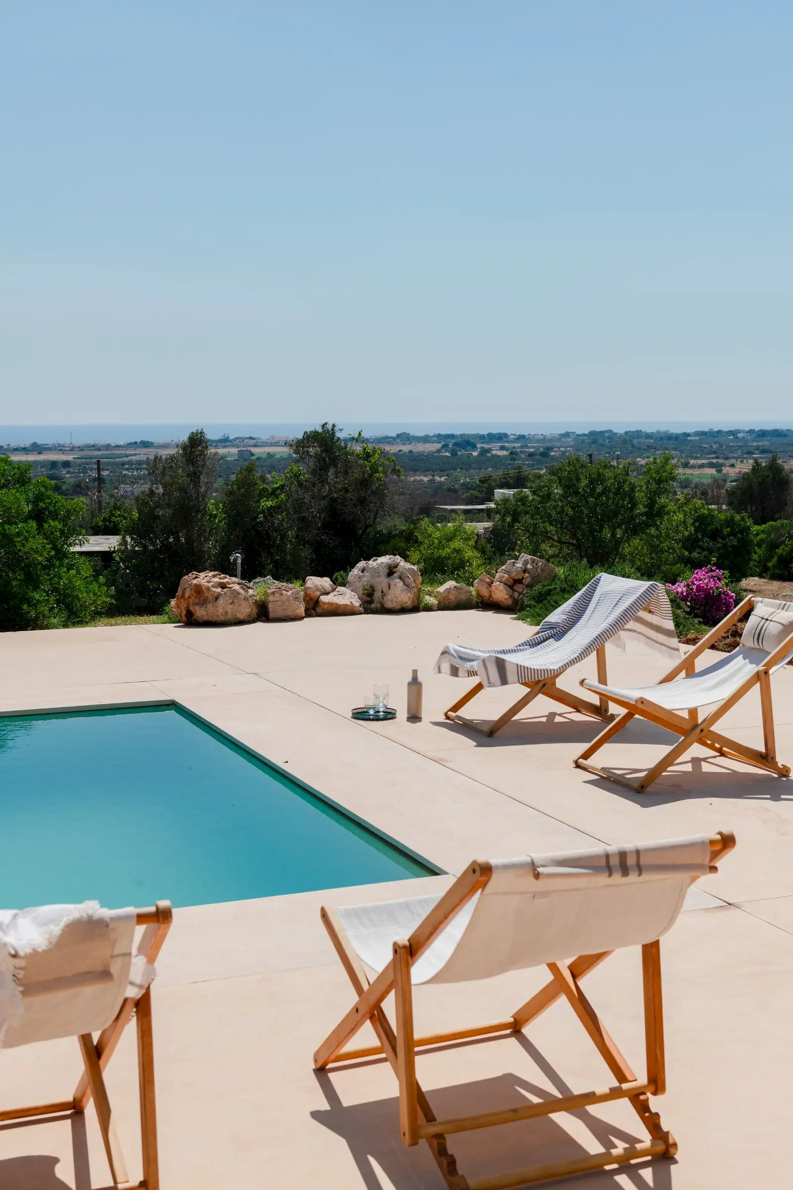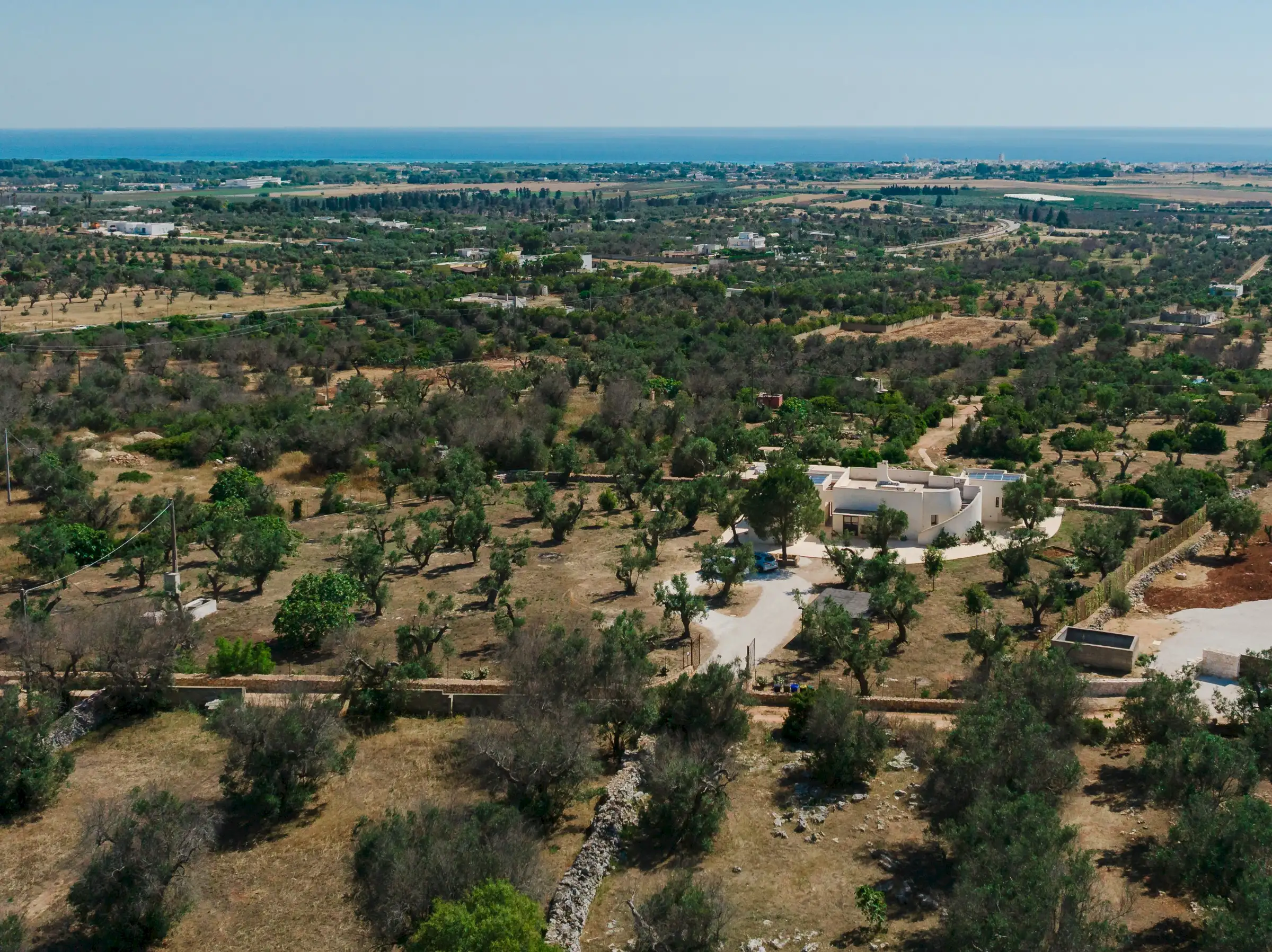Just a short drive from the rocky coves and white sandy beaches of this exquisitely beautiful and relatively untouched part of Puglia is Loliva, a smooth white villa with sculptural architectural lines and an azure-blue pool.