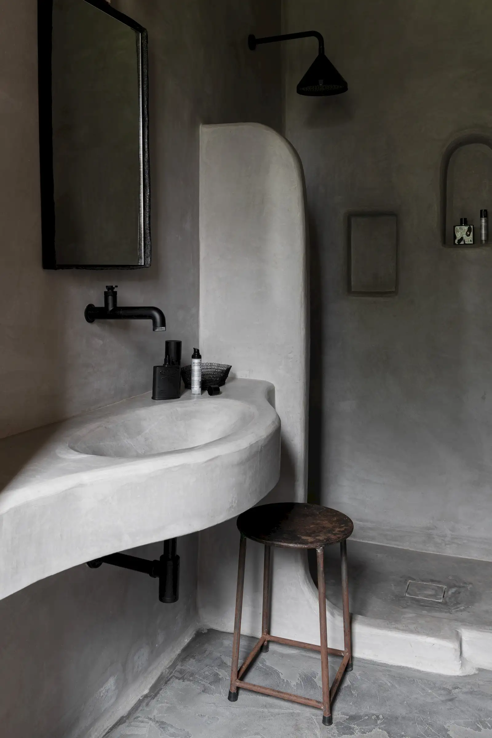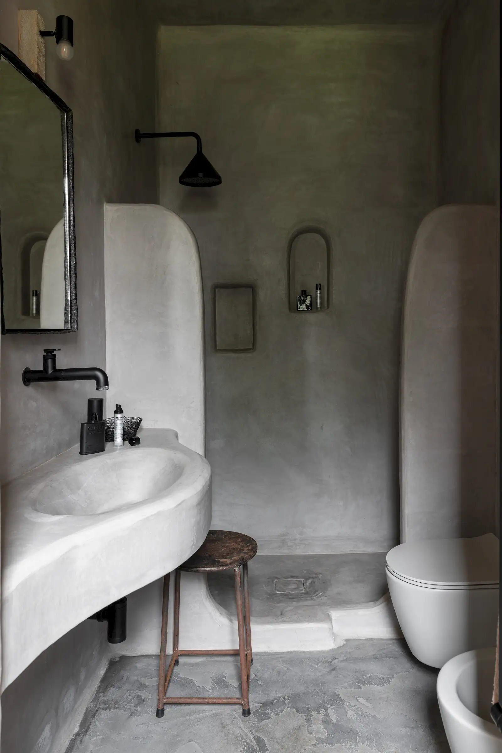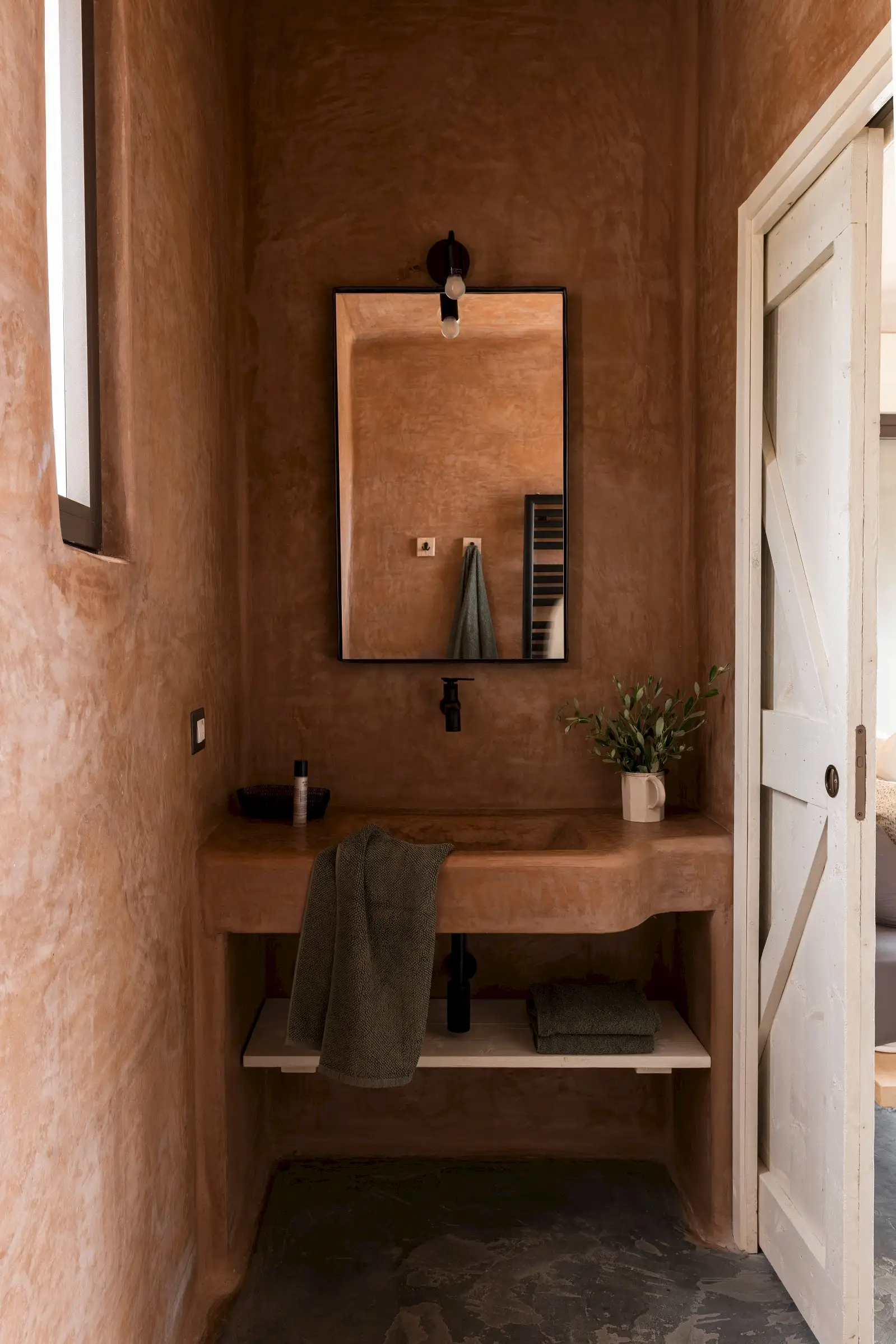 There are four en-suite bathrooms, all with showers and two with a bath, as well. Smooth Moroccan-style walls in earthy colours continue and form the shower walls, the sculptural form being matched by functional niches for lotions and potions as well as hi-spec fixtures and fittings. One of the baths is flush with a large picture window making for a soak with a spectacular view towards the sea.