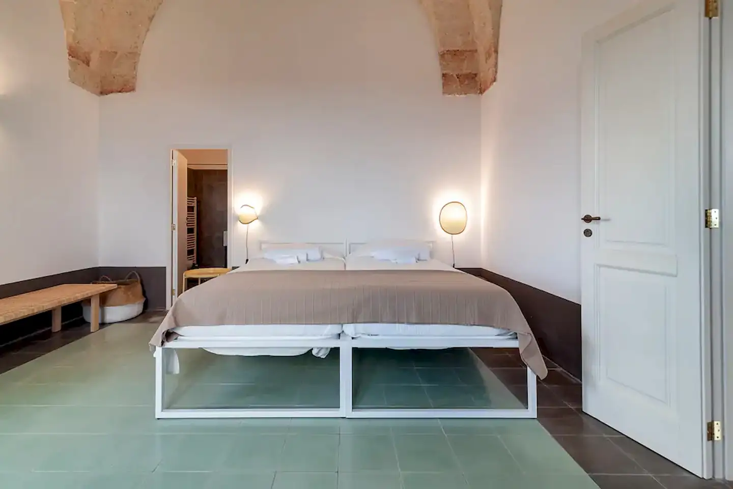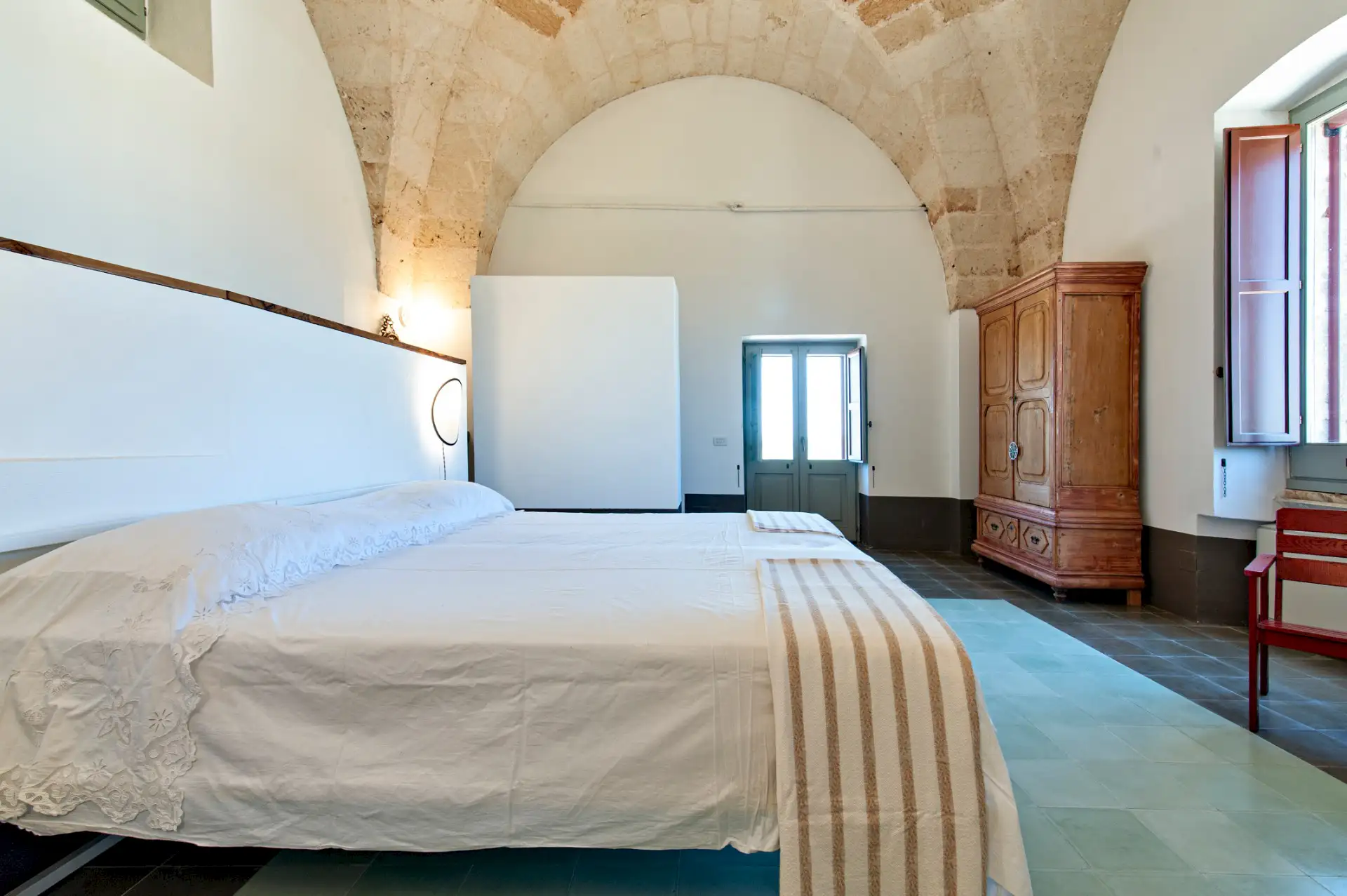 Guests can help themselves to the vegetables from the organic kitchen garden and wander the eight hectares of private land with its fruit and nut trees. Salice Salentino is a ten-minute drive away and has a good selection of shops and restaurants, while the baroque splendour of Lecce or the warm beauty of the Ionian Sea are within easy reach.