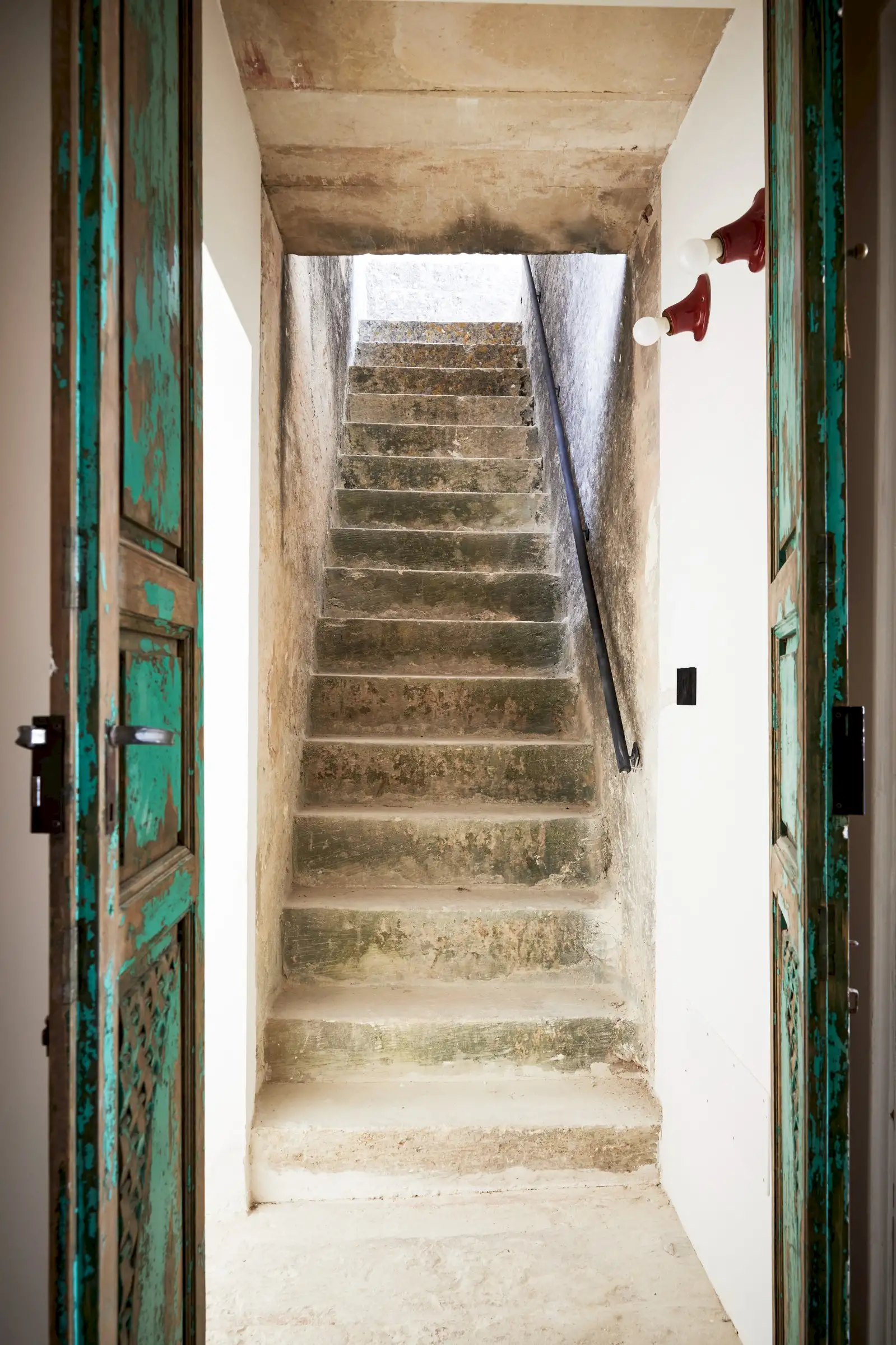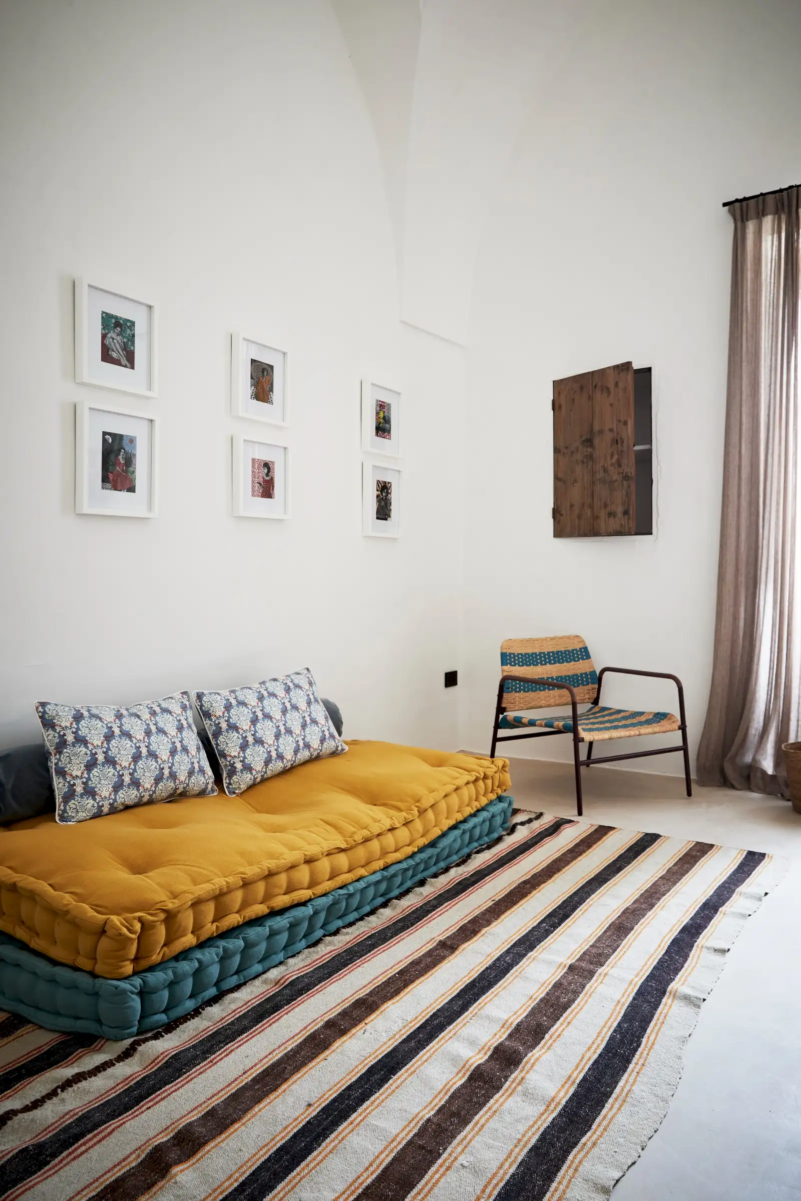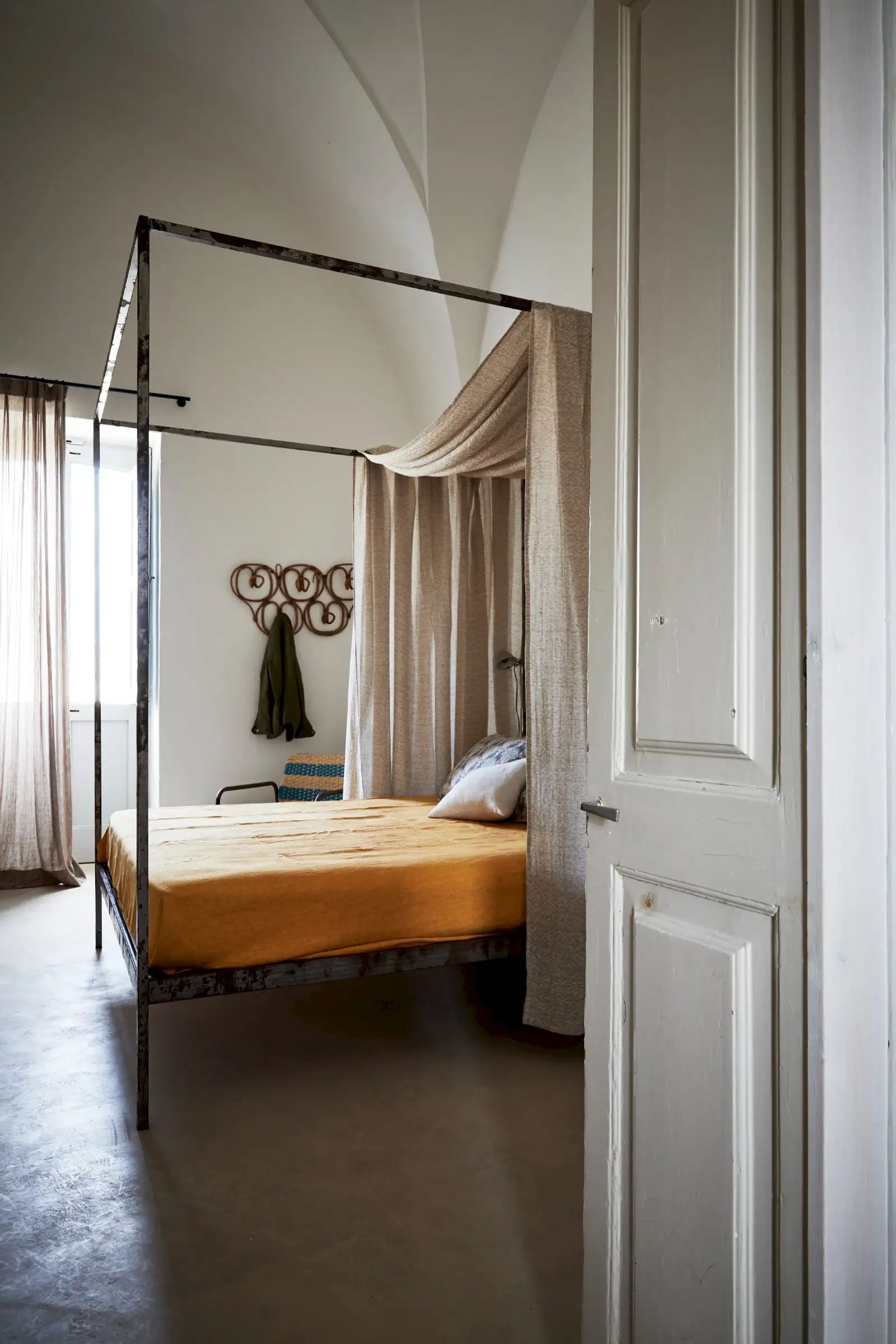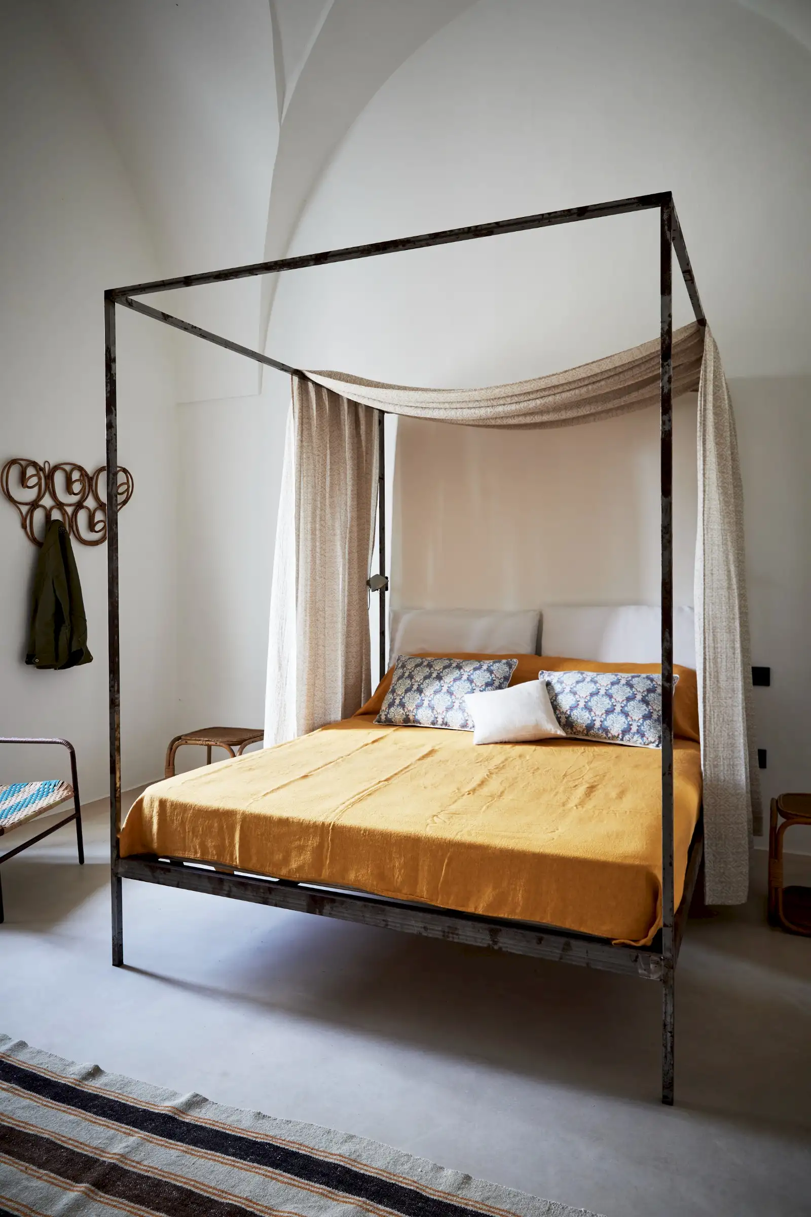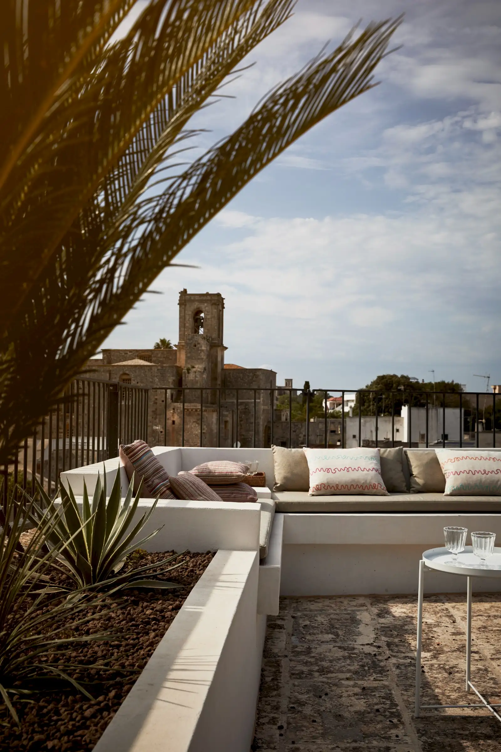 Guests leave the sun-baked street via a wooden door and step into the delicious cool of the entrance hall with its stone floor and star-vaulted ceiling. A ground-floor courtyard garden bathes the downstairs living room in soft light through the wall of floor-to-ceiling glass, while a small pool sits on top of the new kitchen extension.