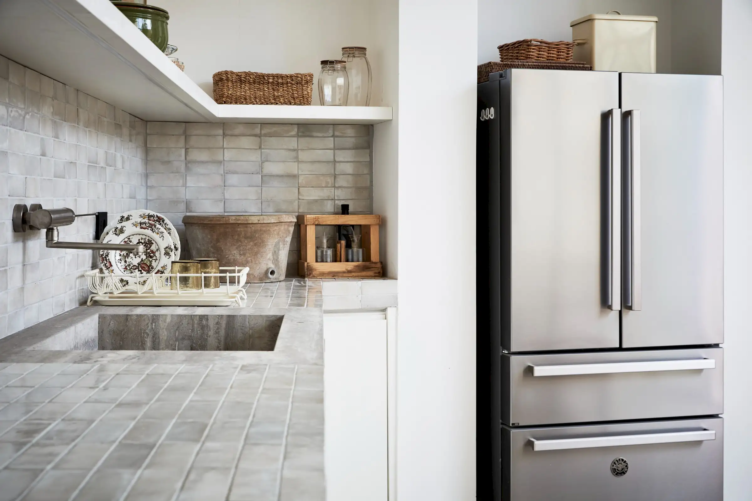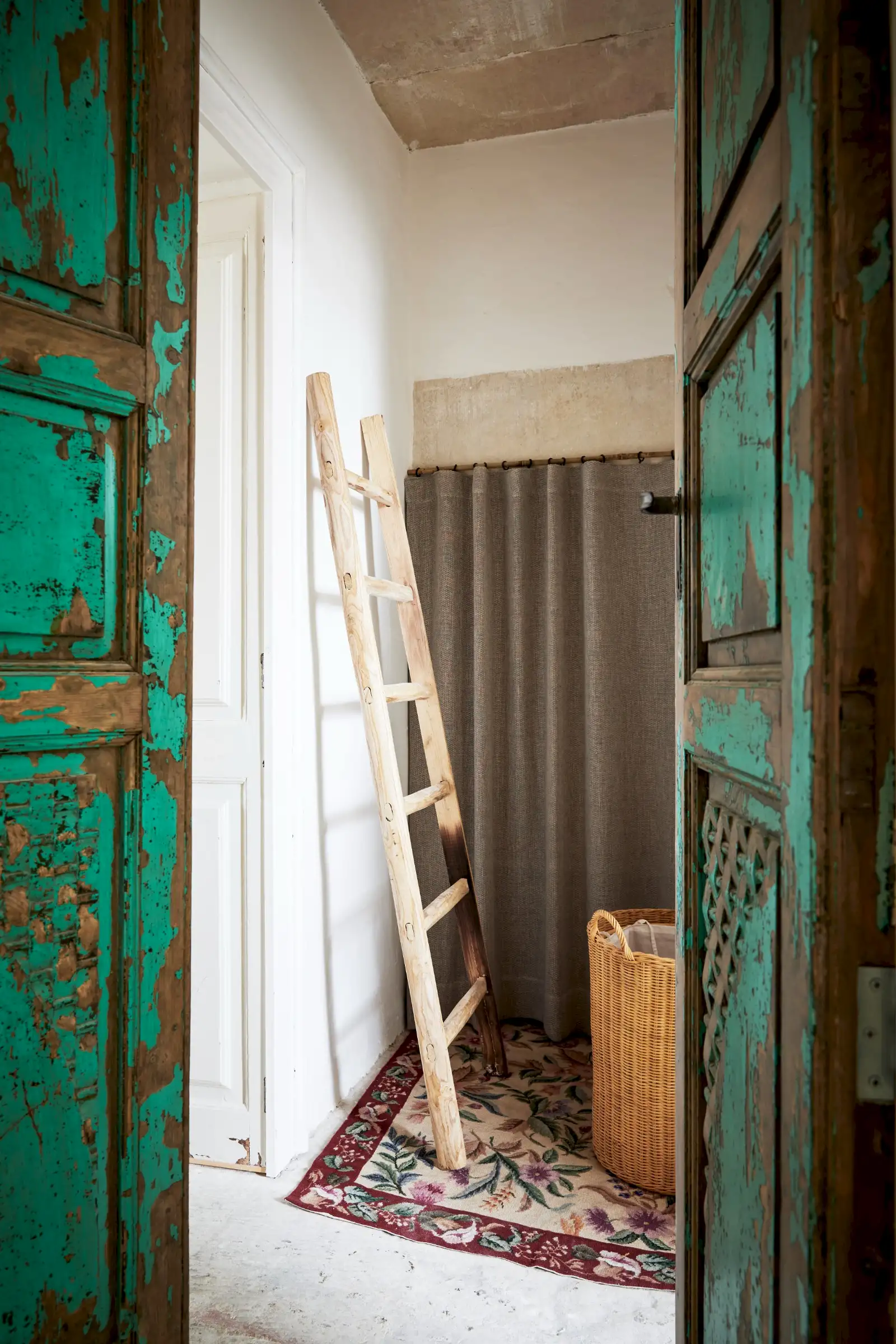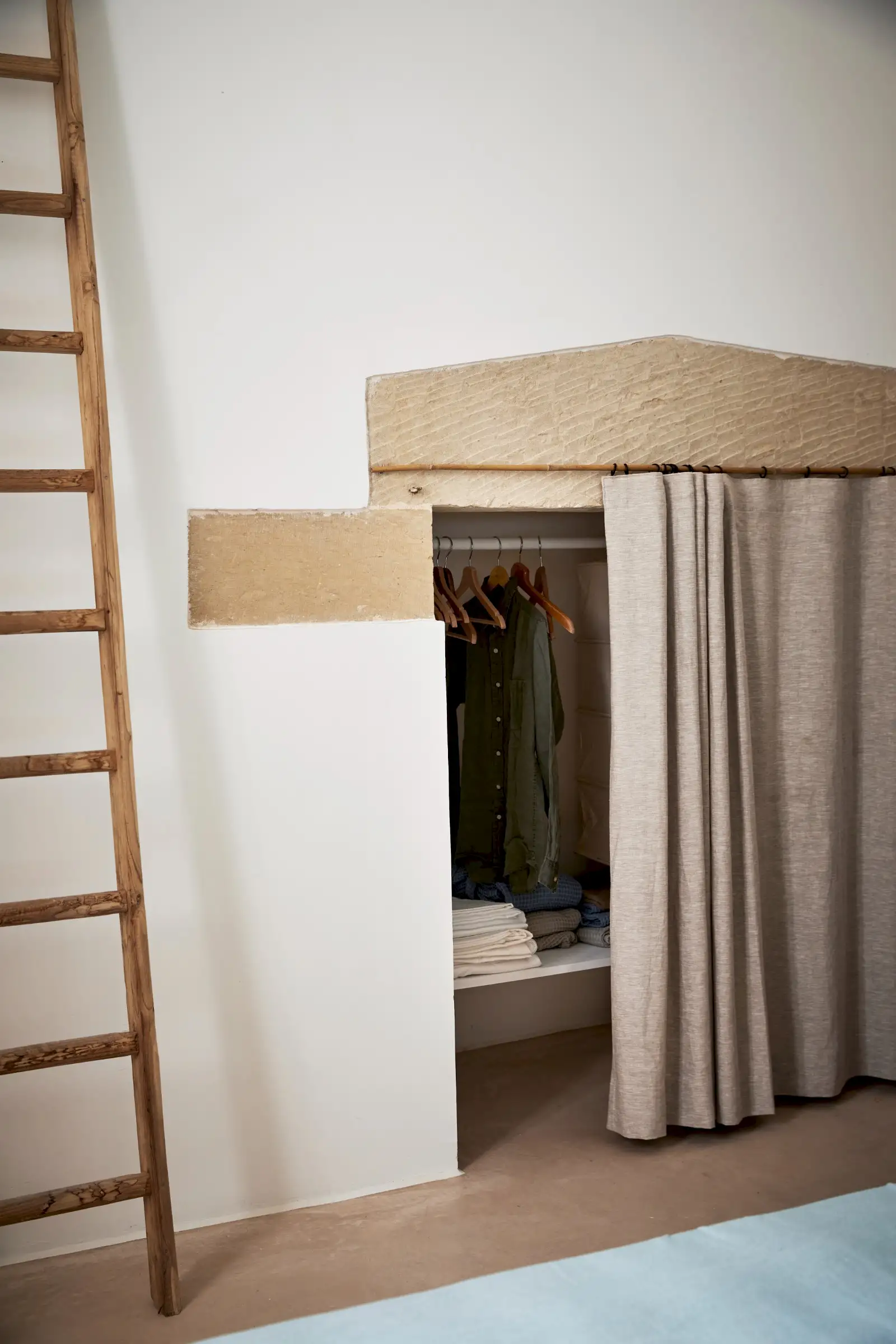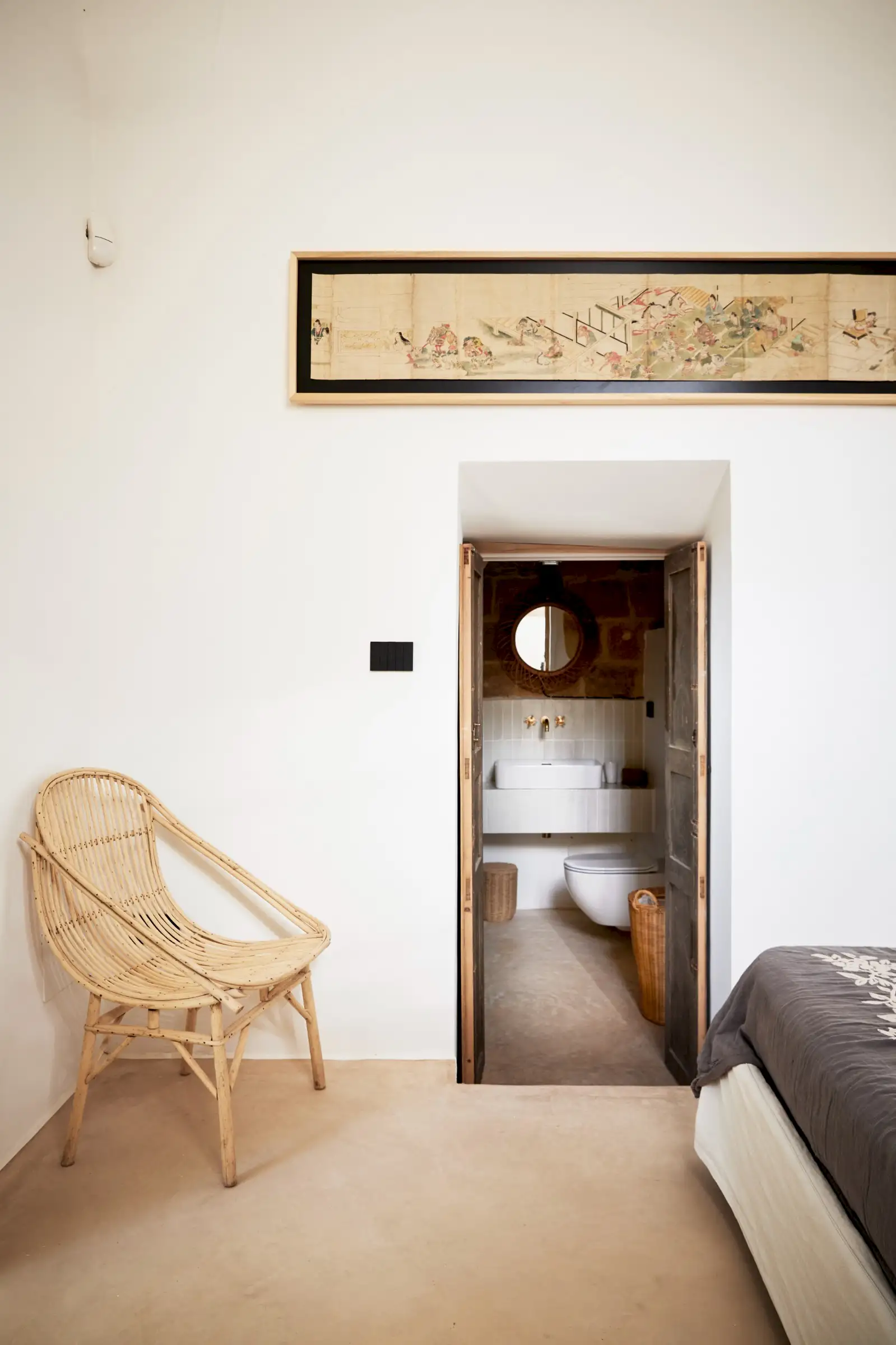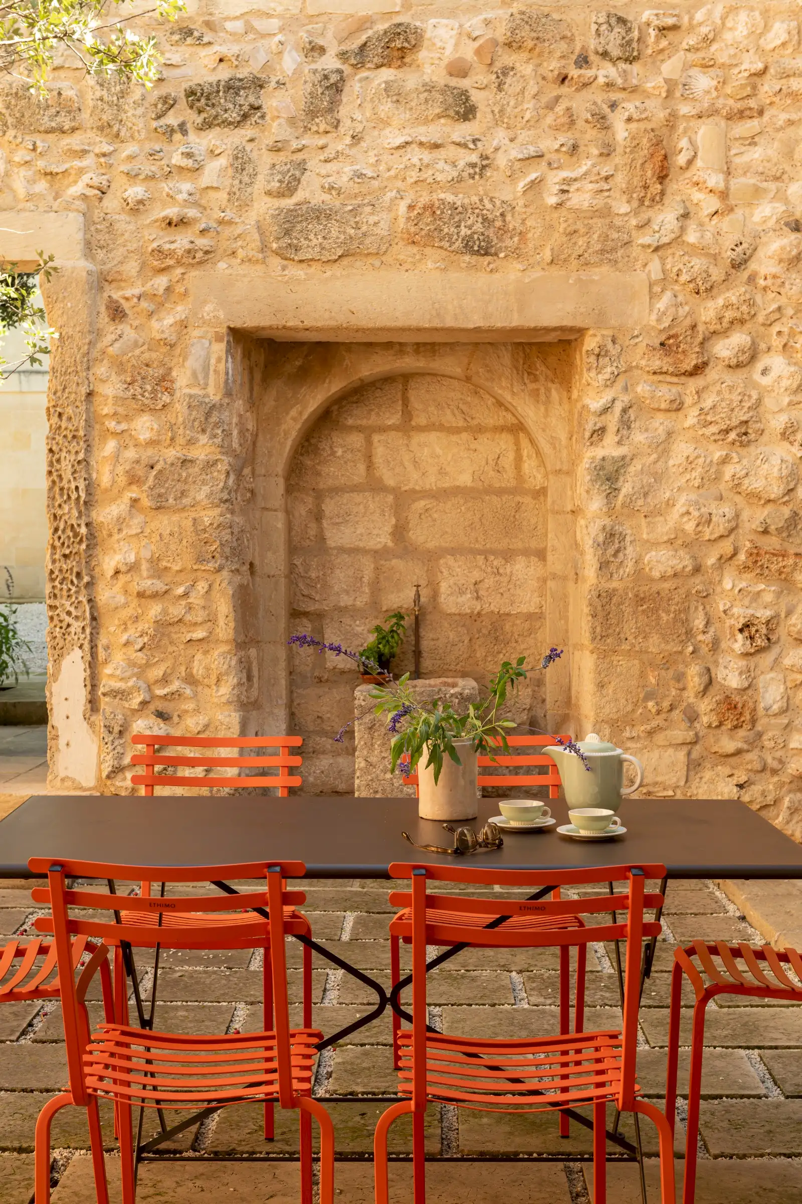 Guests leave the sun-baked street via a wooden door and step into the delicious cool of the entrance hall with its stone floor and star-vaulted ceiling. A ground-floor courtyard garden bathes the downstairs living room in soft light through the wall of floor-to-ceiling glass, while a small pool sits on top of the new kitchen extension.