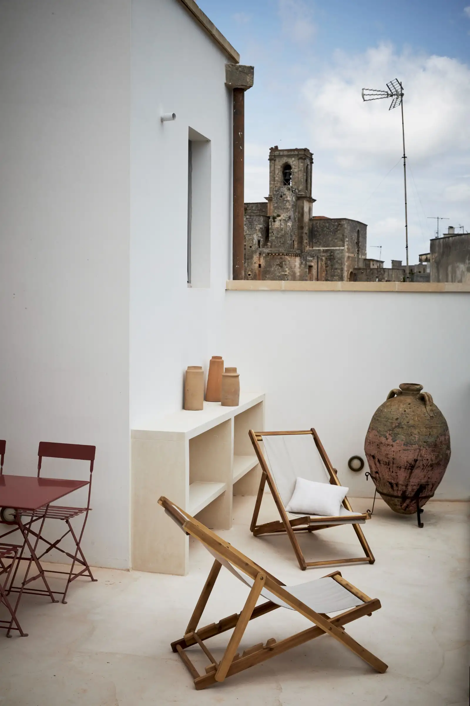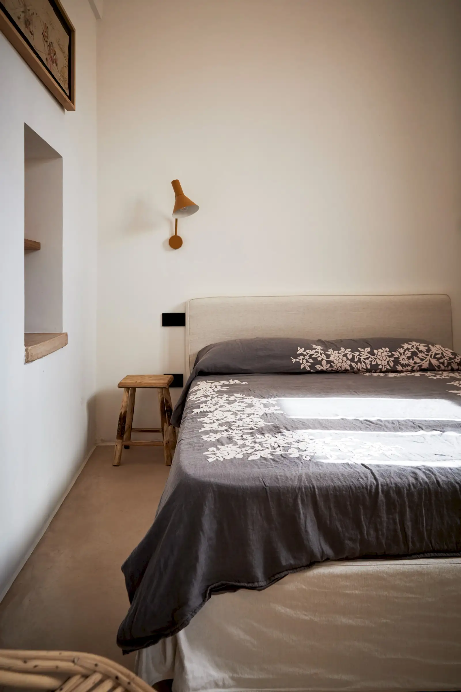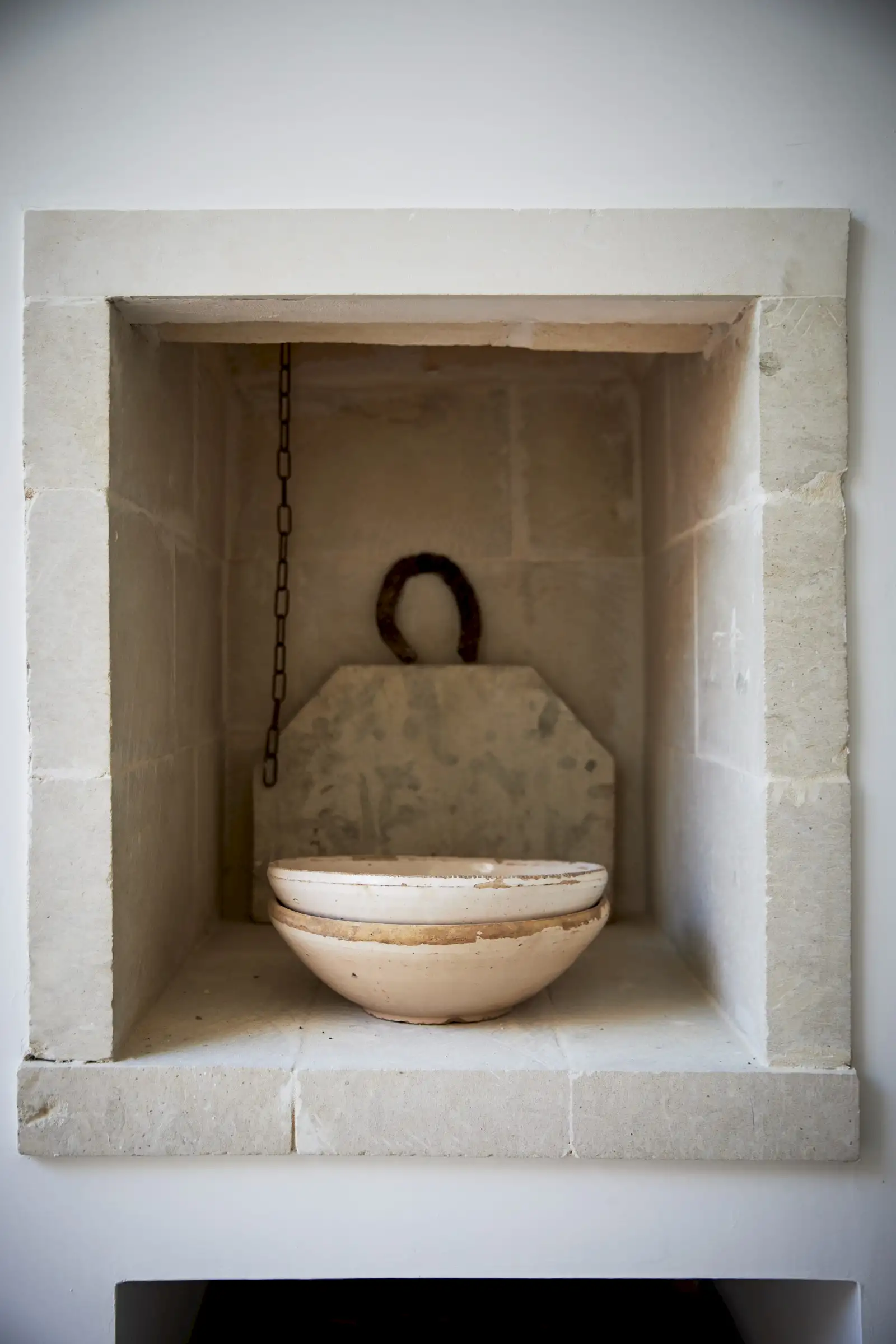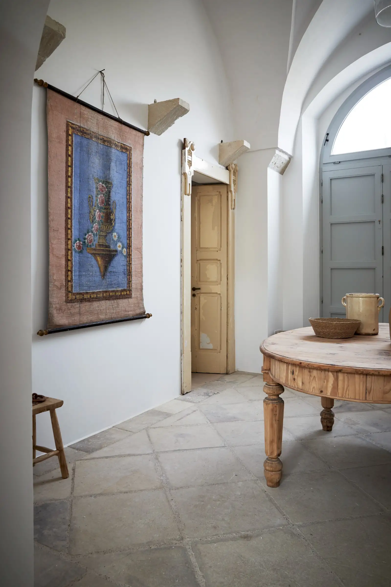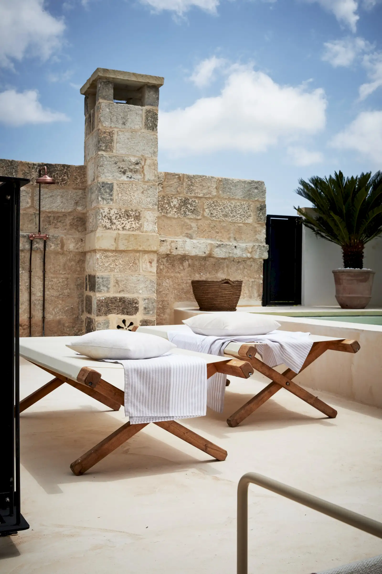 Natural materials such as stone, wood and linen give texture and soul to the property and the decoration is a clever mix of soft earthy colours, original art, and pieces that gently root guests to the location – such as terracotta olive oil jugs and salvaged double wooden doors. Architectural features such as niches are both practical and decorative and two of the four shower rooms are round like trullos.