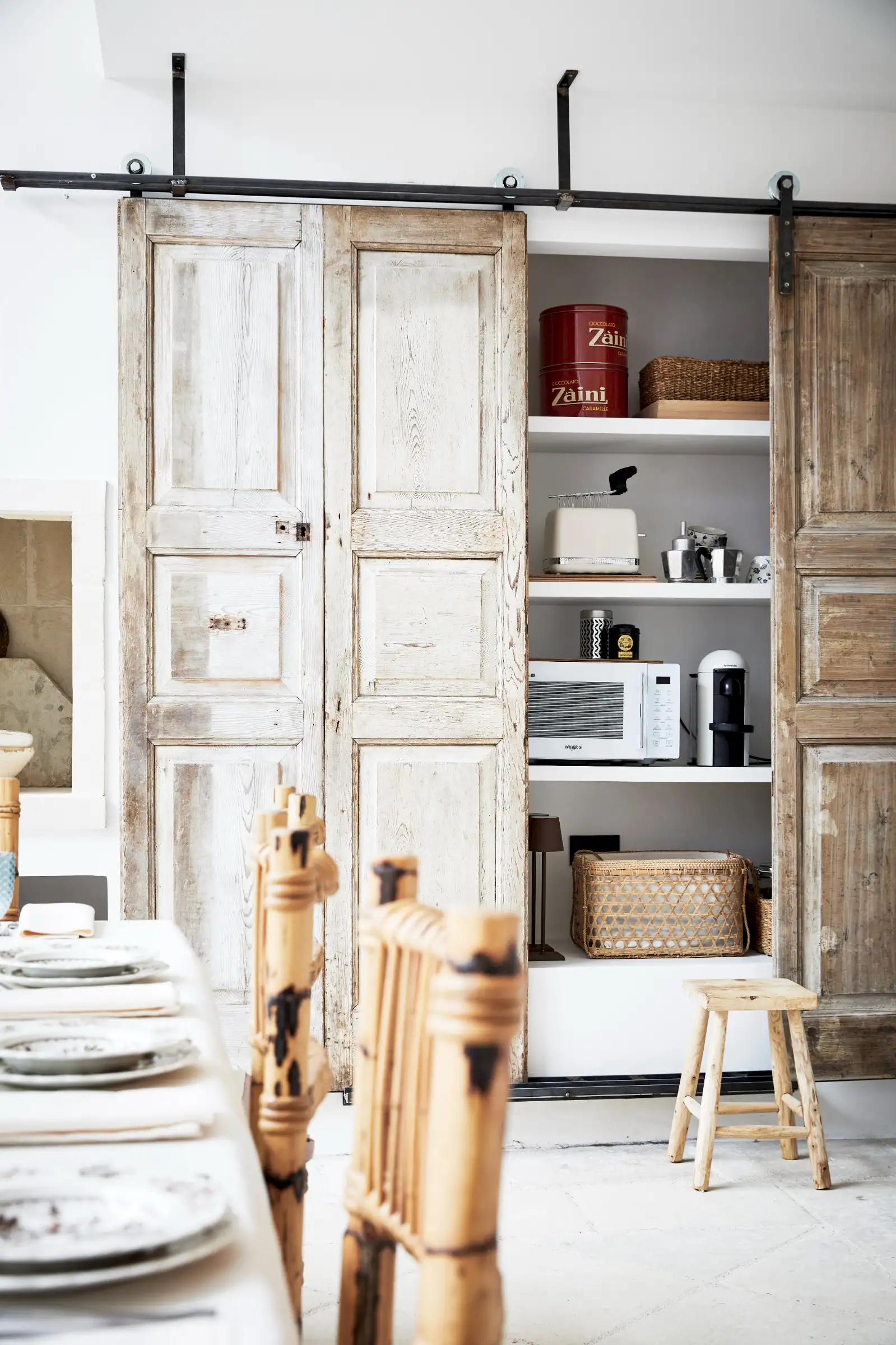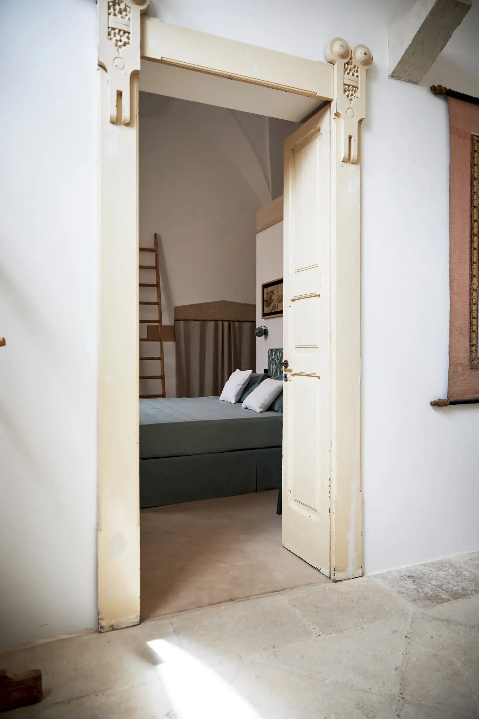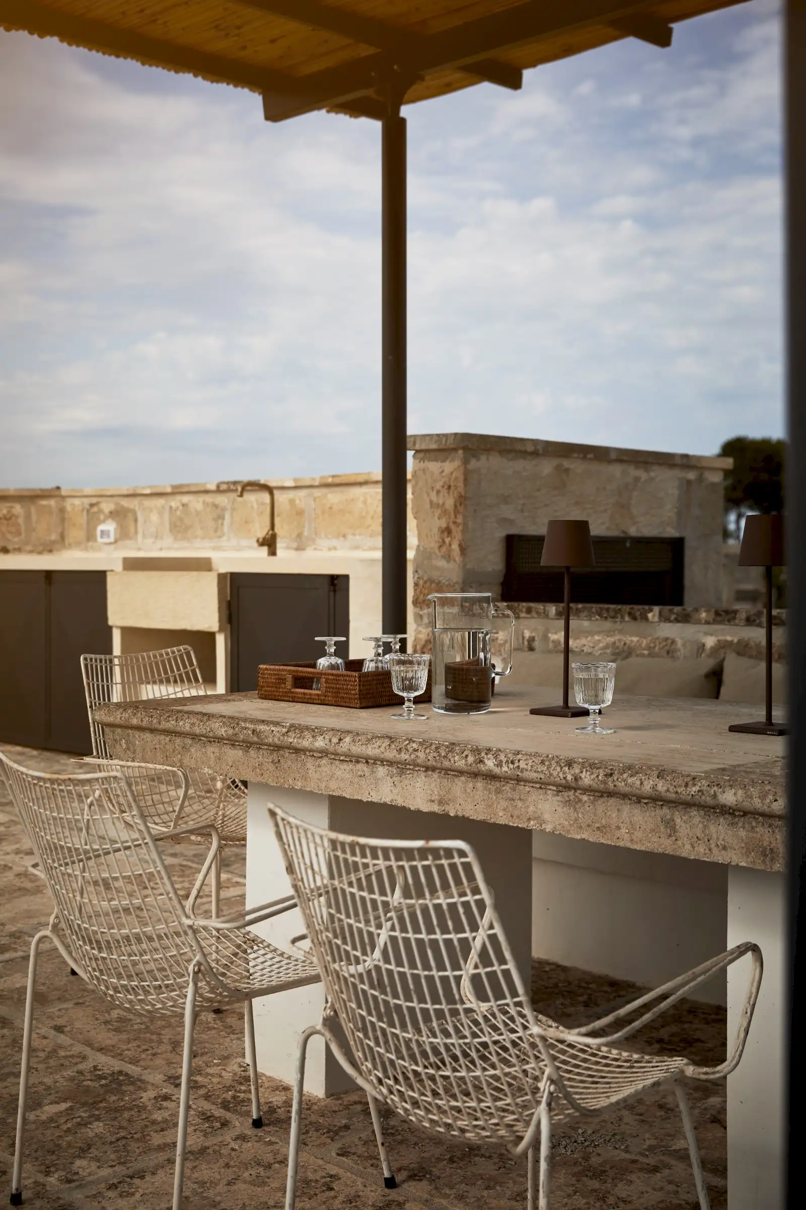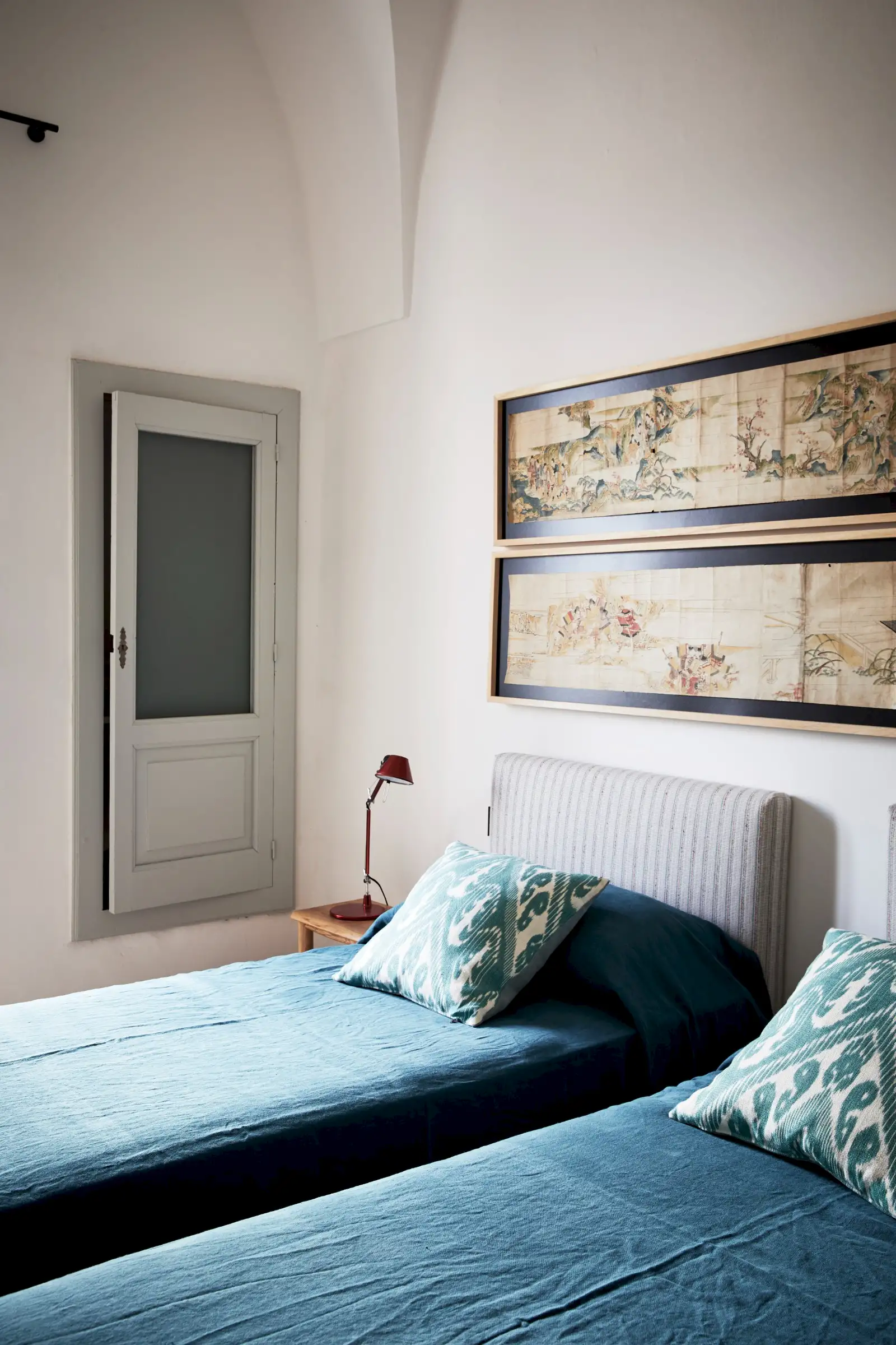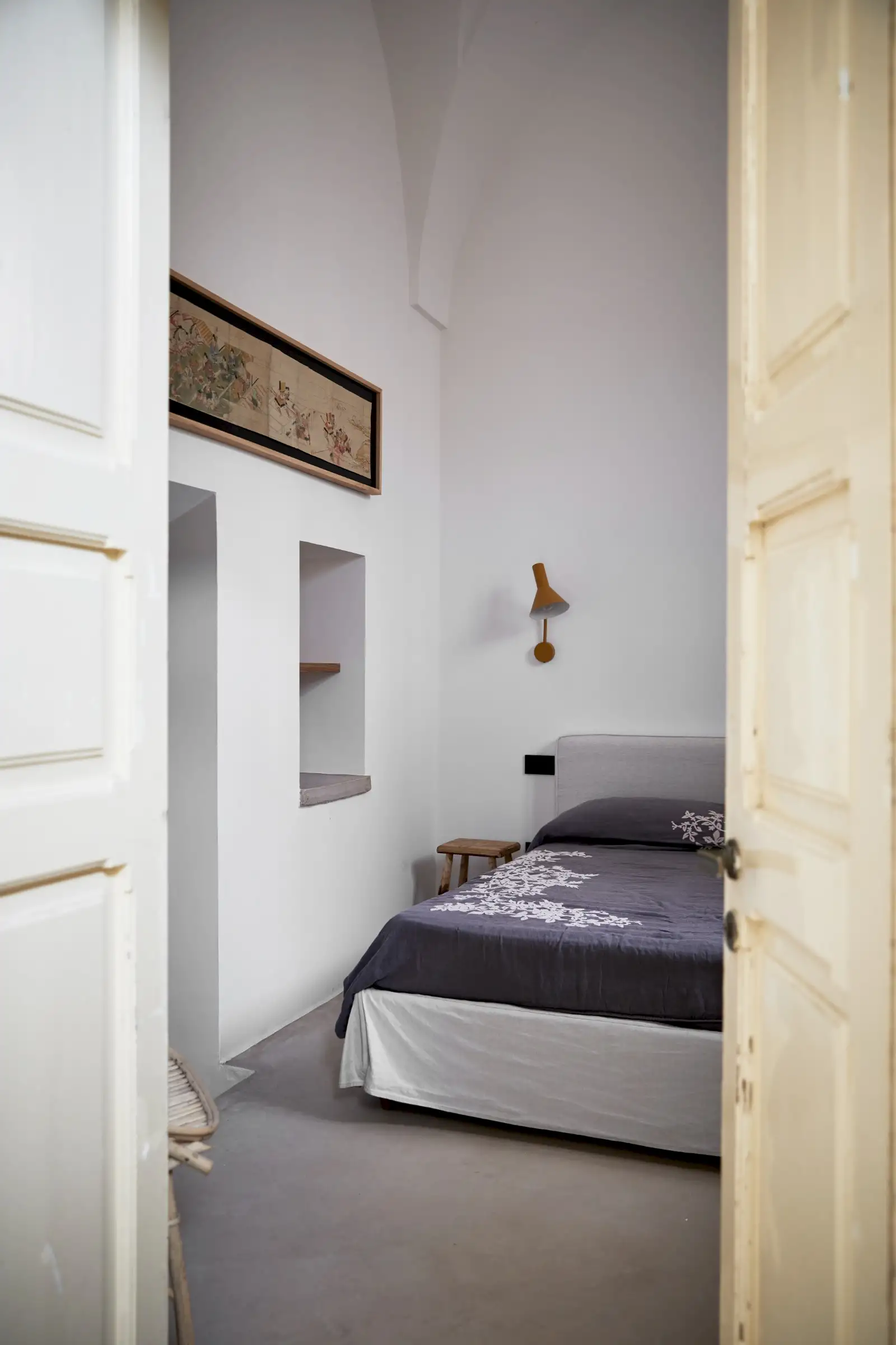 Natural materials such as stone, wood and linen give texture and soul to the property and the decoration is a clever mix of soft earthy colours, original art, and pieces that gently root guests to the location – such as terracotta olive oil jugs and salvaged double wooden doors. Architectural features such as niches are both practical and decorative and two of the four shower rooms are round like trullos.