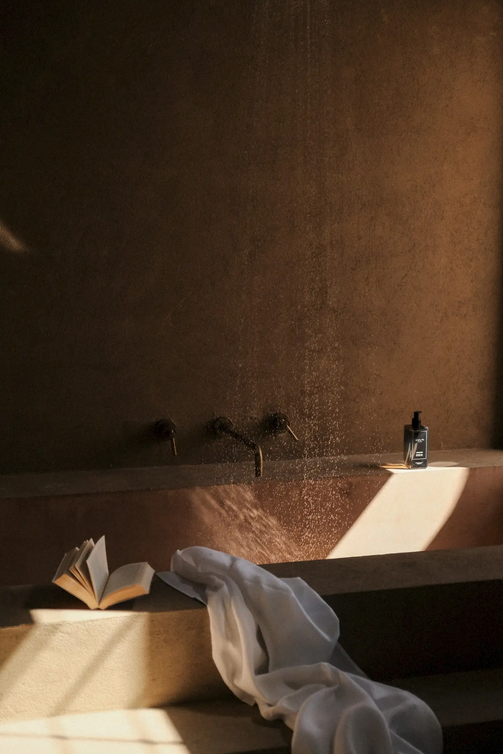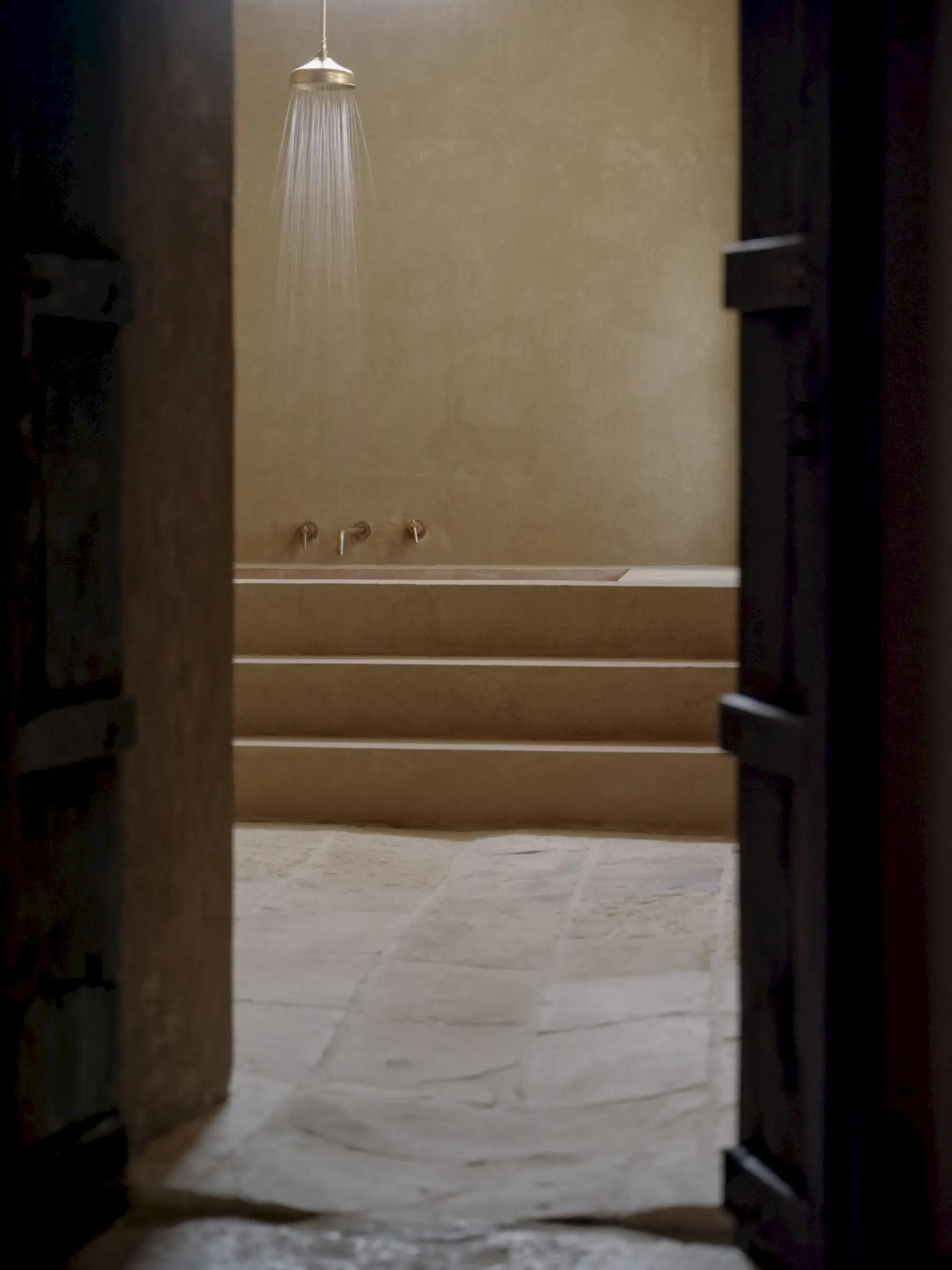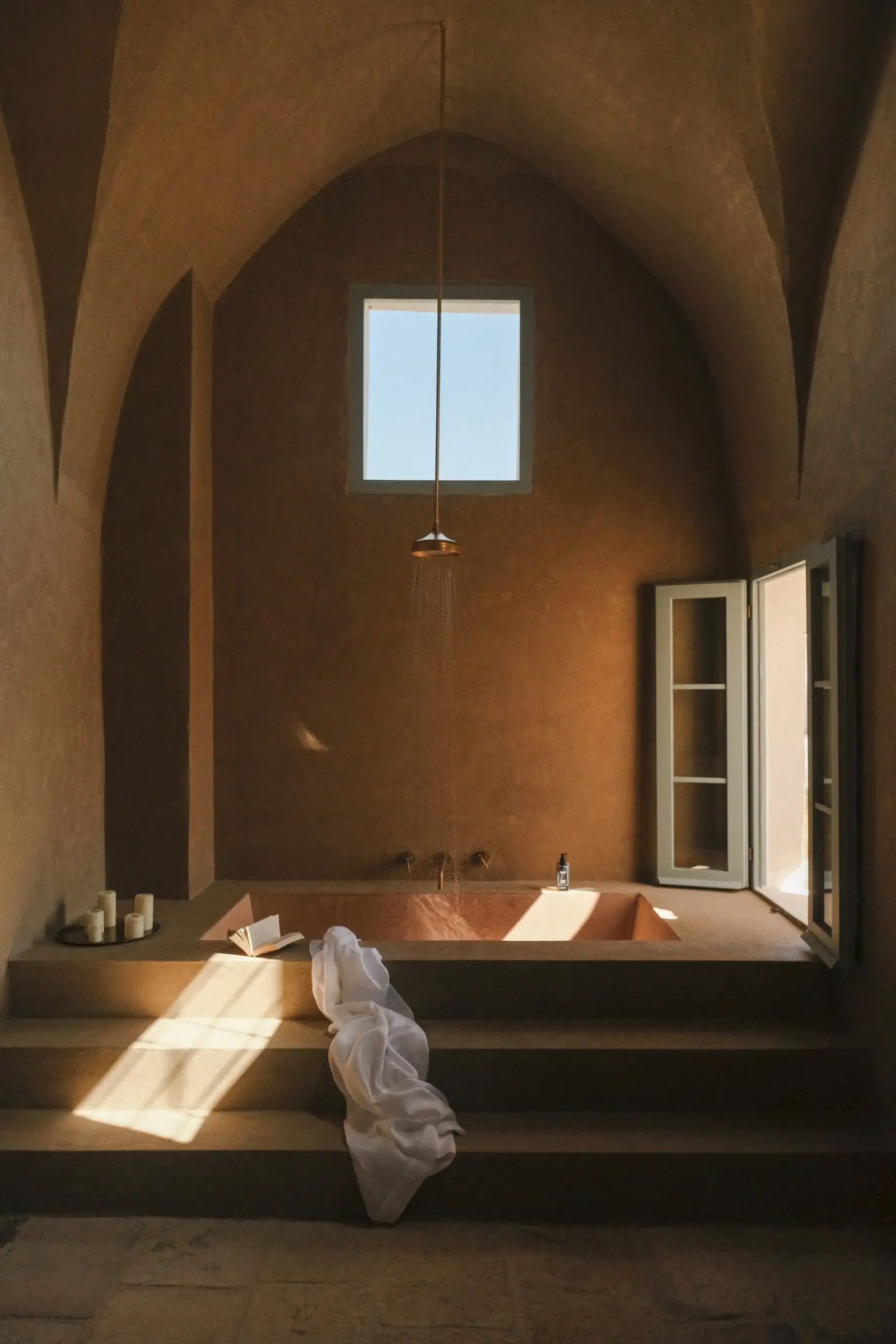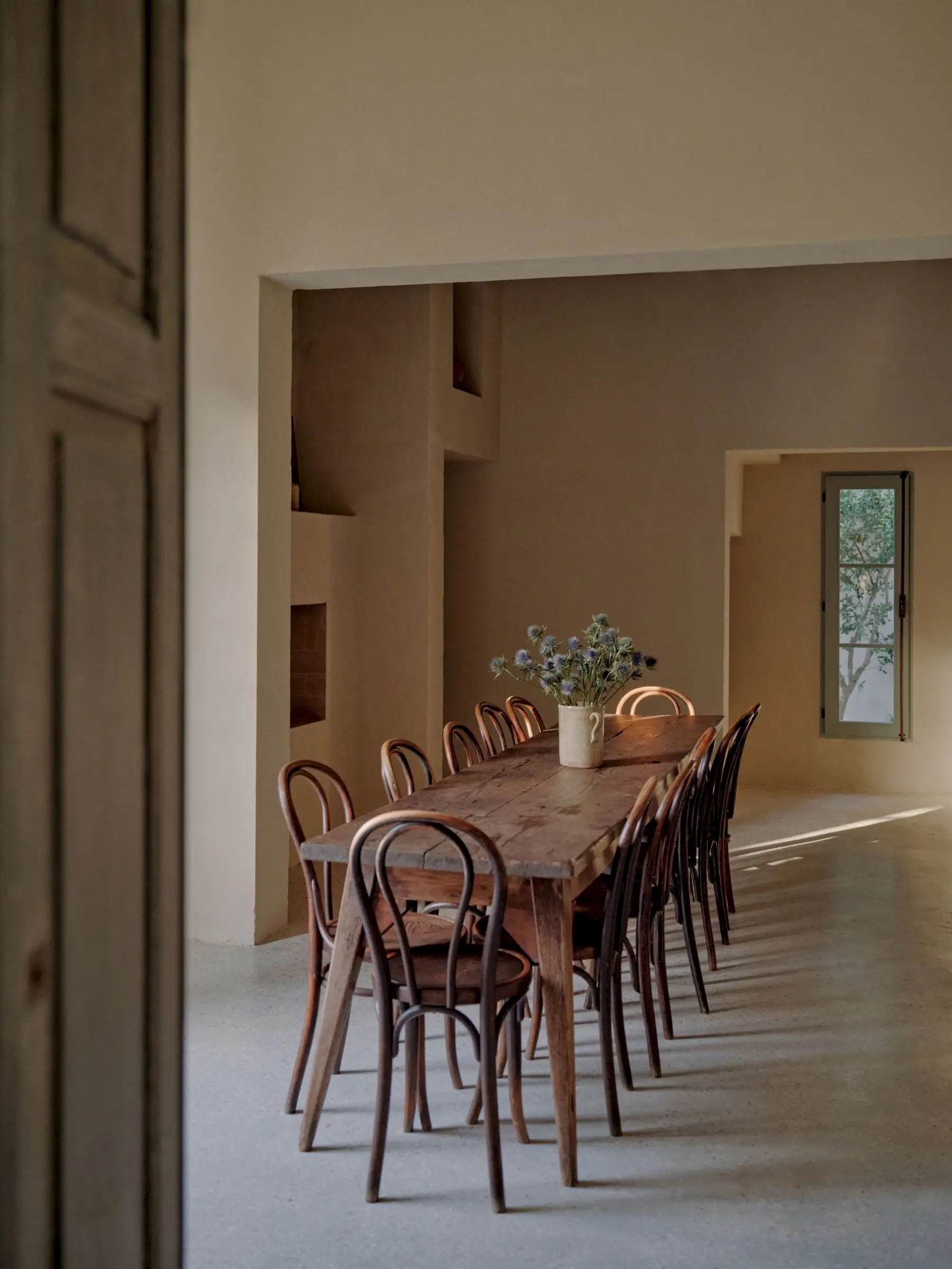The space inside is spread out across a fully equipped kitchen, a dining room with a fireplace, a sitting room and a study. There are three bedroom suites, each with a private terrace or courtyard.