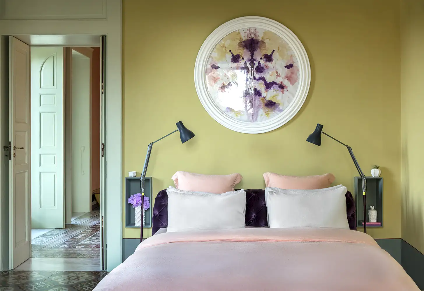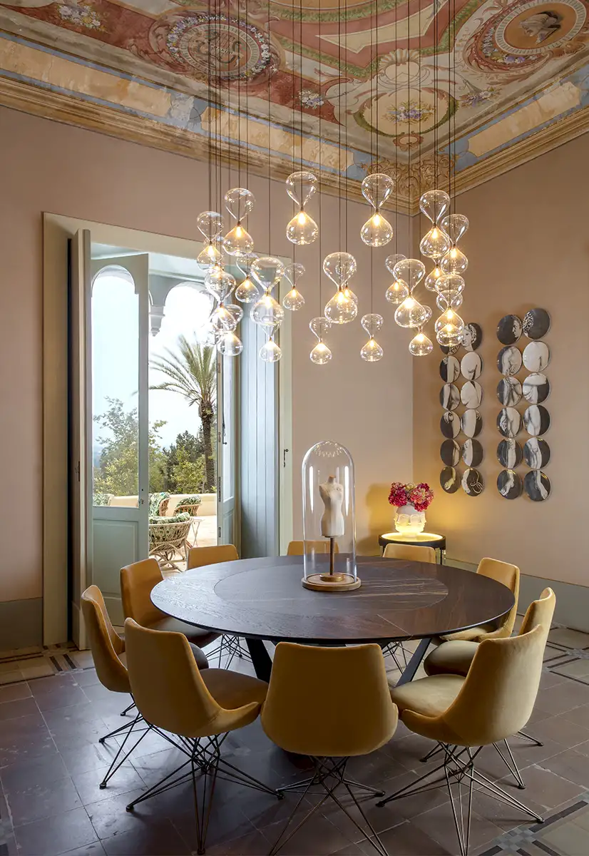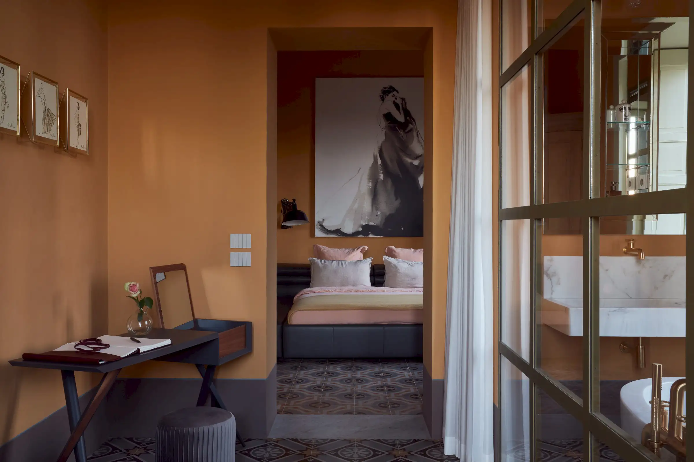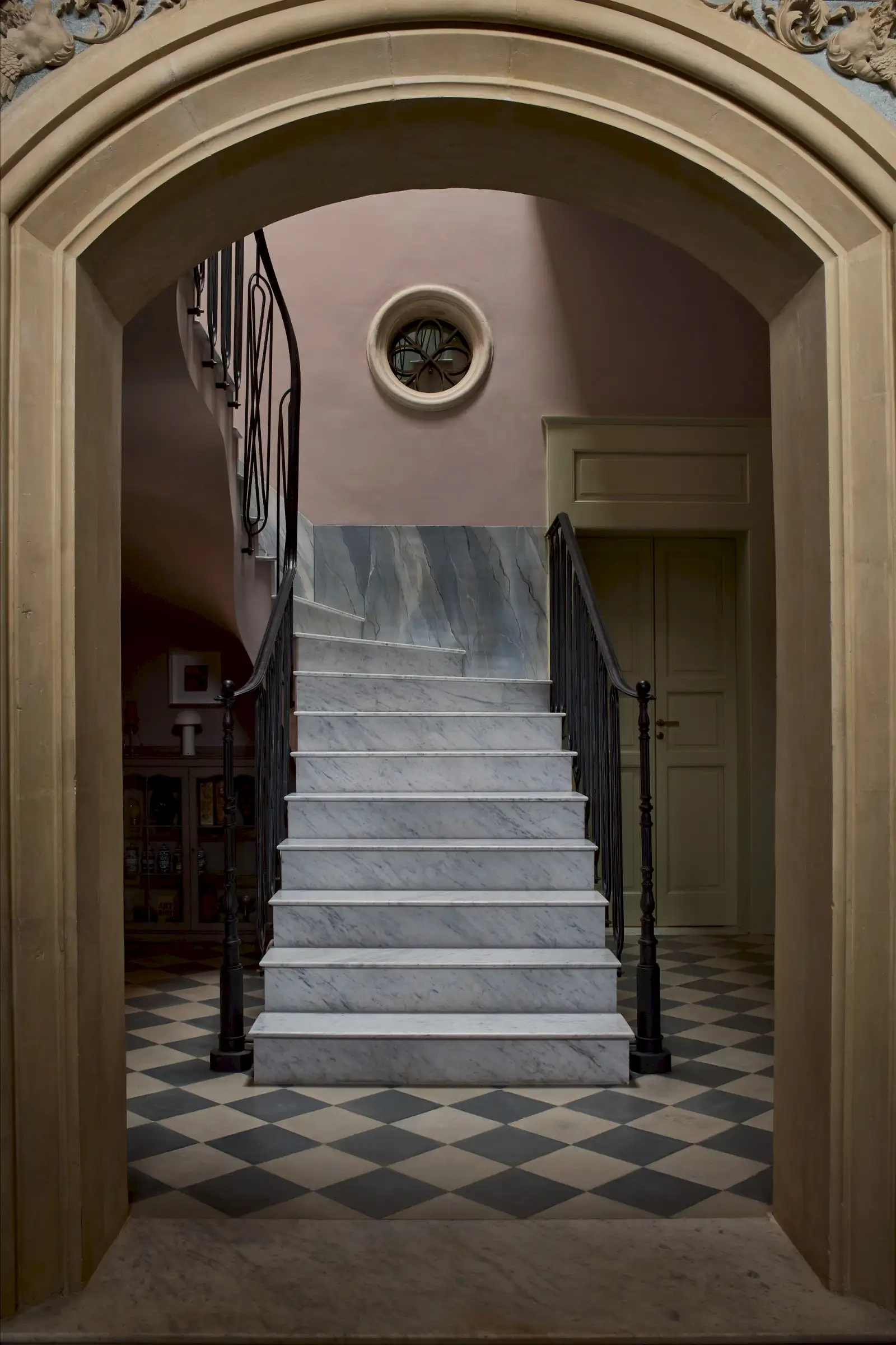 The ground floor of the palazzo has a suite of salons that, as with the tradition of grand European architecture, open one into the next, creating fabulous sight lines and bringing light onto the restored ceramic floor tiles. Here, guests will find sociable seating areas and quiet reading corners.