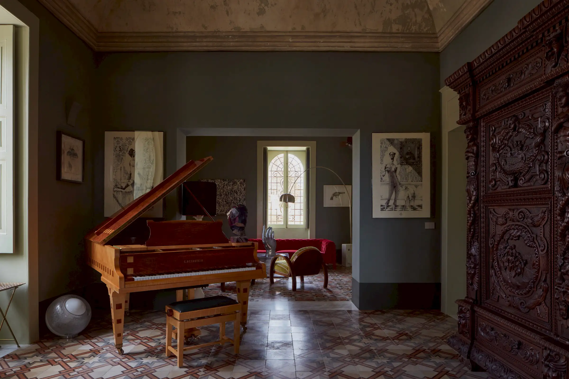 A music room with a 1902 Beckstein grand piano is the perfect spot for entertainment and relaxation, likewise the lower-ground floor cinema, both in the Palazzo. Workshops in the atelier cater to different art forms and there are plenty of sociable seating areas as well as quiet reading corners throughout the estate, both inside and out.