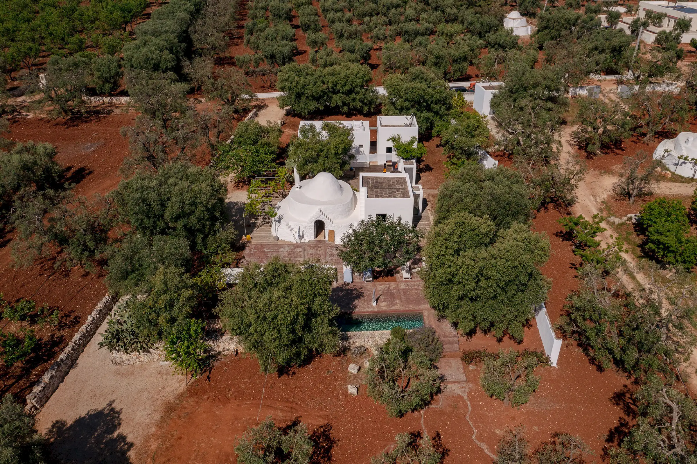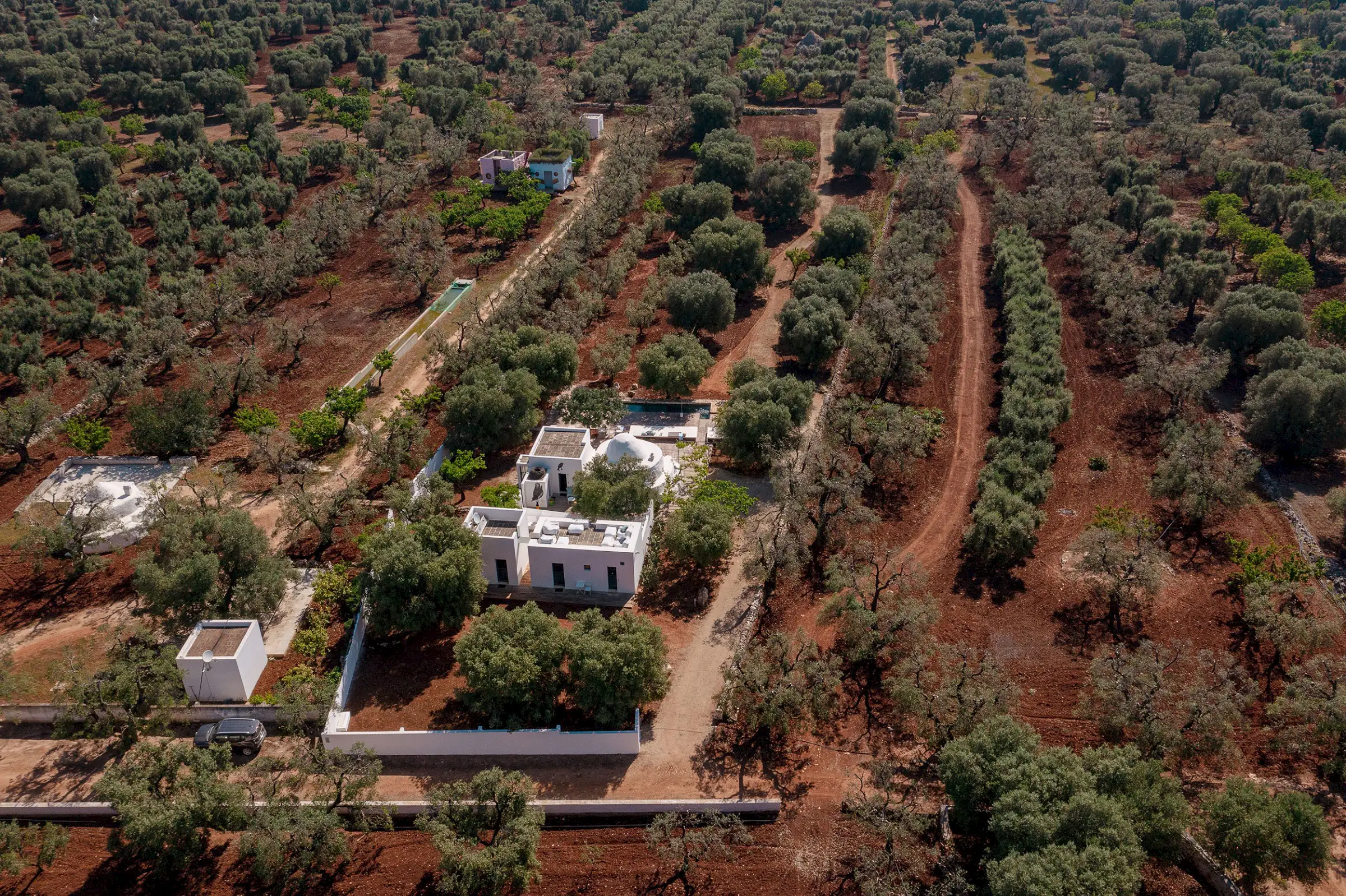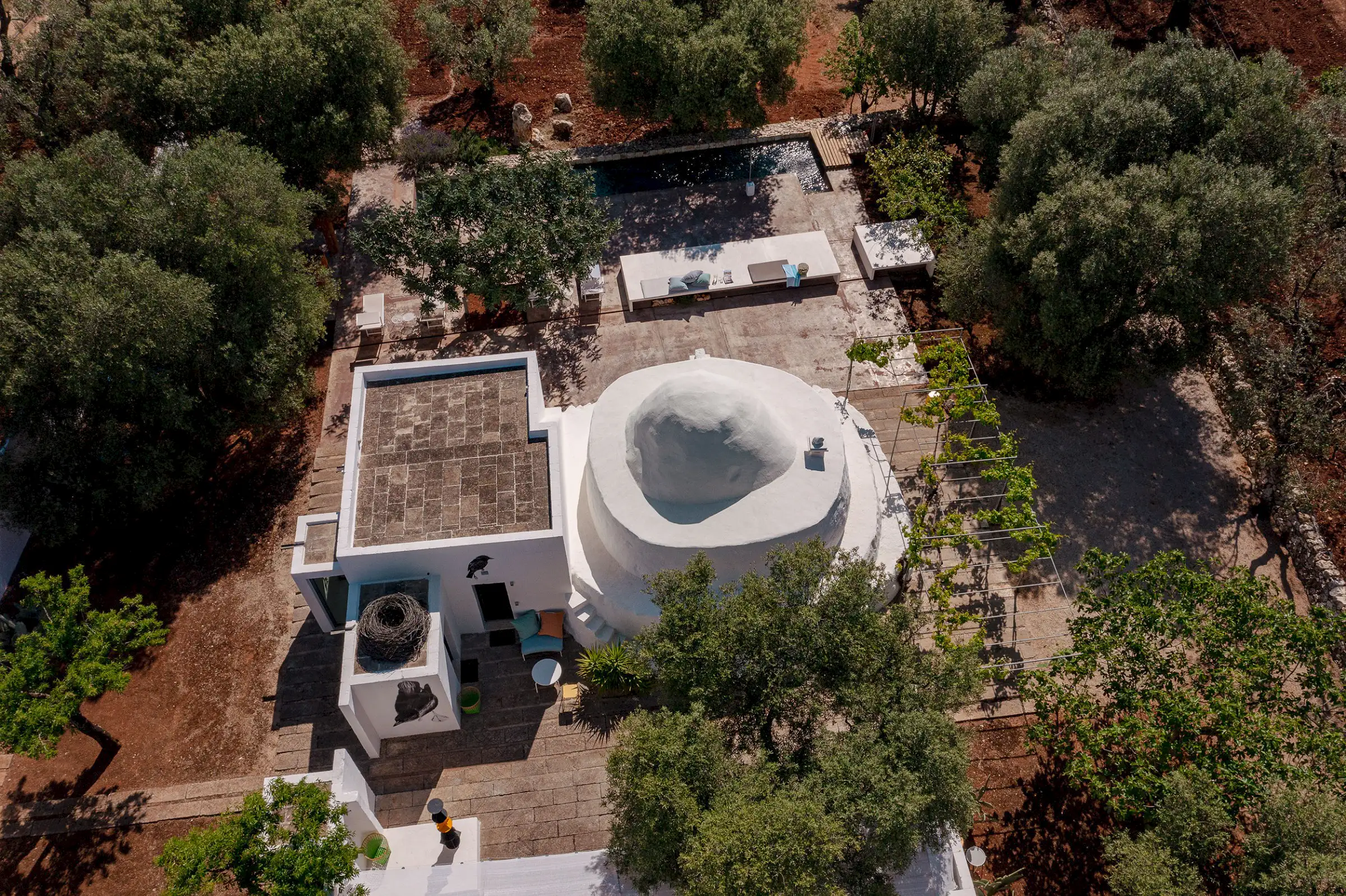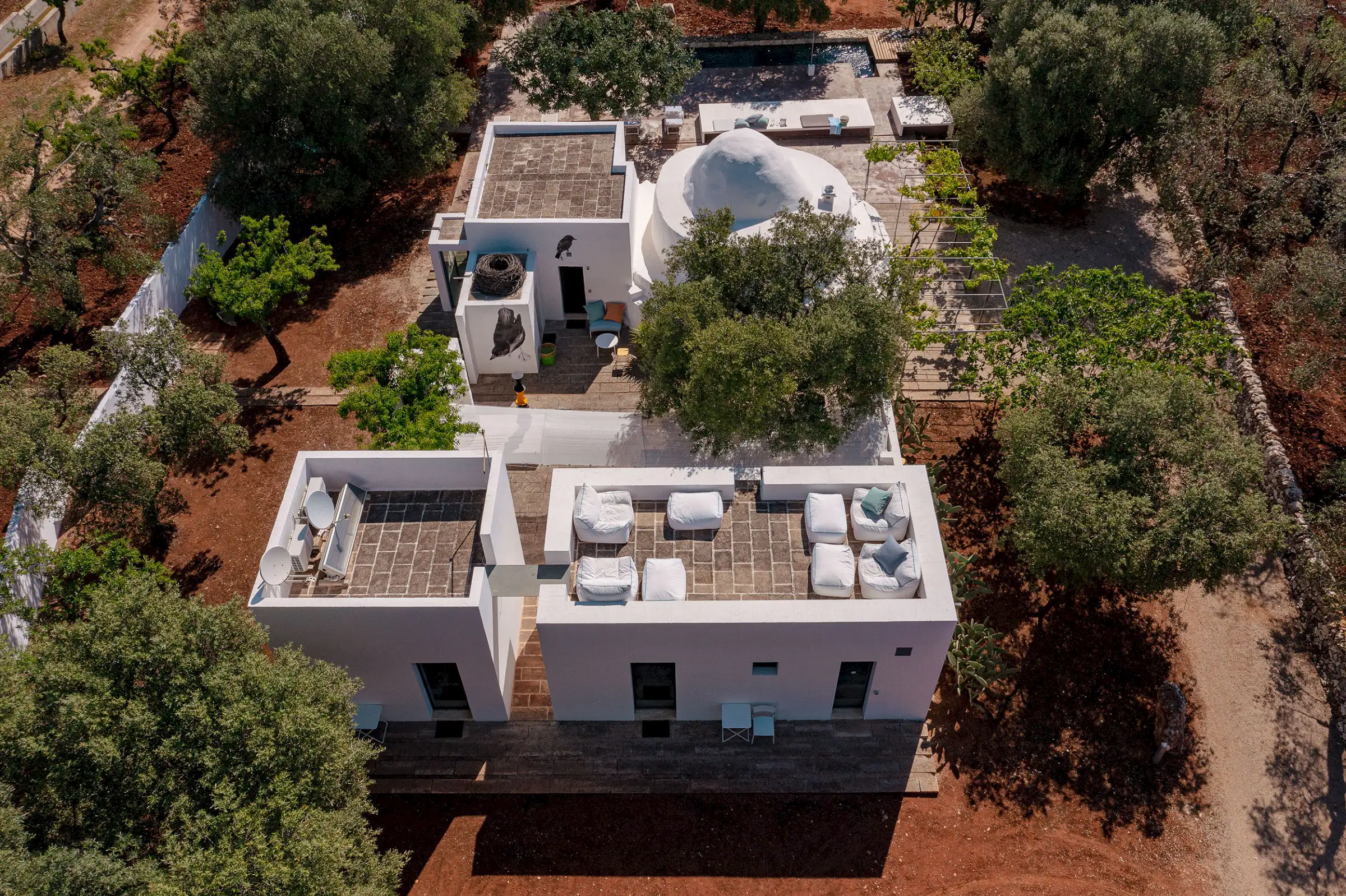 Il Pettirosso is a unique property designed by an eminent artist-architect. Beautifully located in the unspoiled Carovigno countryside, it is surrounded by olive groves, moments from the Adriatic.