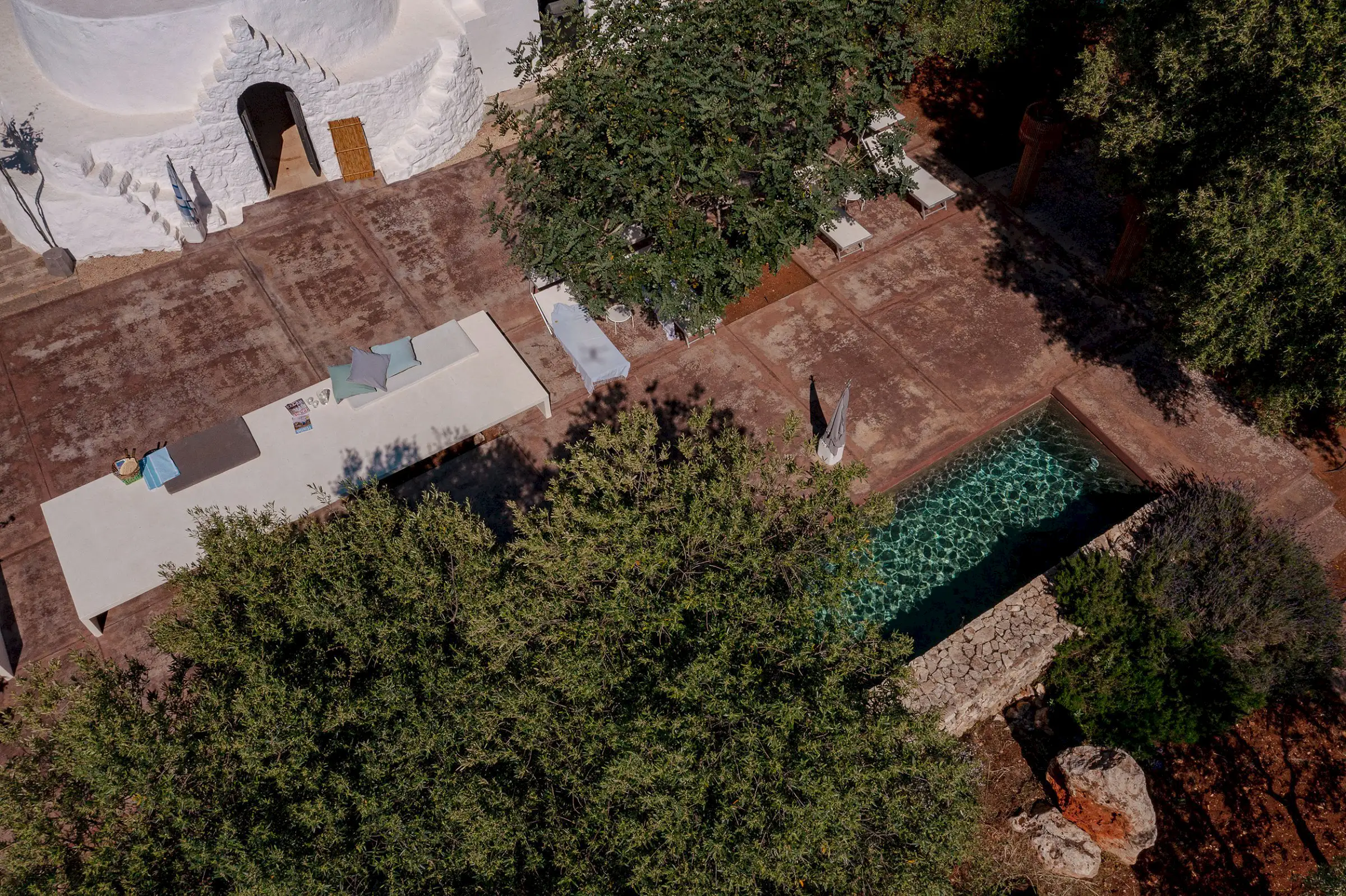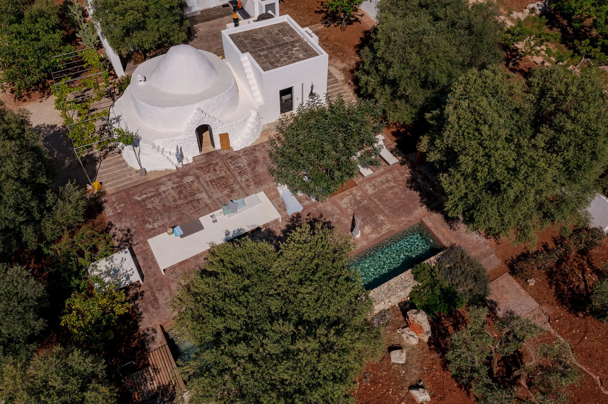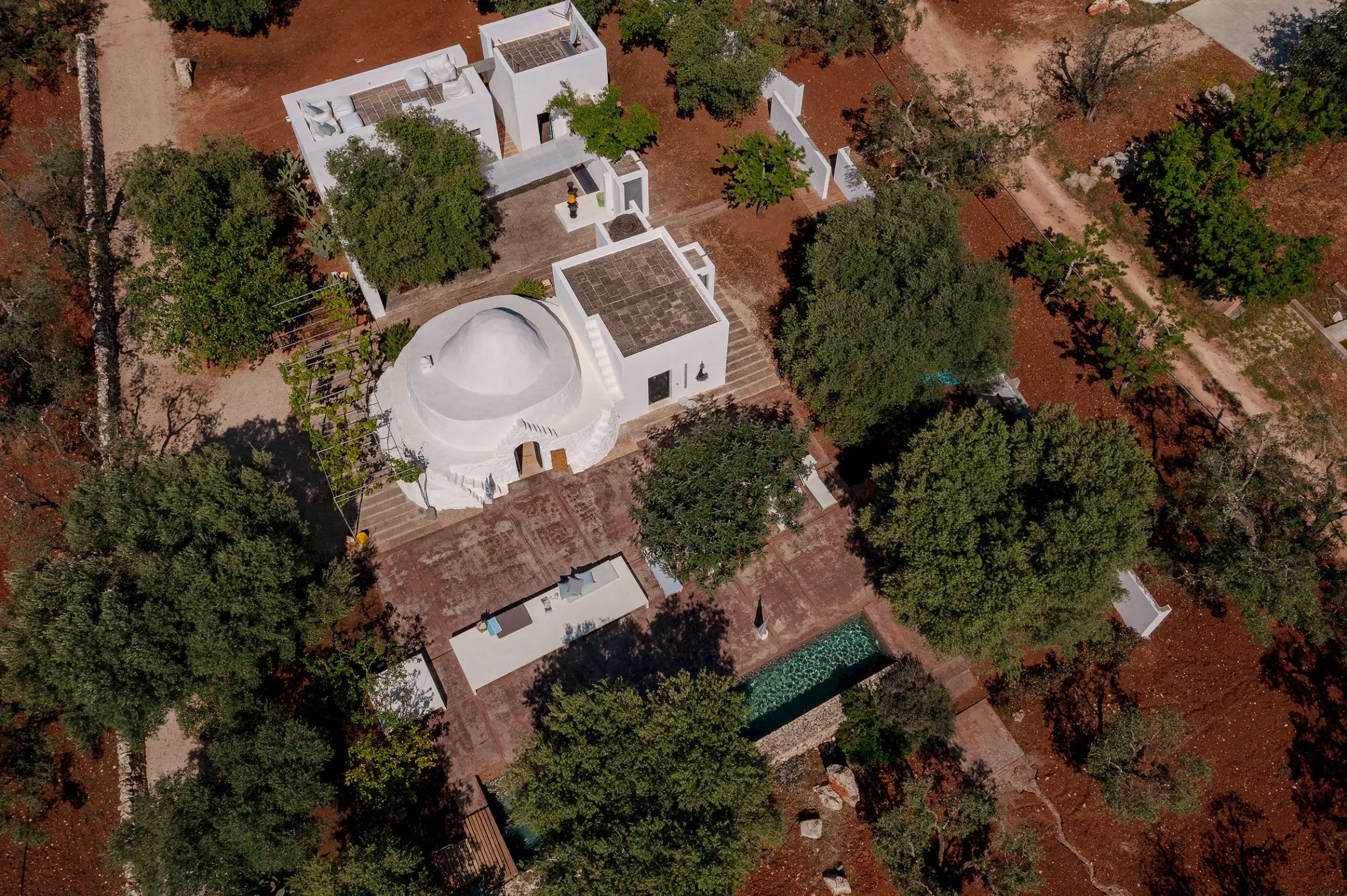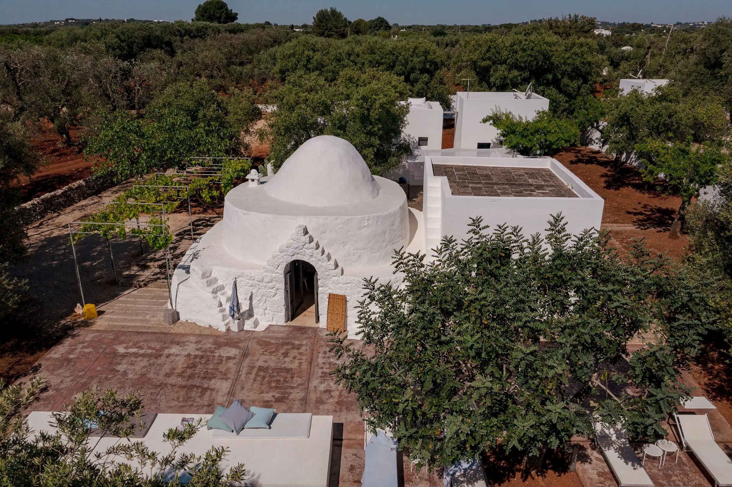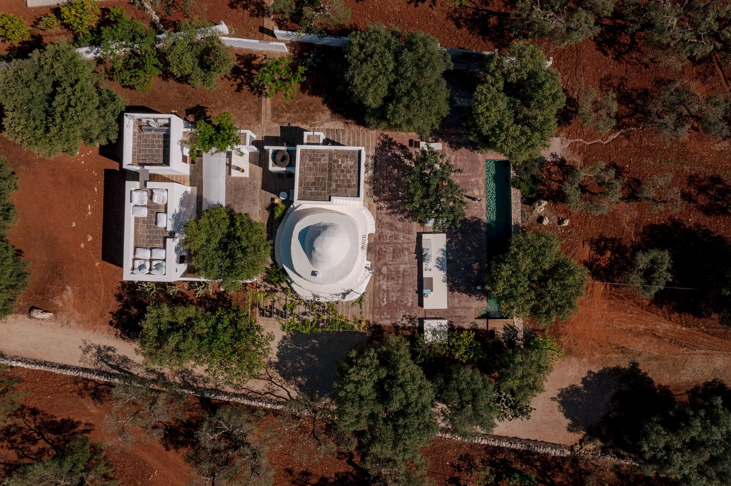 Il Pettirosso is a unique property designed by an eminent artist-architect. Beautifully located in the unspoiled Carovigno countryside, it is surrounded by olive groves, moments from the Adriatic.