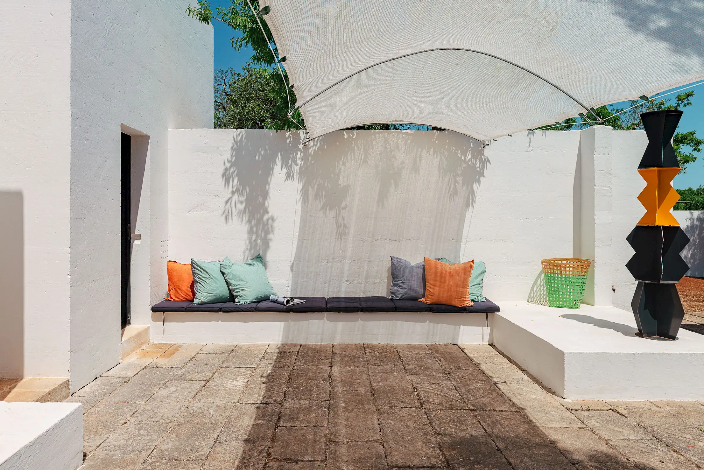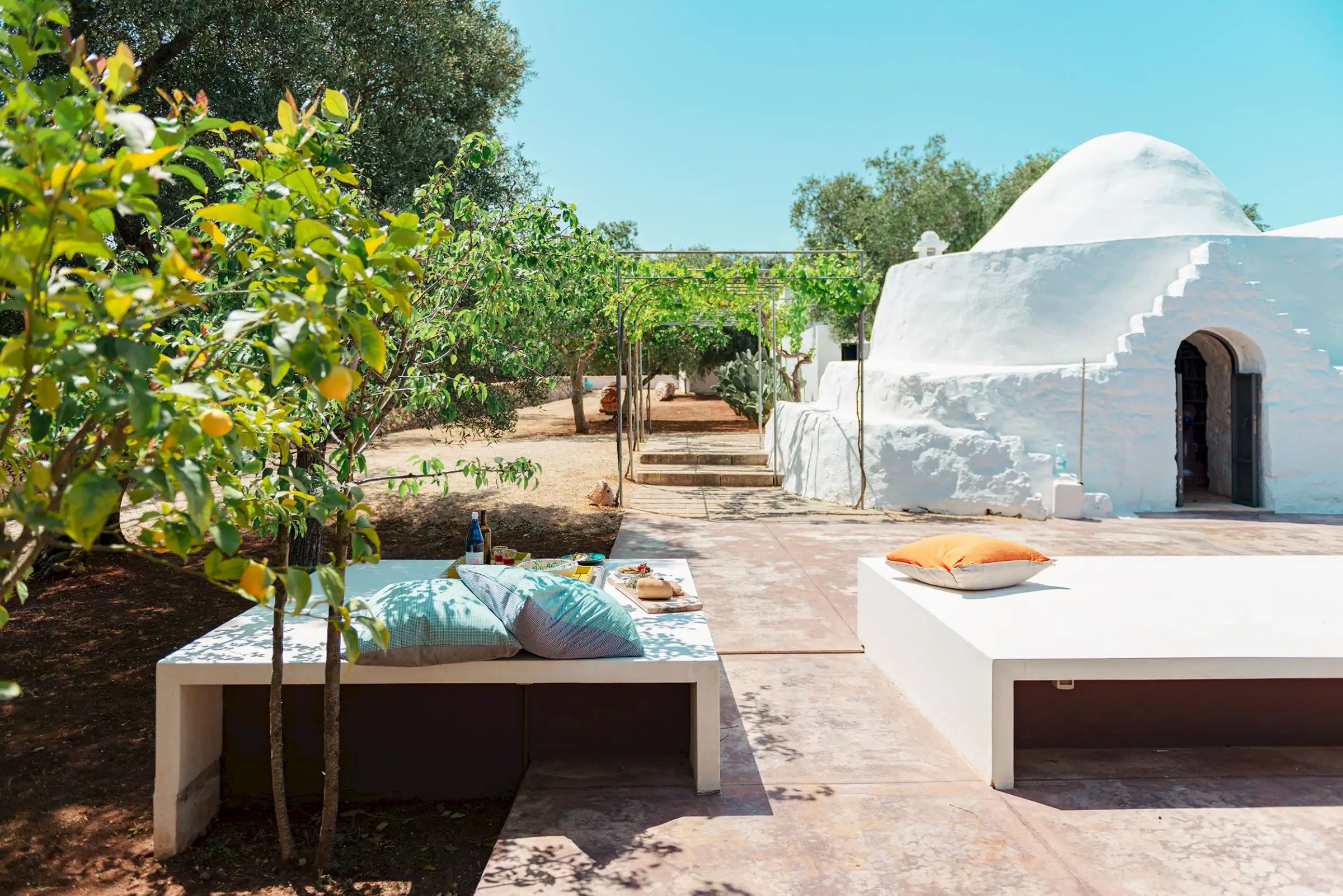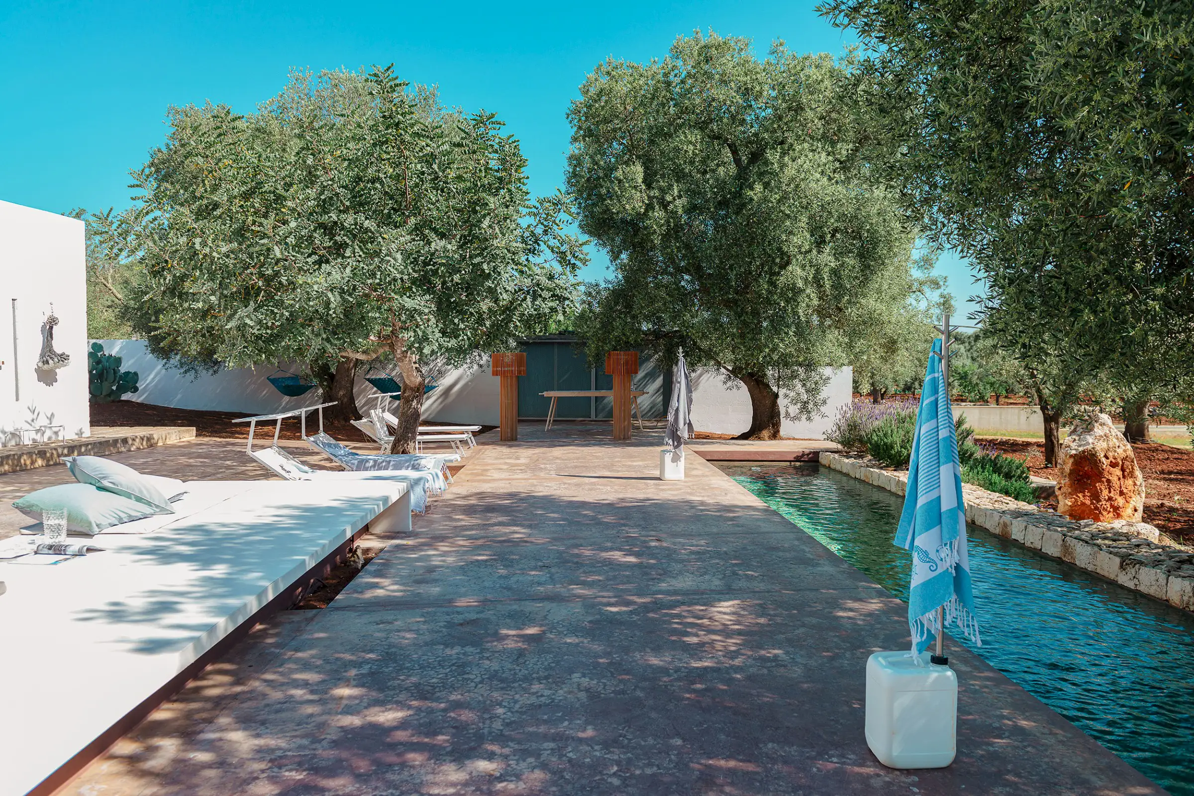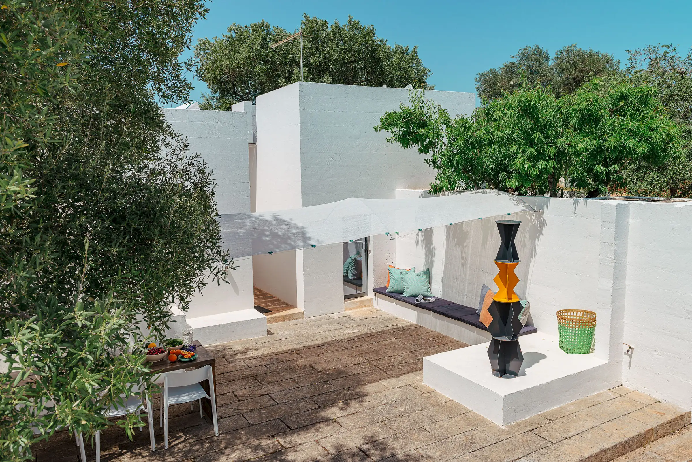 Il Pettirosso is a unique property designed by an eminent artist-architect. Beautifully located in the unspoiled Carovigno countryside, it is surrounded by olive groves, moments from the Adriatic.