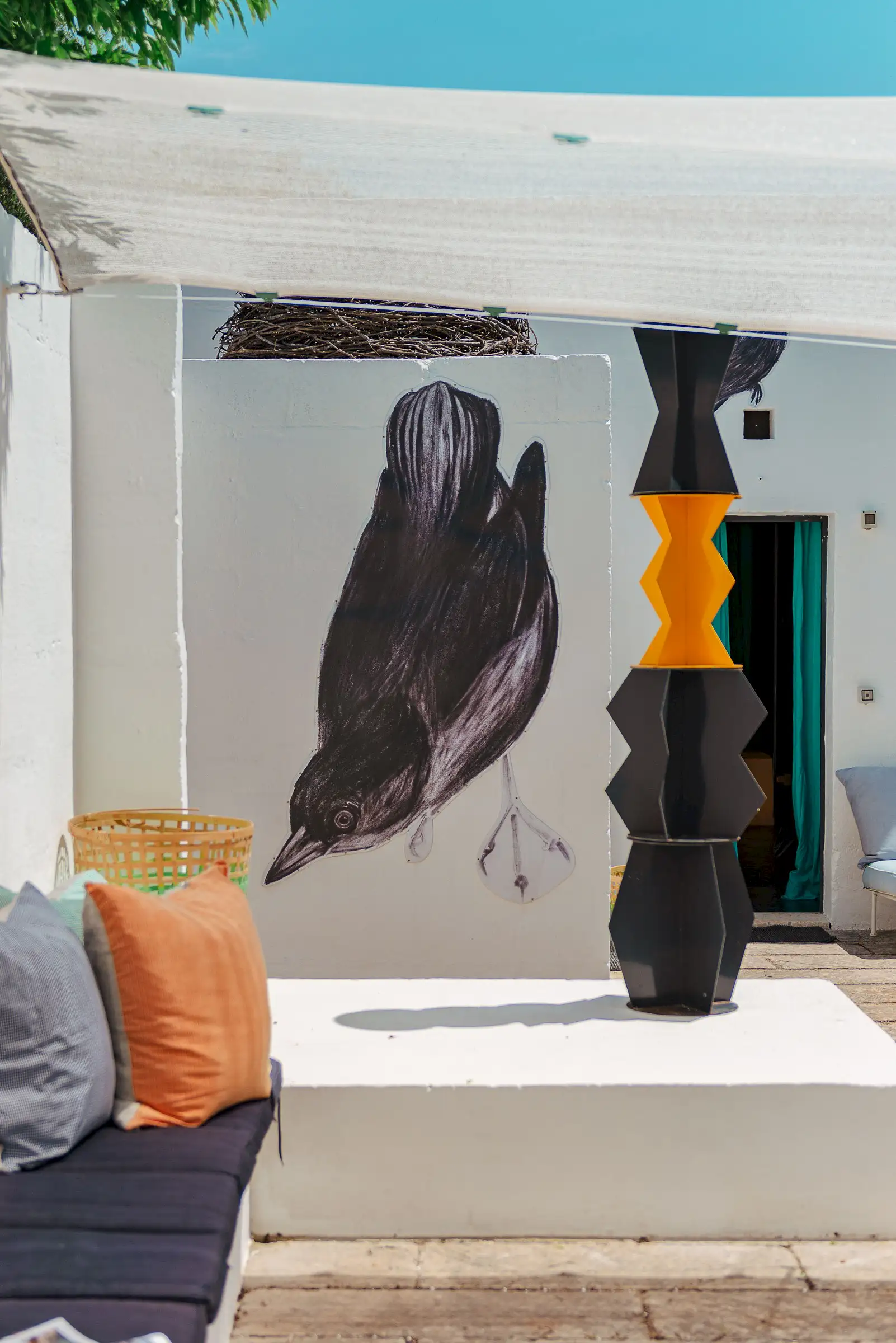 Site-specific artworks are dotted in and around the property, which is a playful, sculptural mix of varying shapes and heights, gently connected by stairs and narrow walkways. The central themes are nature and art, which harmoniously co-exist.