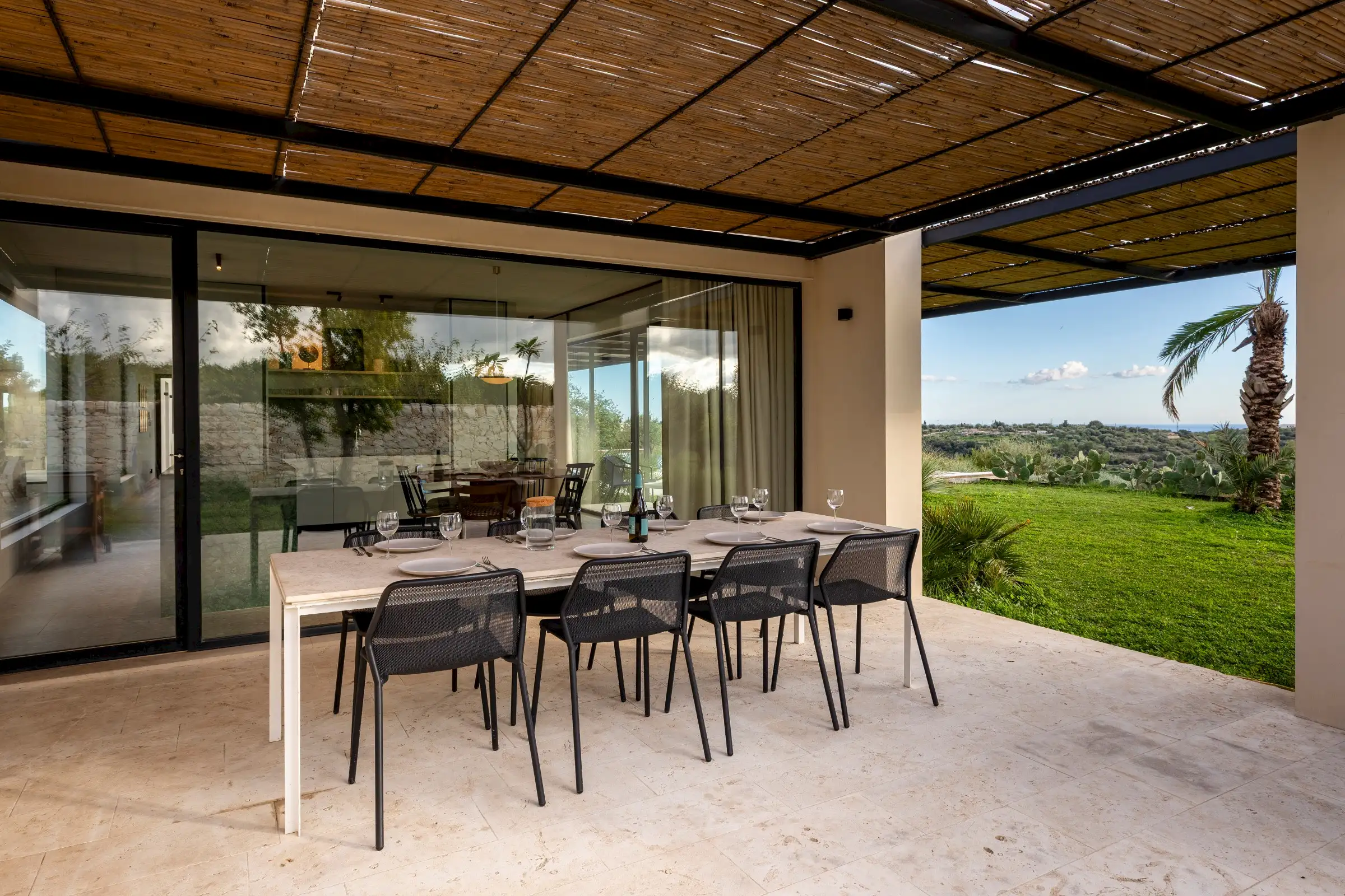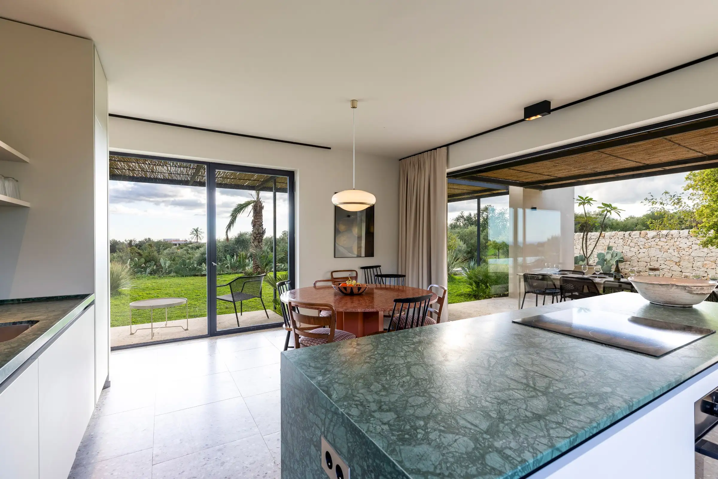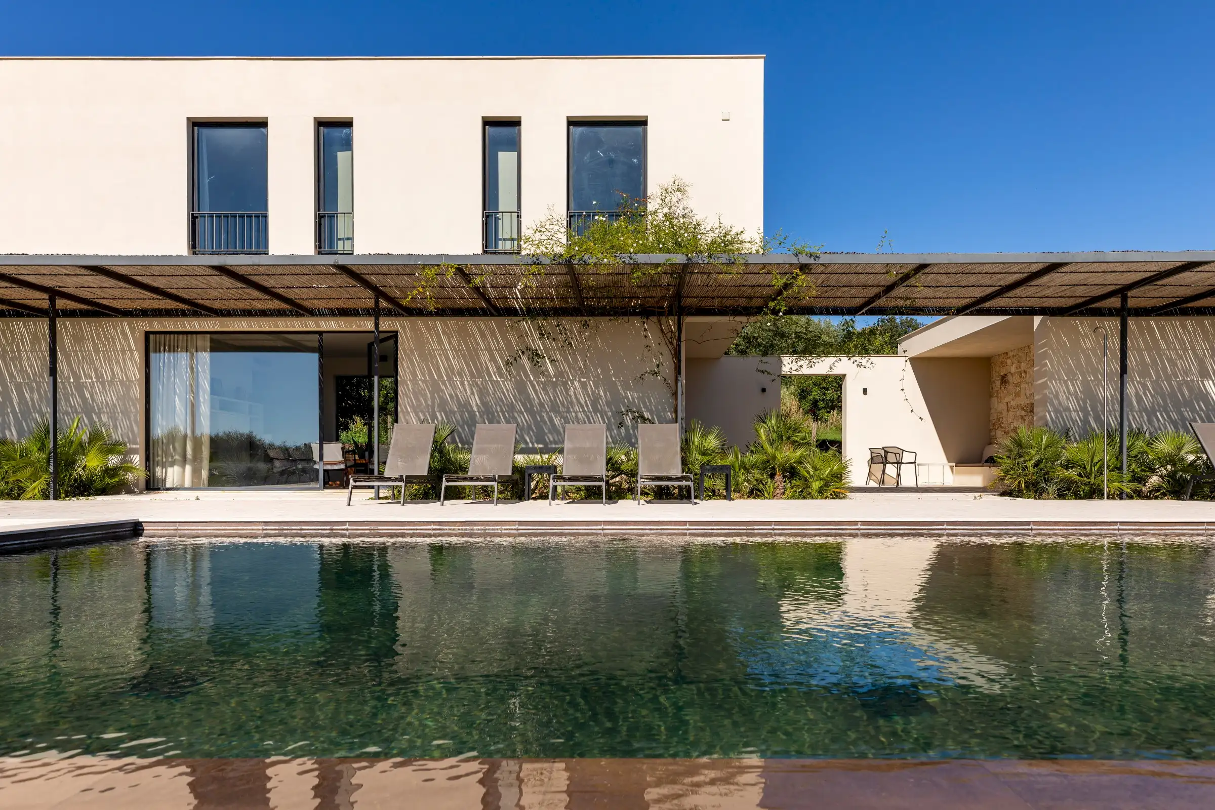 This is a house that encompasses all the brilliance of the Mediterranean’s biggest island. Head into Noto, Modica or Syracusa for a drink, dinner or to gaze at the baroque architecture, remembering to dip into the cool of the interiors. Spend a day at a beach club or discover the wilder shores of the Vendicari Nature Reserve, go for a wine tasting or simply relax by the pool admiring the view.