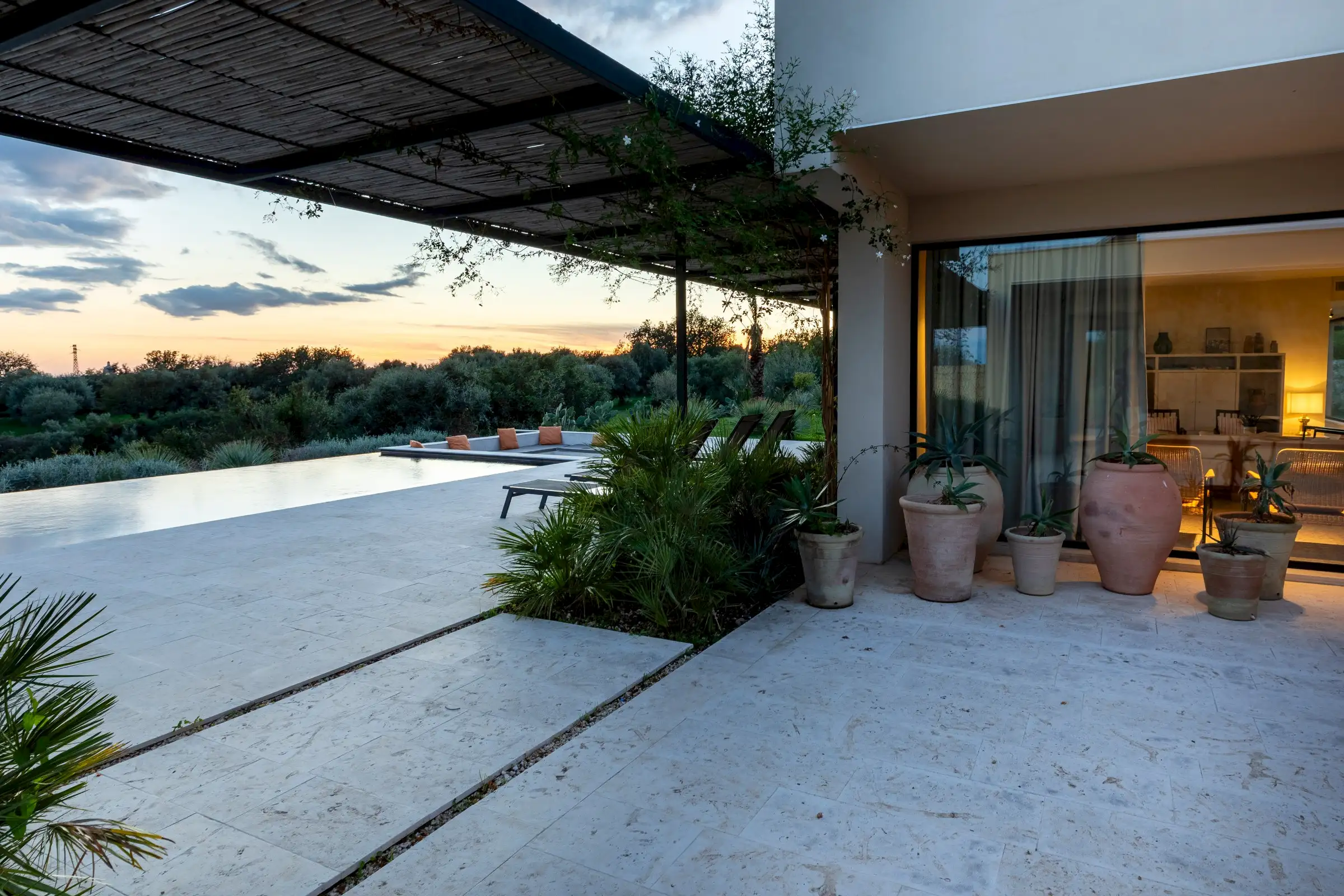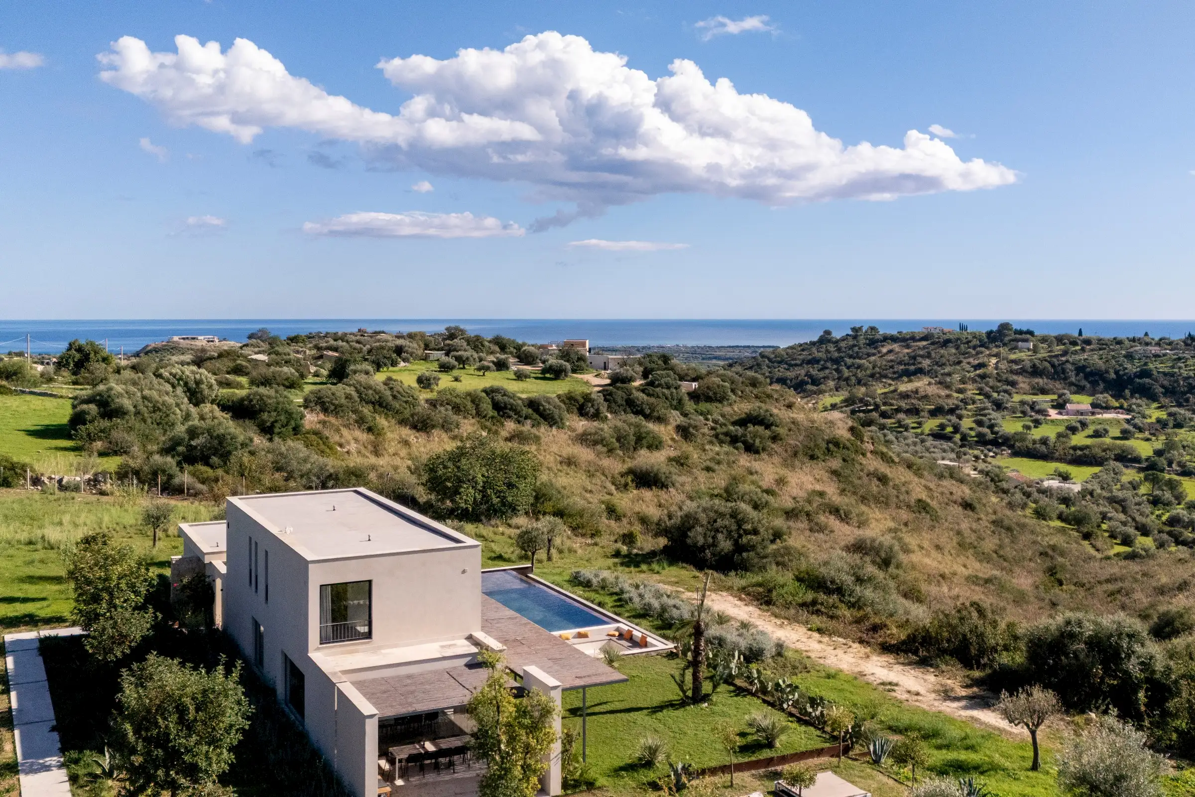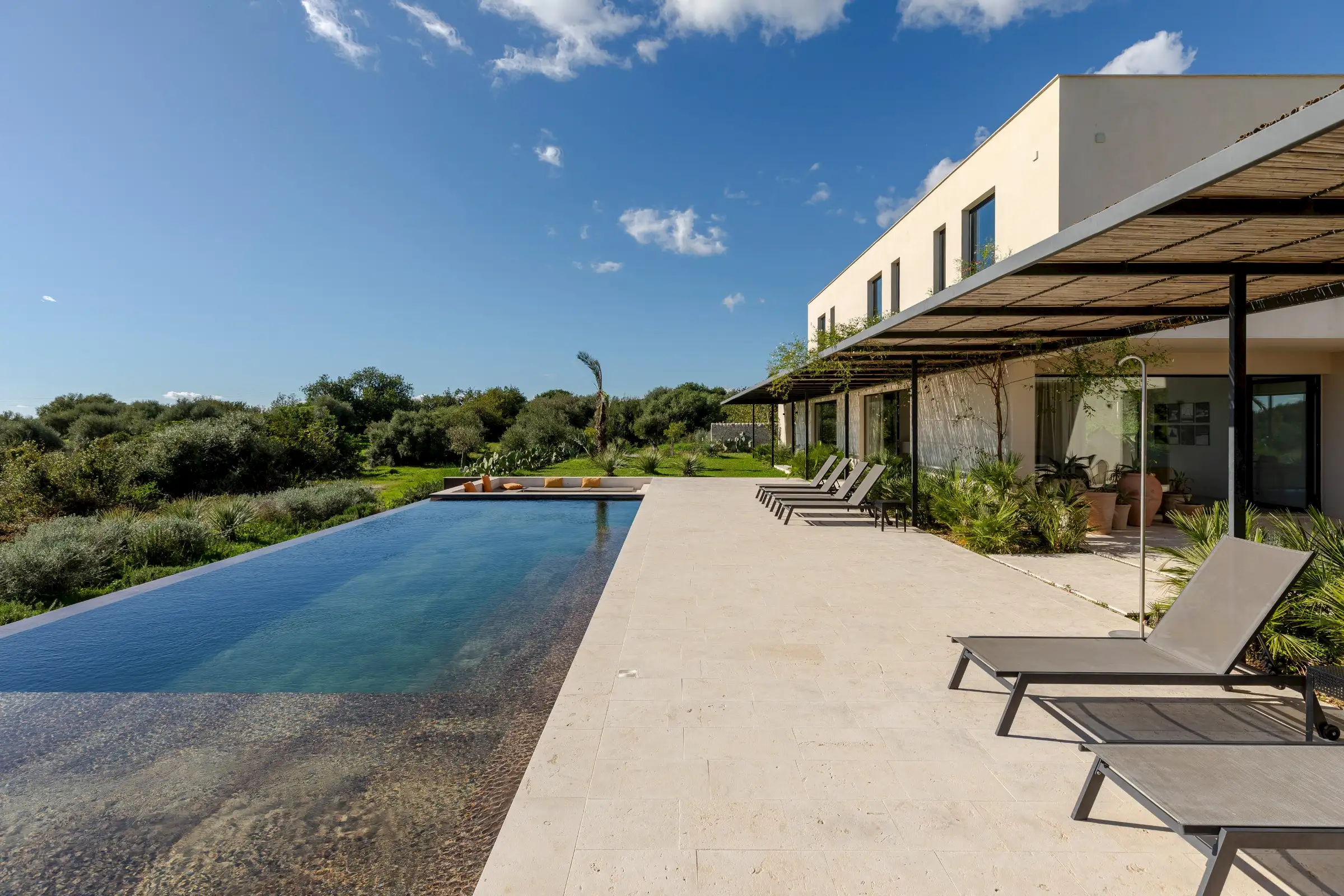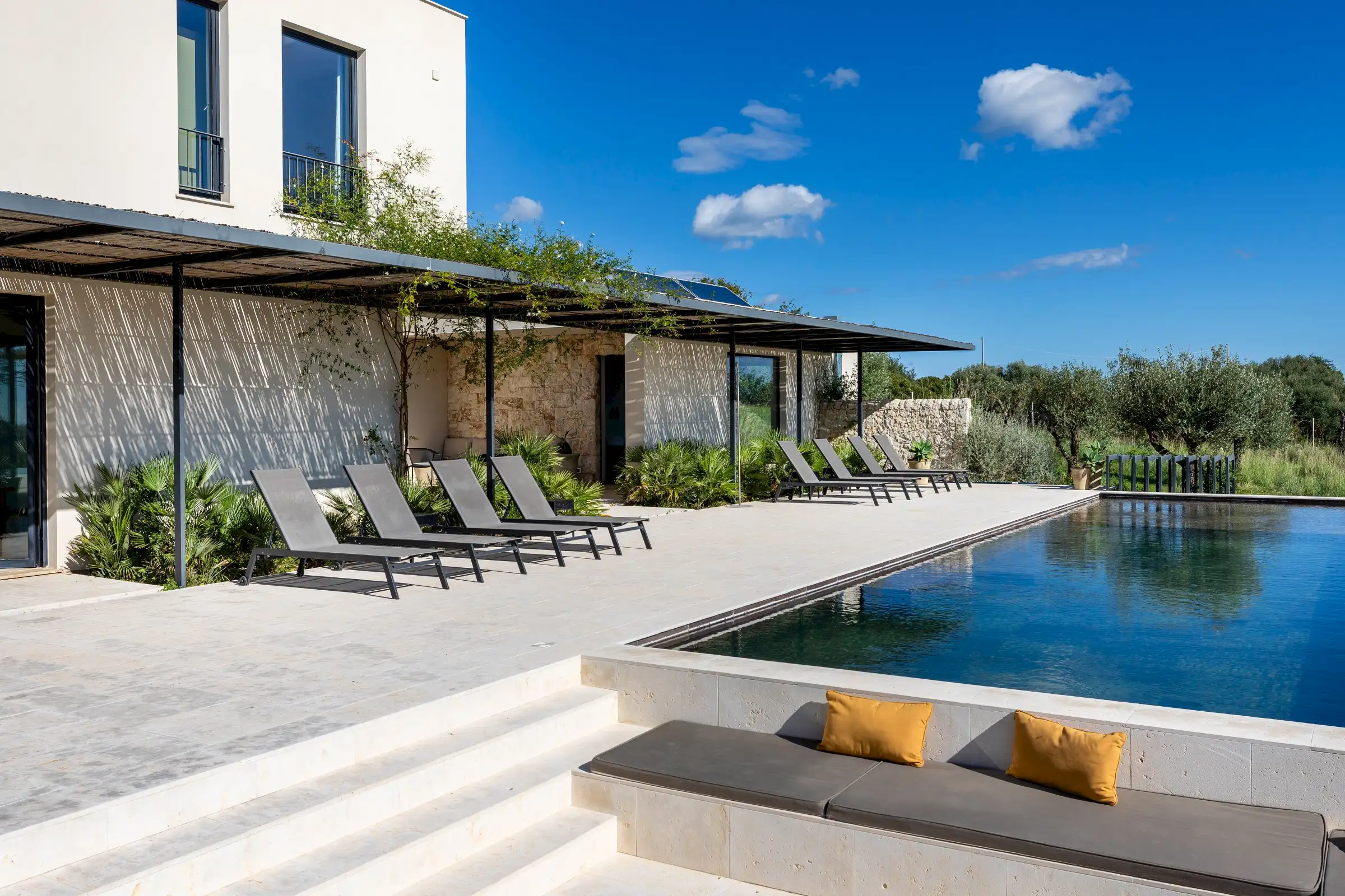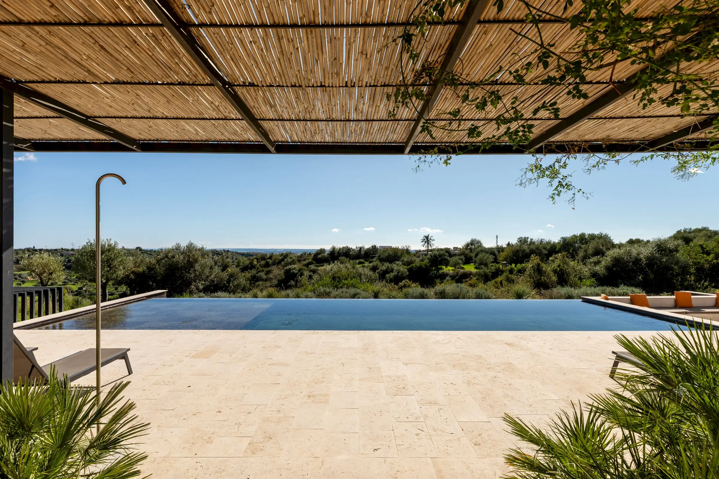 The 15m-long infinity pool has Instagram-worthy views over the dune-like hills studded with olive trees to the sea which is just five minutes away by car.