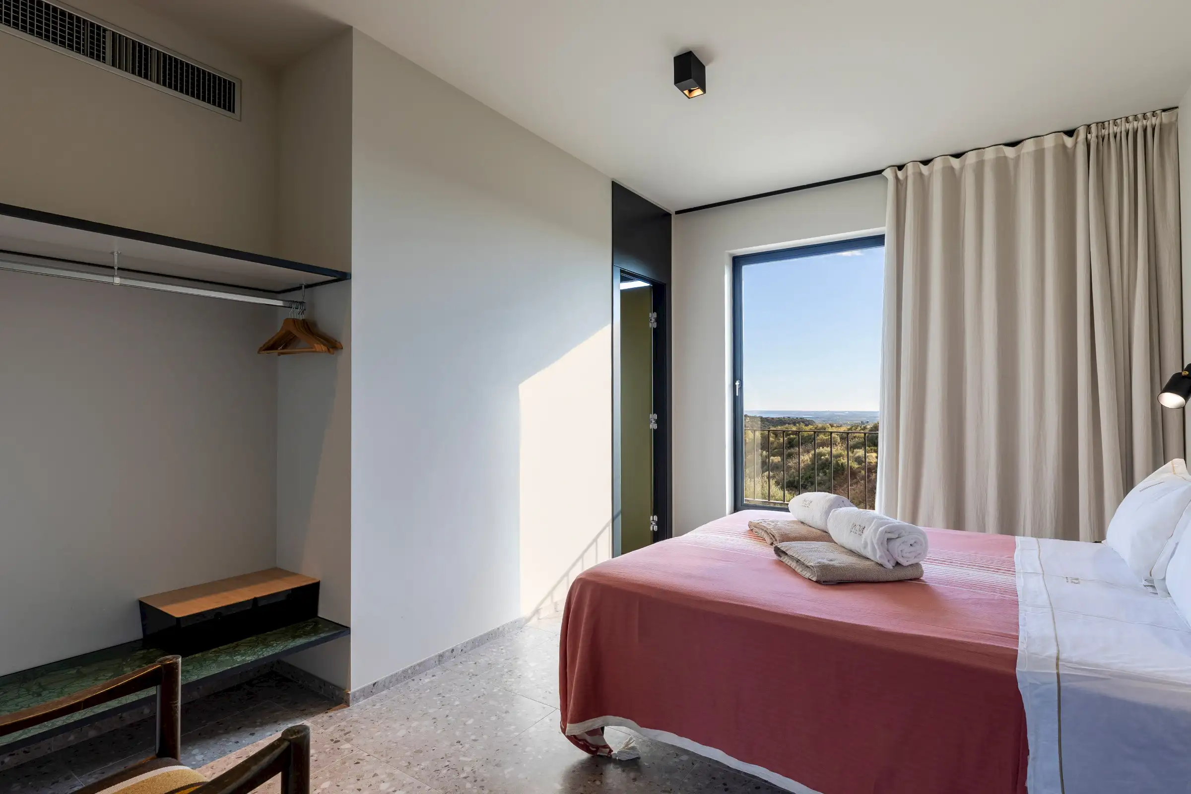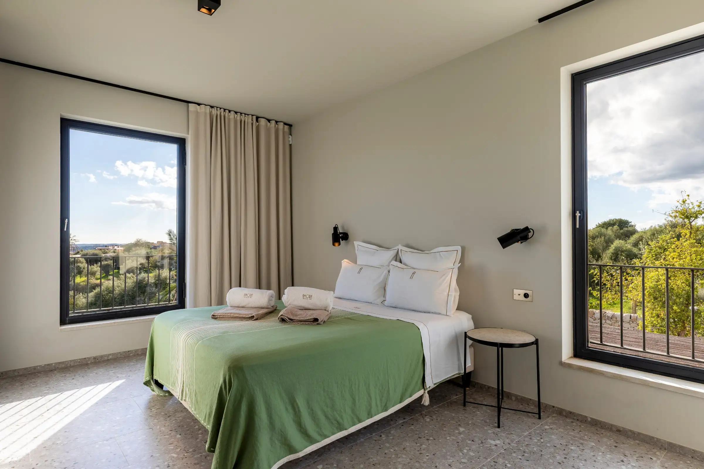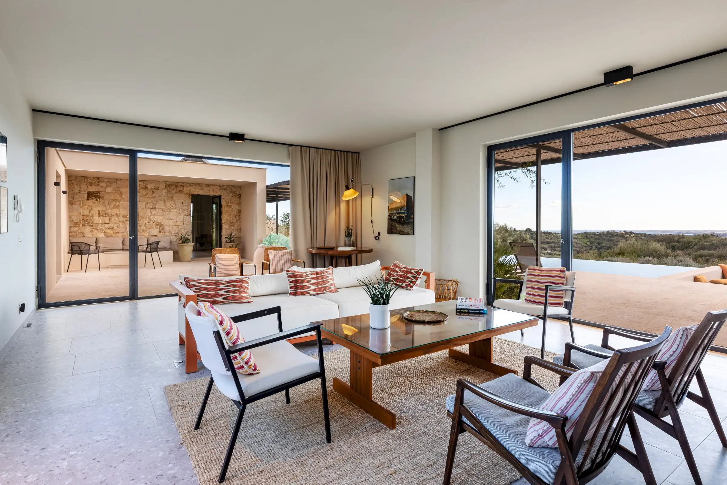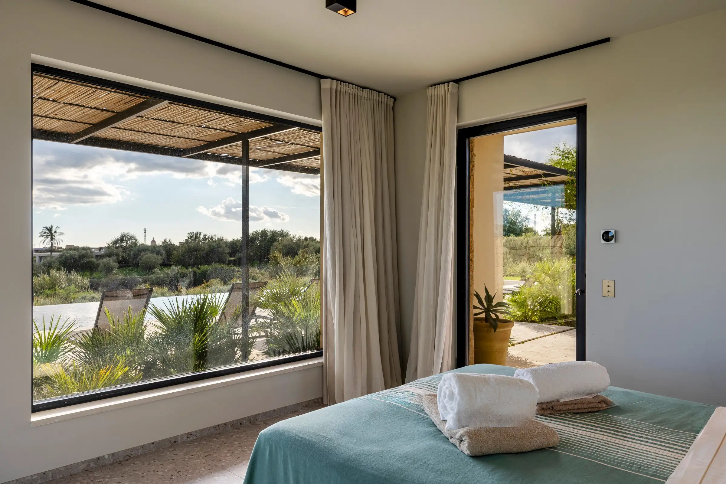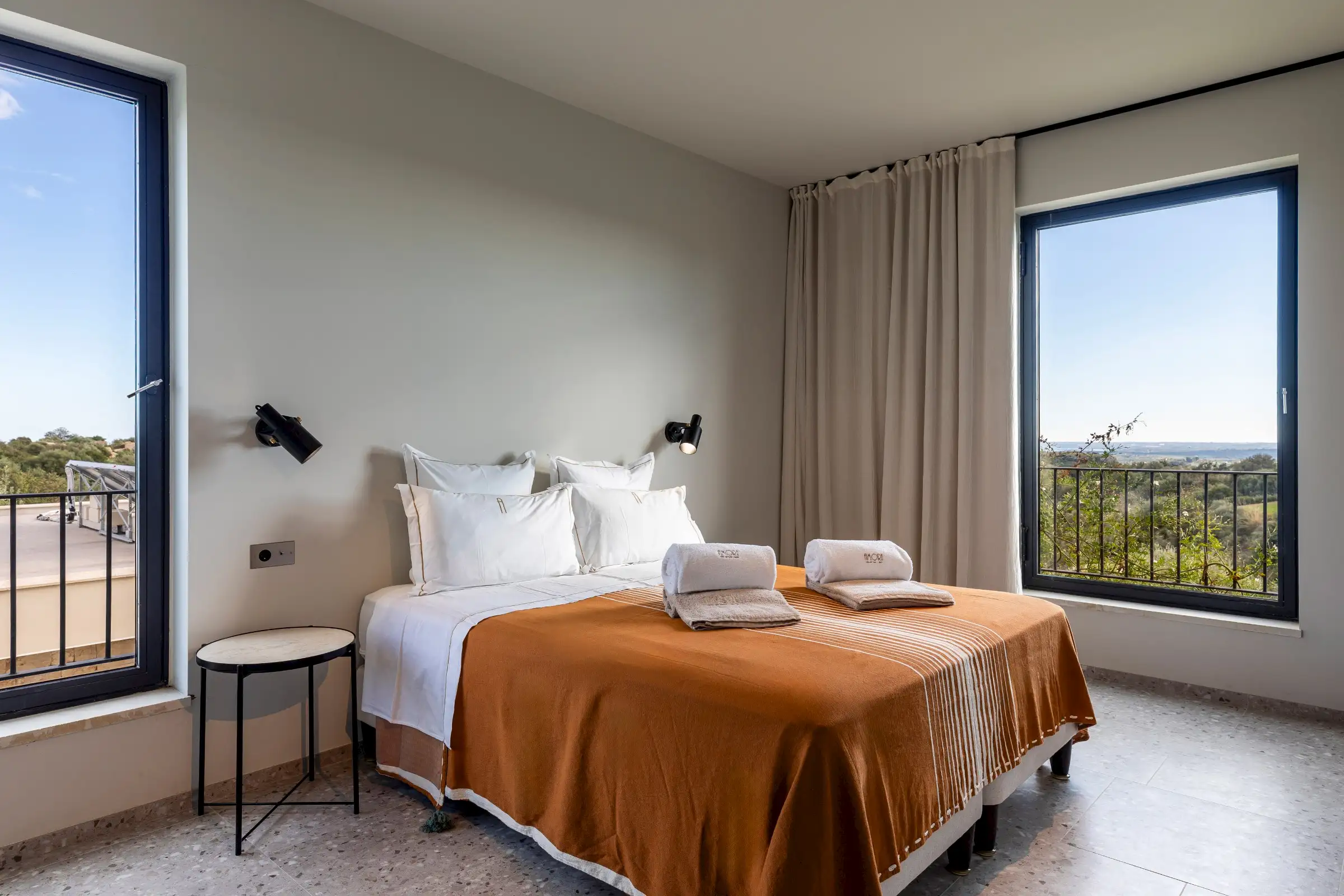 The 15m-long infinity pool has Instagram-worthy views over the dune-like hills studded with olive trees to the sea which is just five minutes away by car.