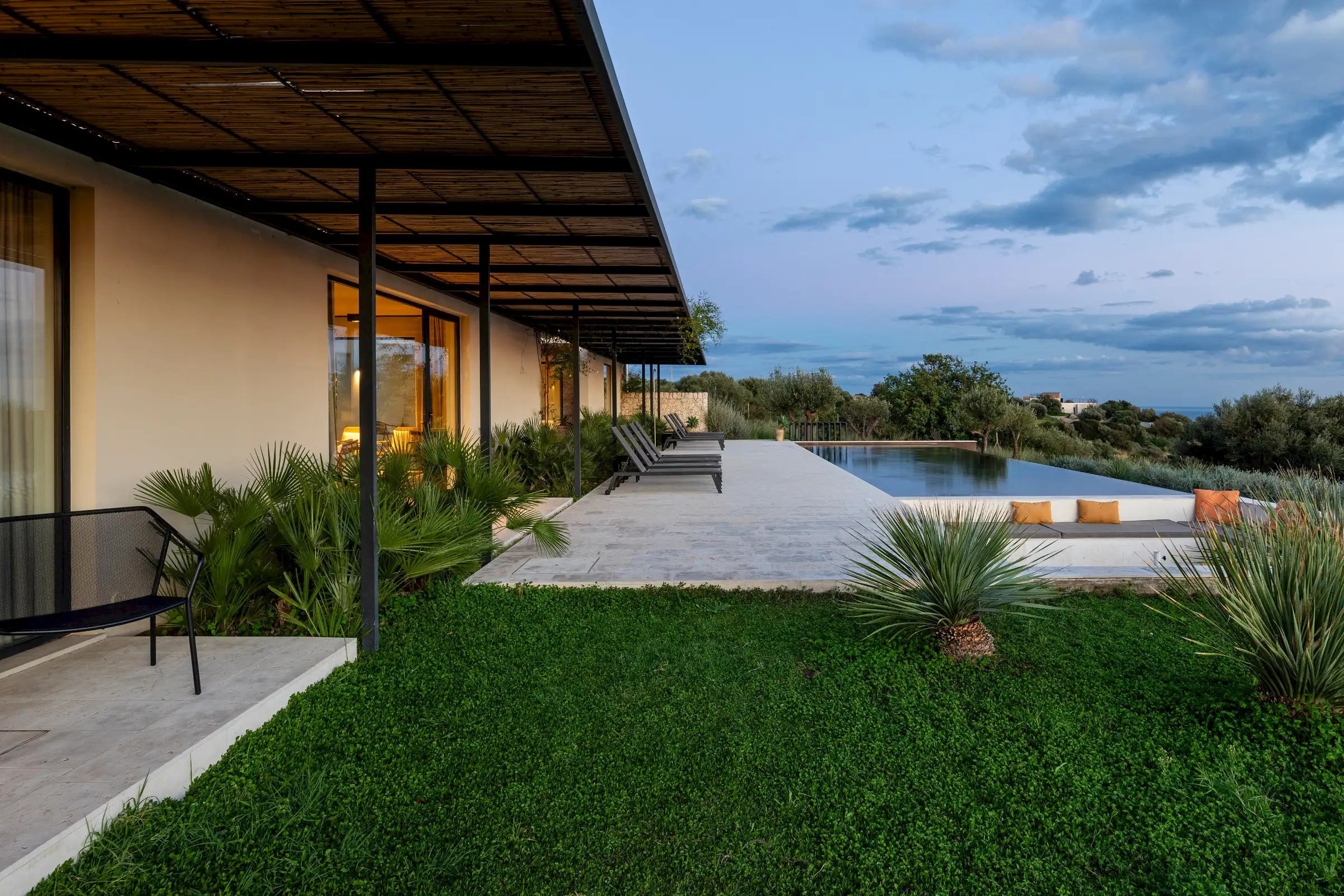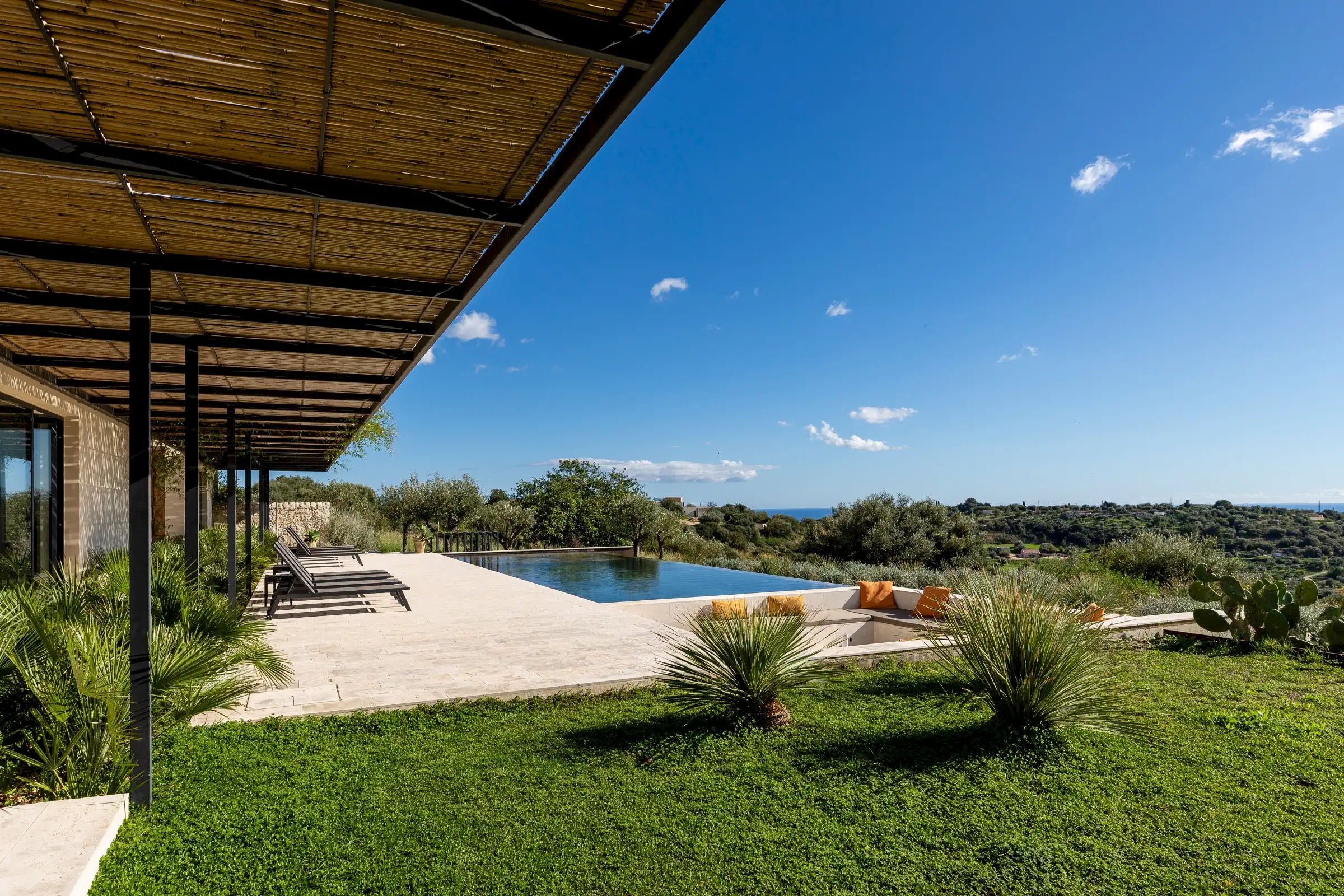 Augusta is a contemporary villa for eight in the hills near Noto, the beautiful white baroque town low down on Sicily’s east coast.