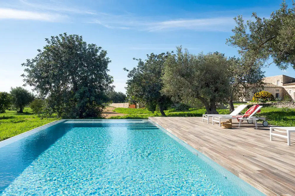 Set in a sunny, peaceful rural spot near Scicli, a charming baroque town and Unesco heritage site, this villa is the ideal retreat for those seeking privacy, comfort and relaxation. Surrounded by a large natural park with typical dry stone walls, La Dimora offers spacious well-equipped terraces and a lovely garden. The infinity pool has a large wooden deck with an open view onto the garden a and lovely gazebo for enjoying shade in the hottest hours of the day.