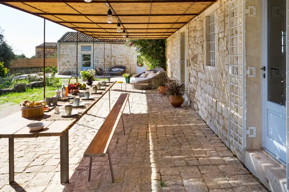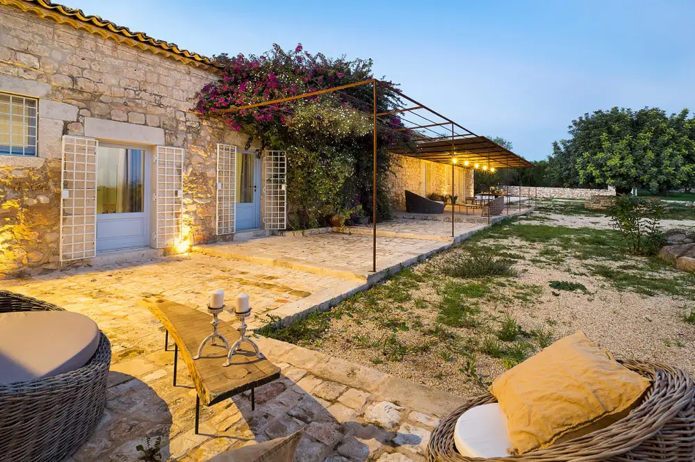 La Dimora is an old rural farmhouse recently been restored with high-quality natural materials and converted into an exclusive private residence. Spread over one level, it includes 6 comfortable bedrooms (one of which is in a loft) with en-suite shower, a large kitchen and a living room with a fireplace. The cosy interior, in perfect harmony with the style of the building, was carefully designed with comfort in mind and comes with air conditioning, Wi-Fi, satellite TV, washing machine and dishwasher. La Dimora is also an excellent base for exploring the beauties of south-east Sicily: from the amazing beaches and characteristic fishing villages of Sampieri, Donnalucata, Punta Secca, Marina di Ragusa, Poropalo and Marzamemi to the delightful baroque towns of Scicli, Modica, Ragusa Ibla, Noto and Syracuse; from the archeological sites of Kamarina and Cava d’Ispica to the Vendicari nature reserve.