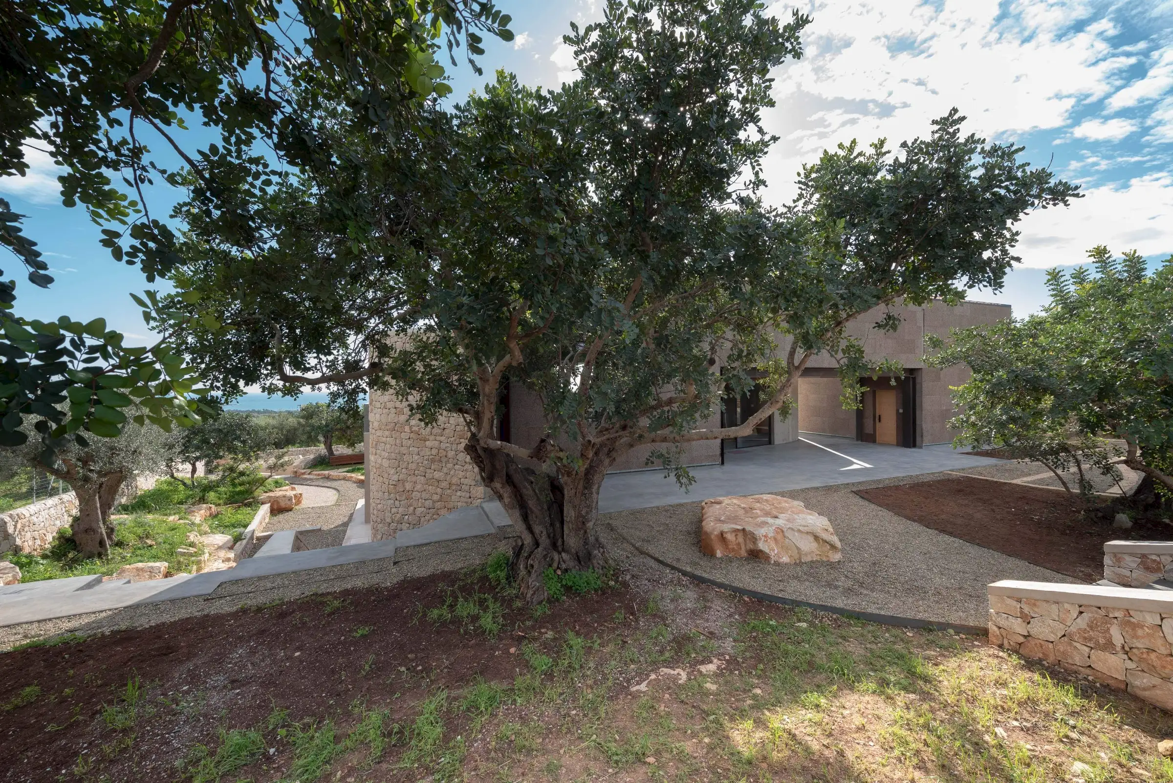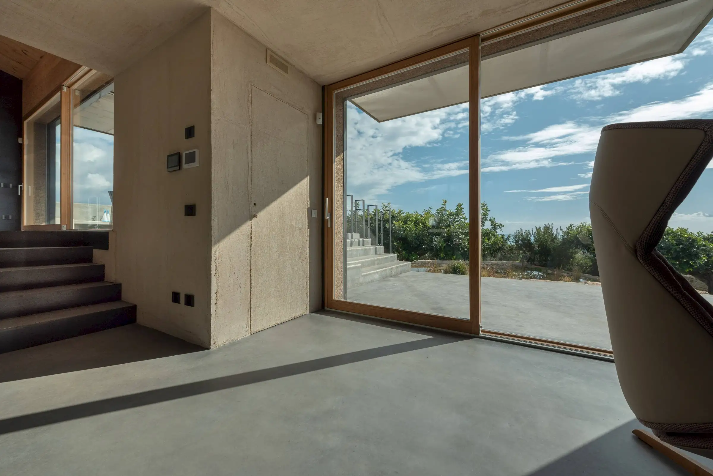 Villa Corchi was finished at the end of 2019 and is a daring architectural project that adheres to the idea that less is more. The position and layout of the property, with its balance of curves and straight lines, vast windows and terraces, is expressly designed to maintain a continuous relationship with the shimmering sea.