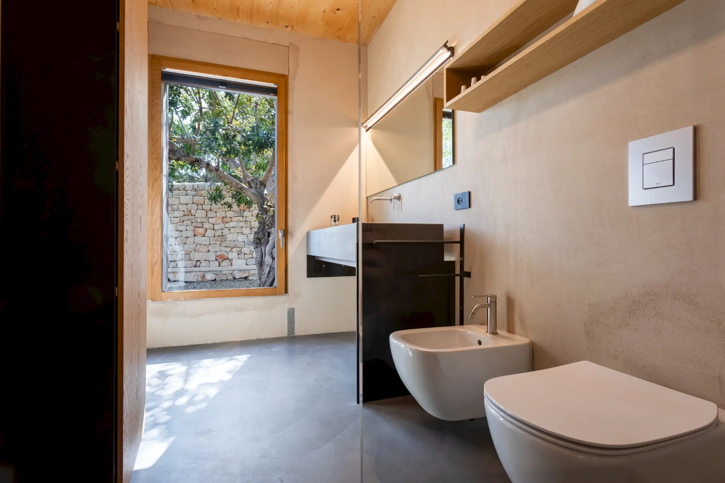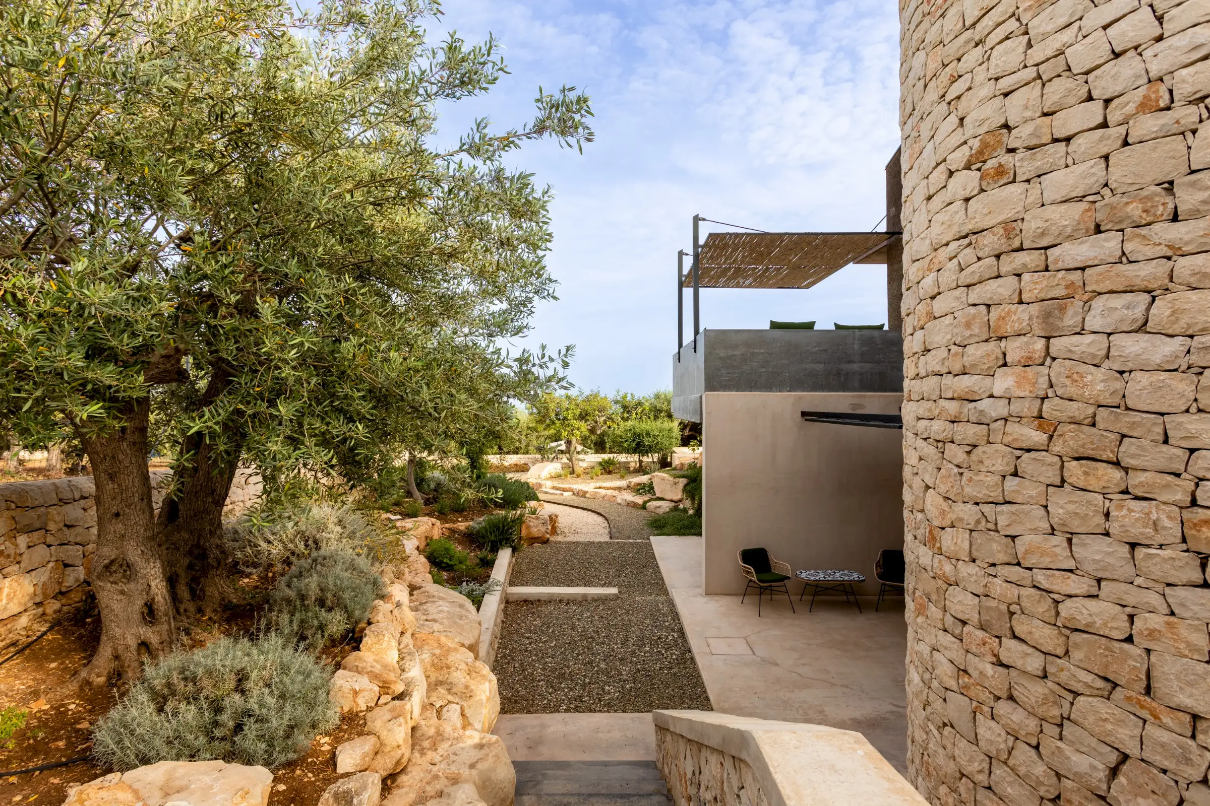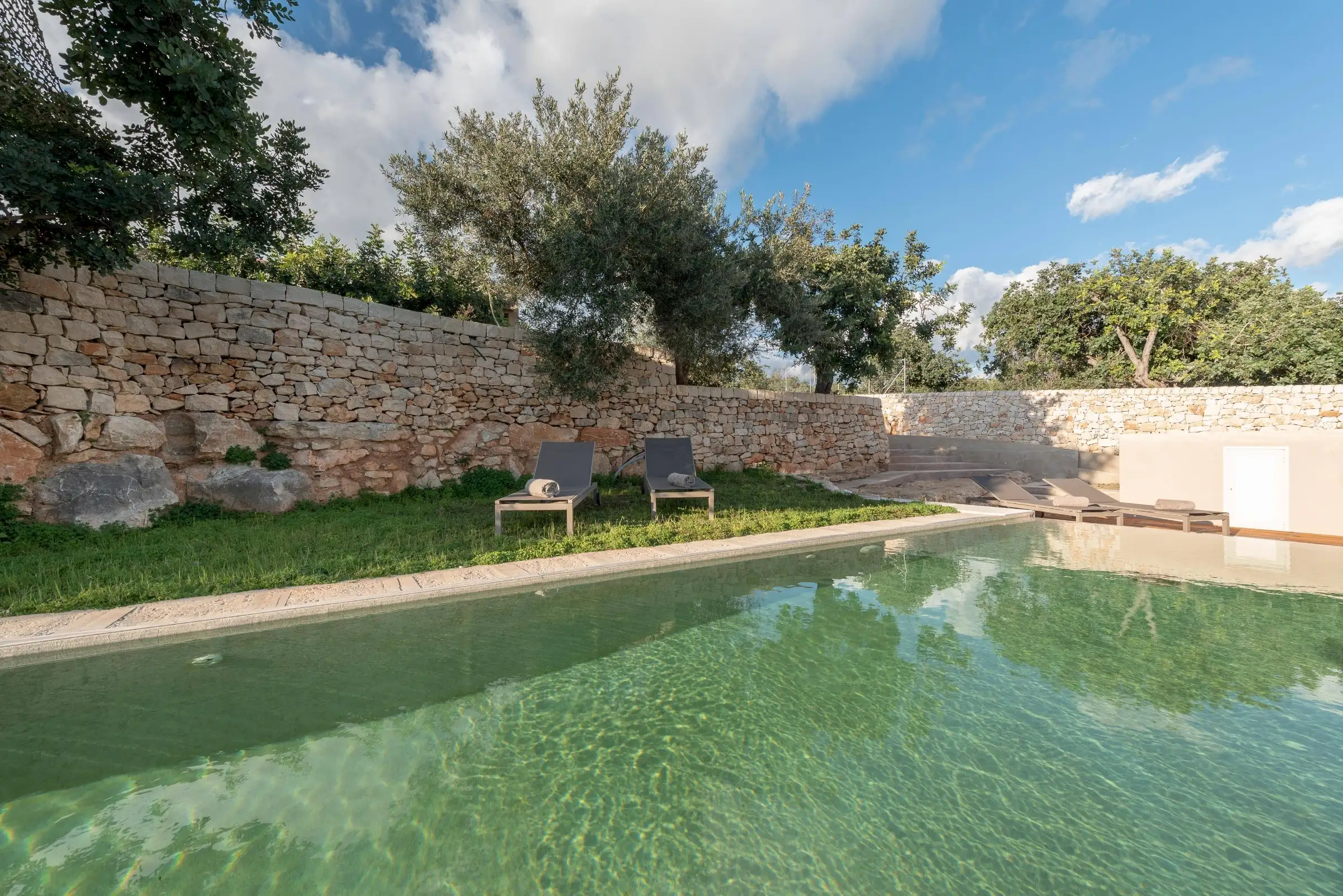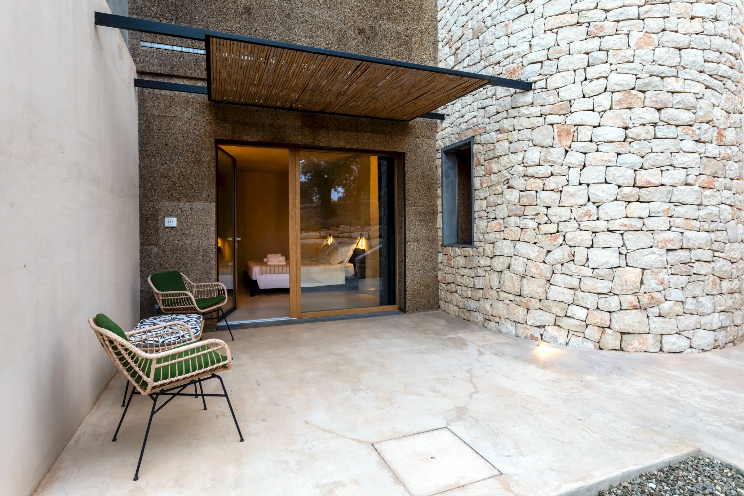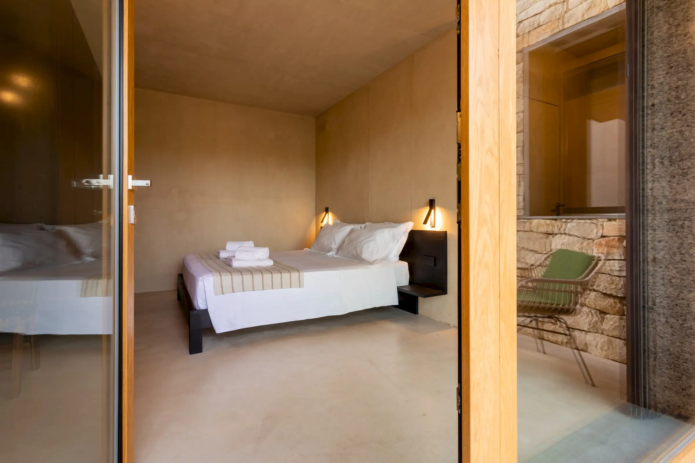 This is a property where the outside spaces are as much a part of the design as the inside ones and guests will find numerous shaded places to eat, drink and relax. The 20m-long pool has no chemicals and uses water from the naturally filtered lake. A swim here can be accompanied by a snooze on a lounger in the shade of the carob trees.
