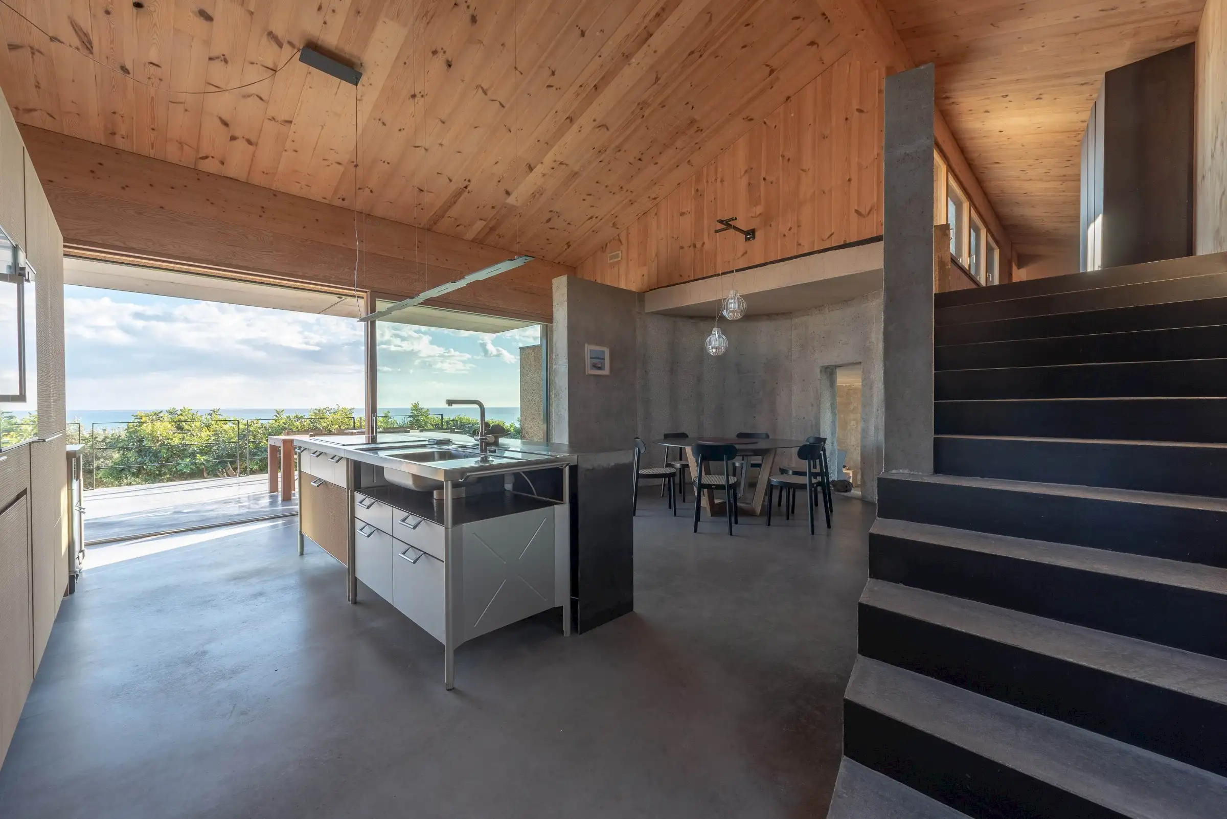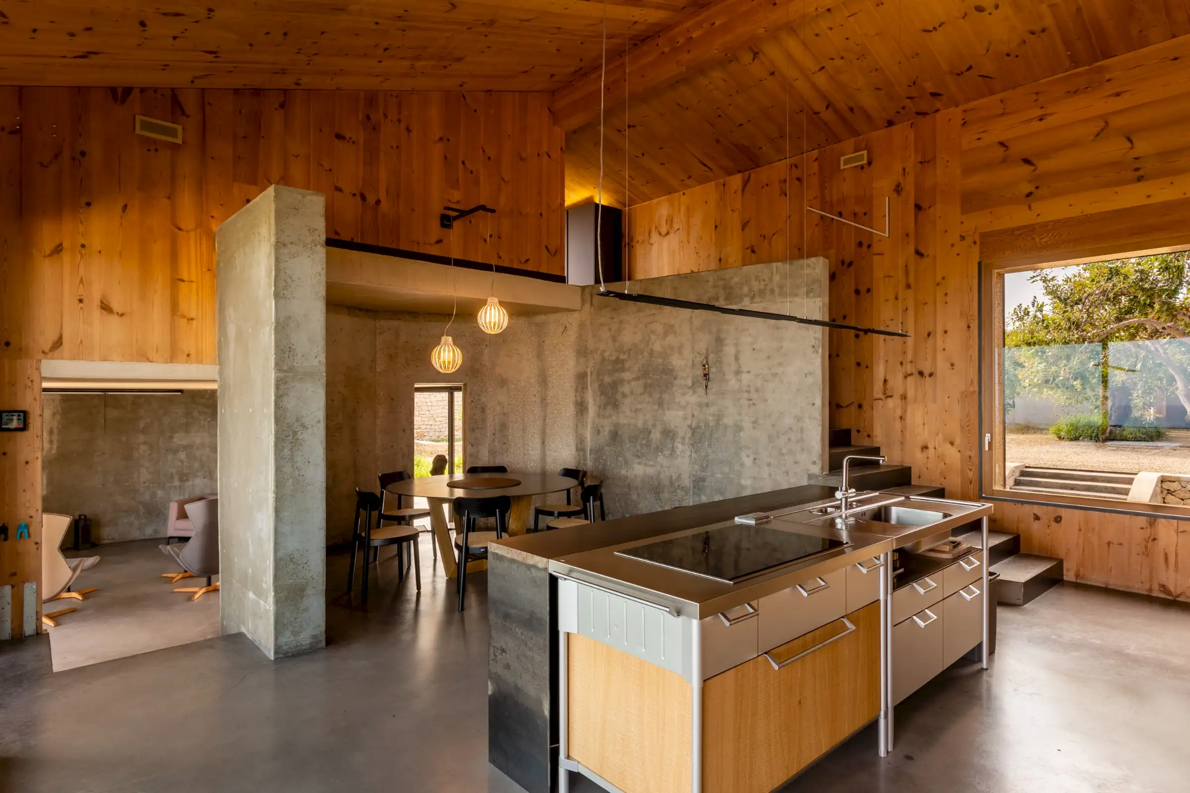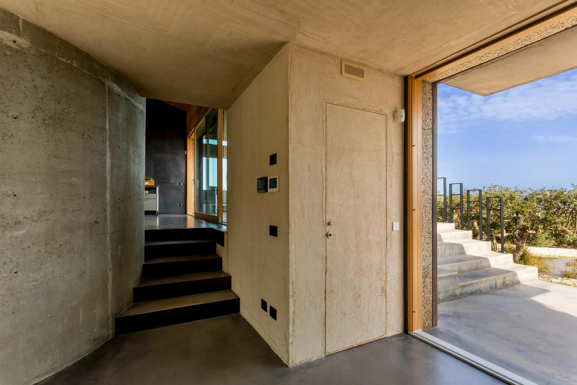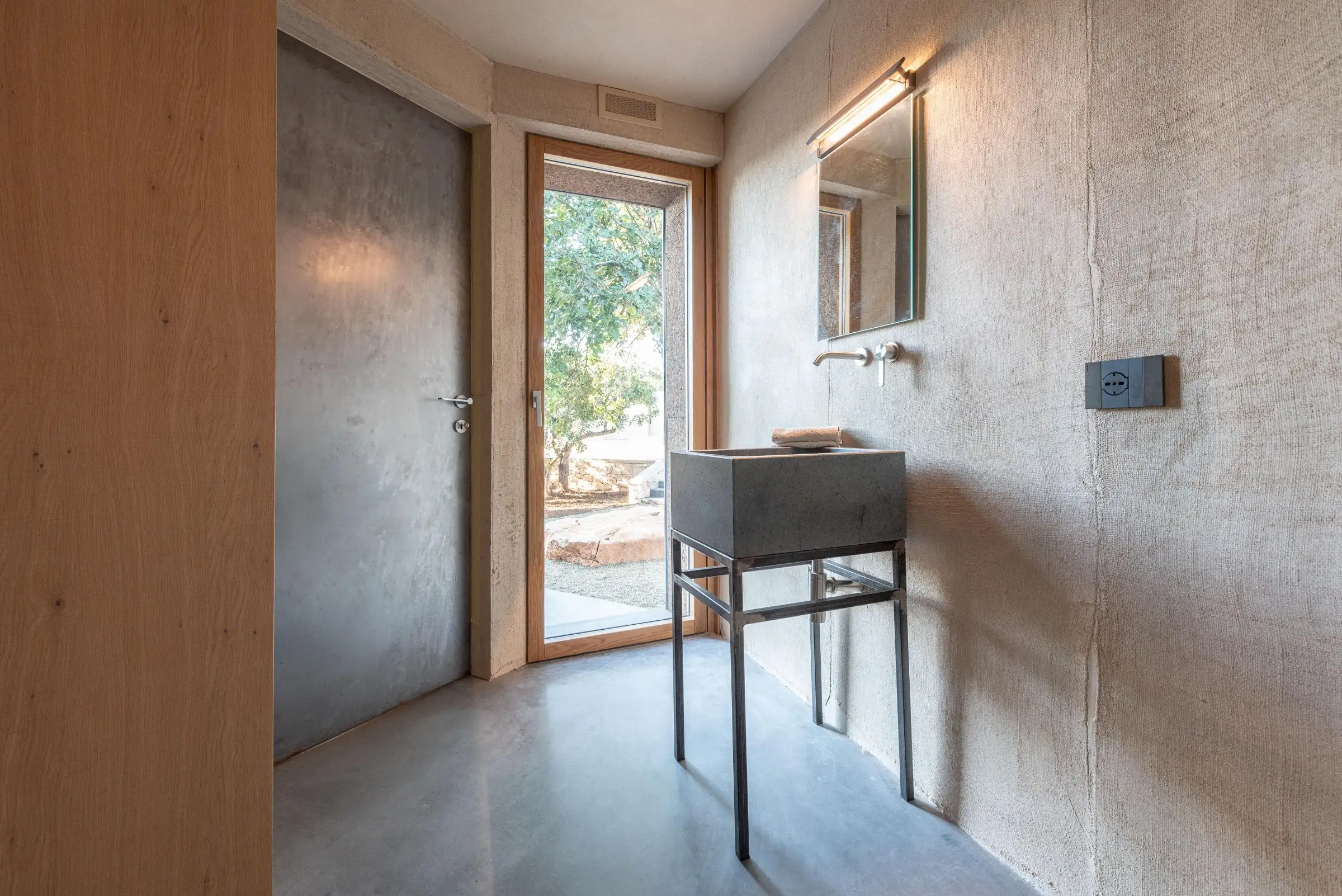 Built on three different levels, the minimalist design leads you from room to room and floor to floor, merging a core blend of materials, including wood, cement, stone and metal. Taking inspiration from nature, the house is covered in cork and was conceived as an oasis of high design based on sustainable principles with a view to being a house in which to relax and reset.