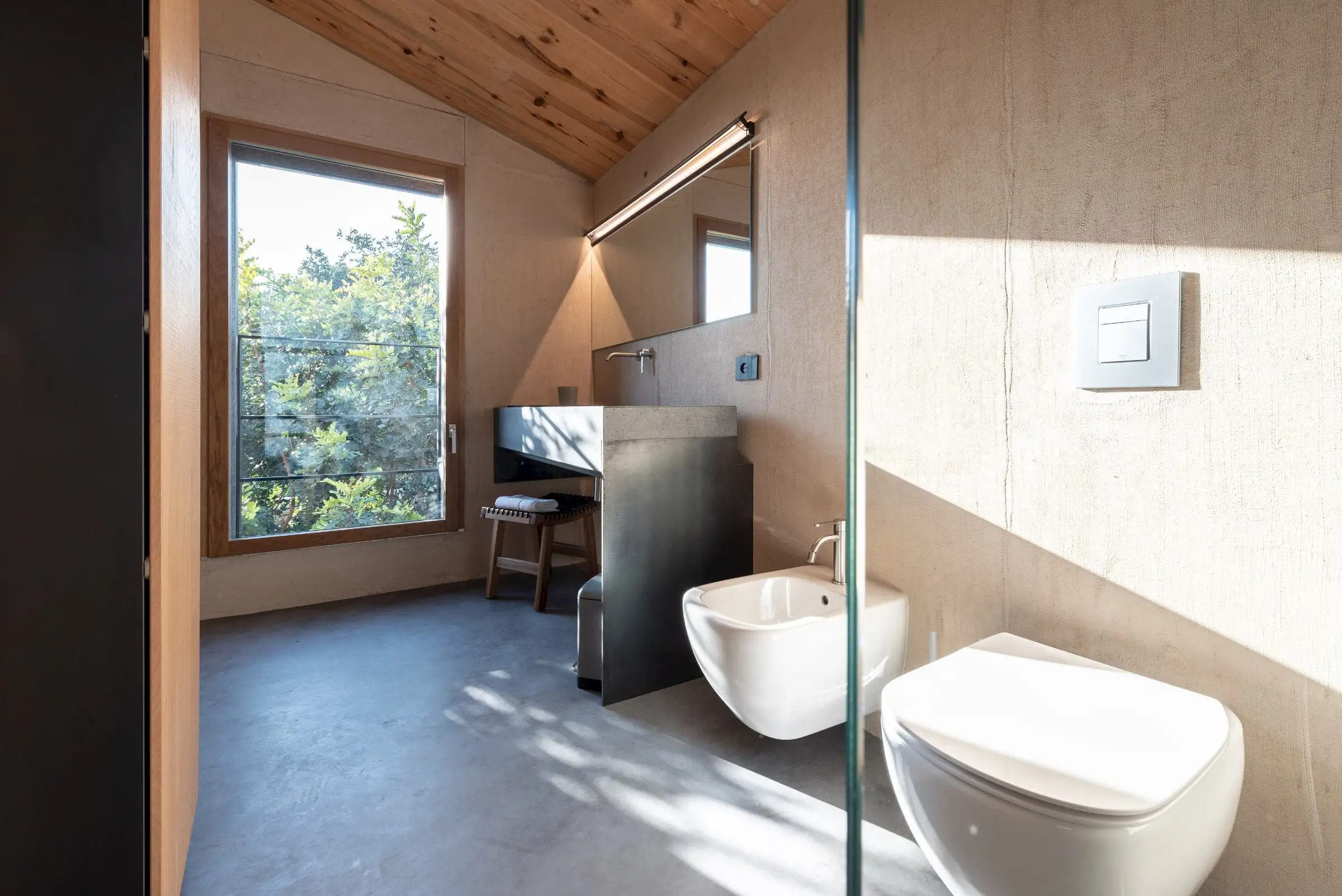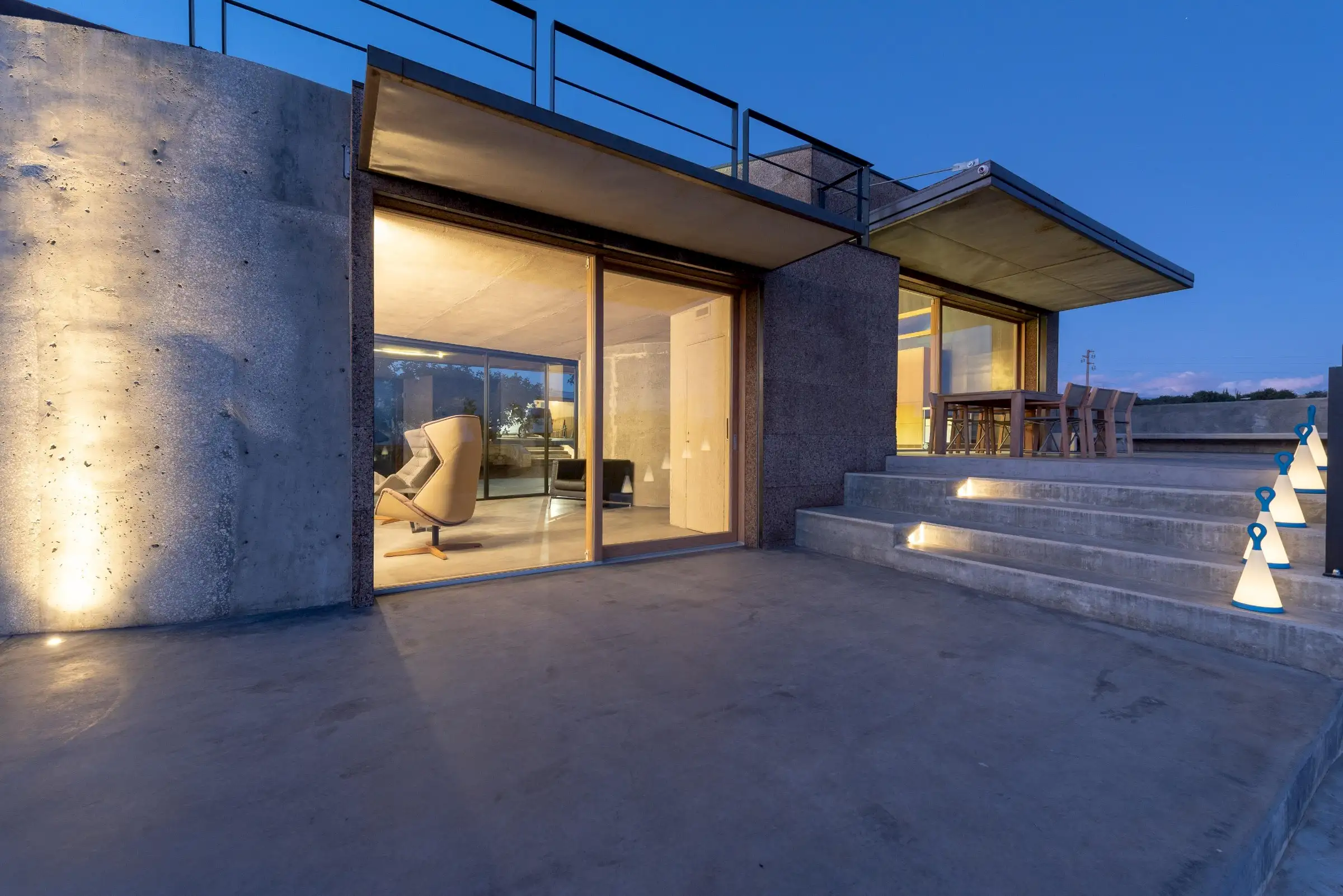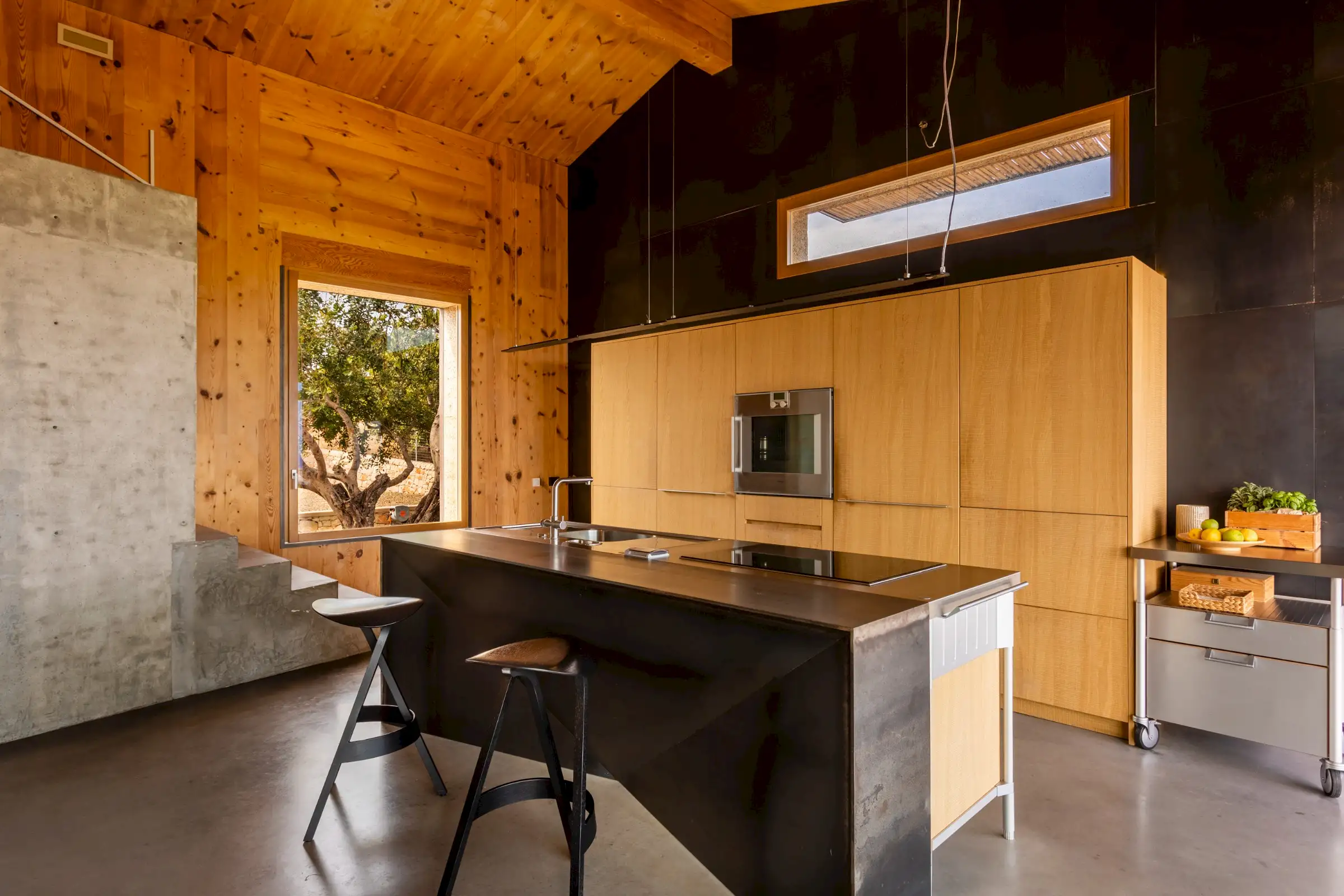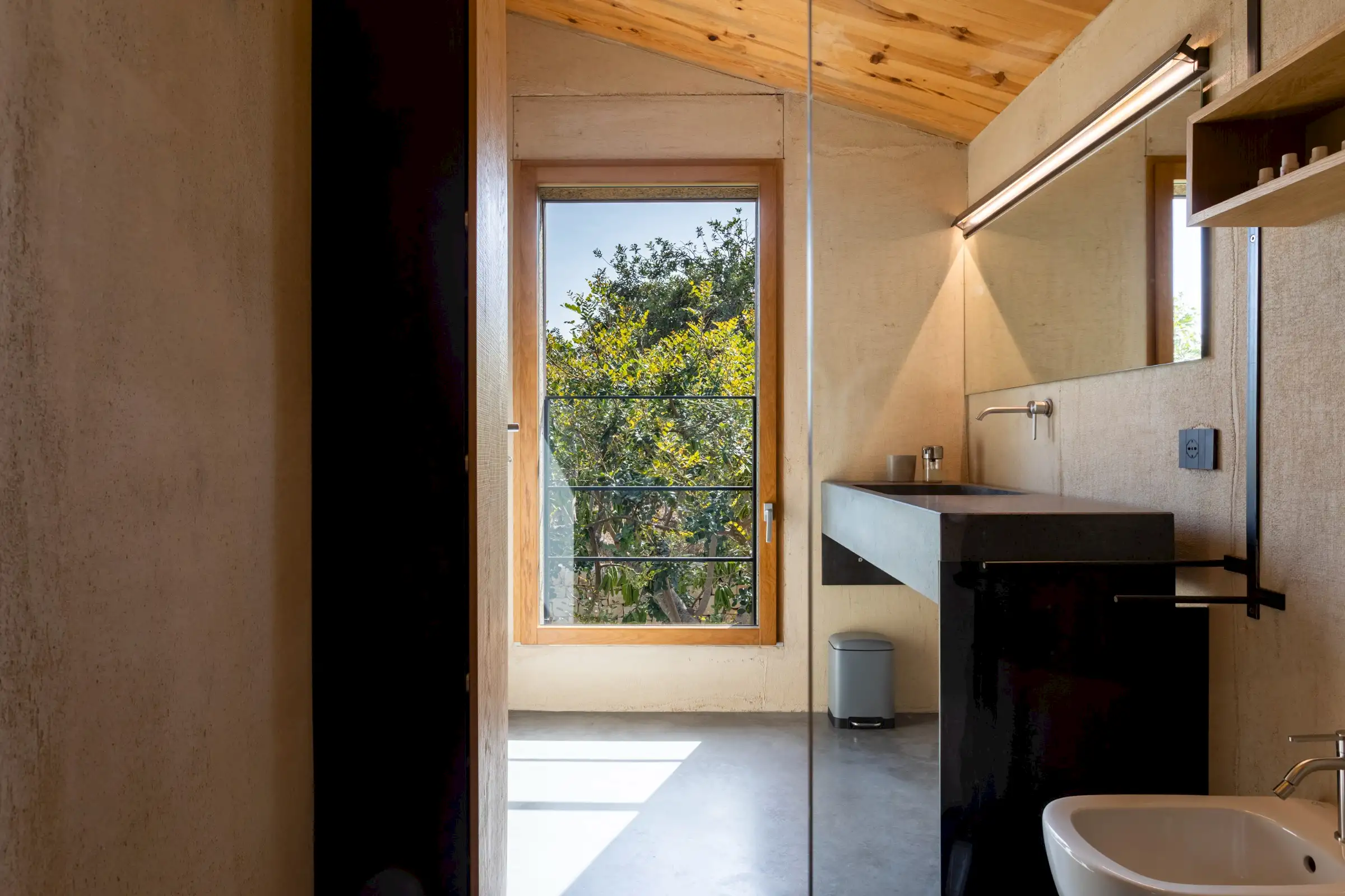 Built on three different levels, the minimalist design leads you from room to room and floor to floor, merging a core blend of materials, including wood, cement, stone and metal. Taking inspiration from nature, the house is covered in cork and was conceived as an oasis of high design based on sustainable principles with a view to being a house in which to relax and reset.