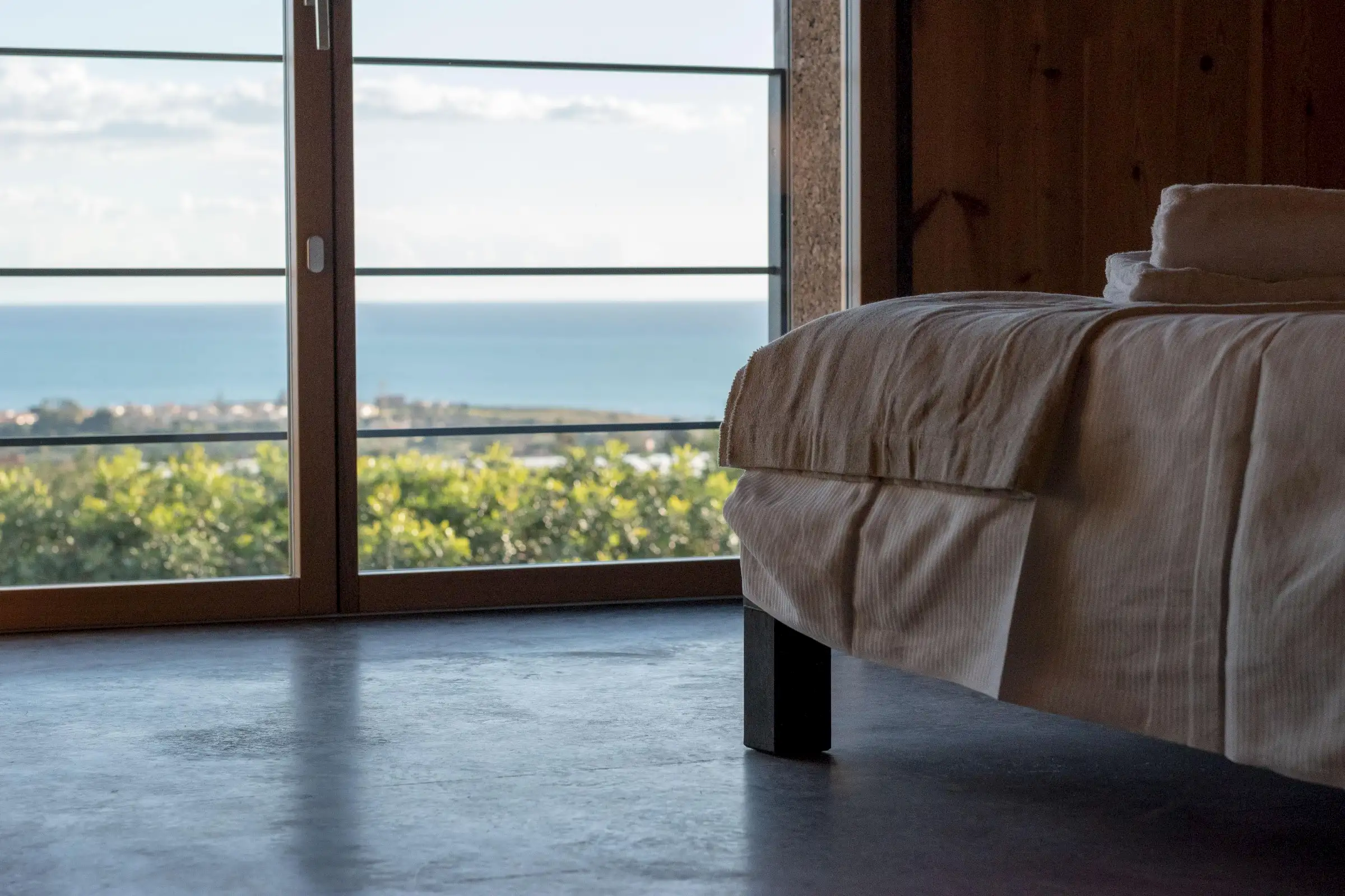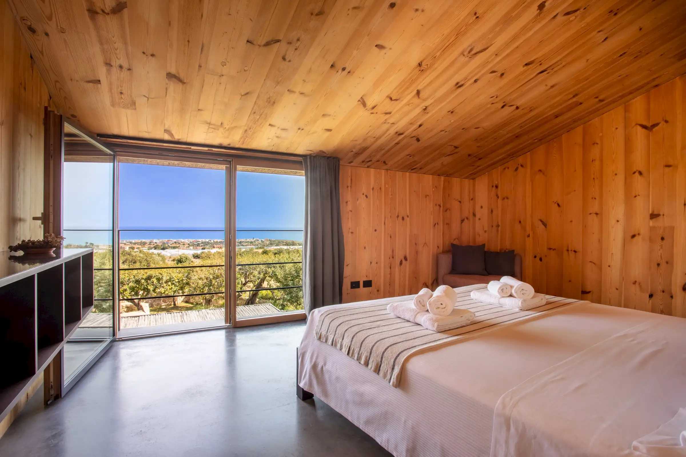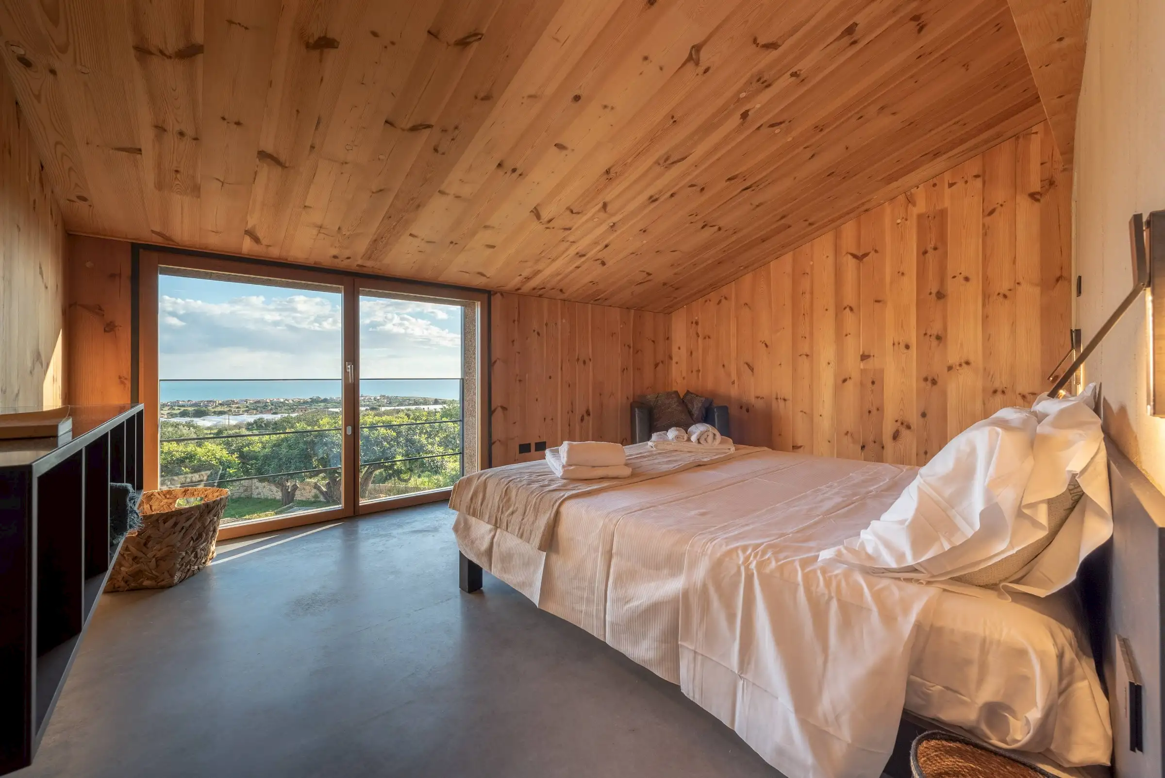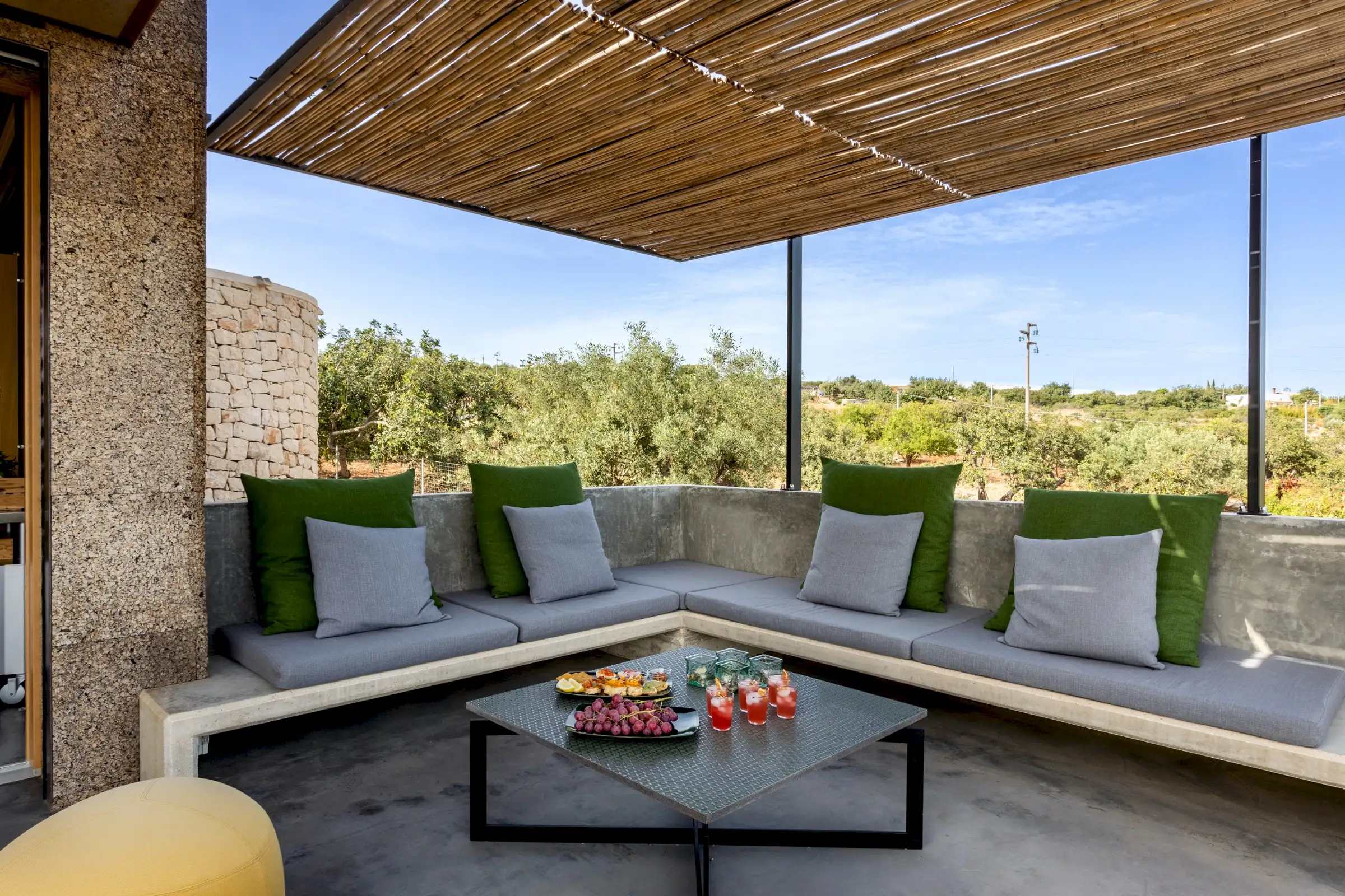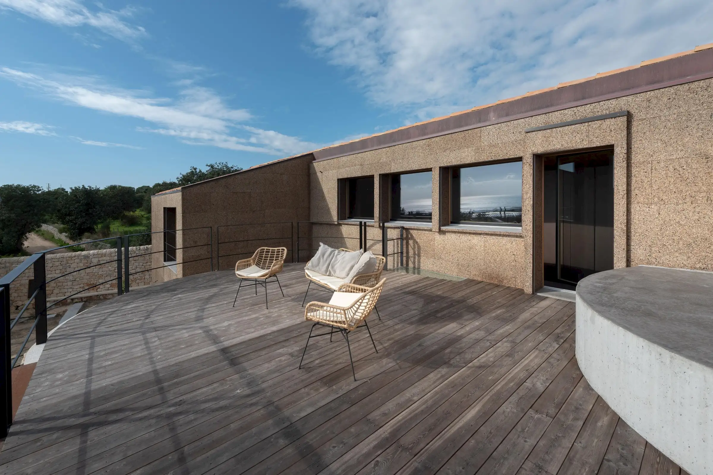 Clad in cork and built to a minimalist design from raw and natural materials, Villa Corchi is a modernist pleasure palace with a 20m-long bio pool and fabulous views.