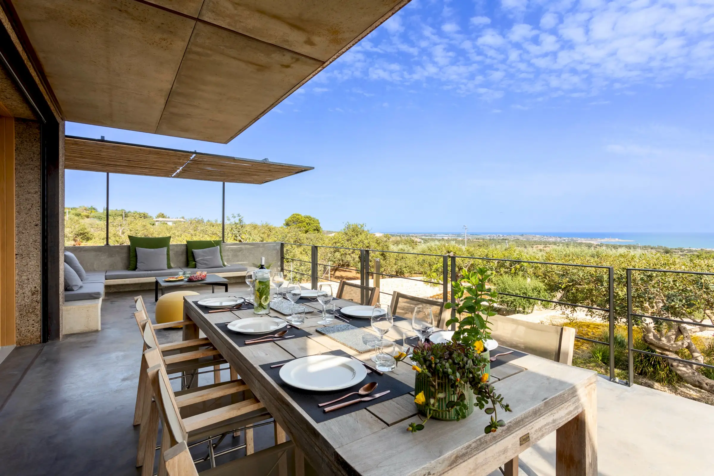 The south coast of the island is on the doorstep and the rich history and culture of towns such as Modica, Ragusa, Syracusa and Noto are easy to reach. Byzantine, Moorish and Baroque architecture provides the perfect foil to the modernity of this fabulous villa.