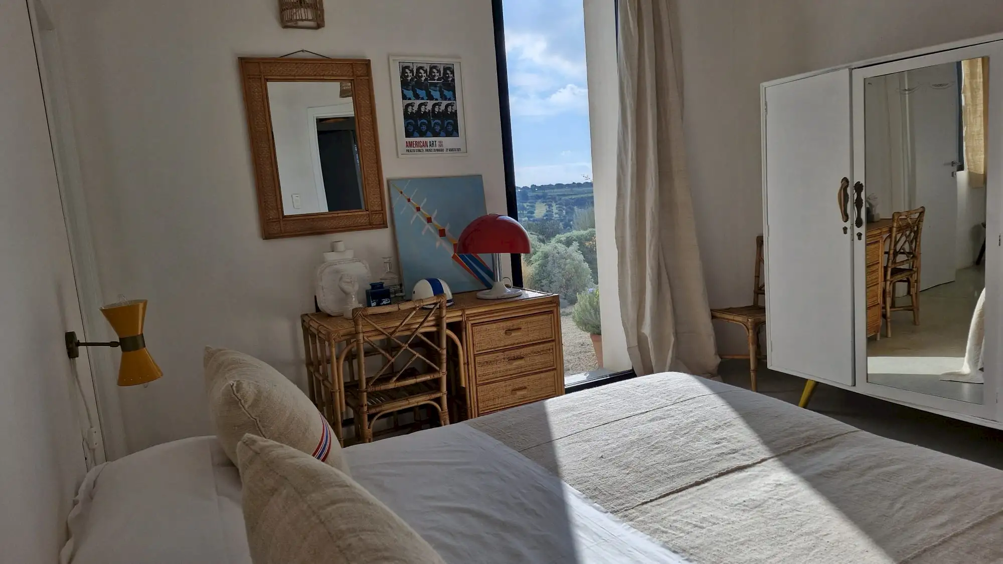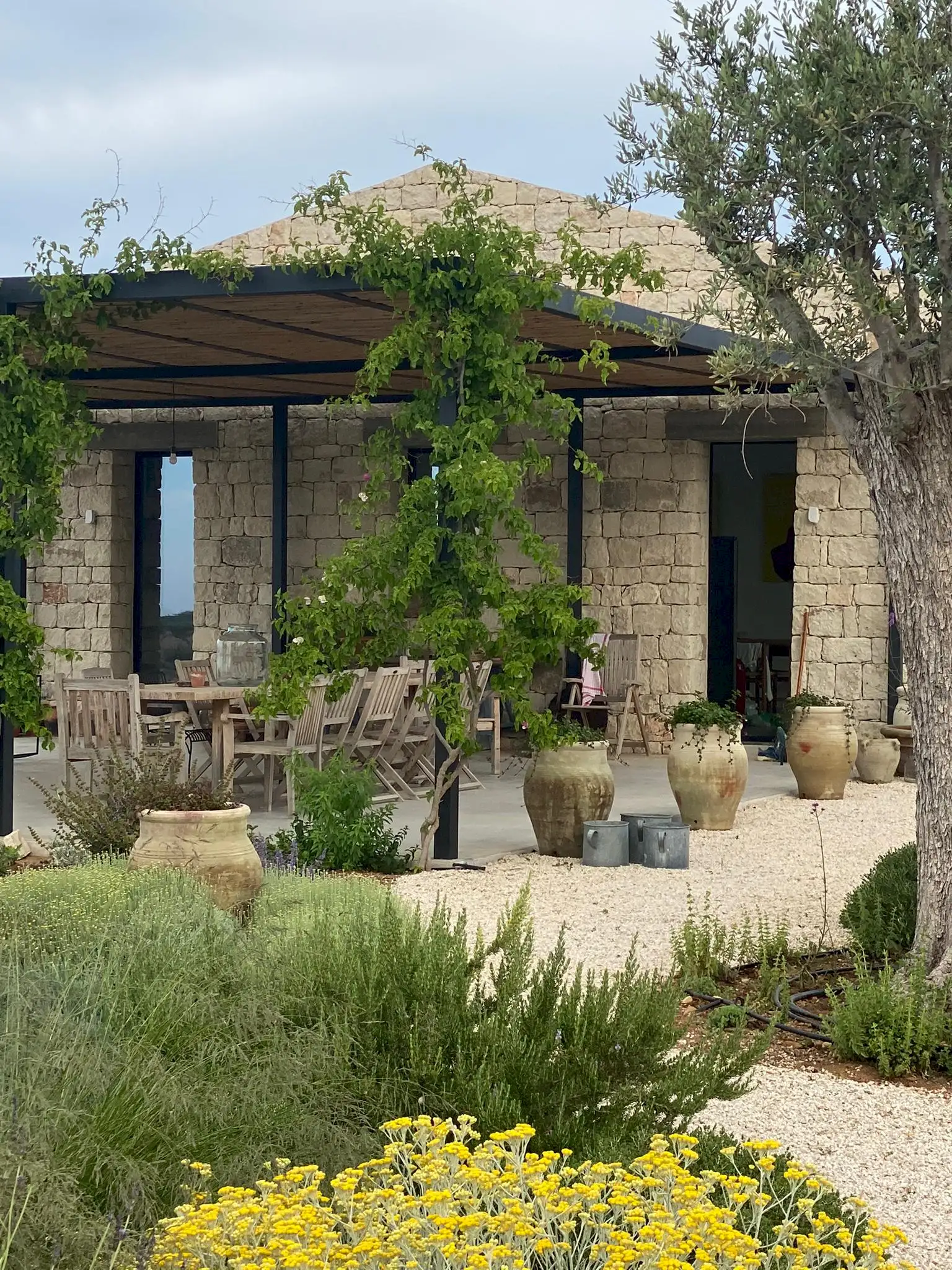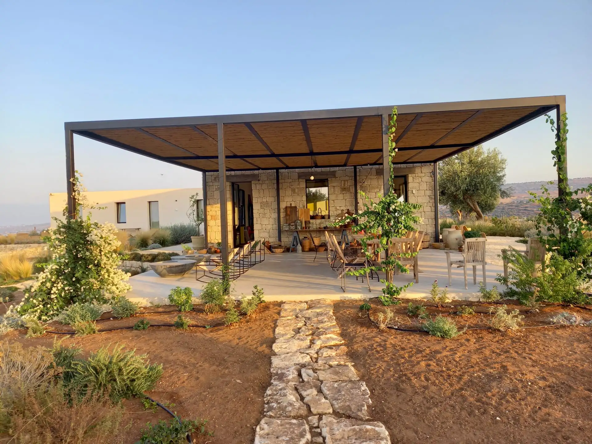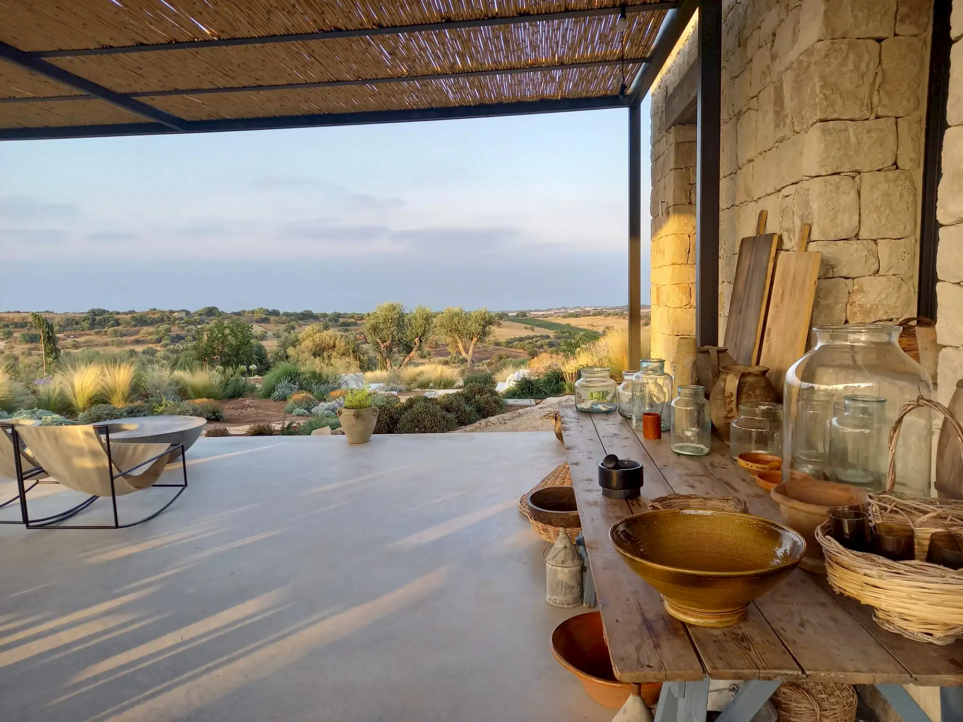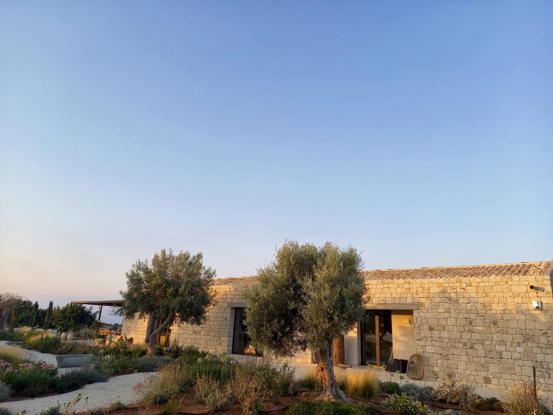 The design has been as carefully balanced inside as out, and the six en-suite doubles are individually decorated with original art, lighting and furniture, both modern and antique, much of it championing local makers. Smooth floors, a well-equipped kitchen and a vast living room all have doors to outside that can be kept open to create a breeze, even in the heat of summer.