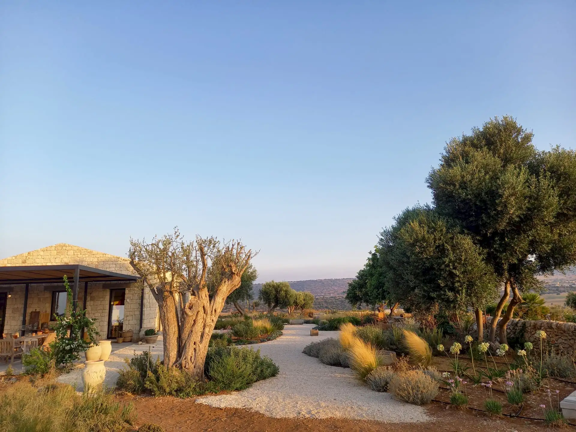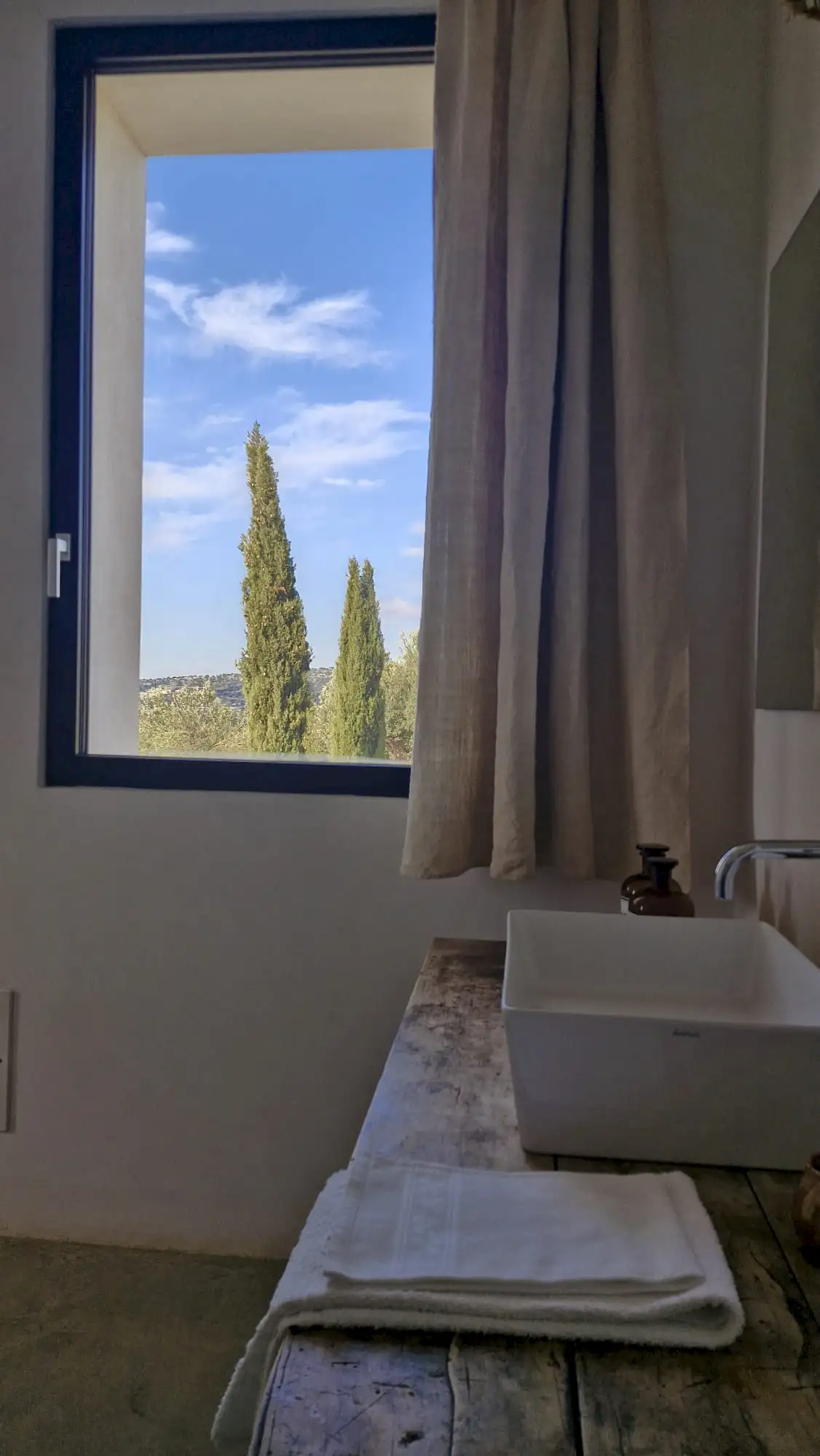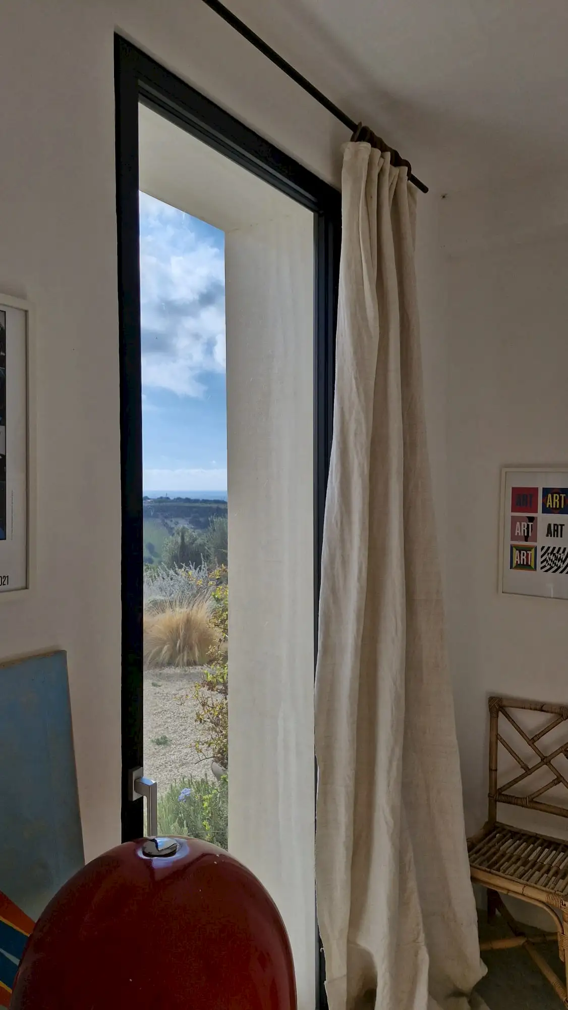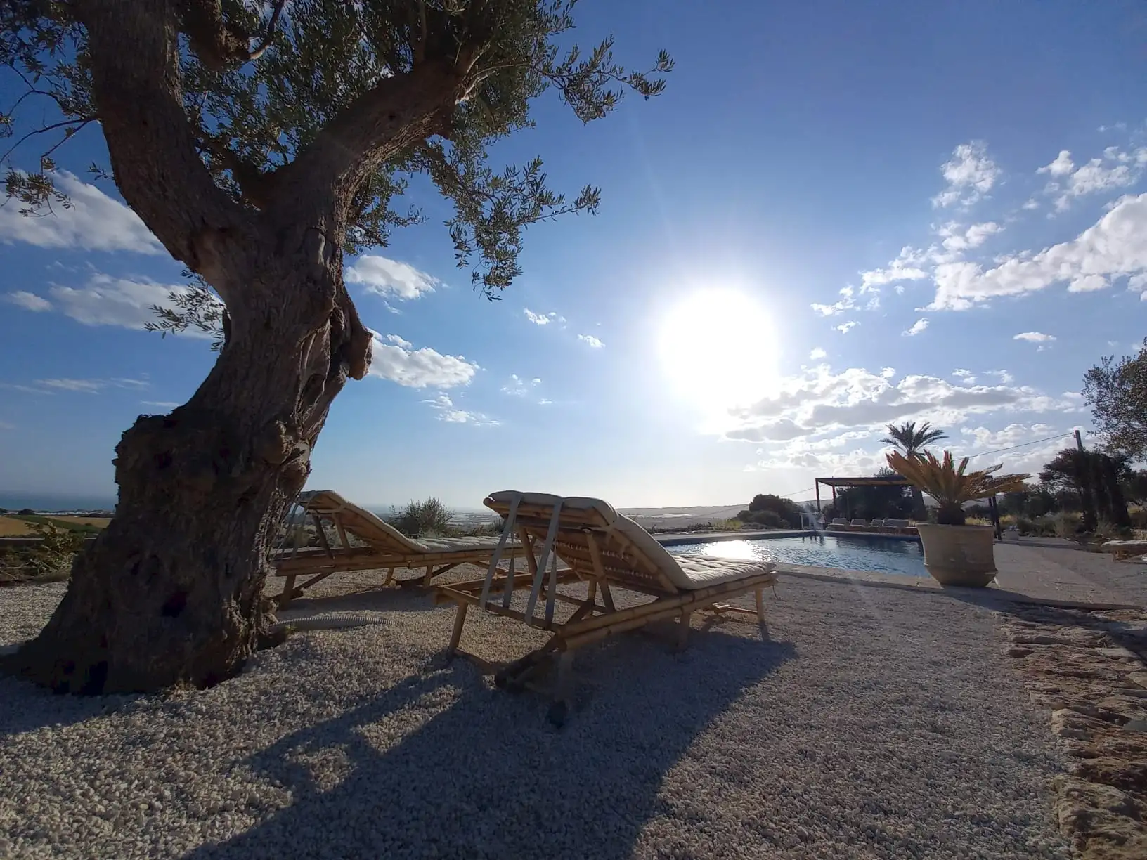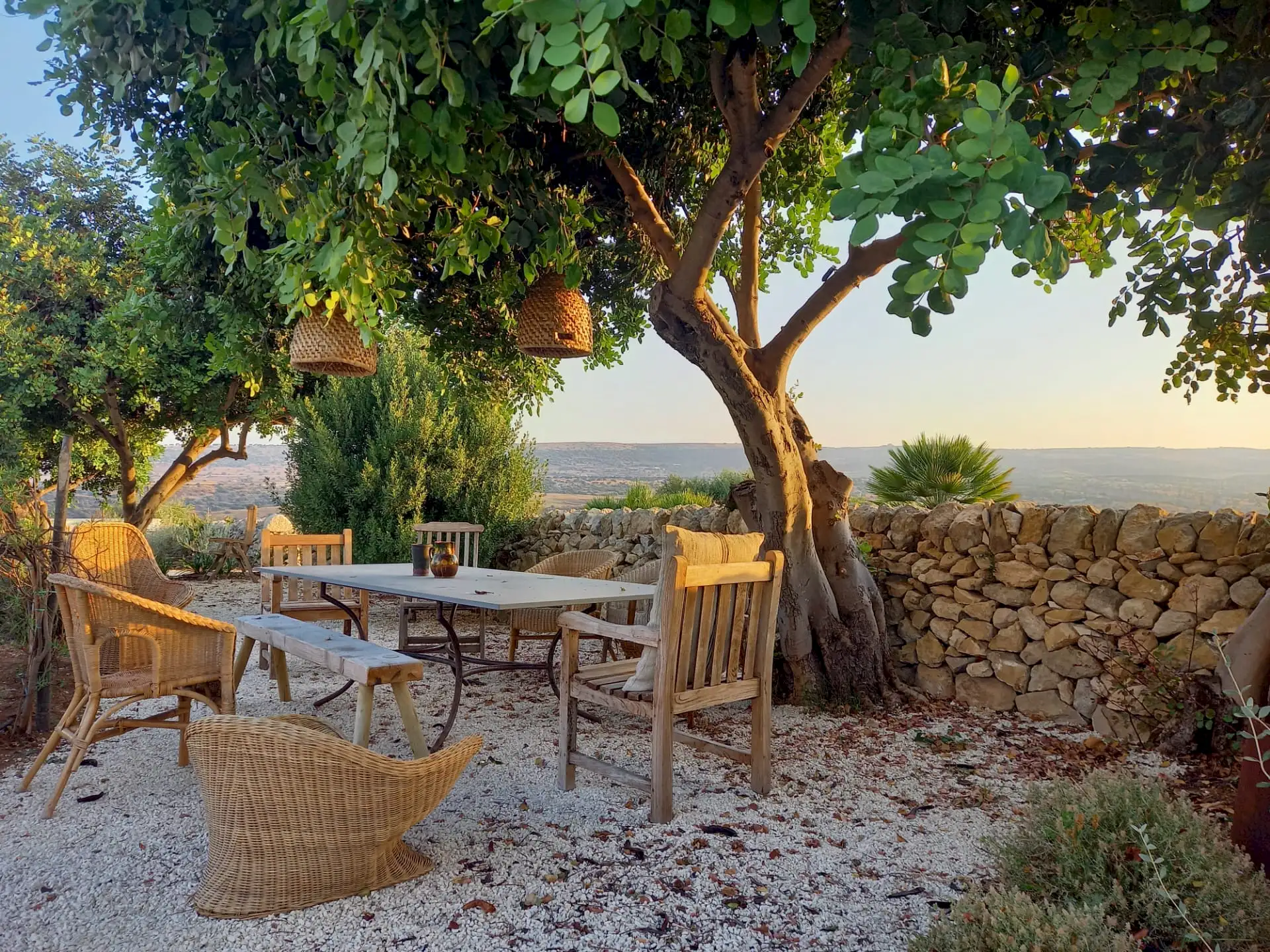 The design has been as carefully balanced inside as out, and the six en-suite doubles are individually decorated with original art, lighting and furniture, both modern and antique, much of it championing local makers. Smooth floors, a well-equipped kitchen and a vast living room all have doors to outside that can be kept open to create a breeze, even in the heat of summer.