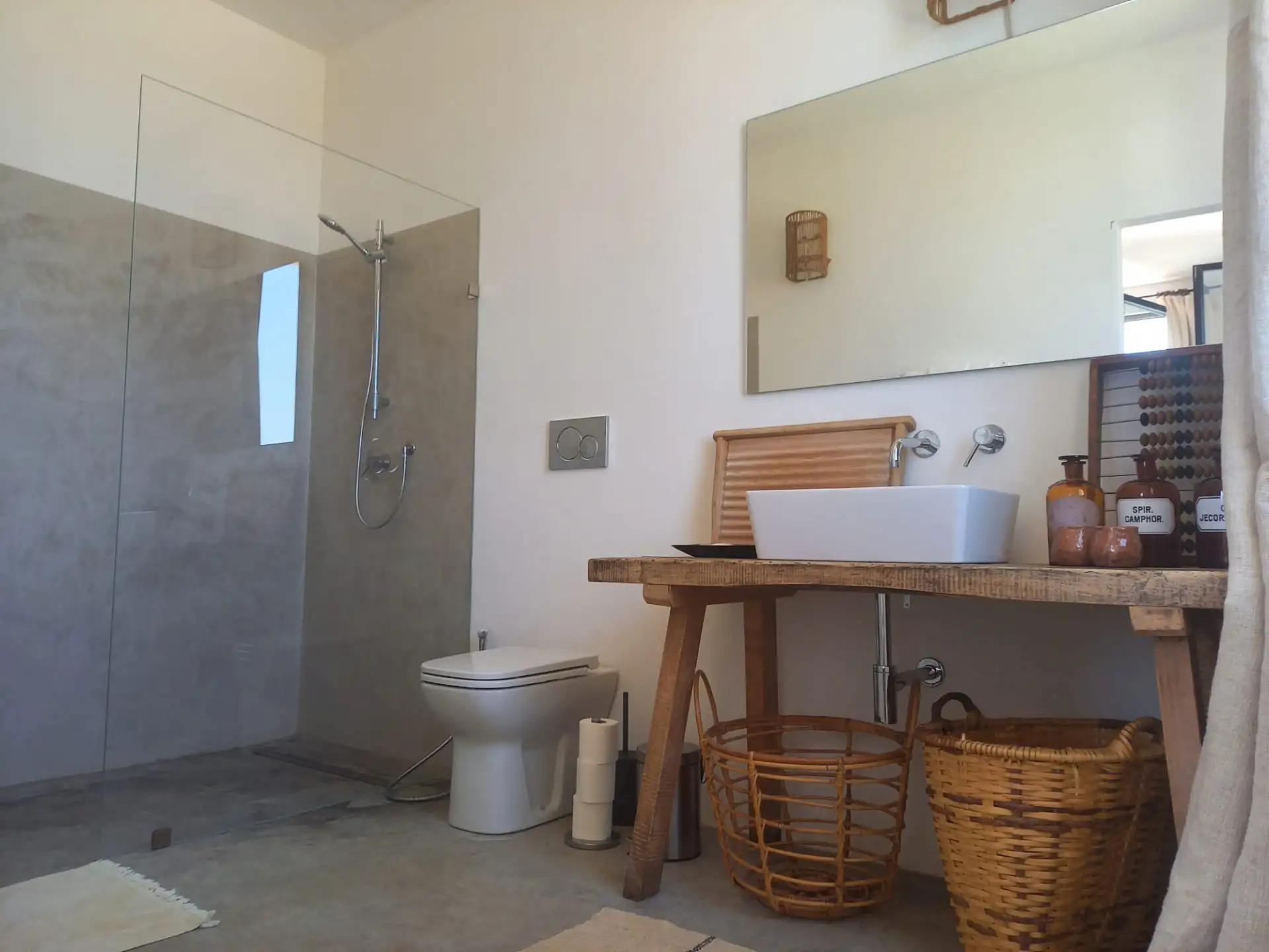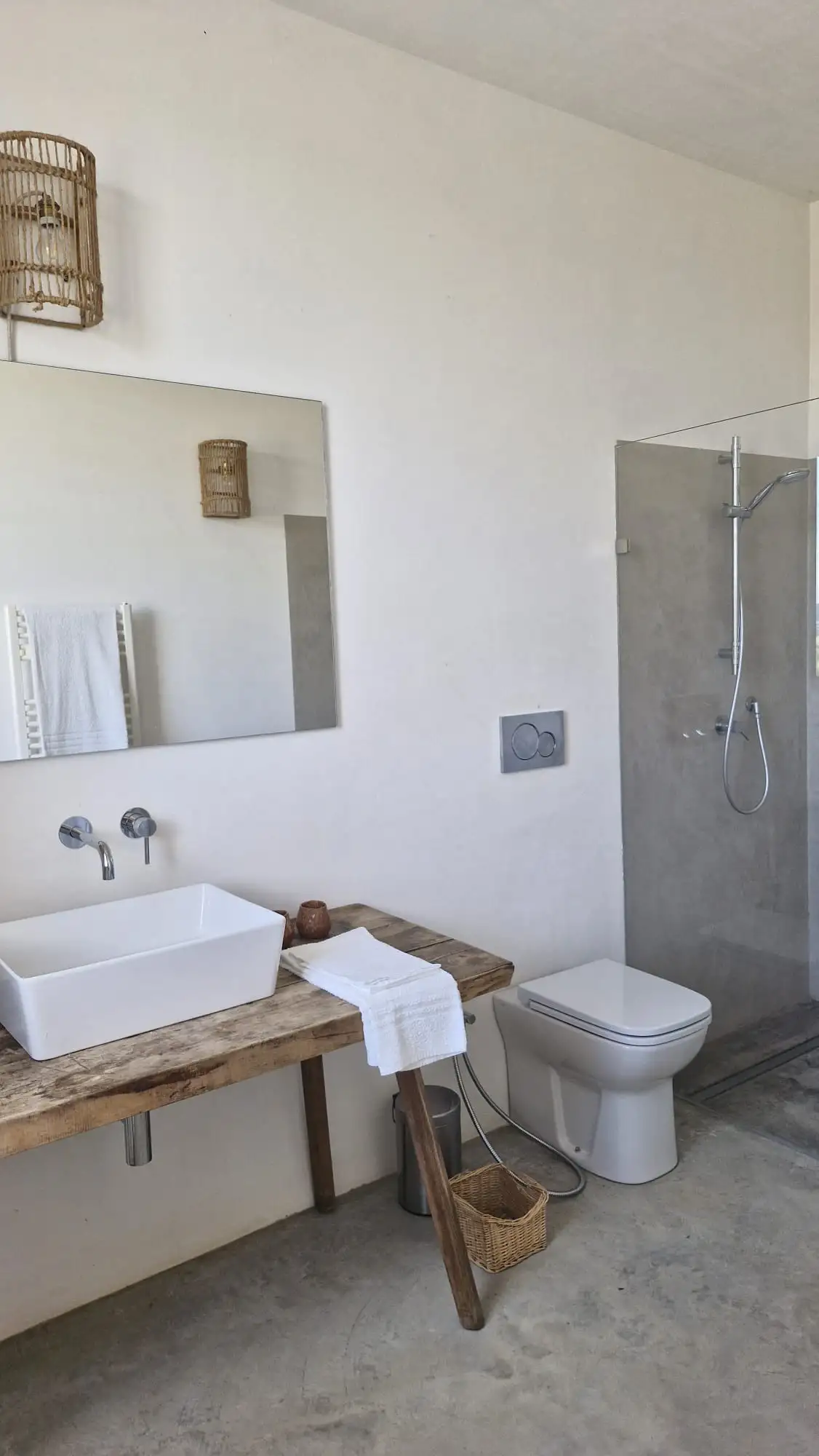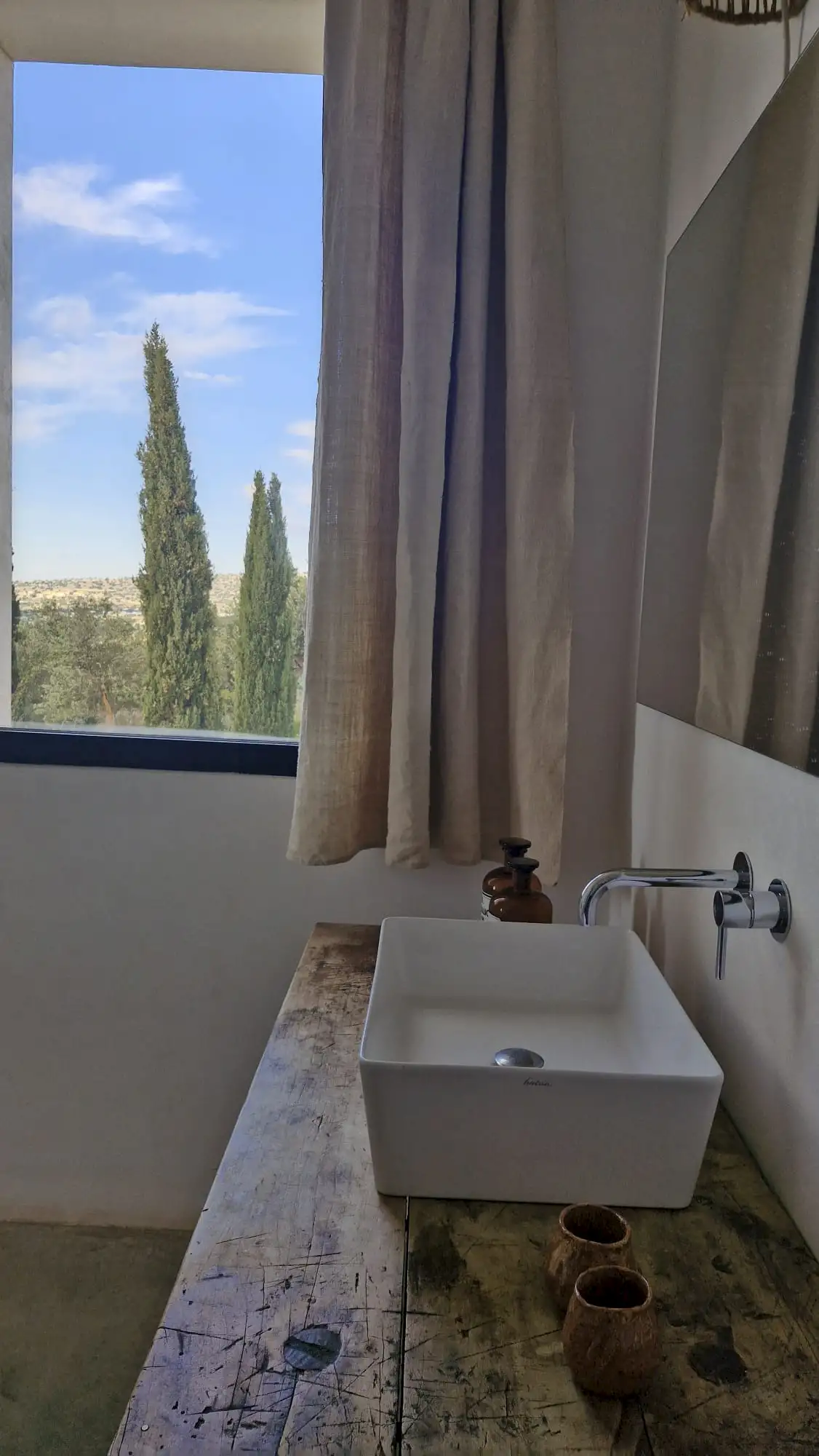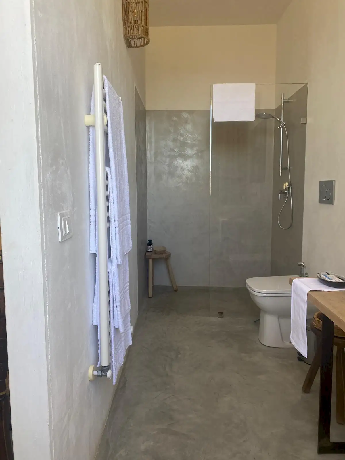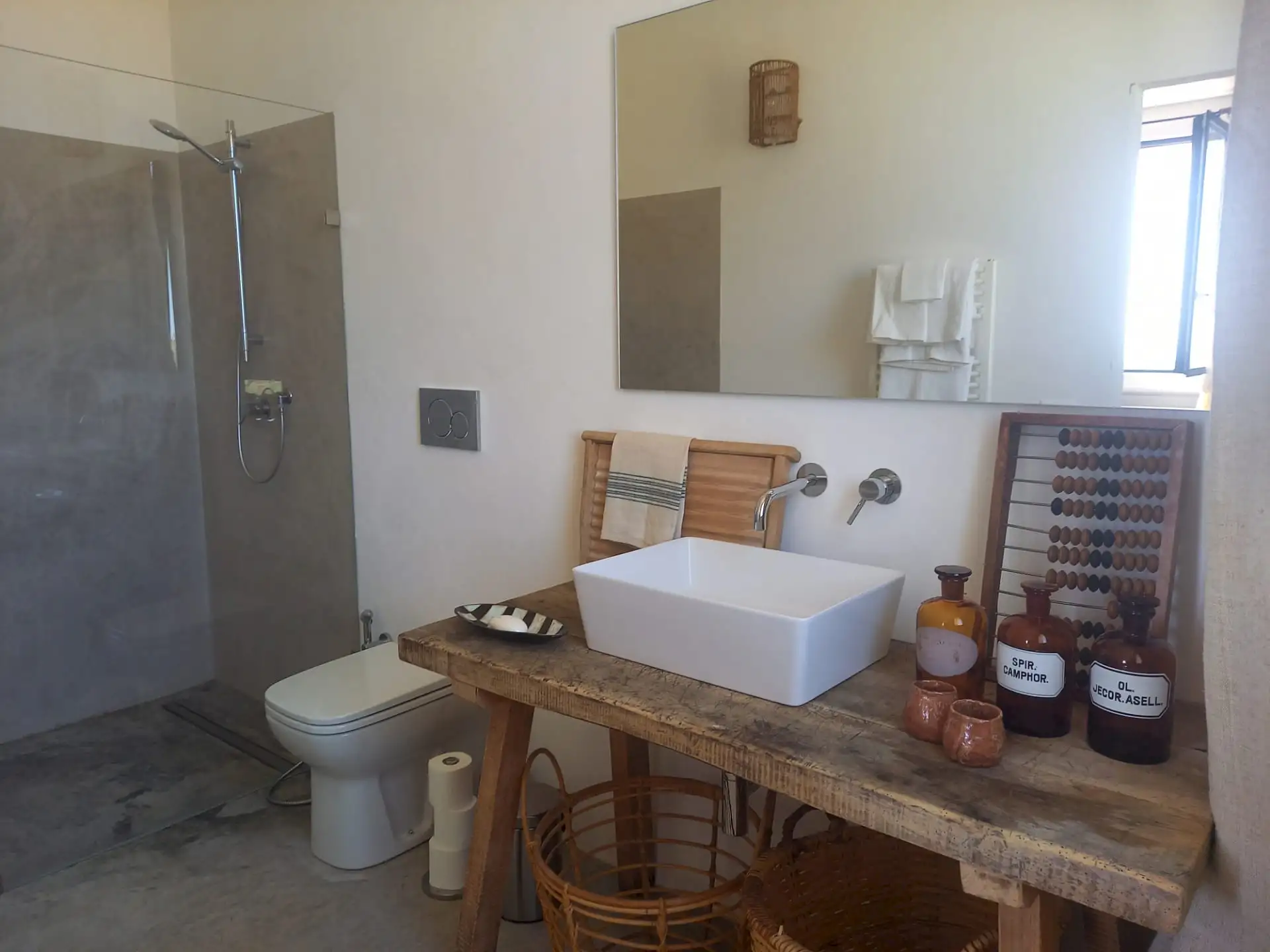 The design has been as carefully balanced inside as out, and the six en-suite doubles are individually decorated with original art, lighting and furniture, both modern and antique, much of it championing local makers. Smooth floors, a well-equipped kitchen and a vast living room all have doors to outside that can be kept open to create a breeze, even in the heat of summer.