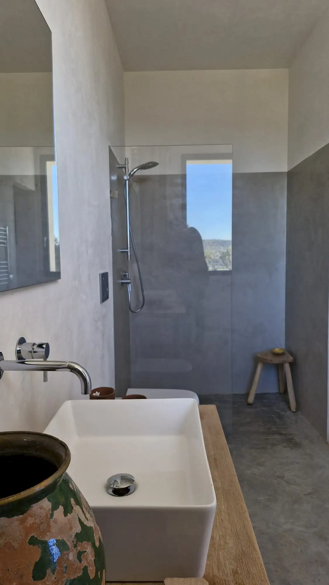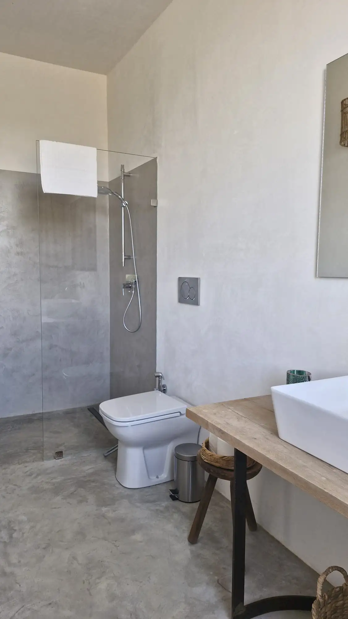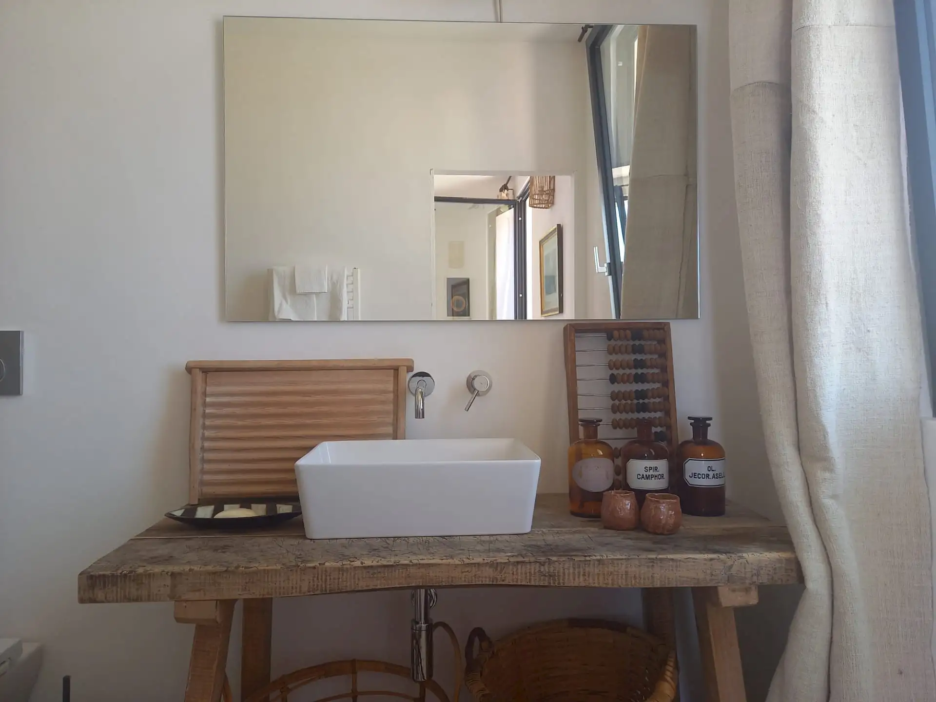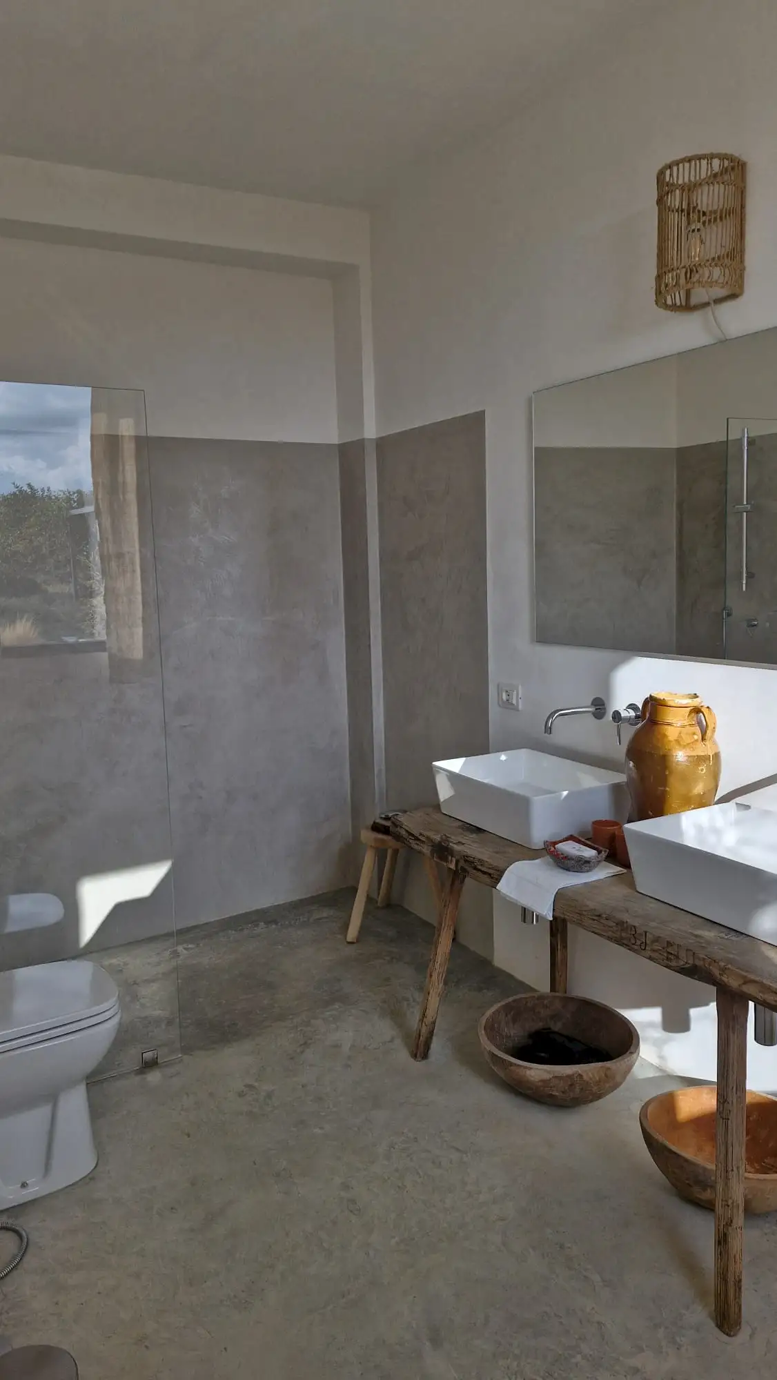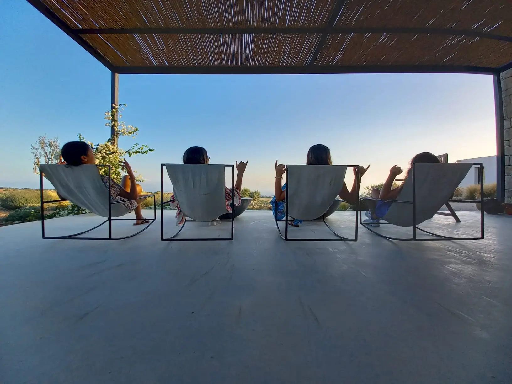 The design has been as carefully balanced inside as out, and the six en-suite doubles are individually decorated with original art, lighting and furniture, both modern and antique, much of it championing local makers. Smooth floors, a well-equipped kitchen and a vast living room all have doors to outside that can be kept open to create a breeze, even in the heat of summer.