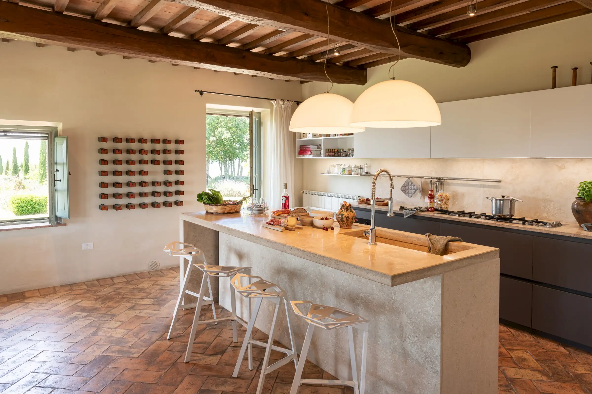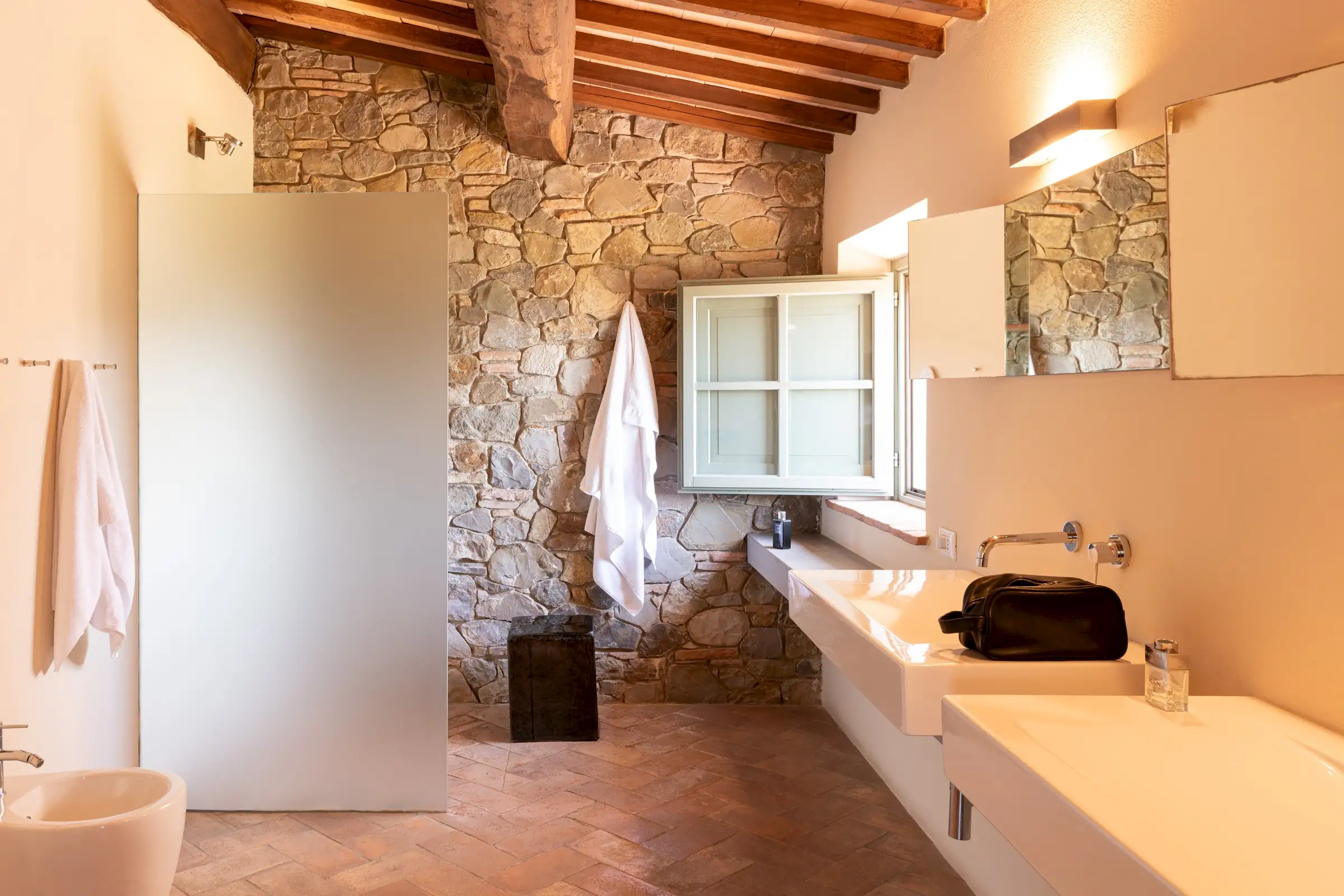 Podere Patrizio has been beautifully restored by an Italian architect working with skilled local craftsmen. It combines the beauty of a traditional stone farmhouse with the best of Italian modern interior design to create a unique blend of the old and the new.