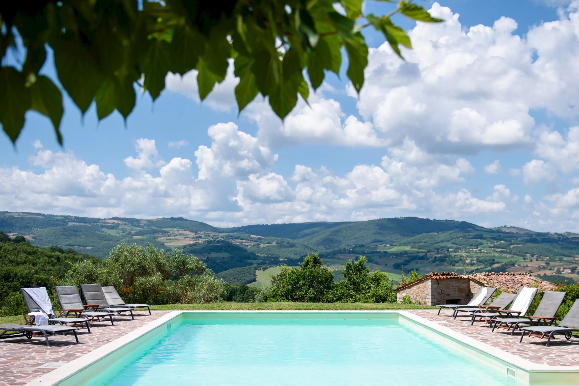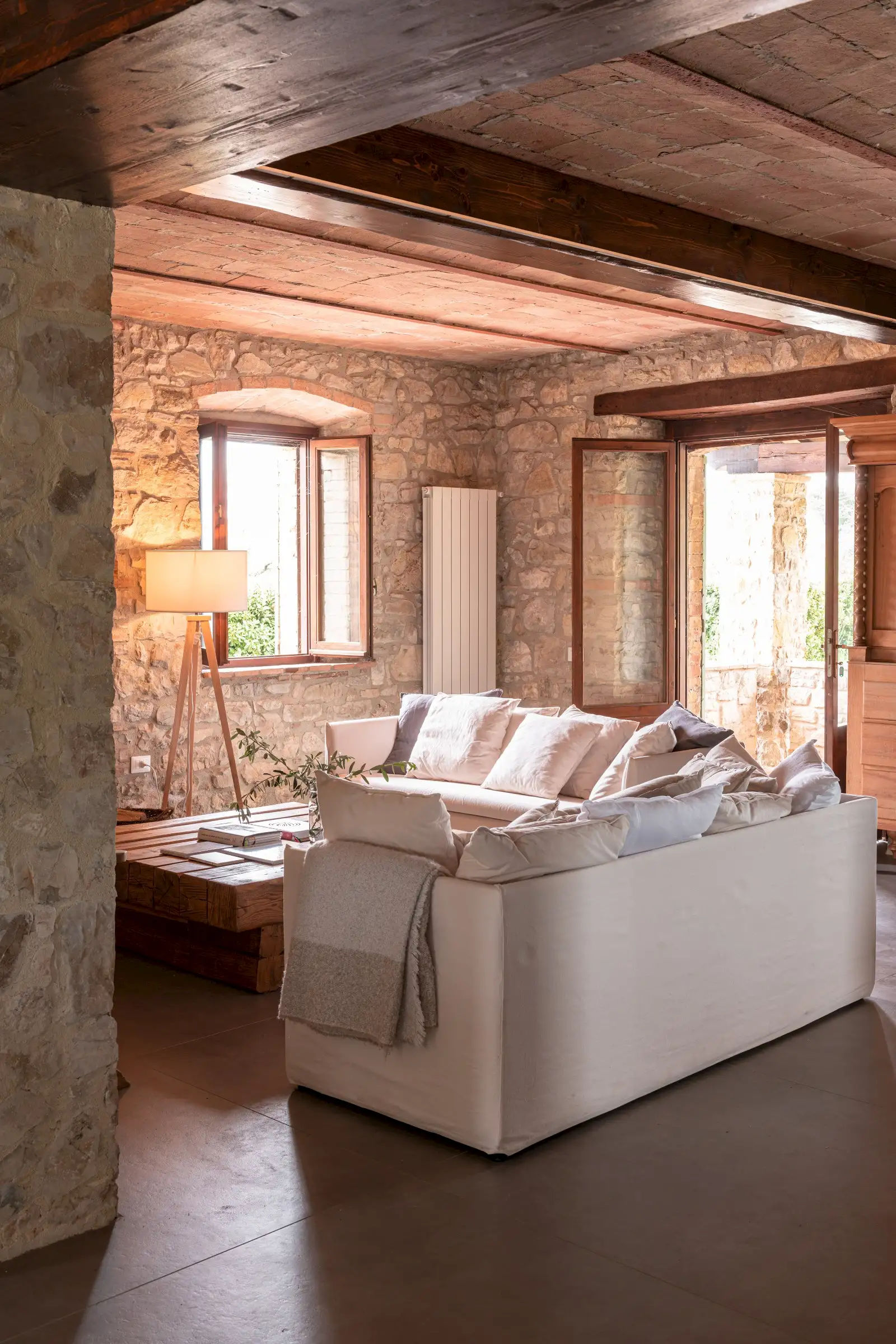 This traditional oak-beamed Umbrian stone villa has been carefully restored, keeping the original charm and utility of the architecture and the incredible views, and discreetly adding further comfort and entertainment.